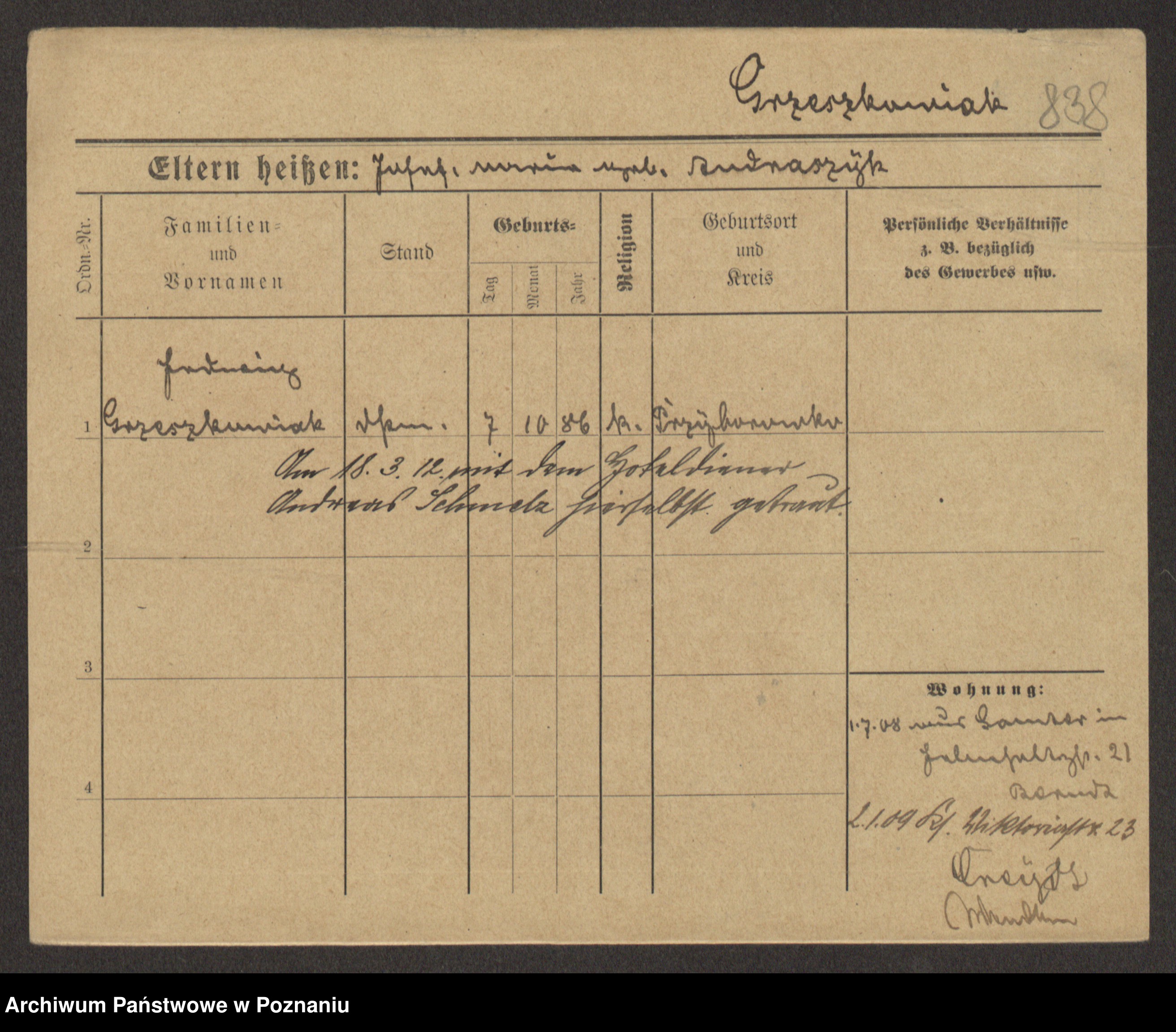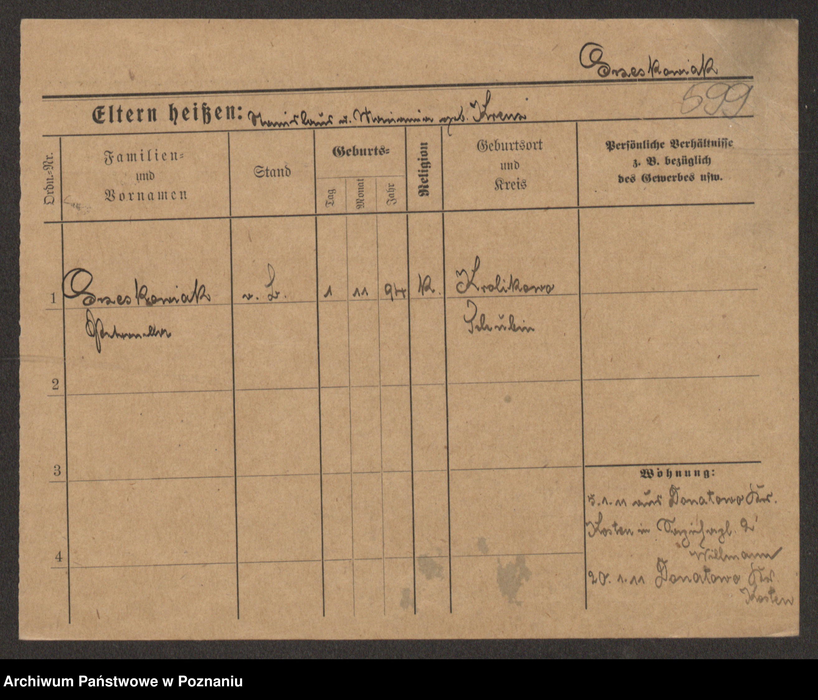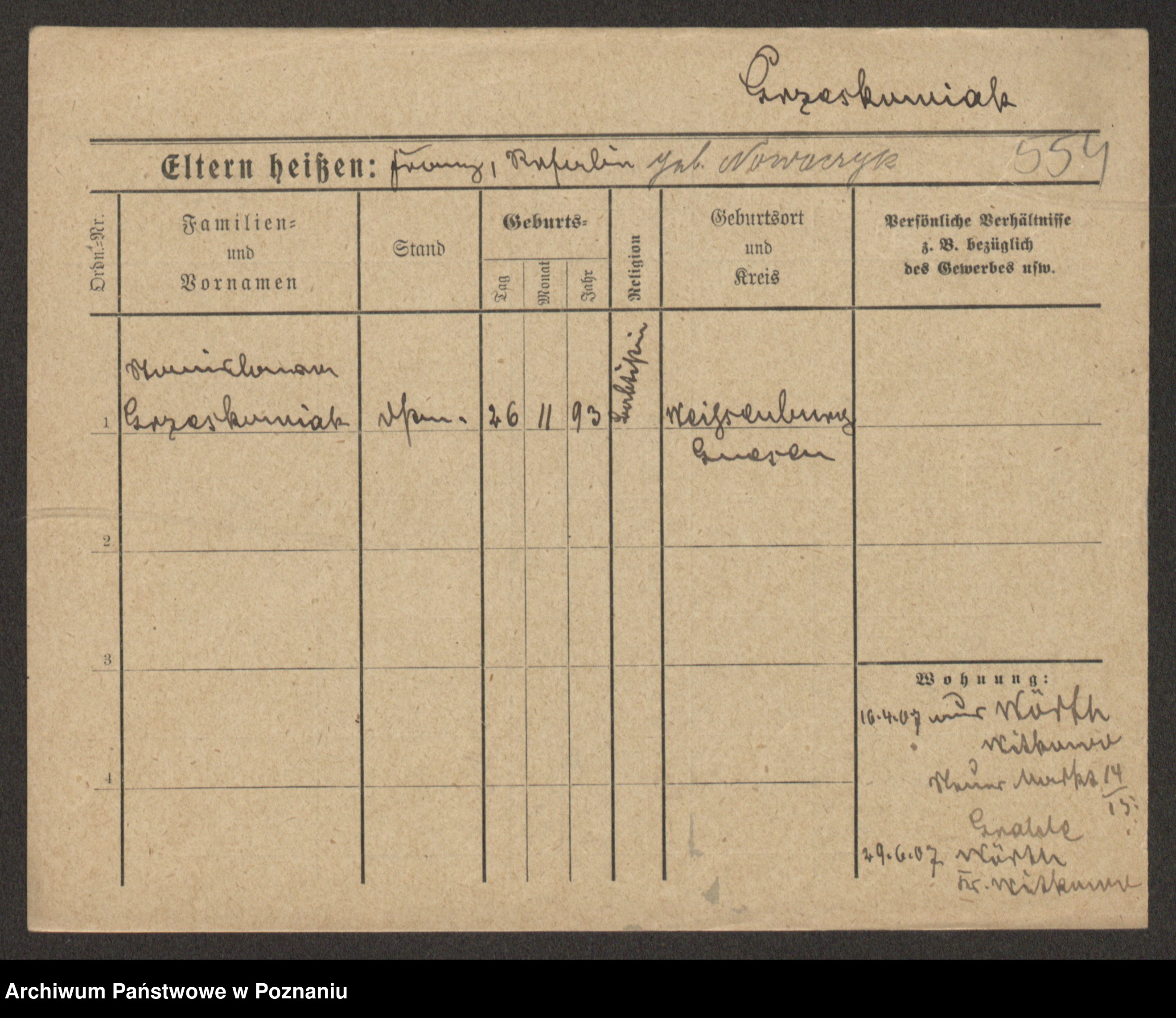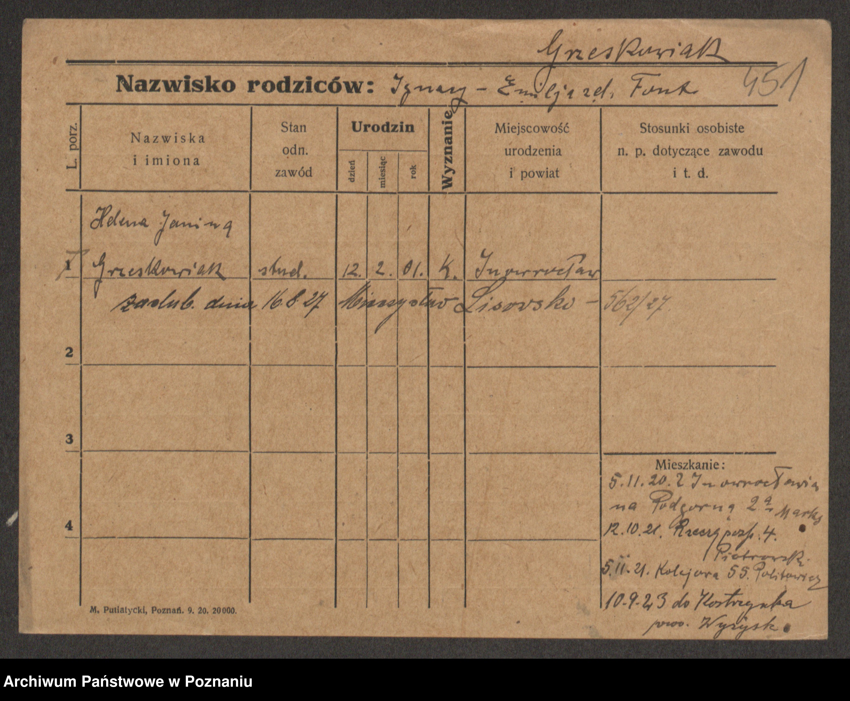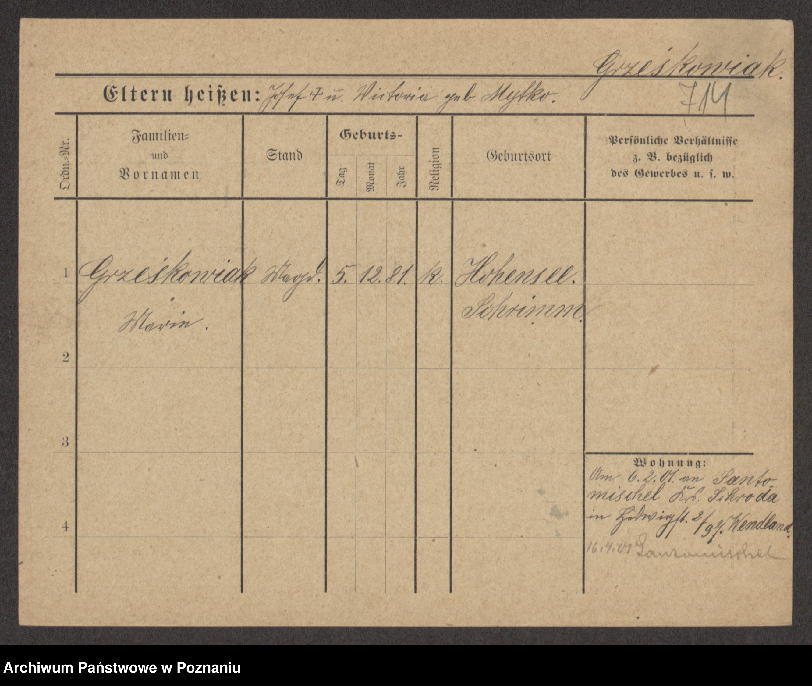 Grześkowiak z d.Wolinska I voto Bertrand, Wilhelmina