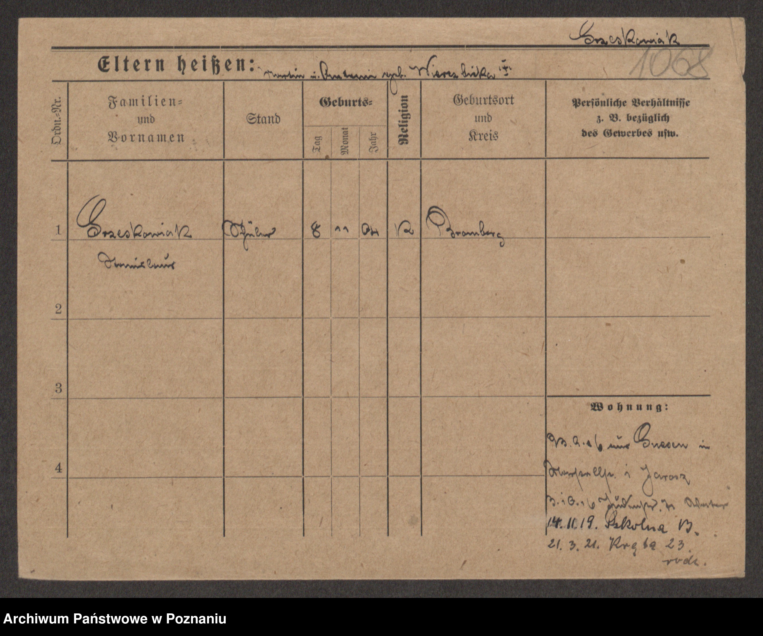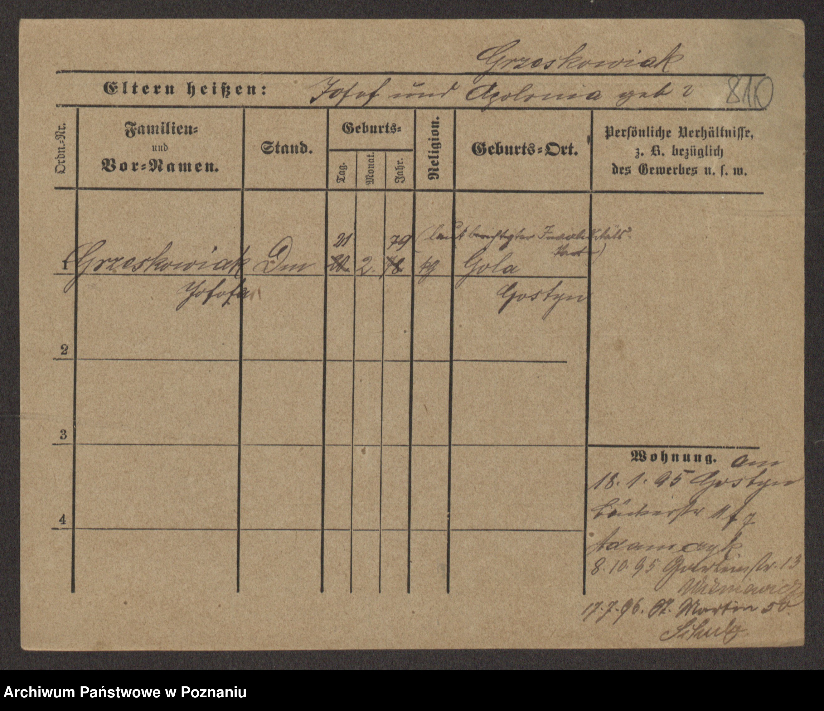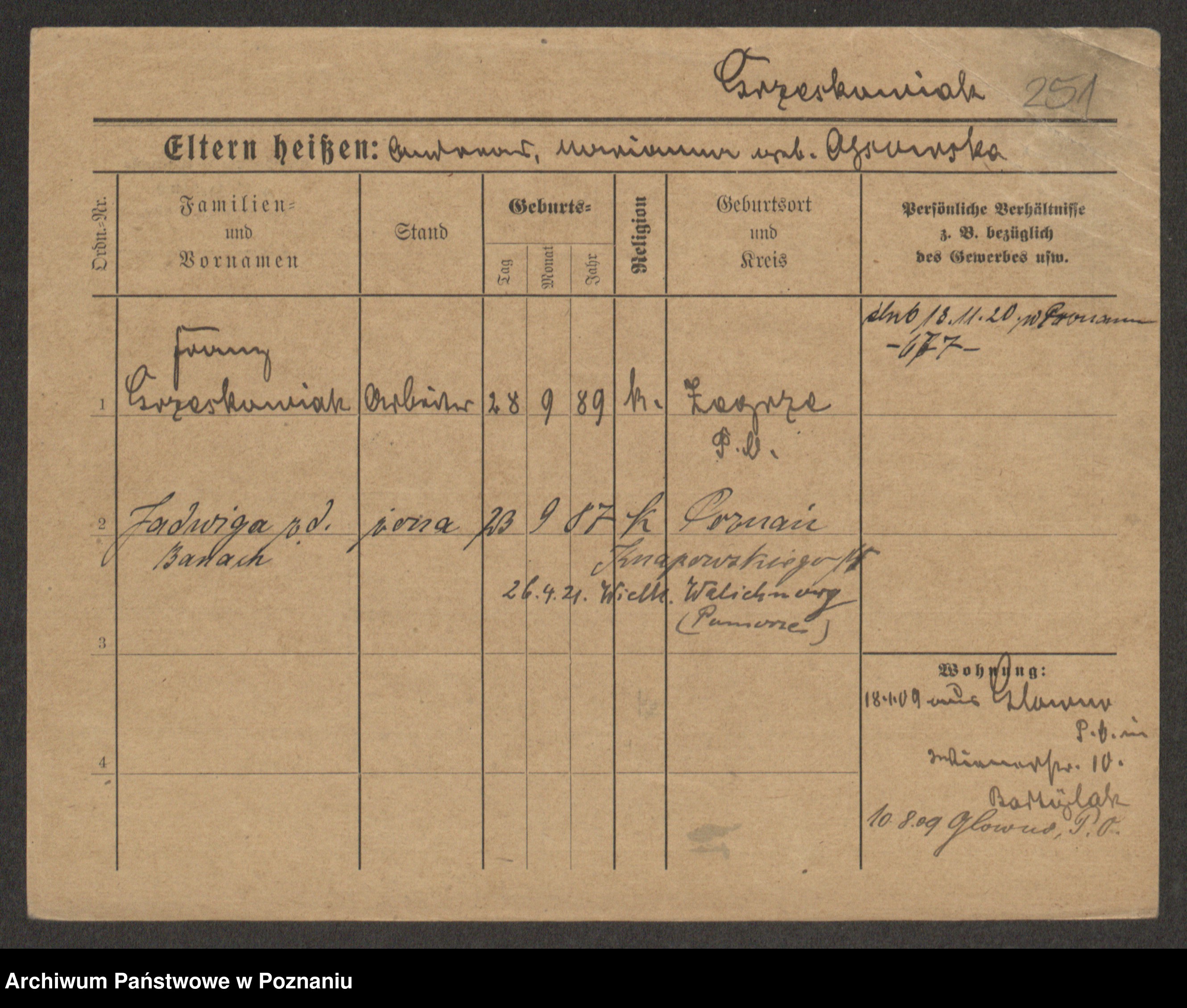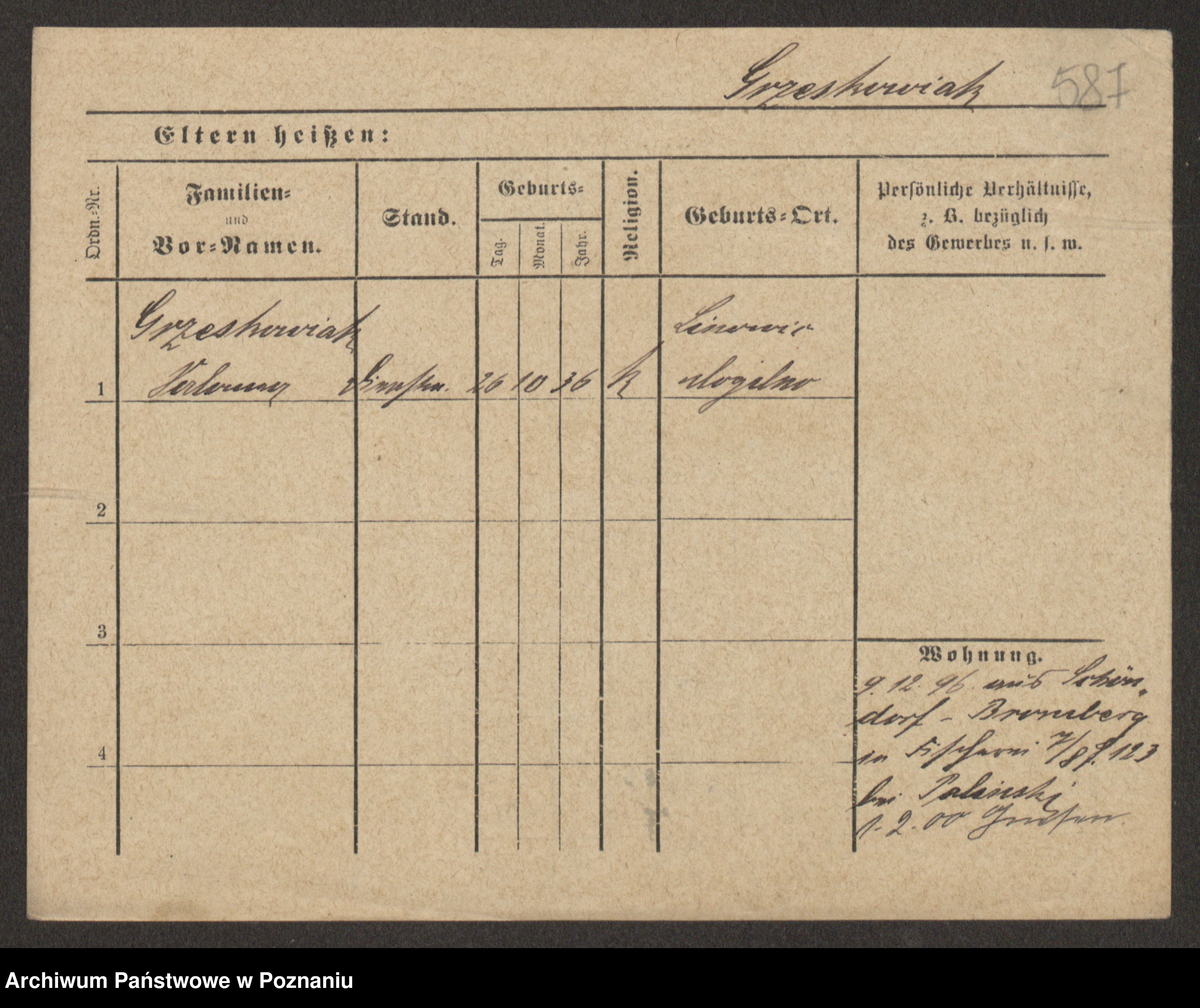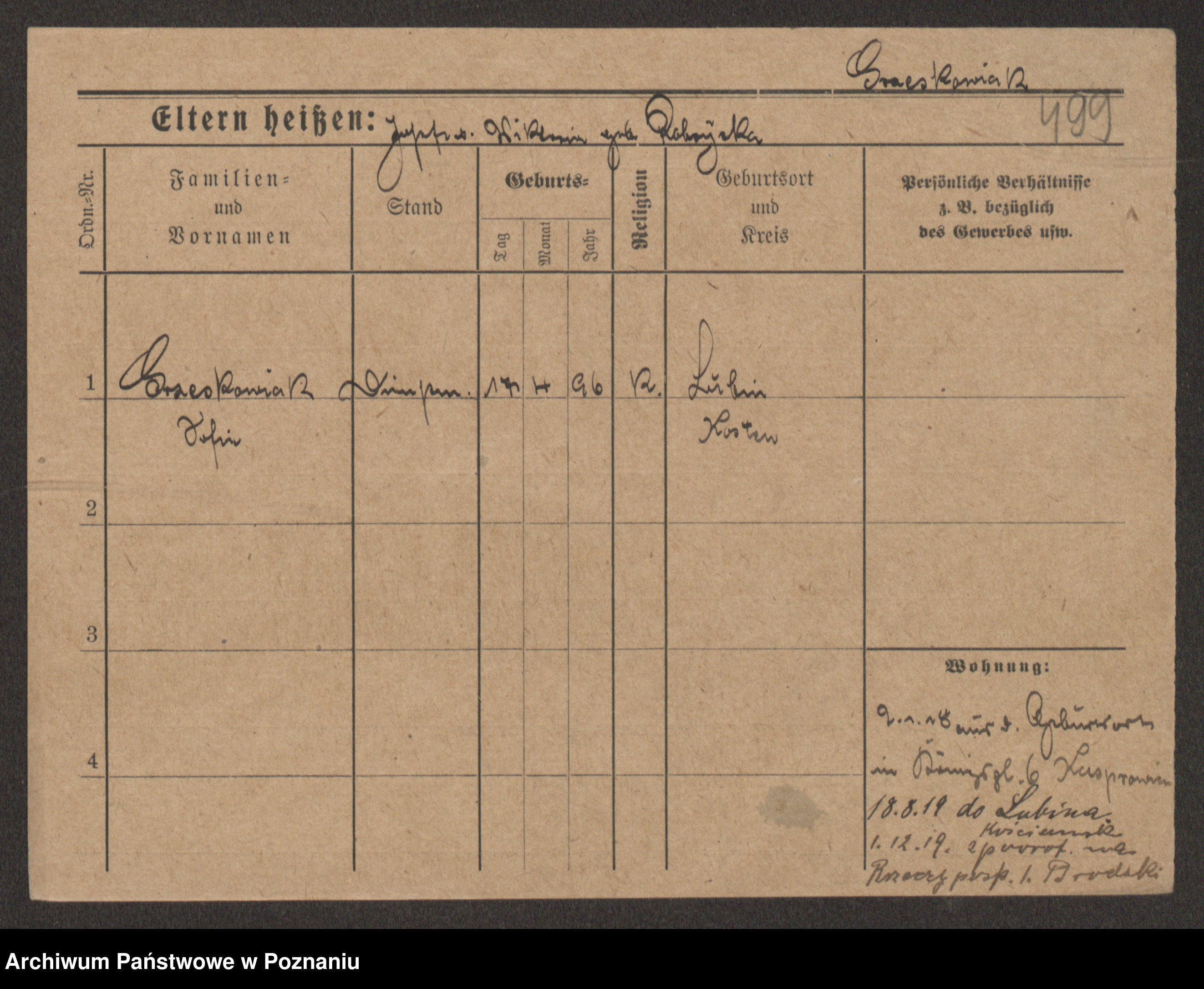Grześkowiak z d.Wolinska I voto Bertrand, Wilhelmina
