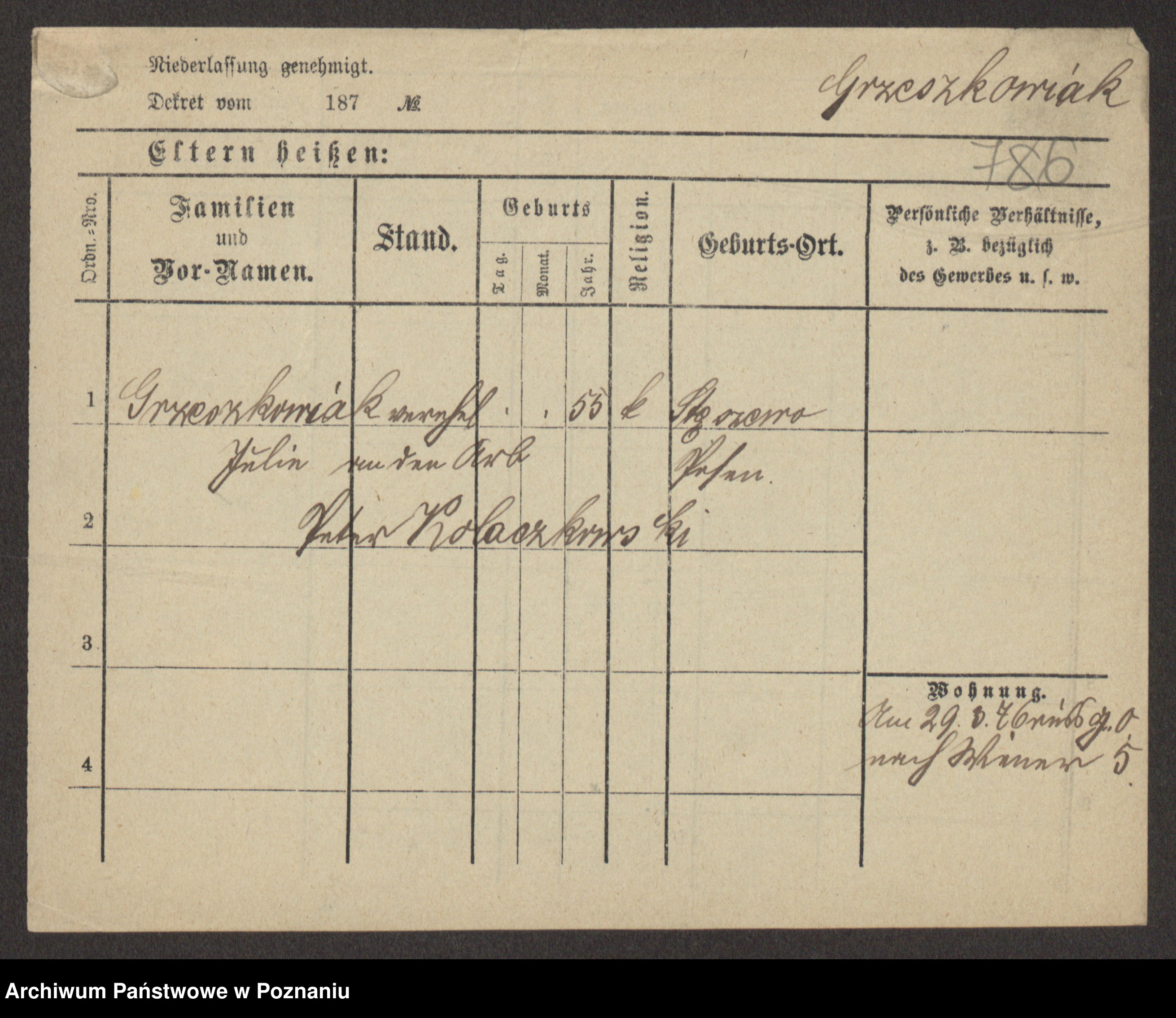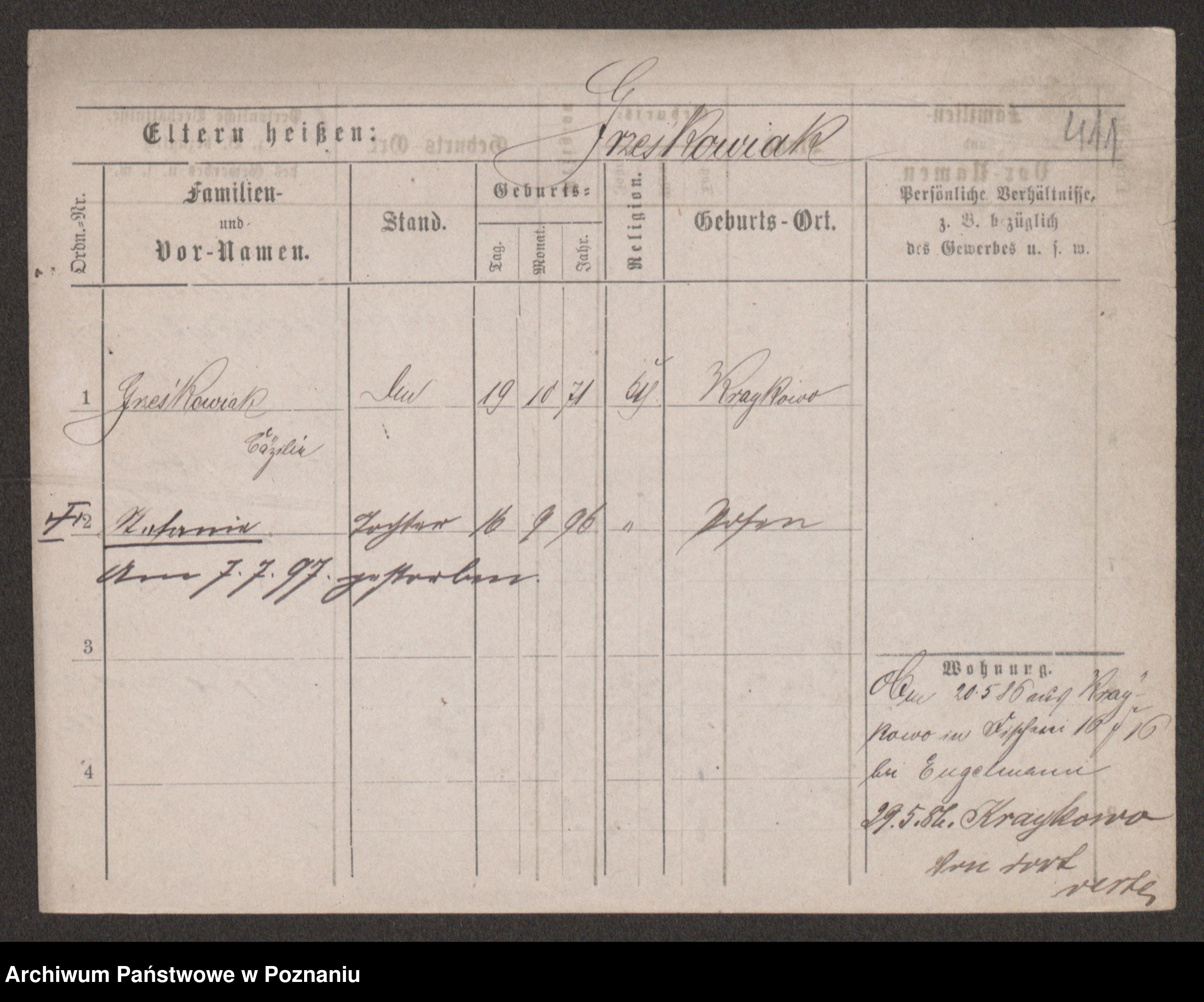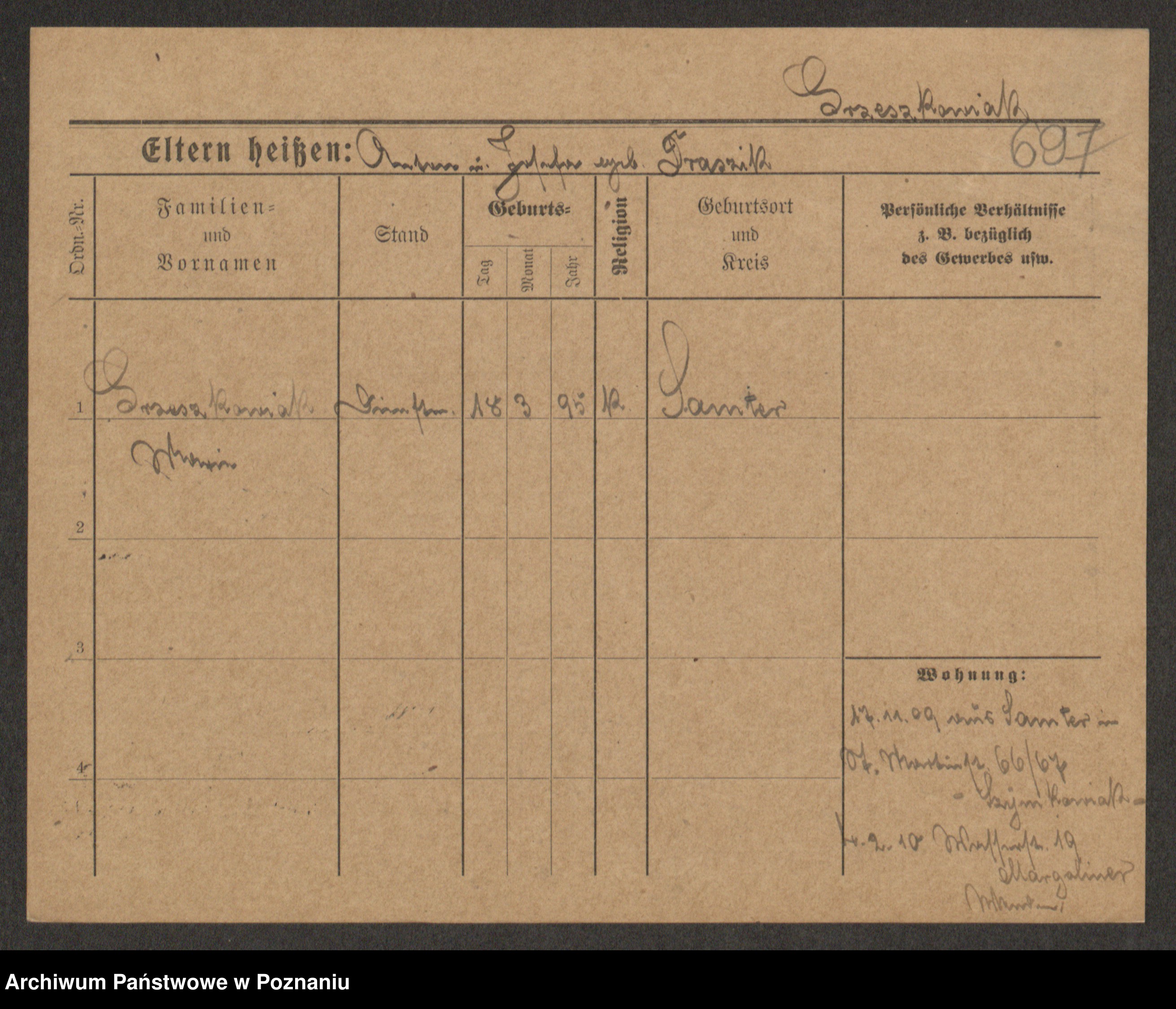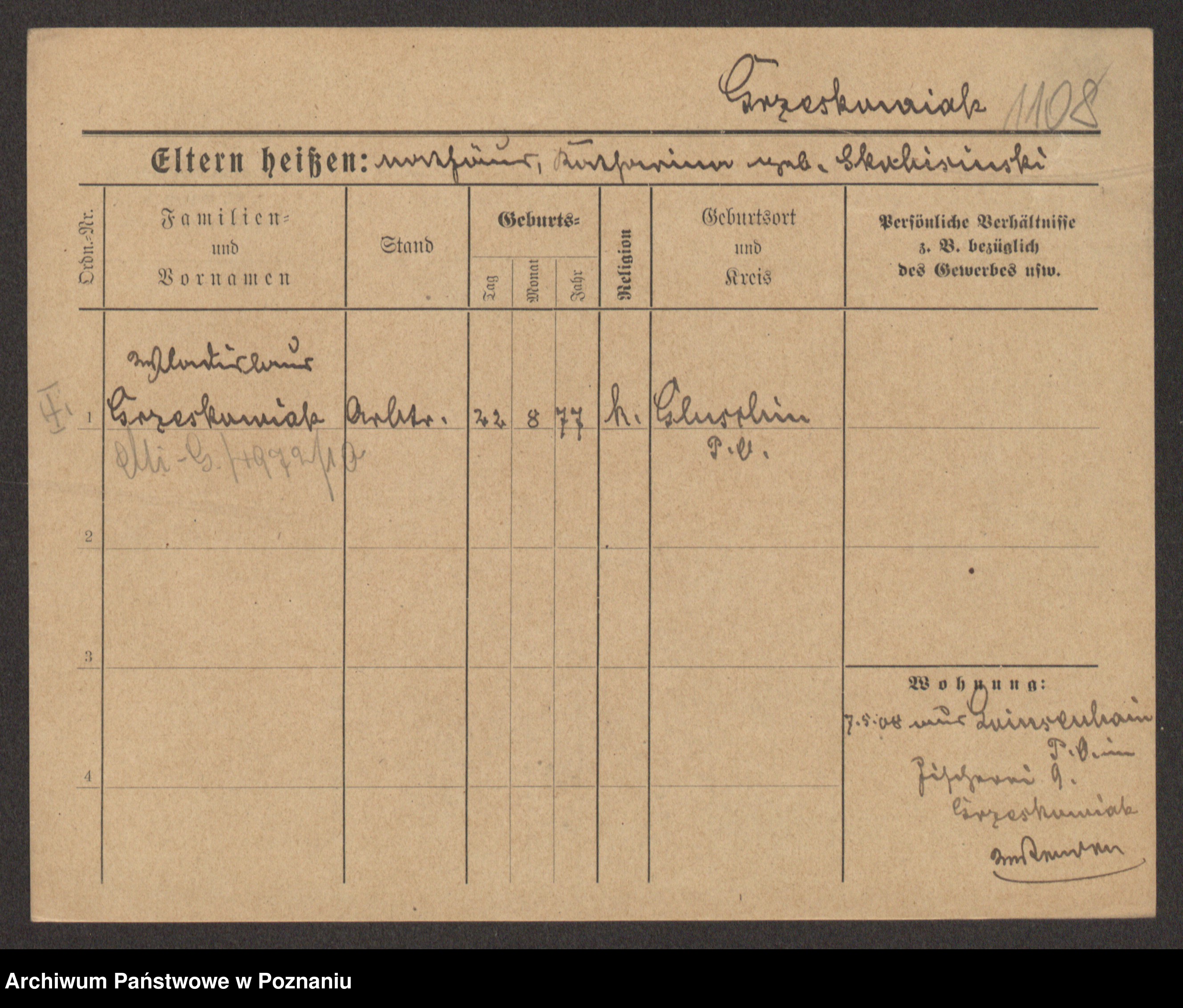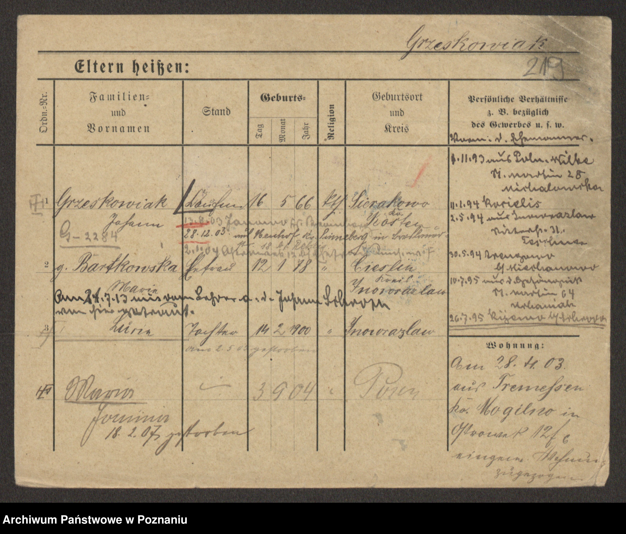 Grześkowiak z d.Wolinska I voto Bertrand, Wilhelmina