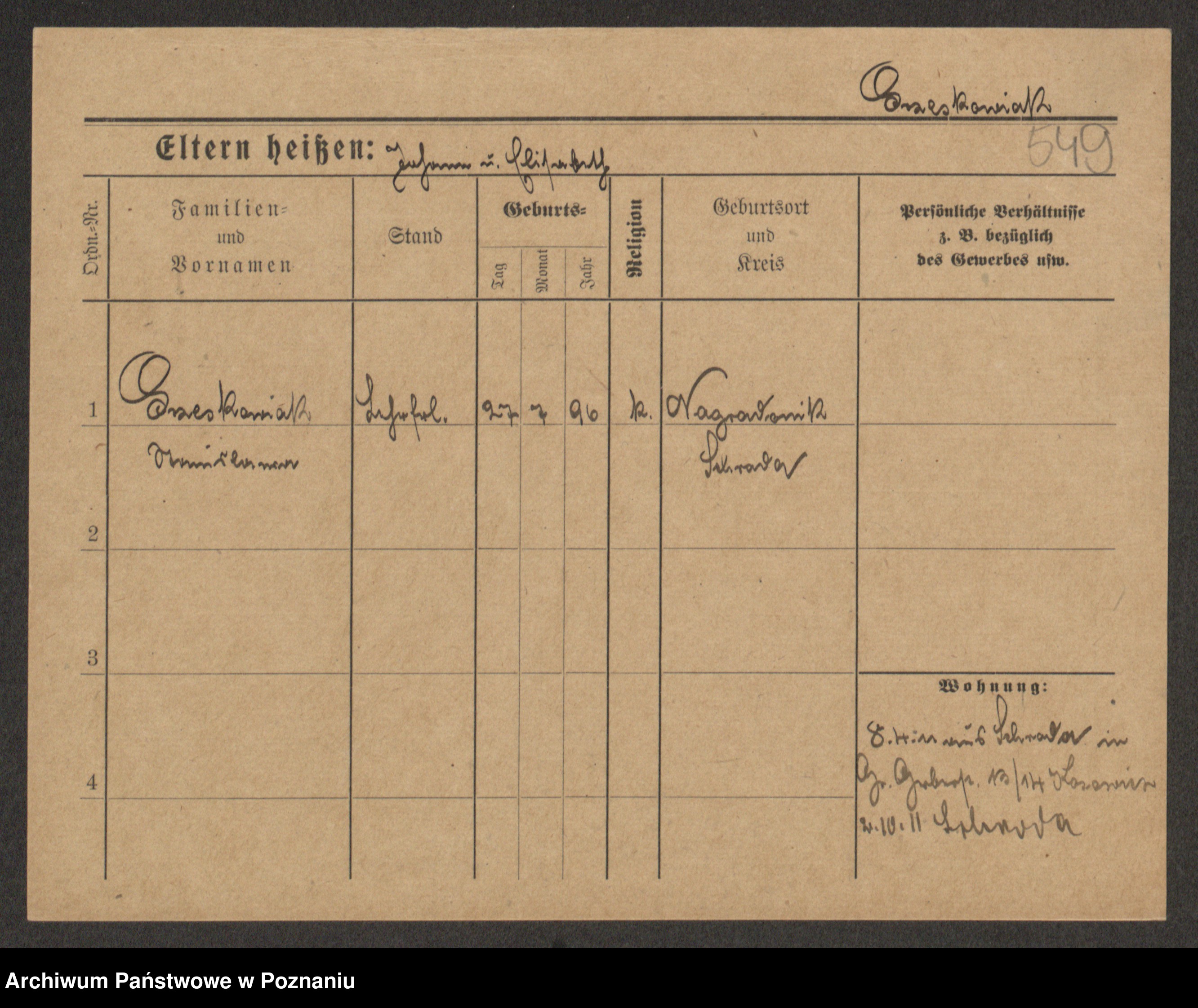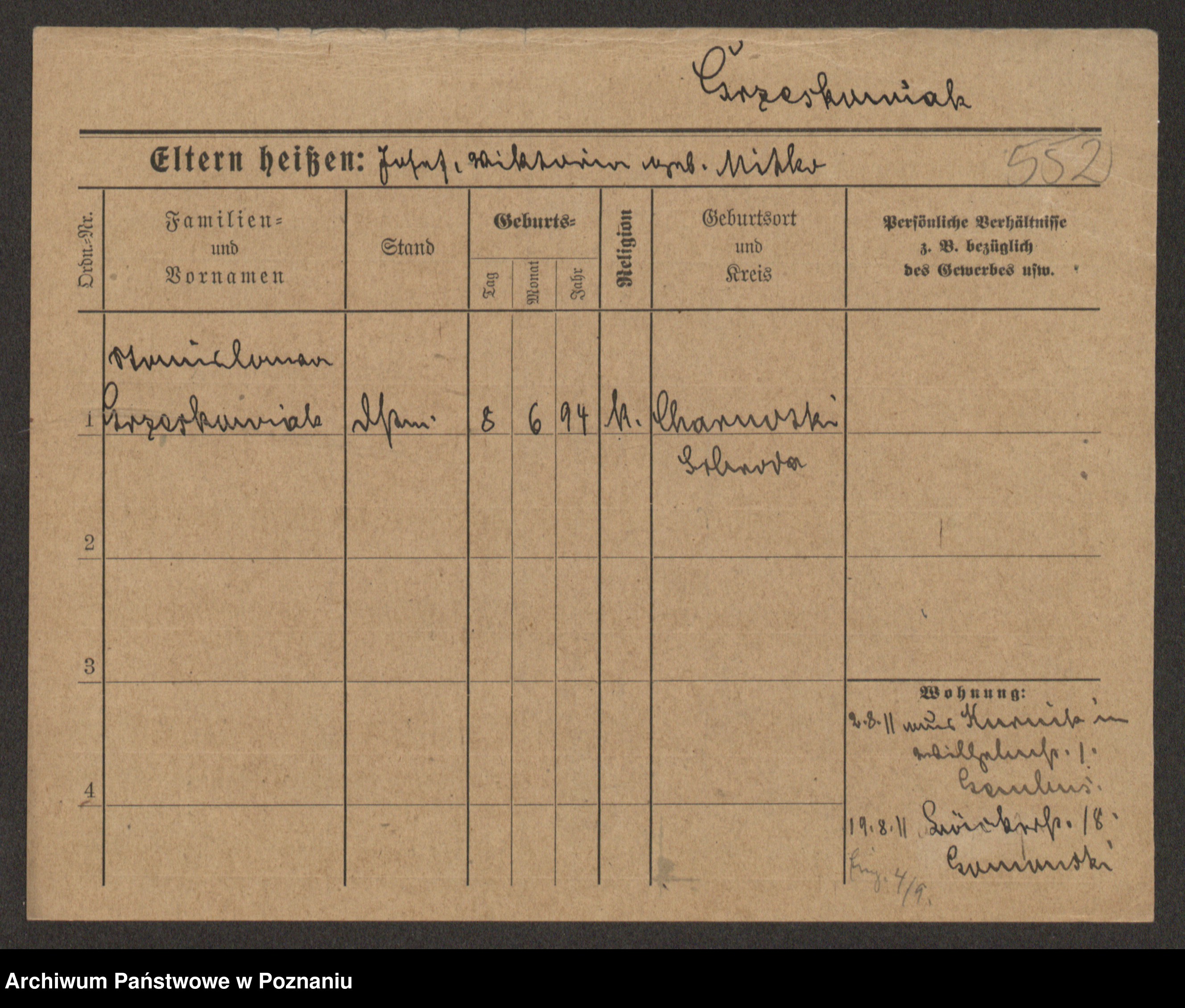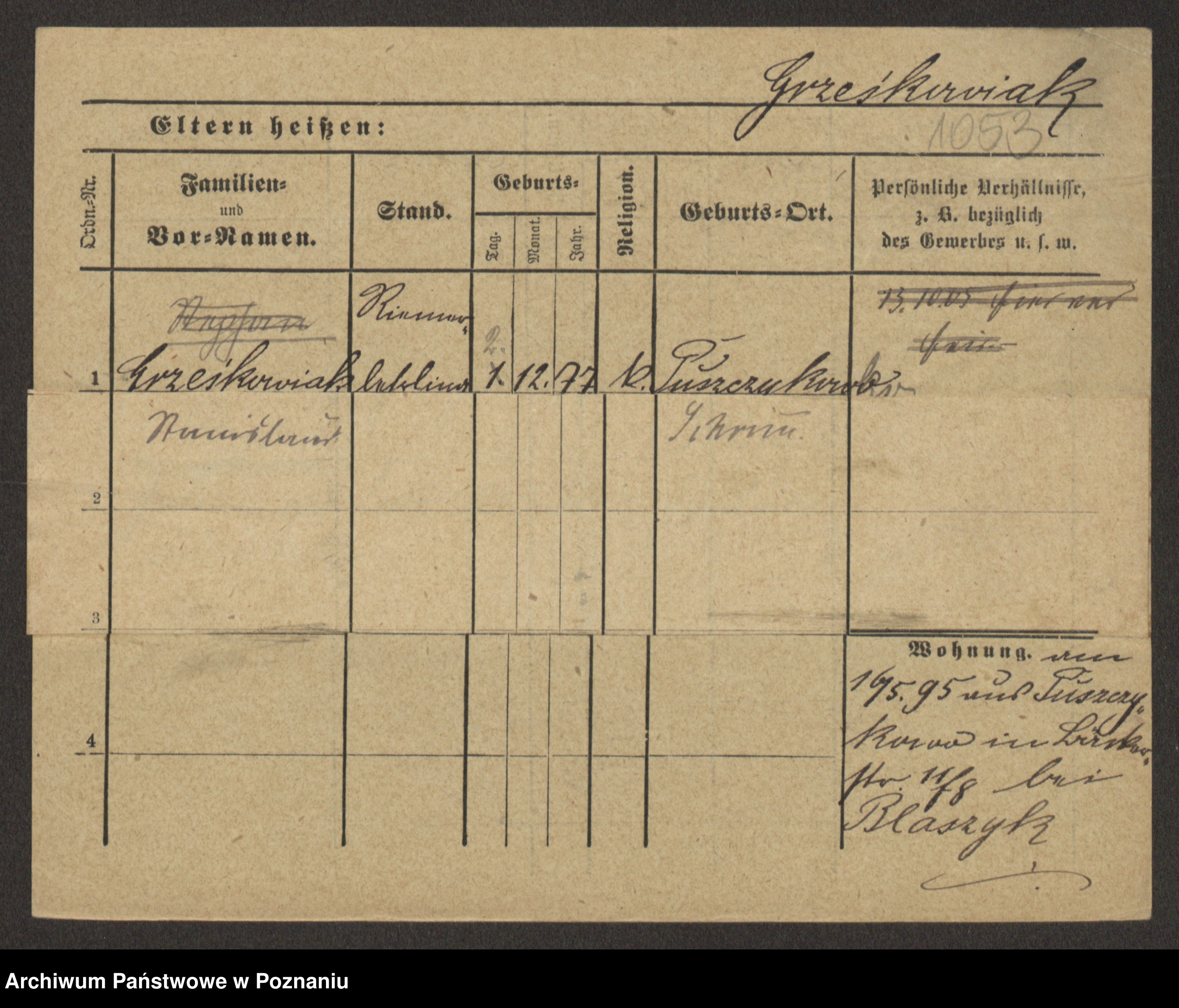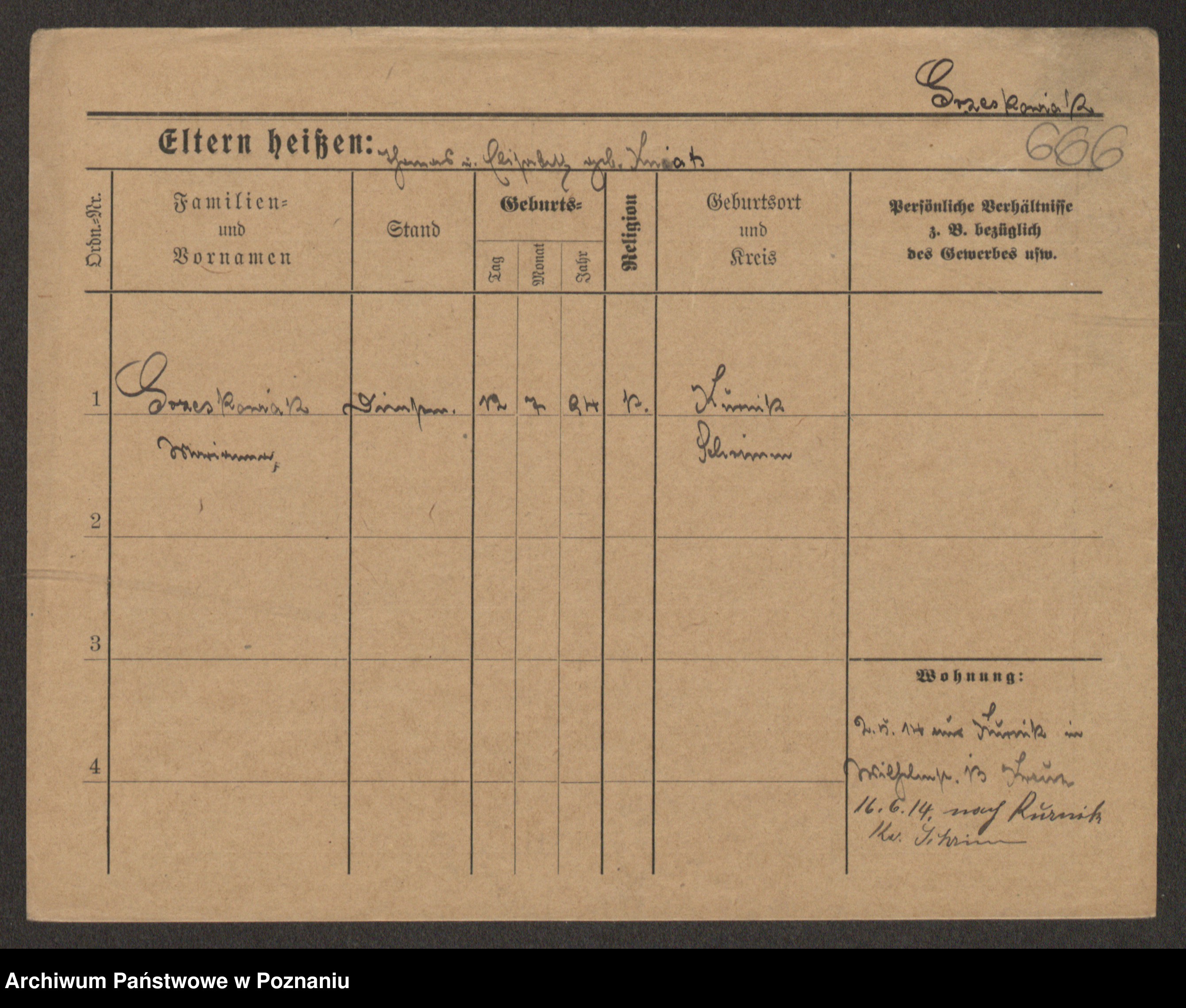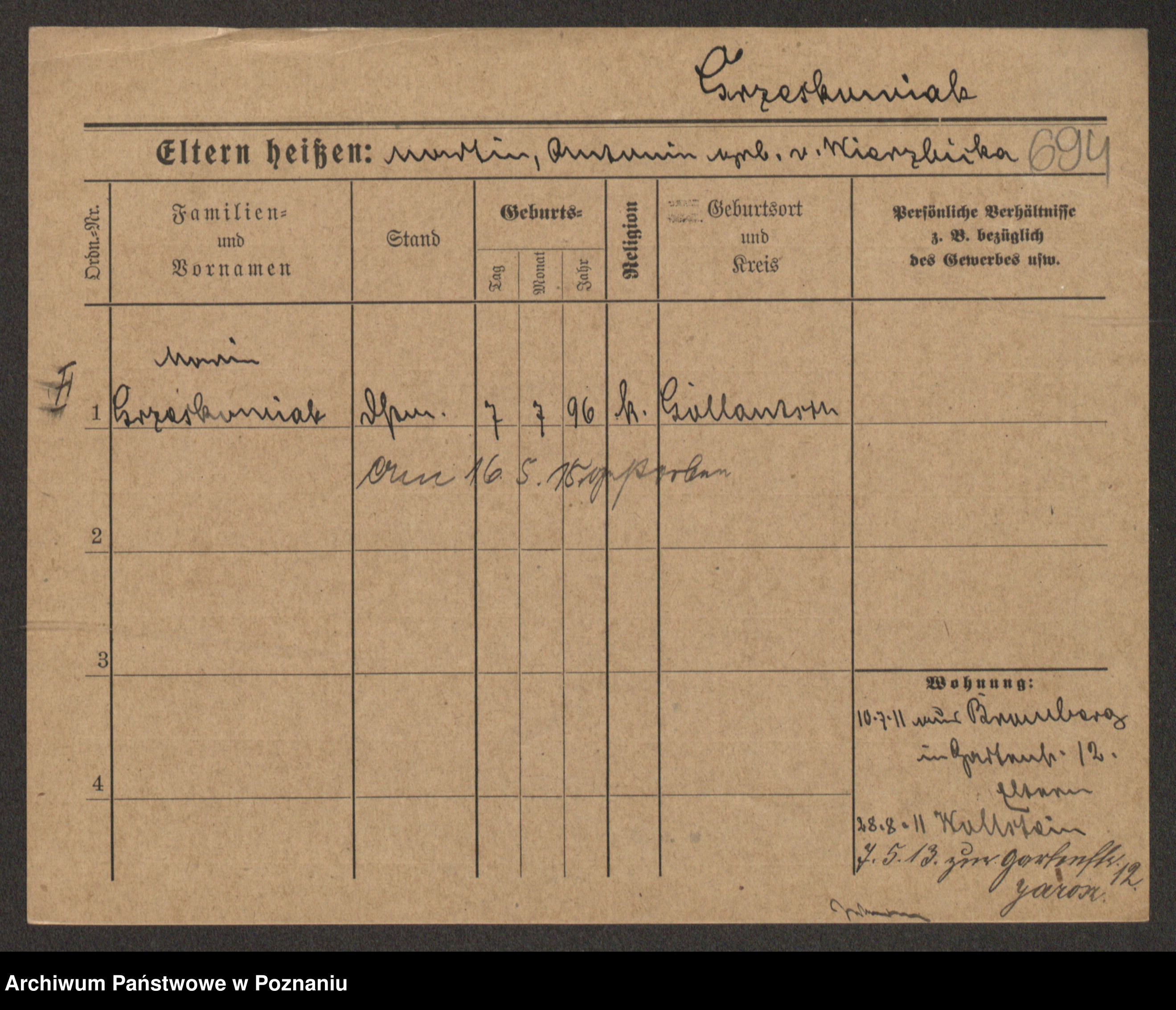 Grześkowiak z d.Wolinska I voto Bertrand, Wilhelmina