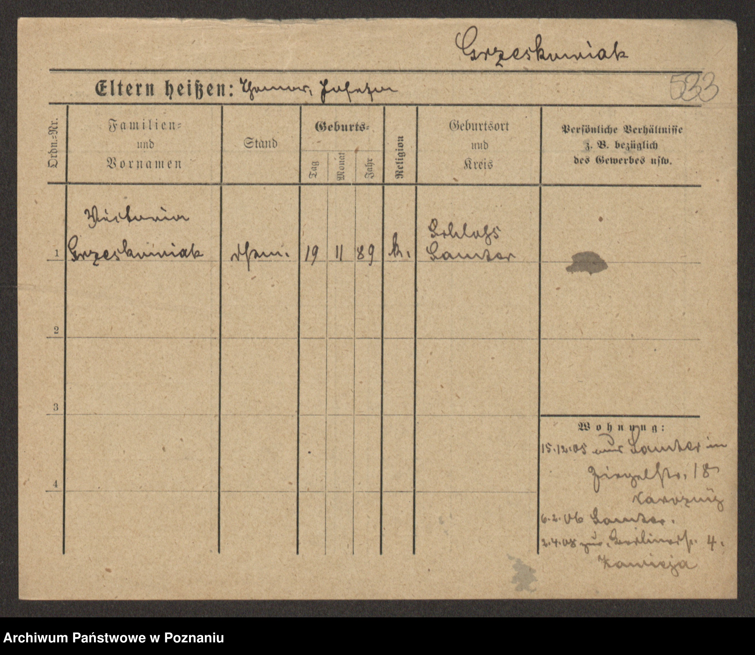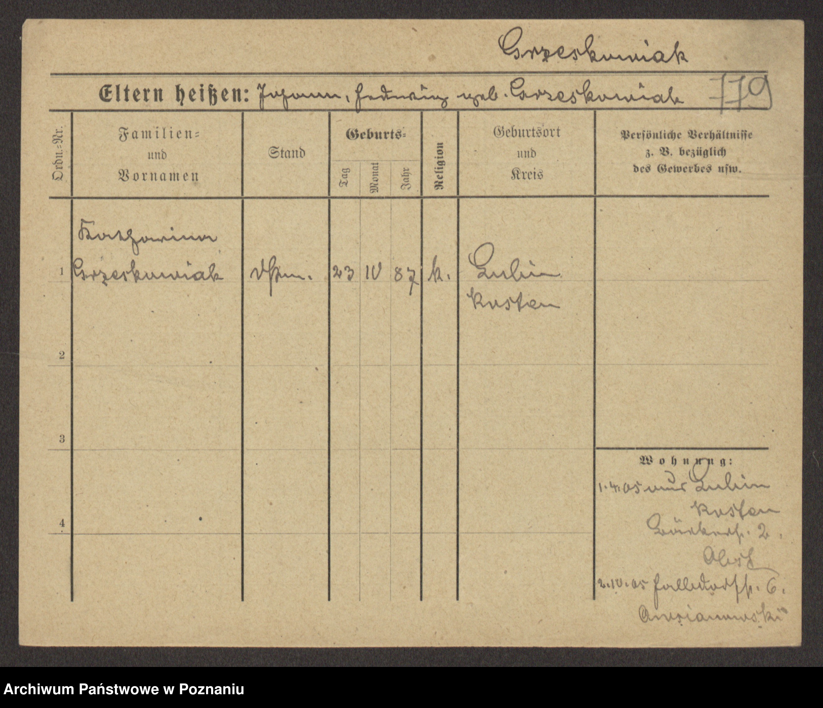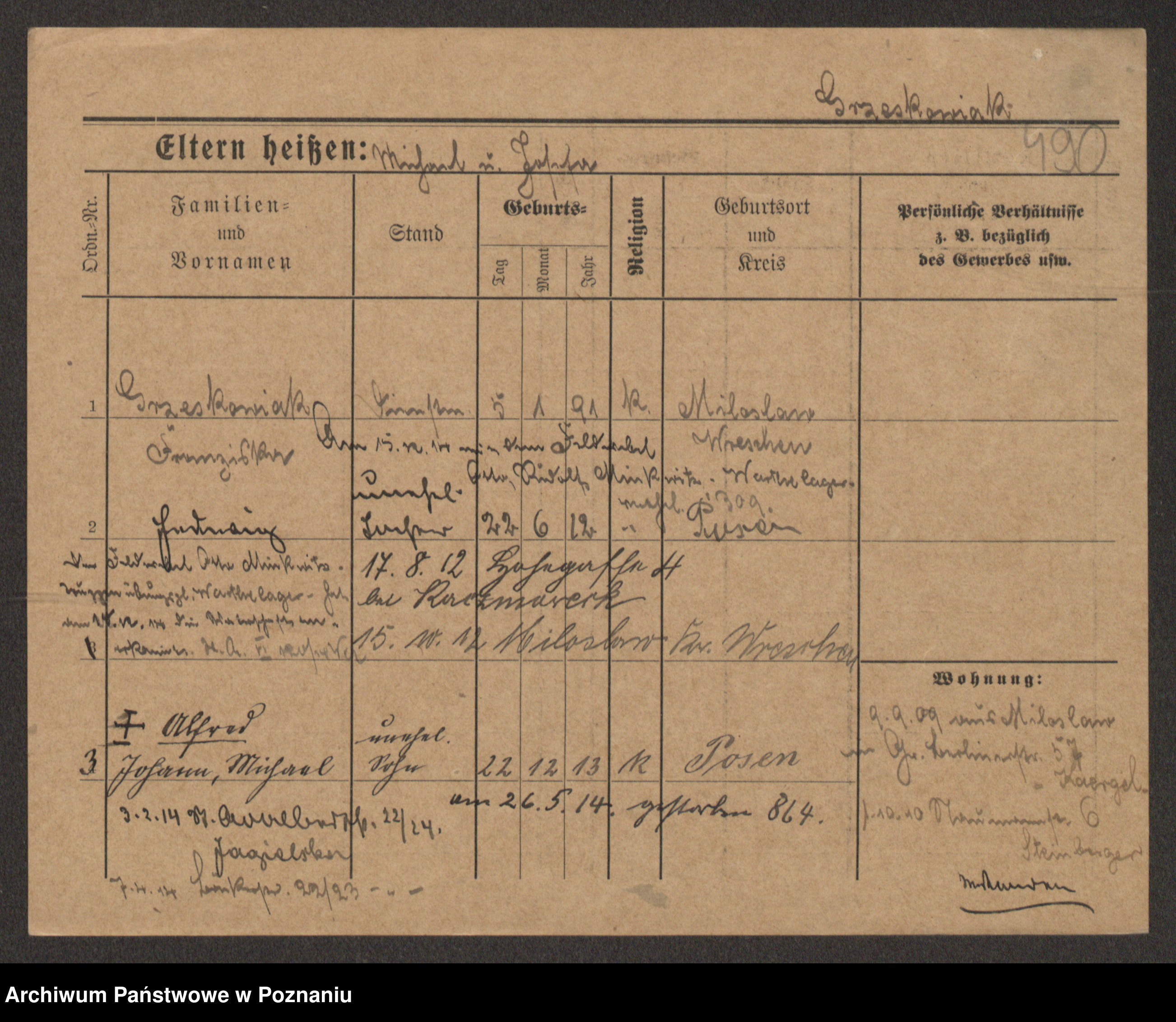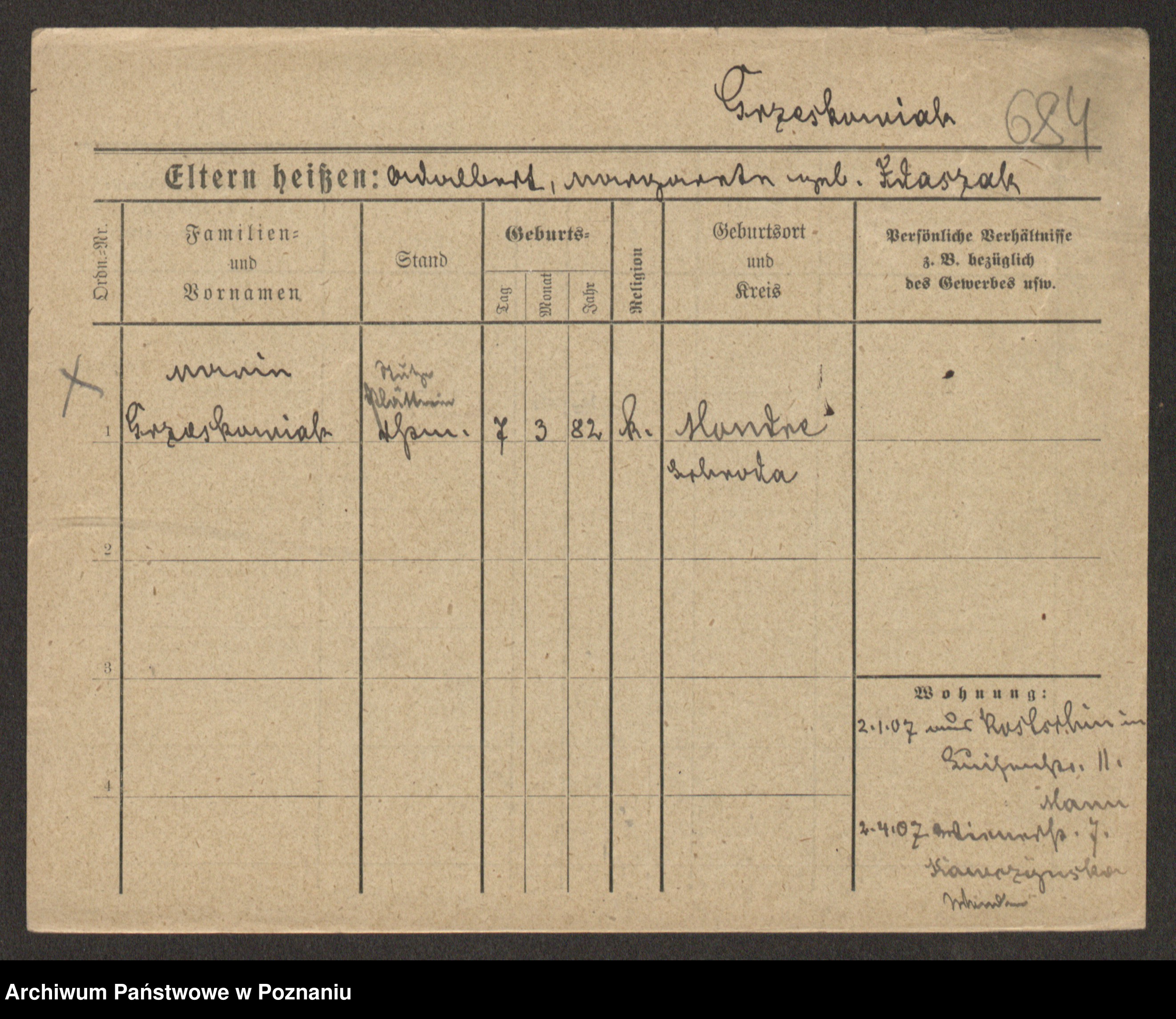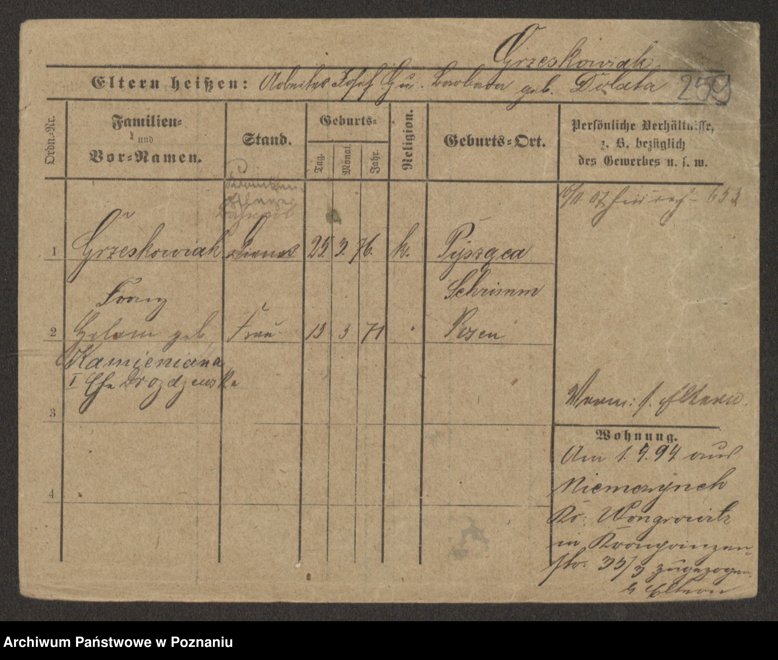 Grześkowiak z d.Wolinska I voto Bertrand, Wilhelmina