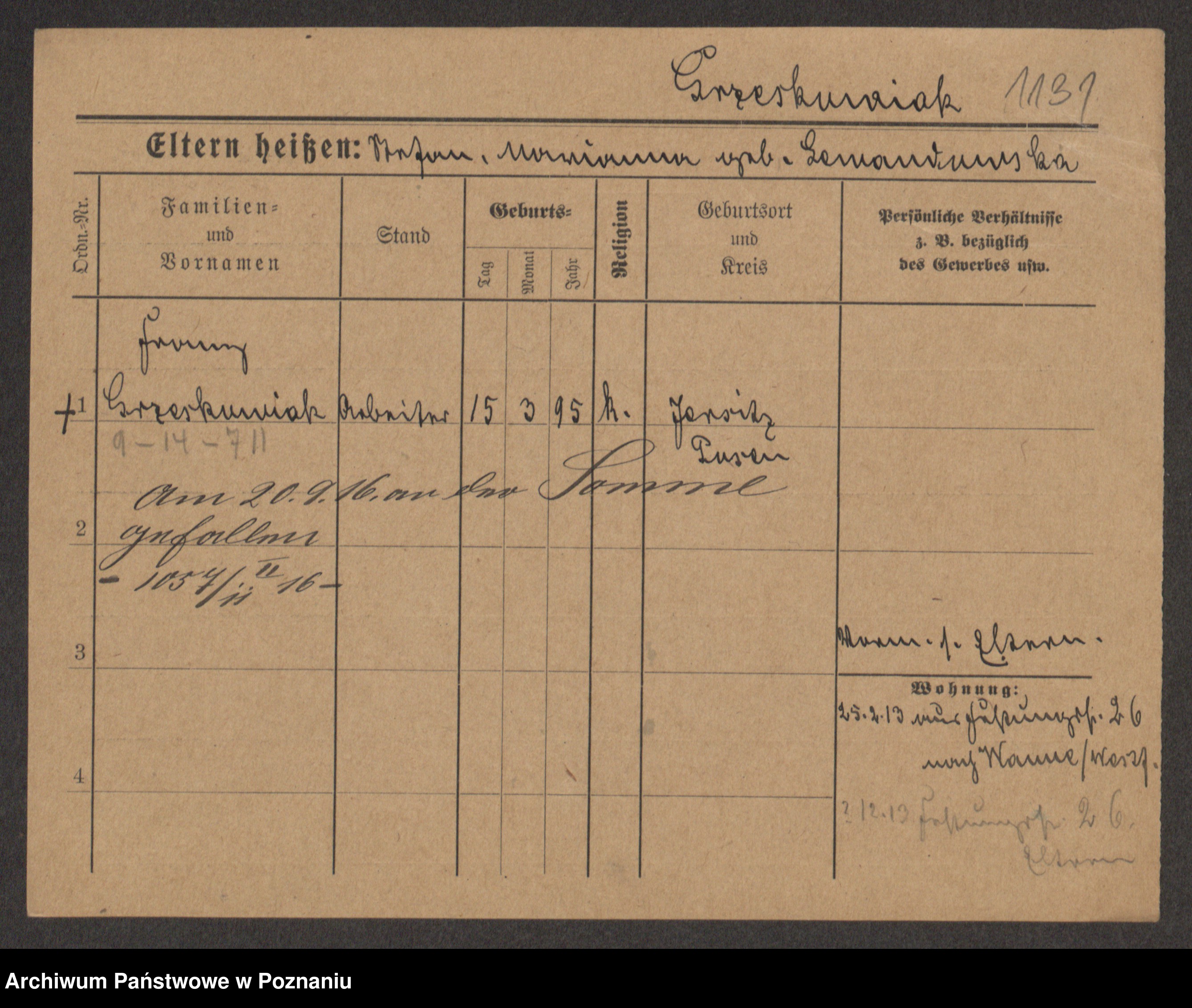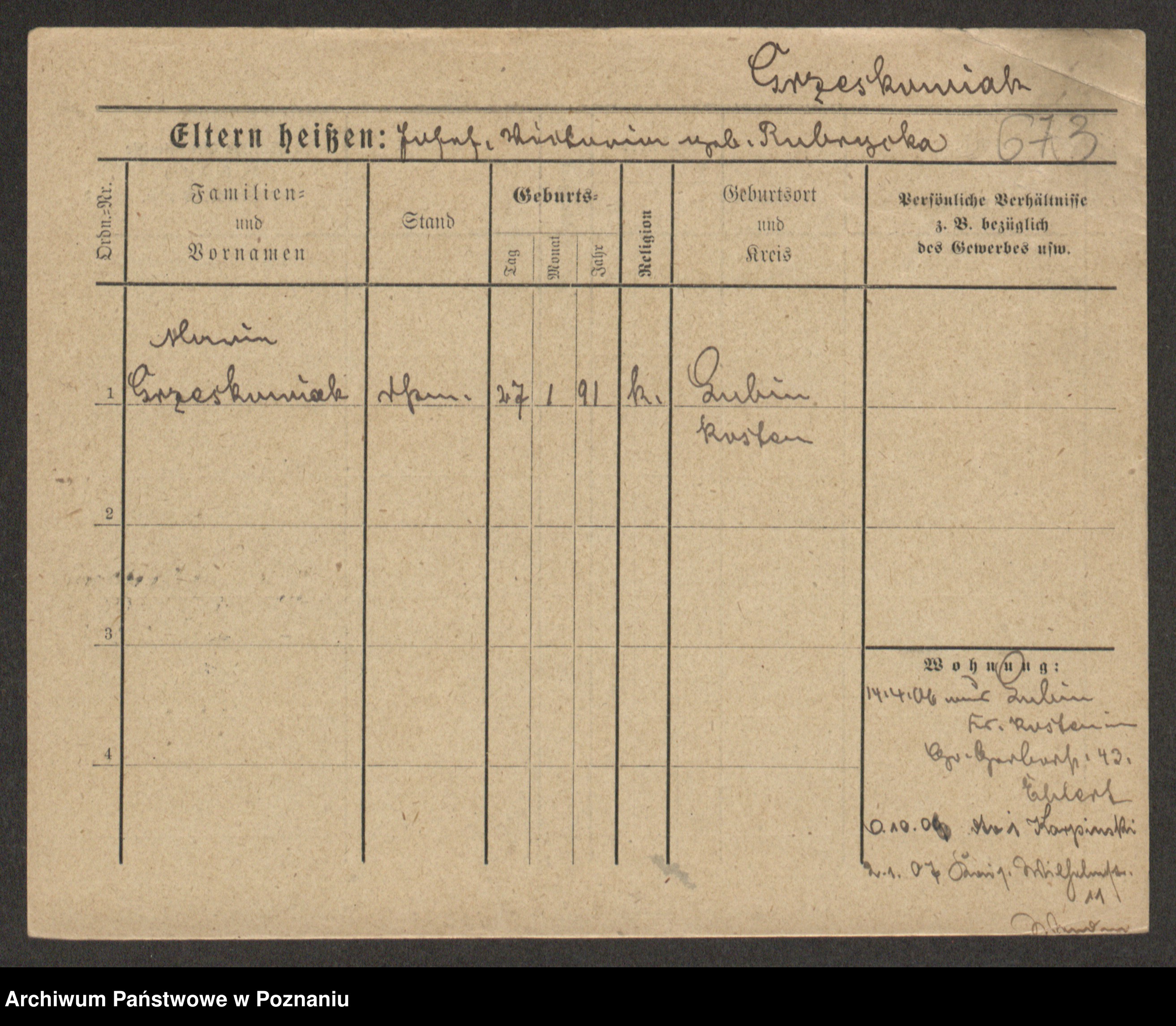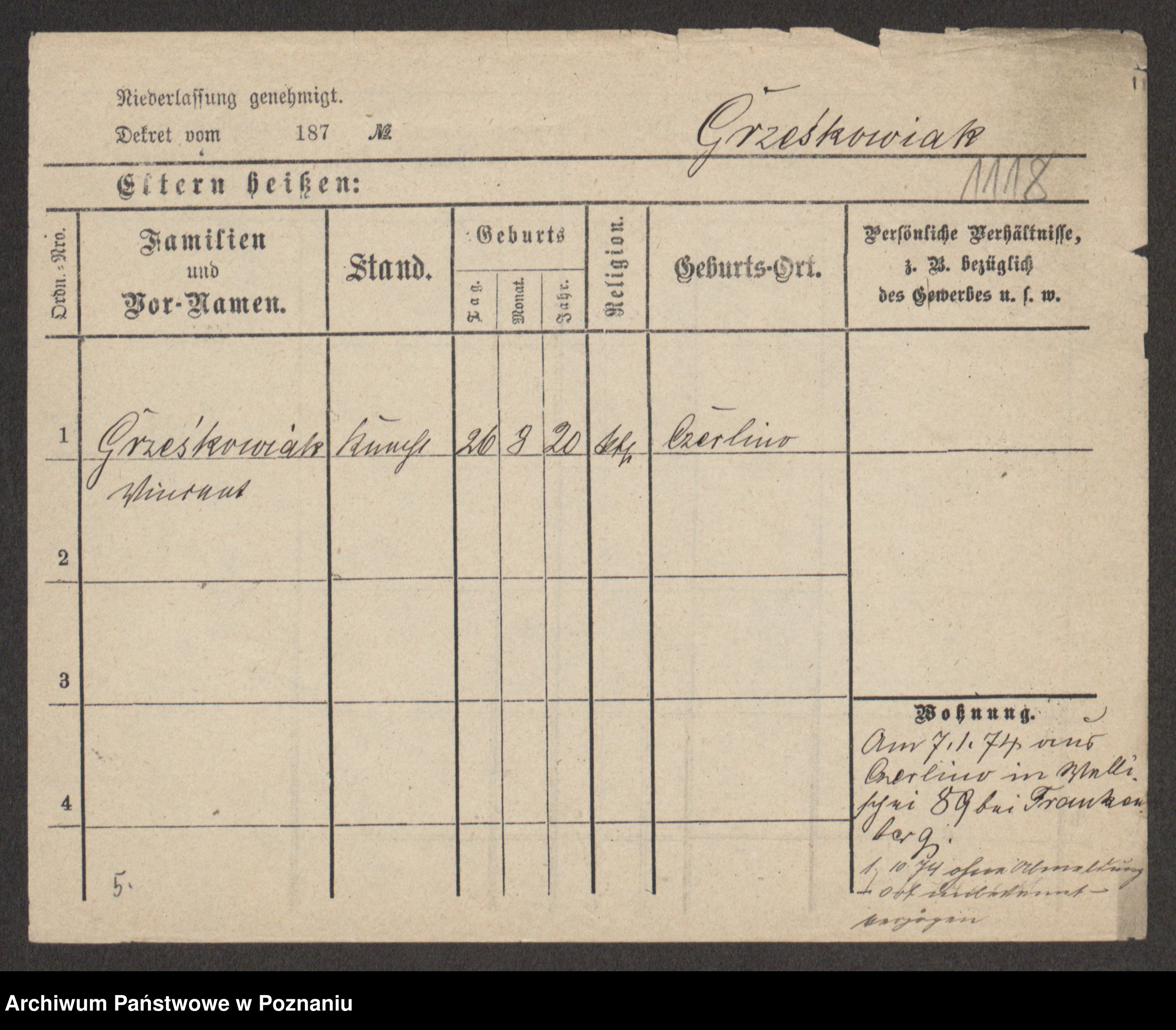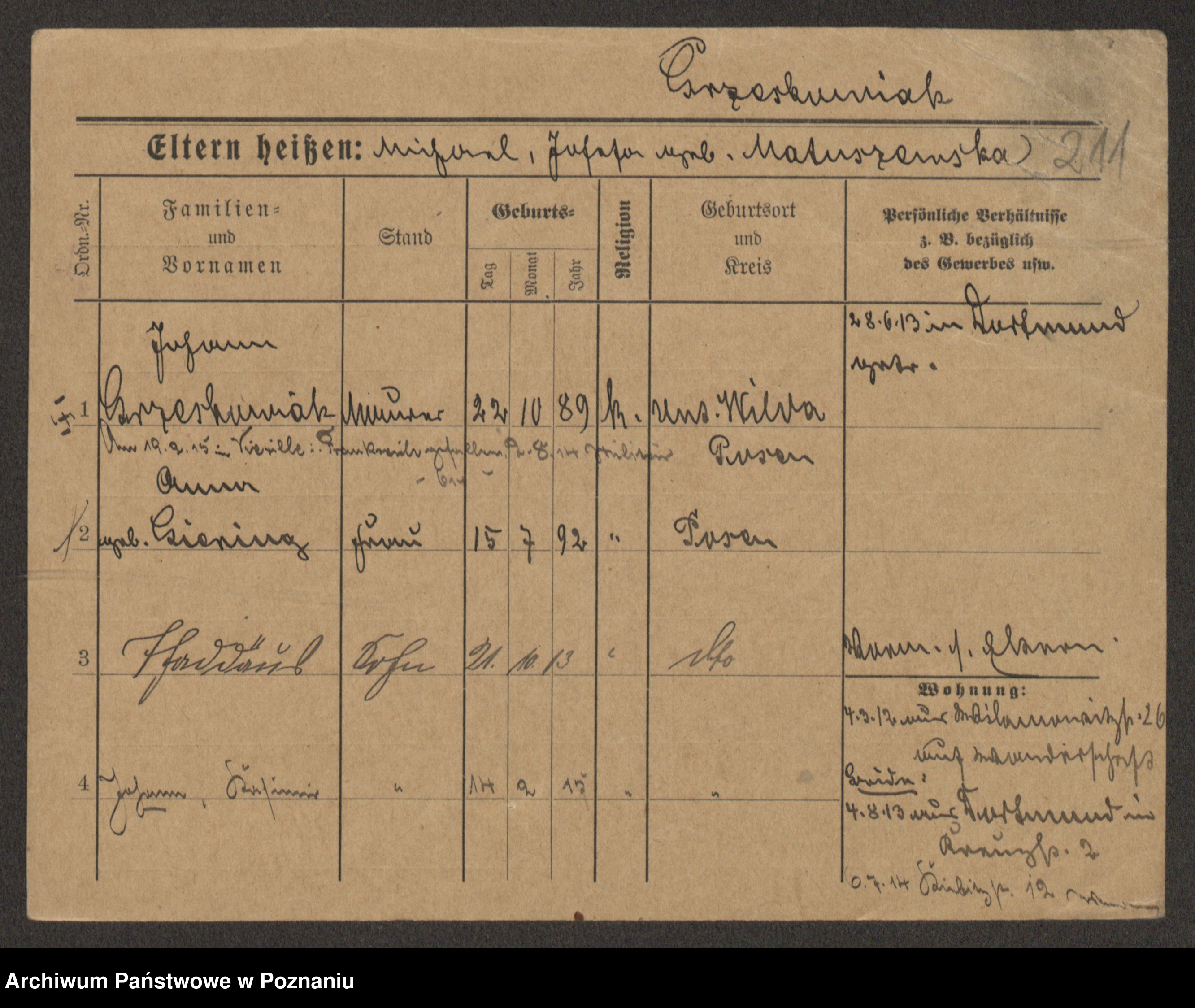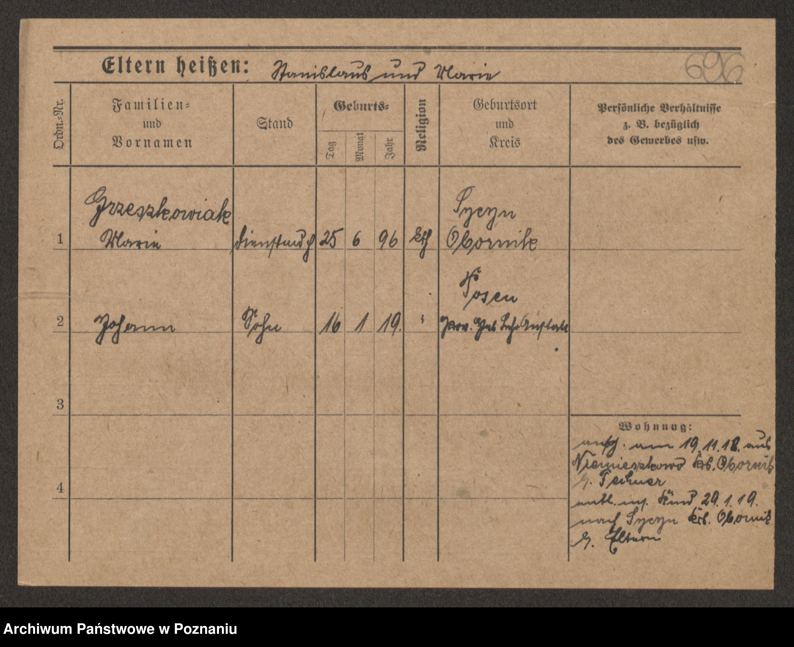 Grześkowiak z d.Wolinska I voto Bertrand, Wilhelmina