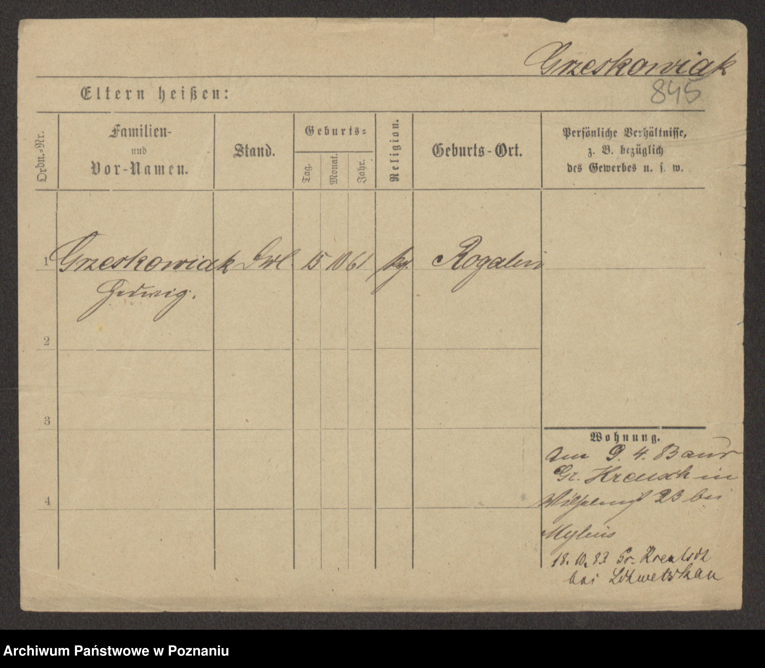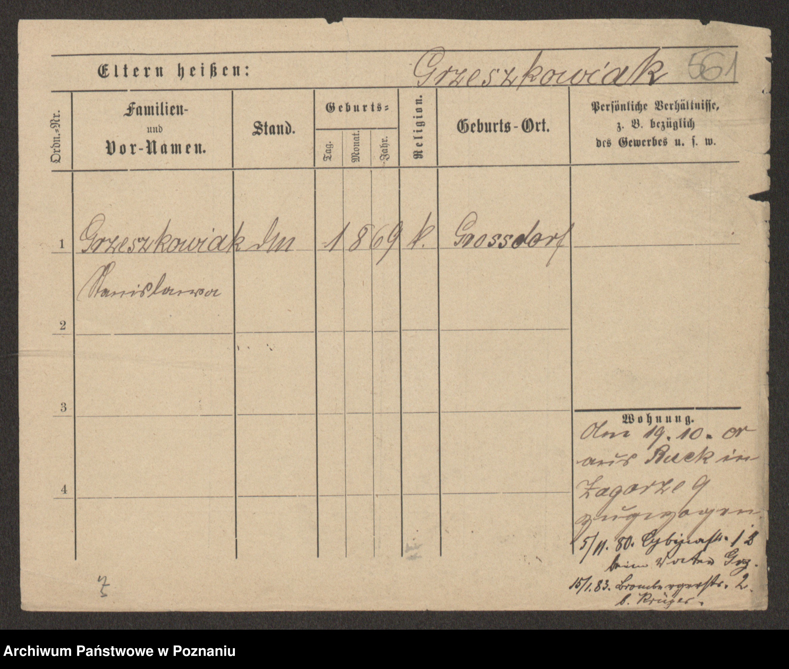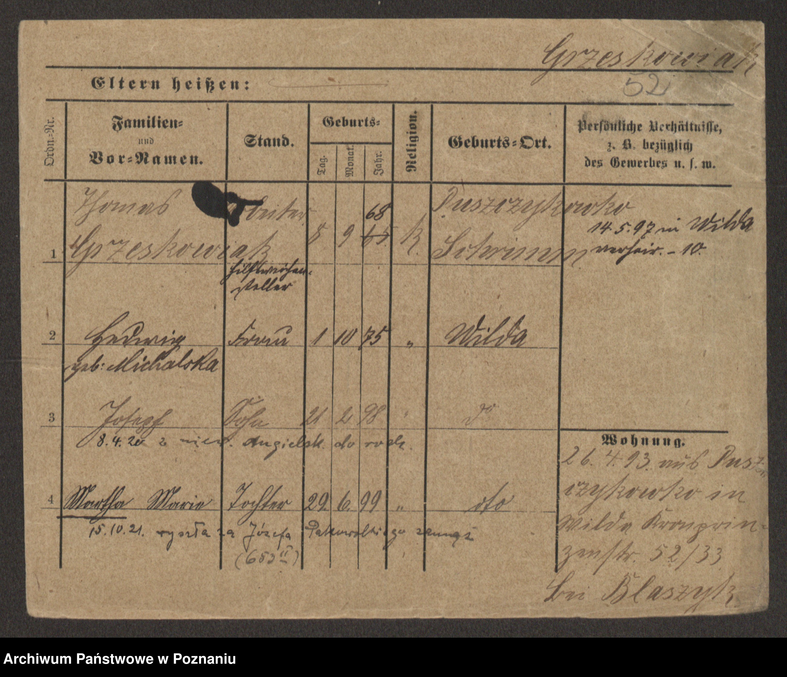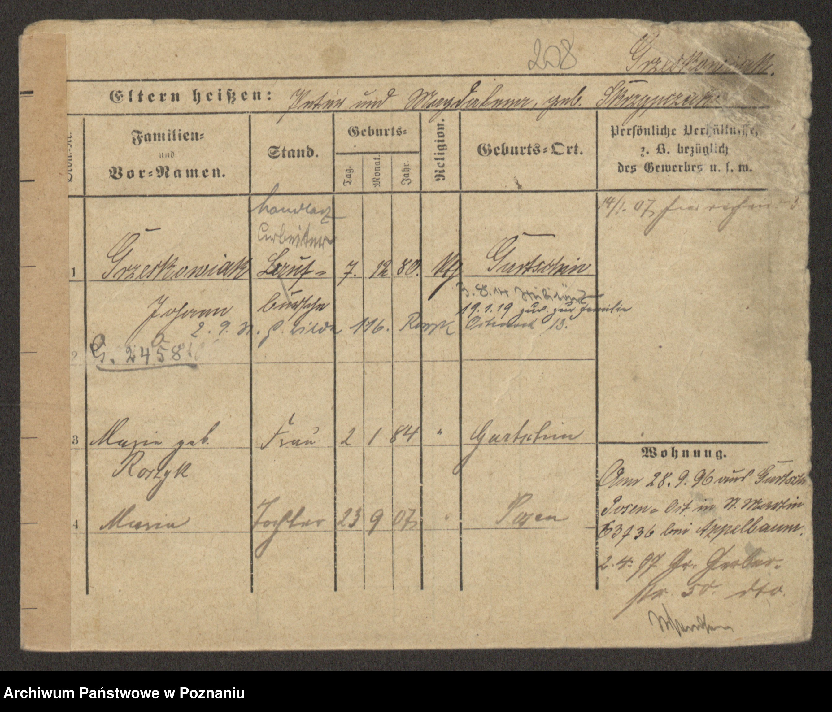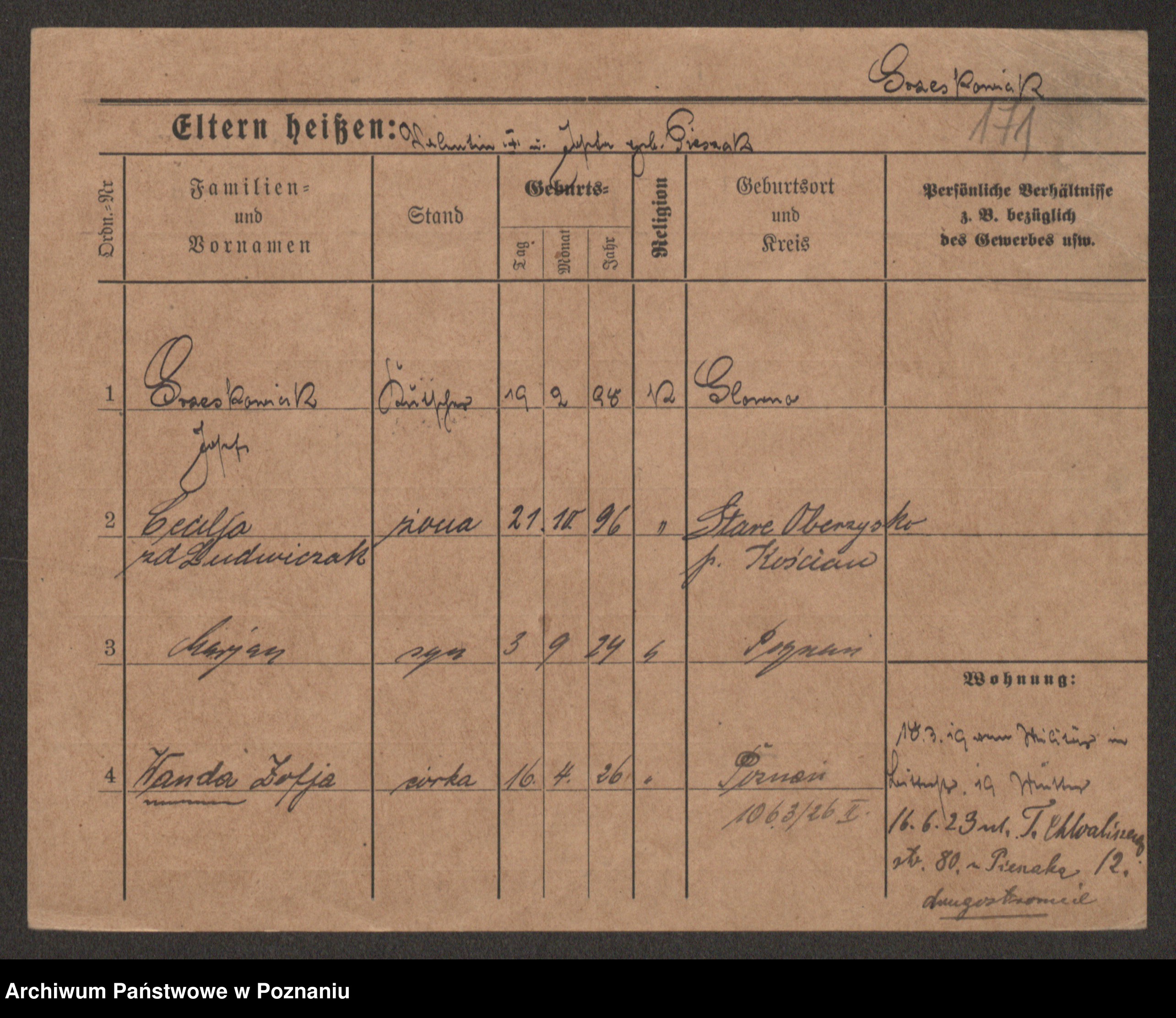 Grześkowiak z d.Wolinska I voto Bertrand, Wilhelmina