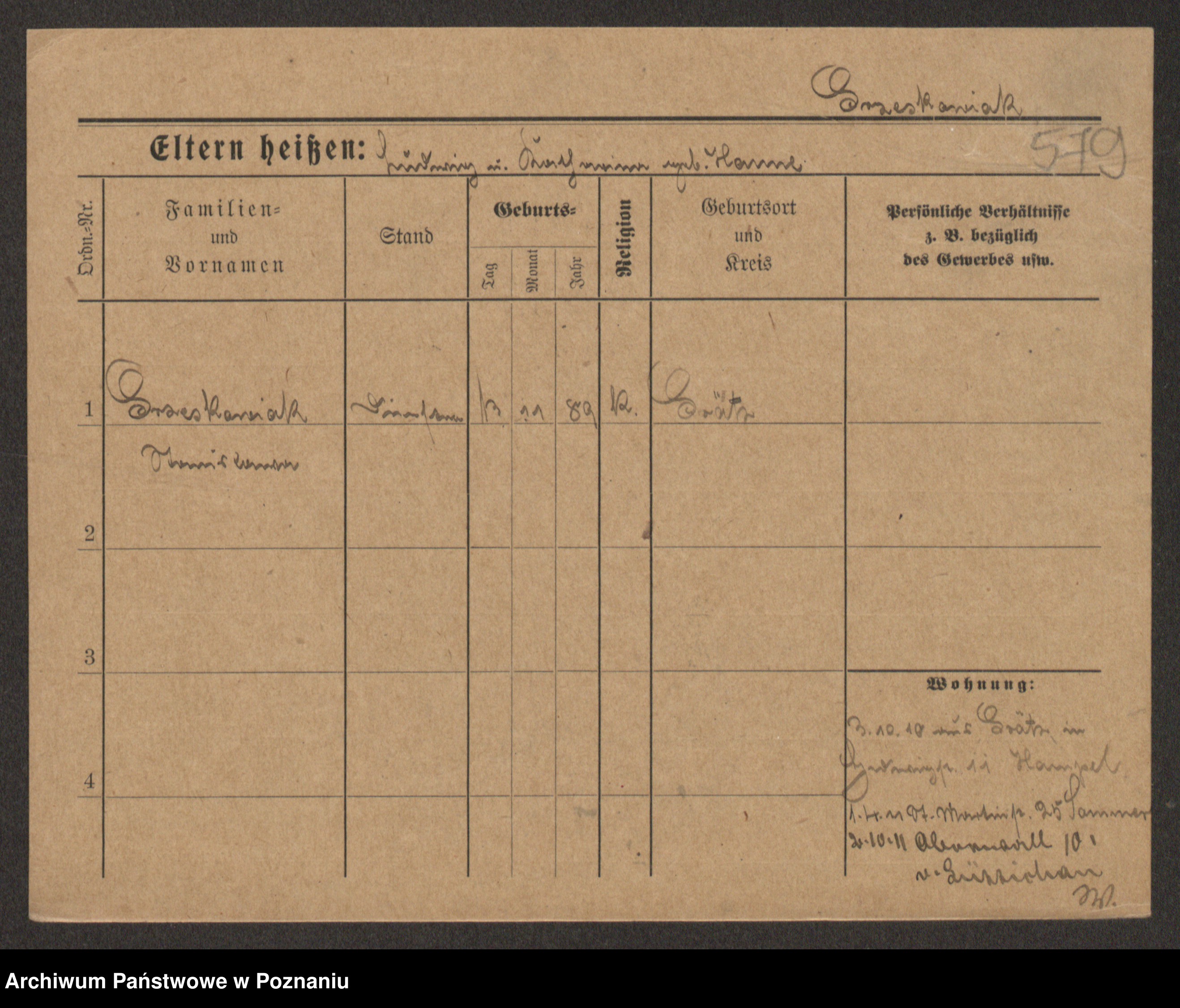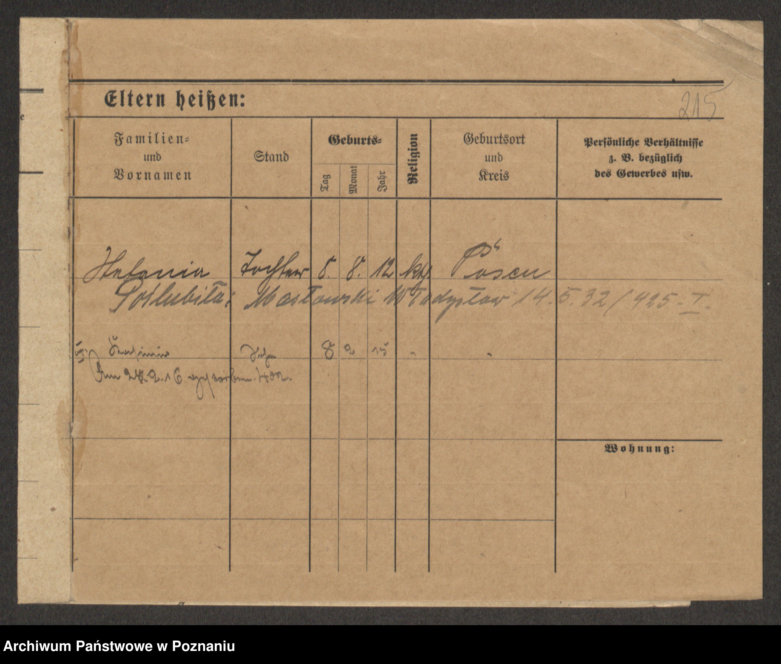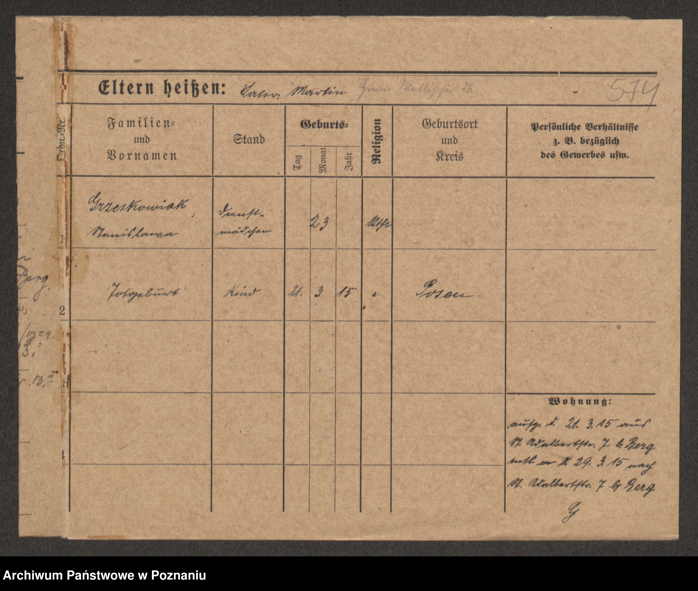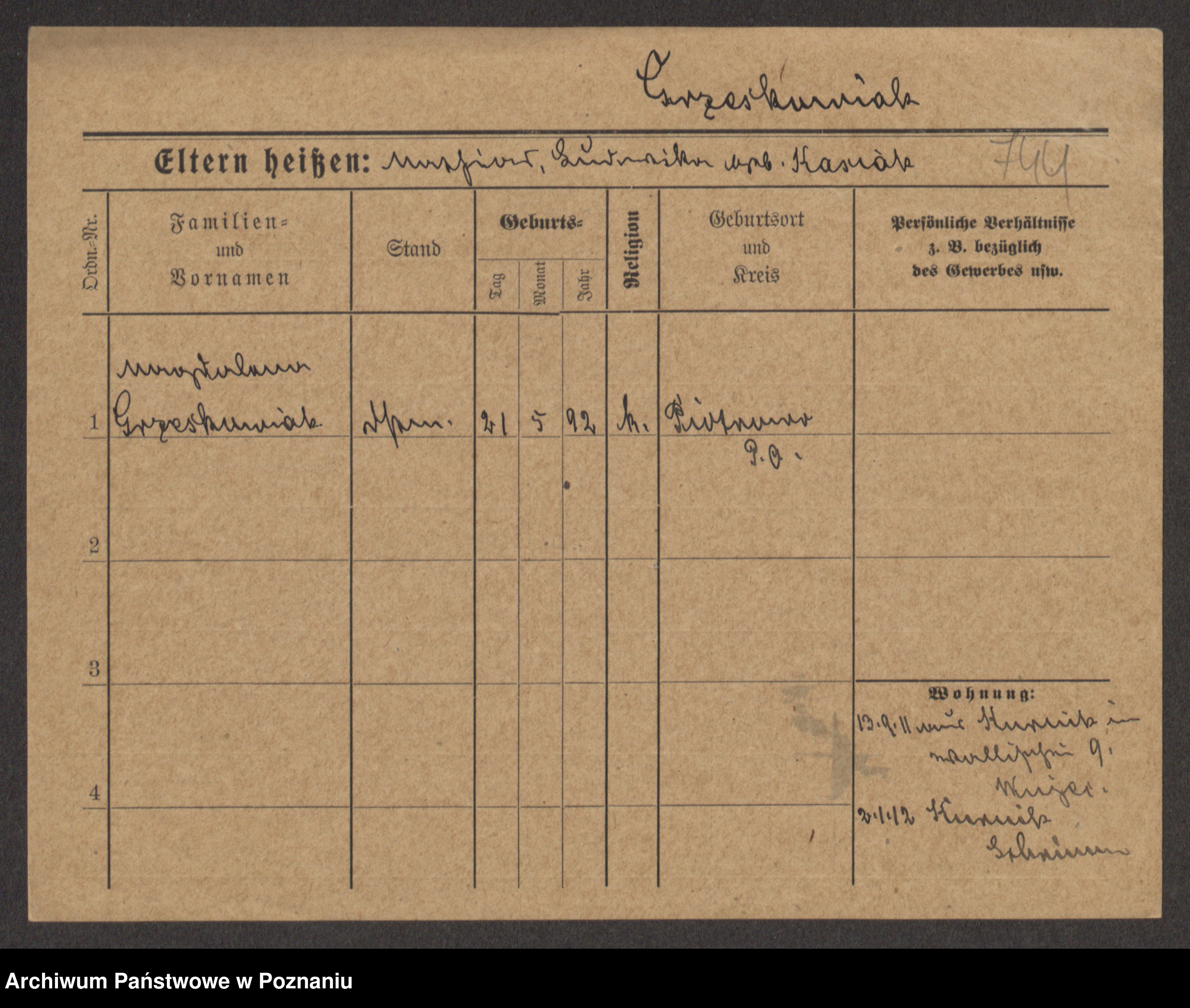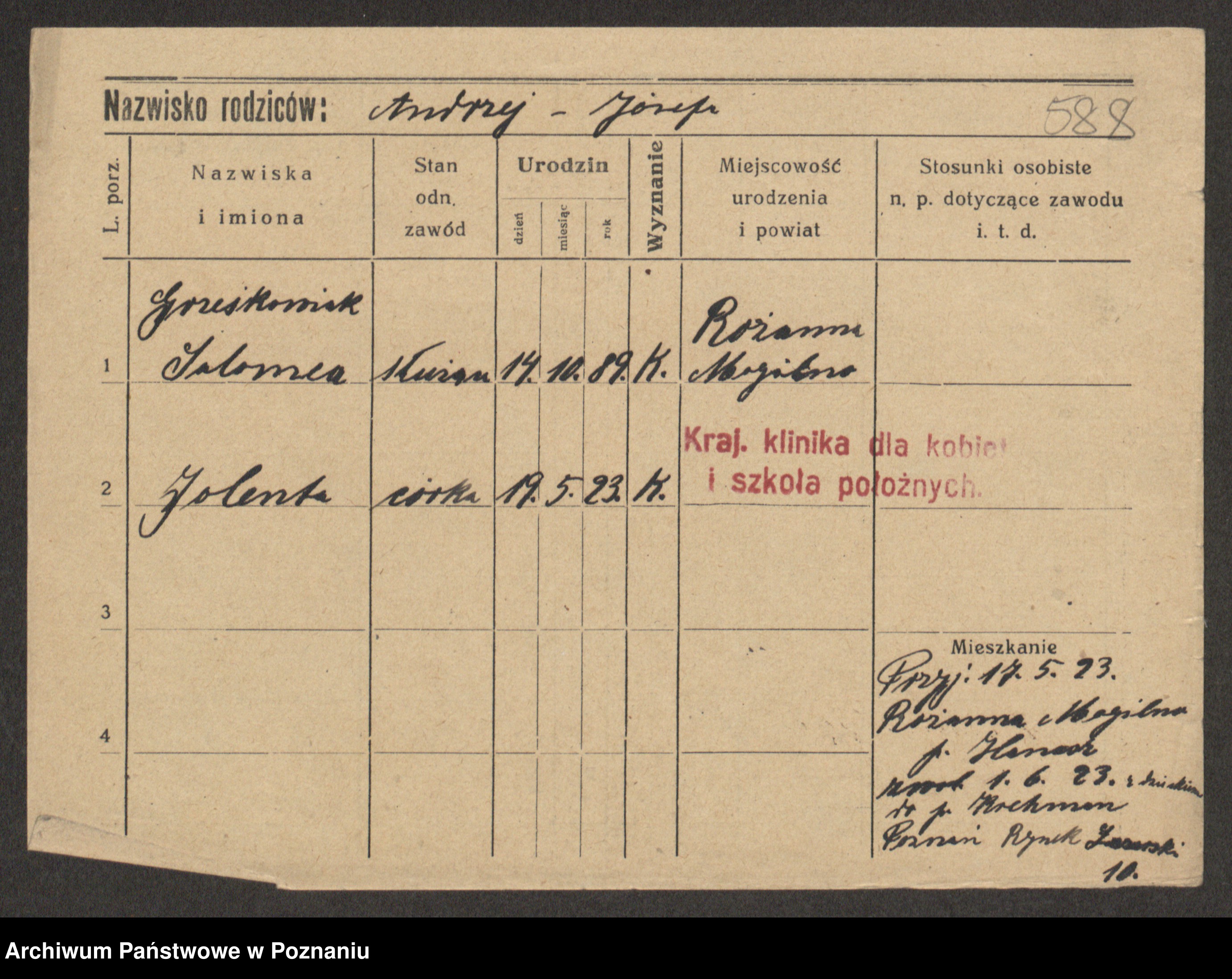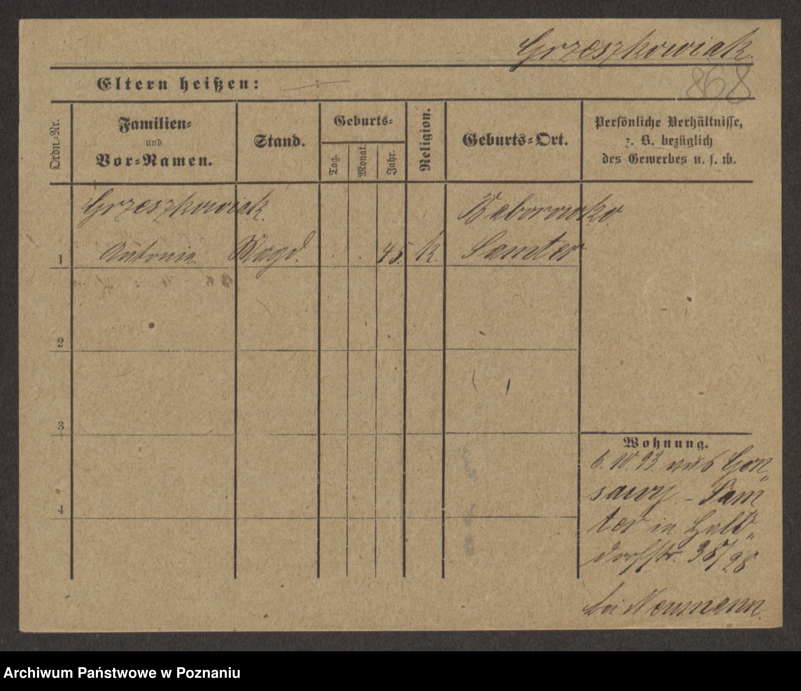 Grześkowiak z d.Wolinska I voto Bertrand, Wilhelmina
