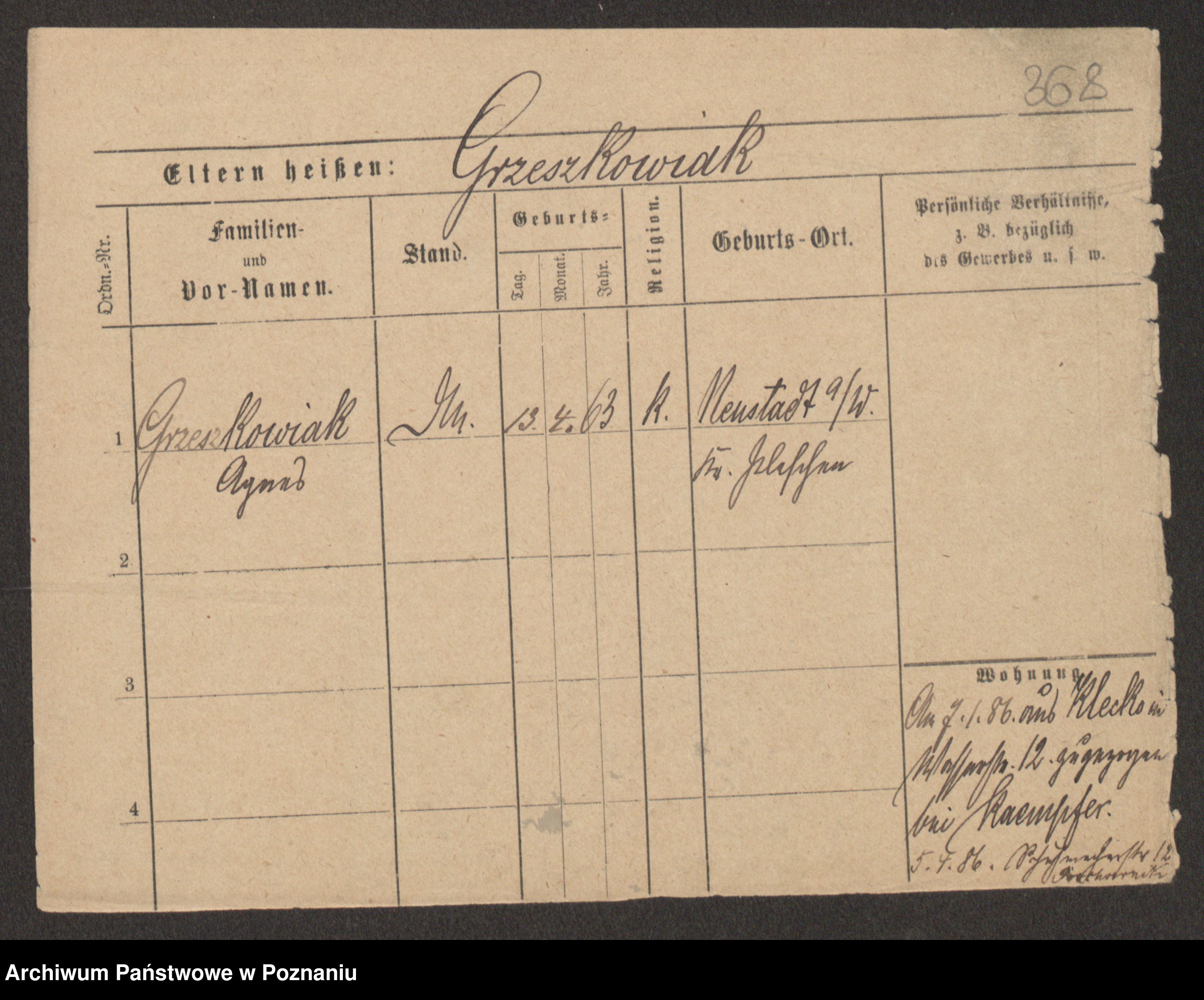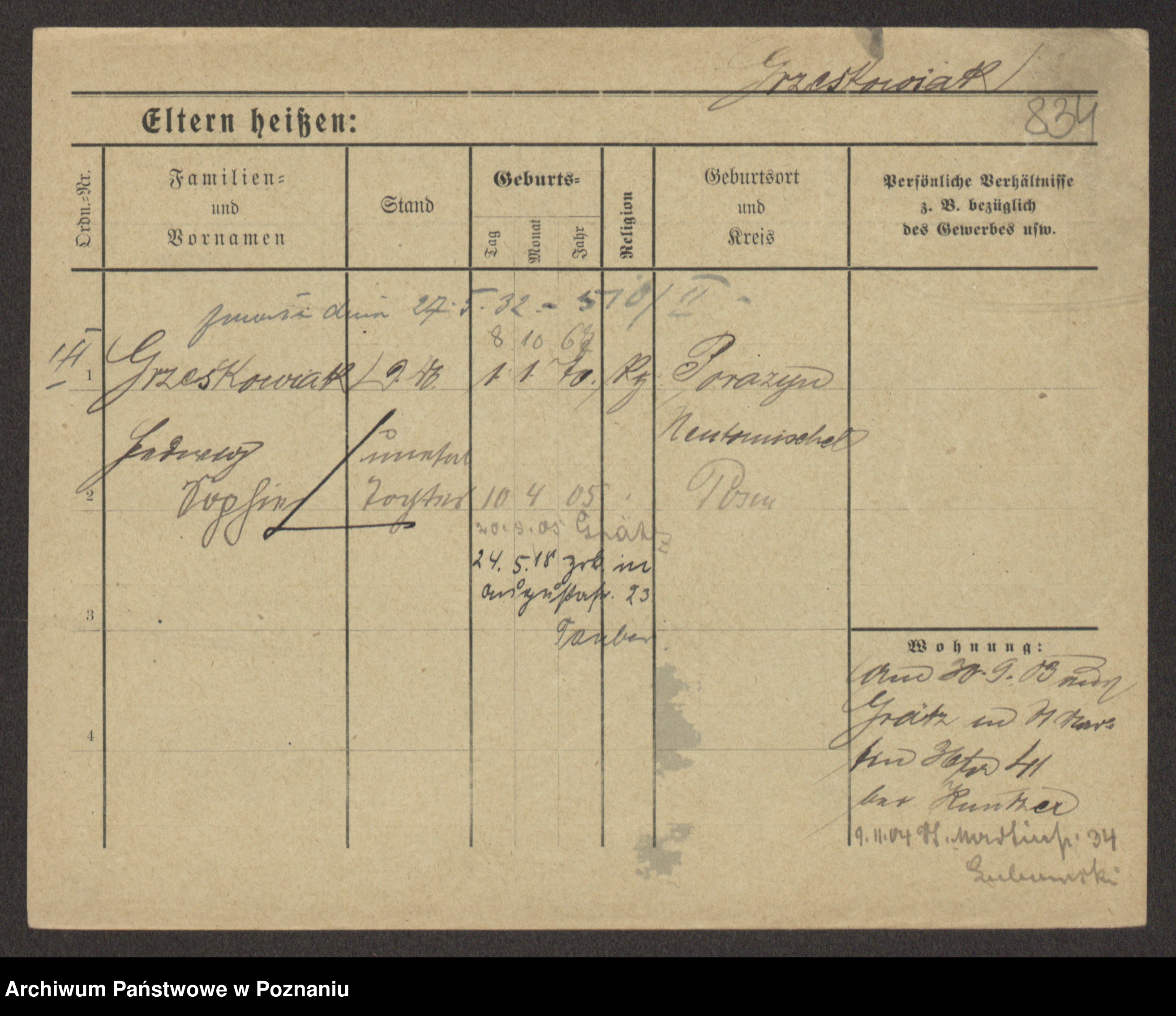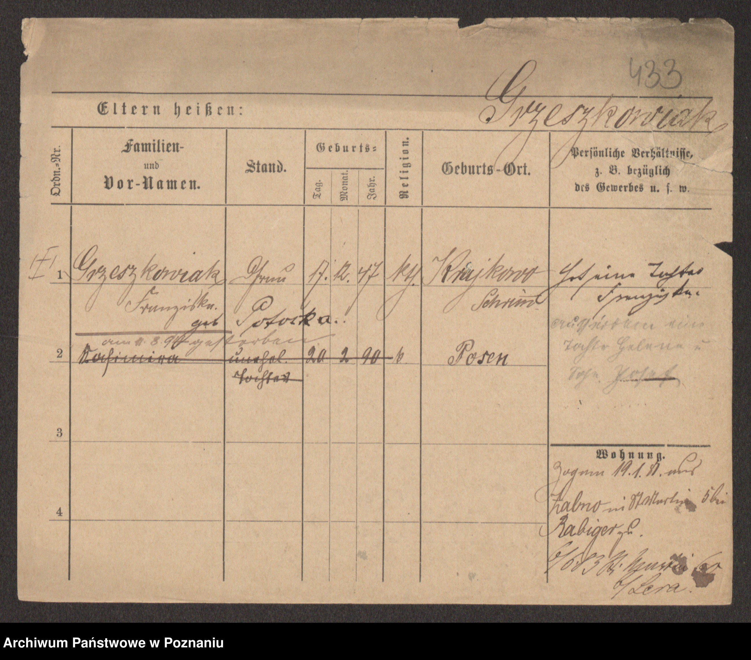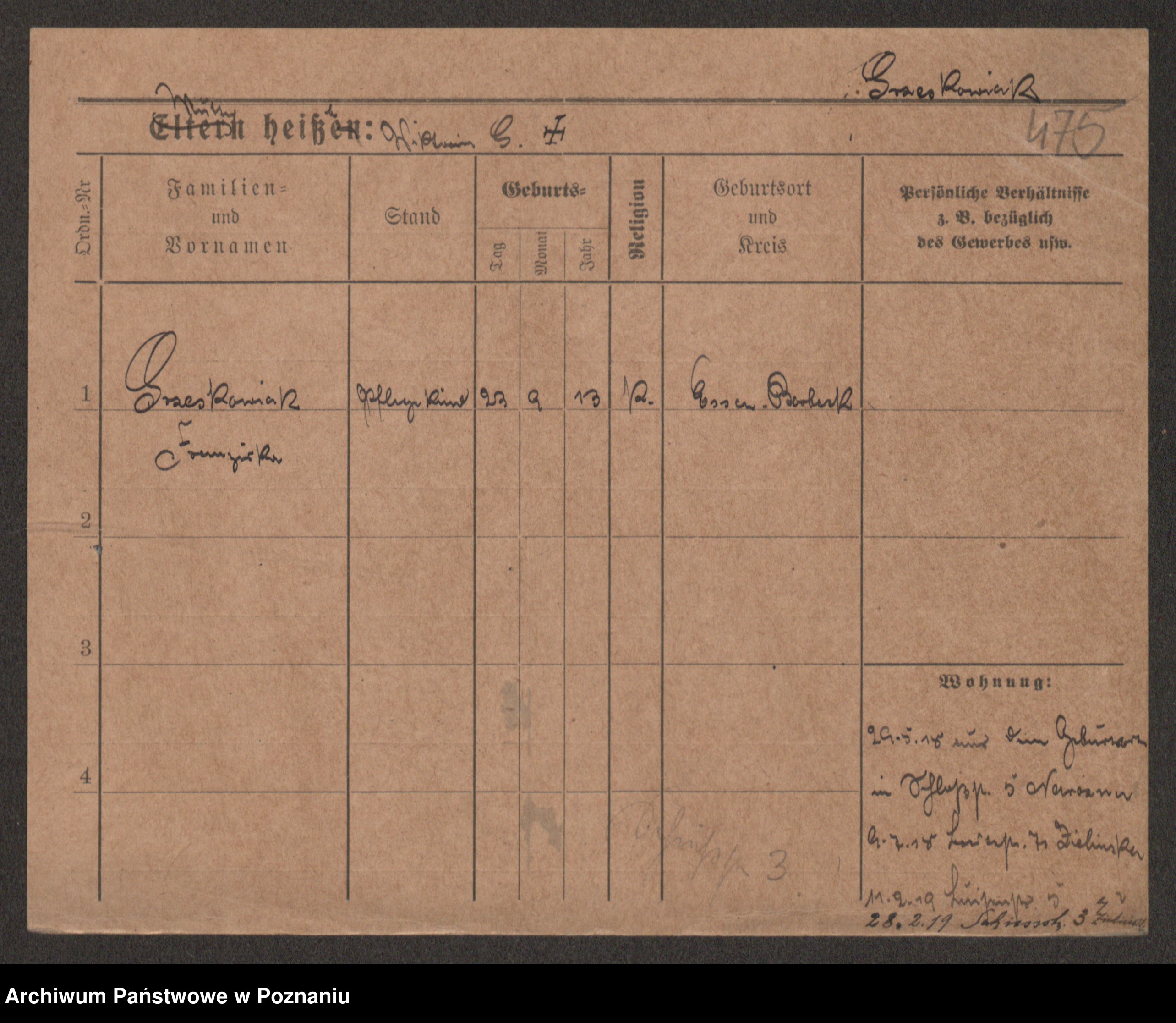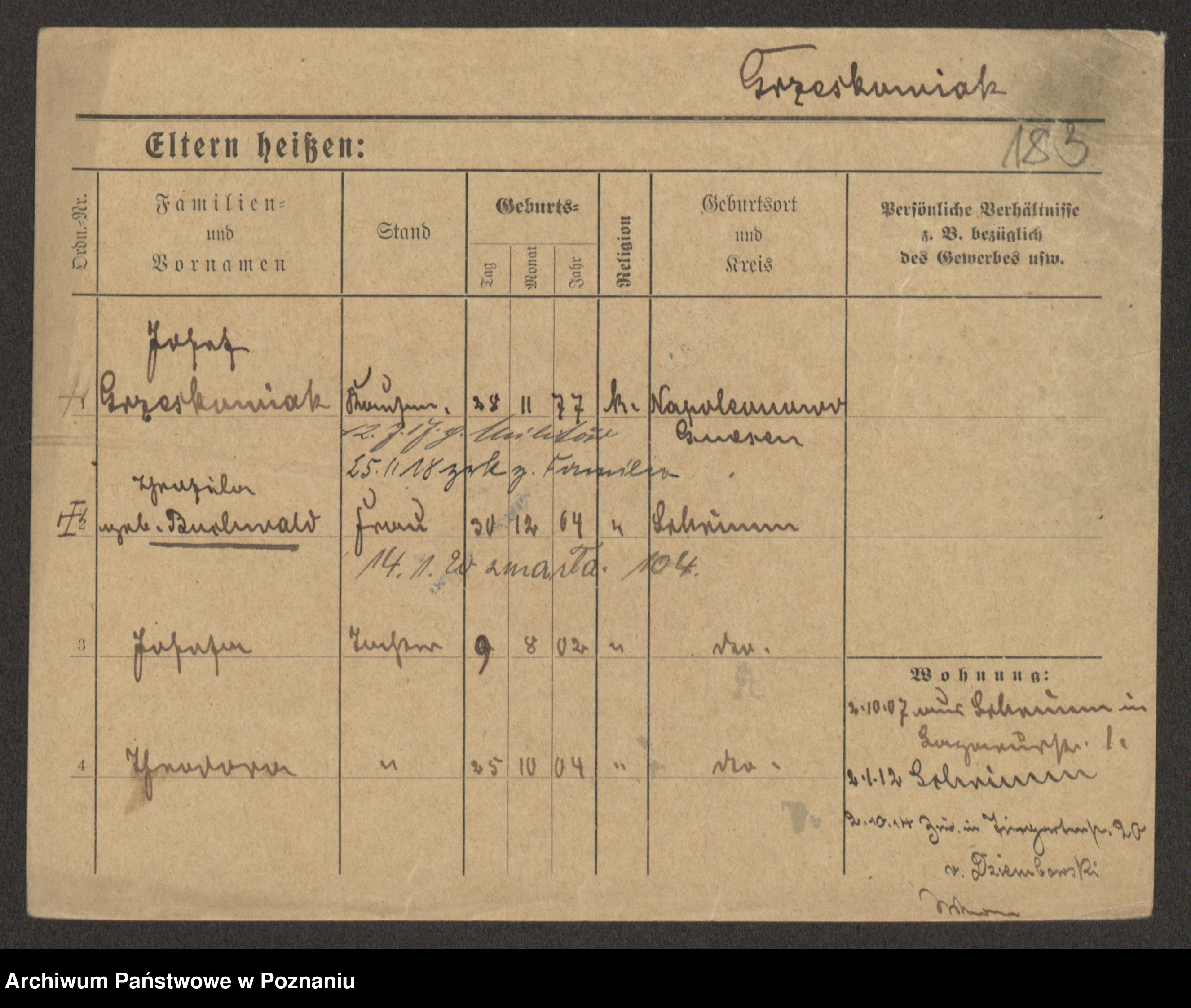 Grześkowiak z d.Wolinska I voto Bertrand, Wilhelmina