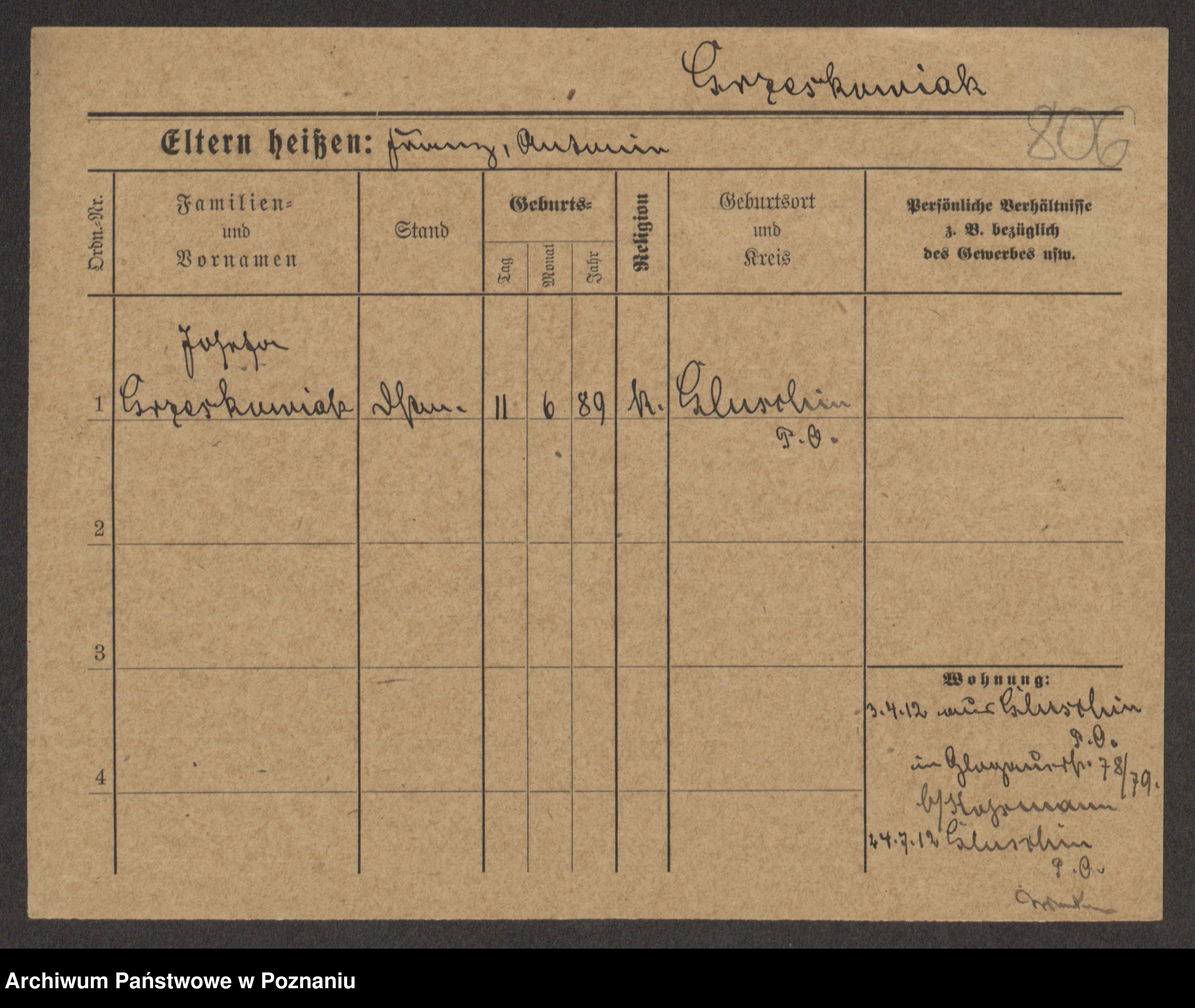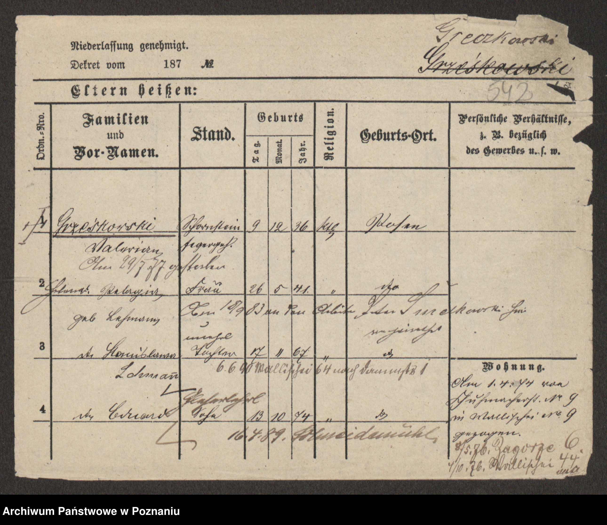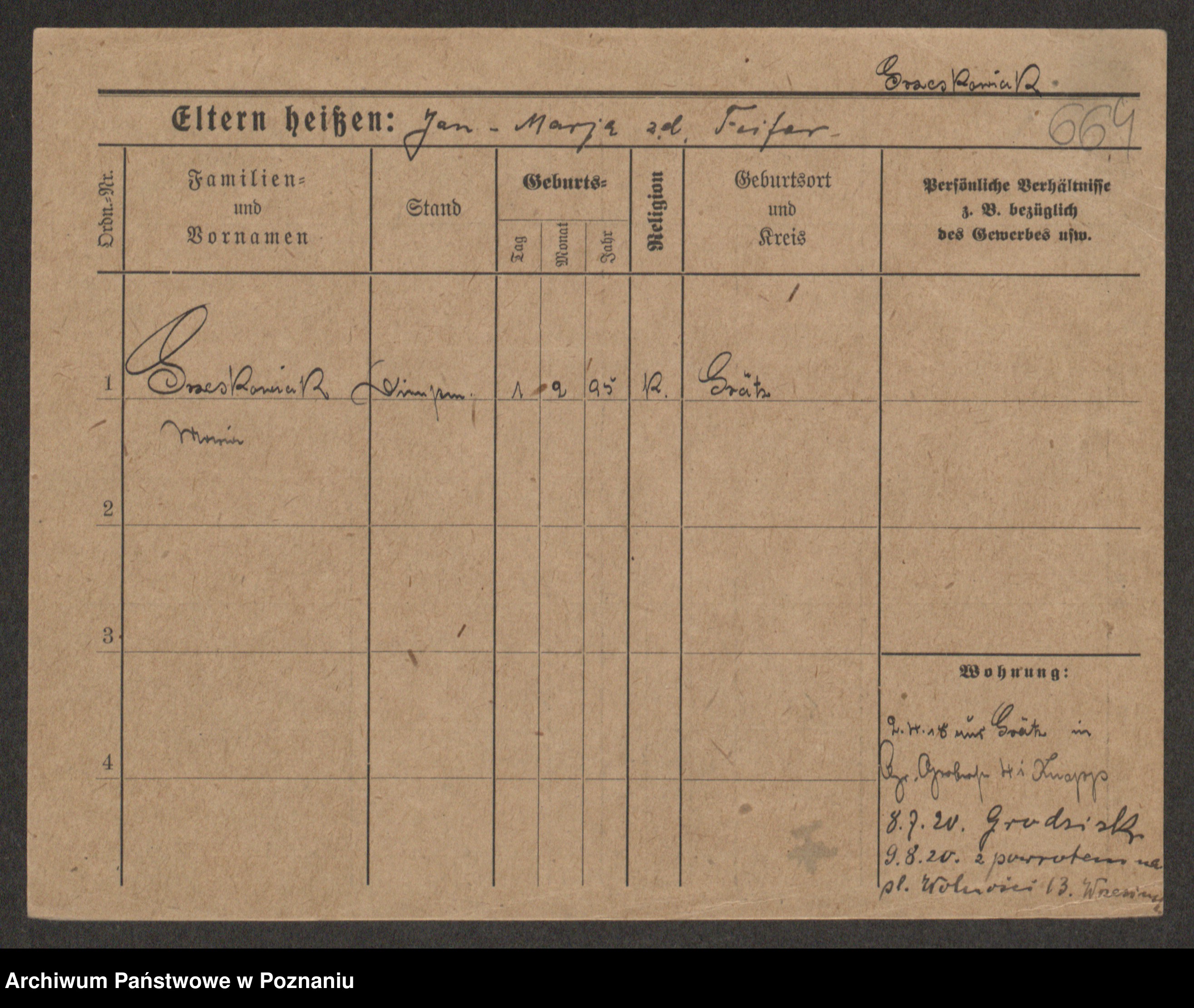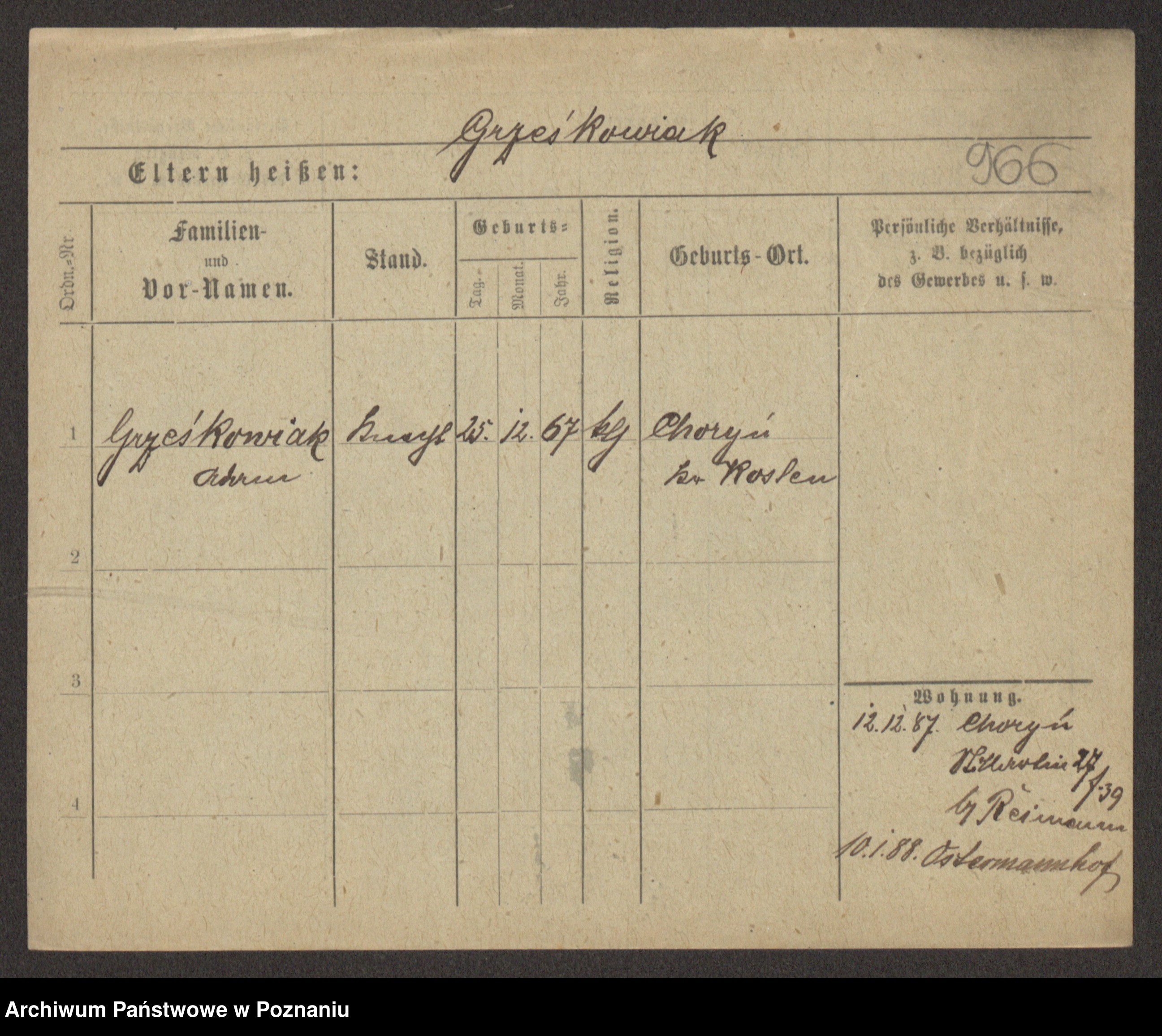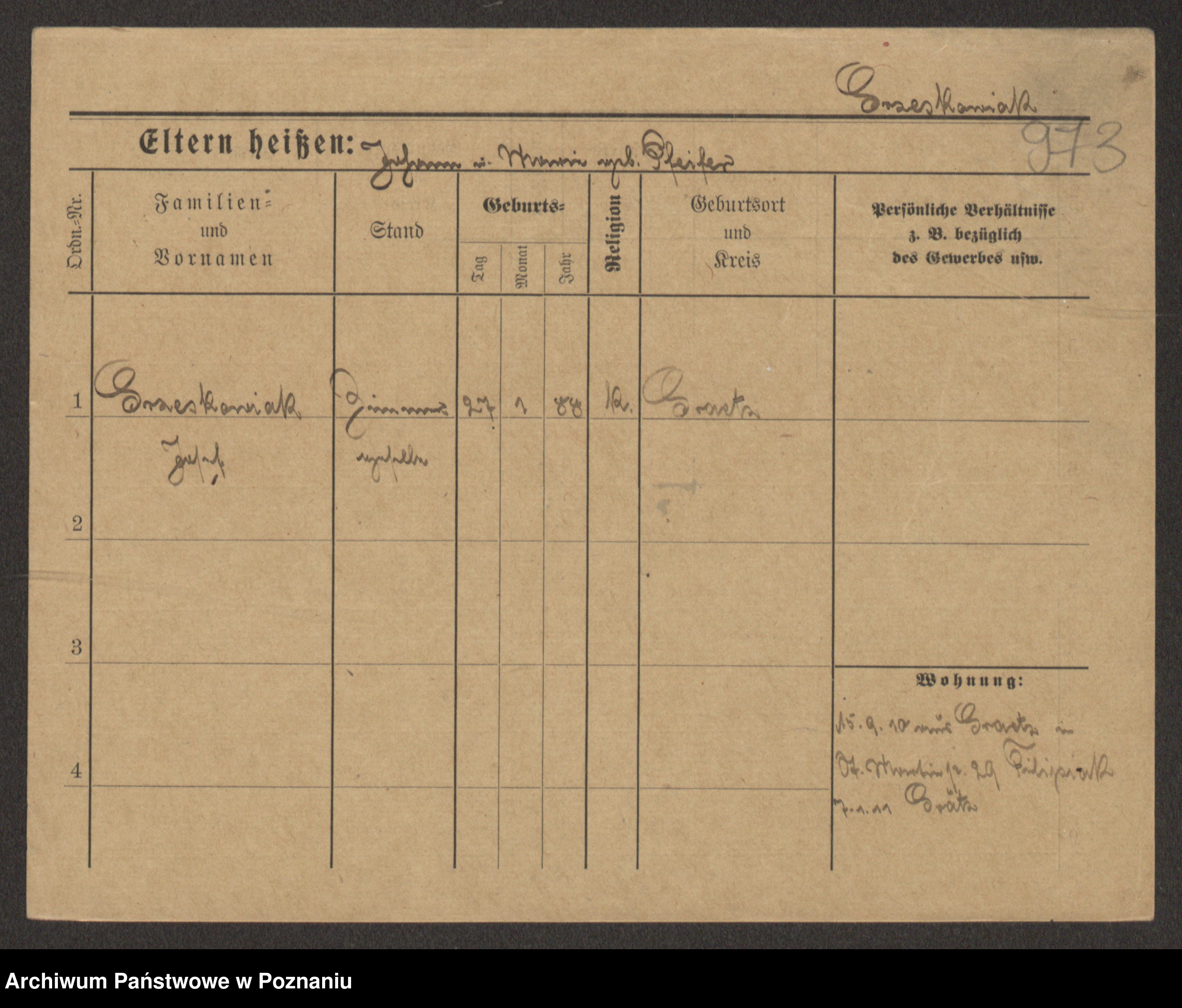 Grześkowiak z d.Wolinska I voto Bertrand, Wilhelmina