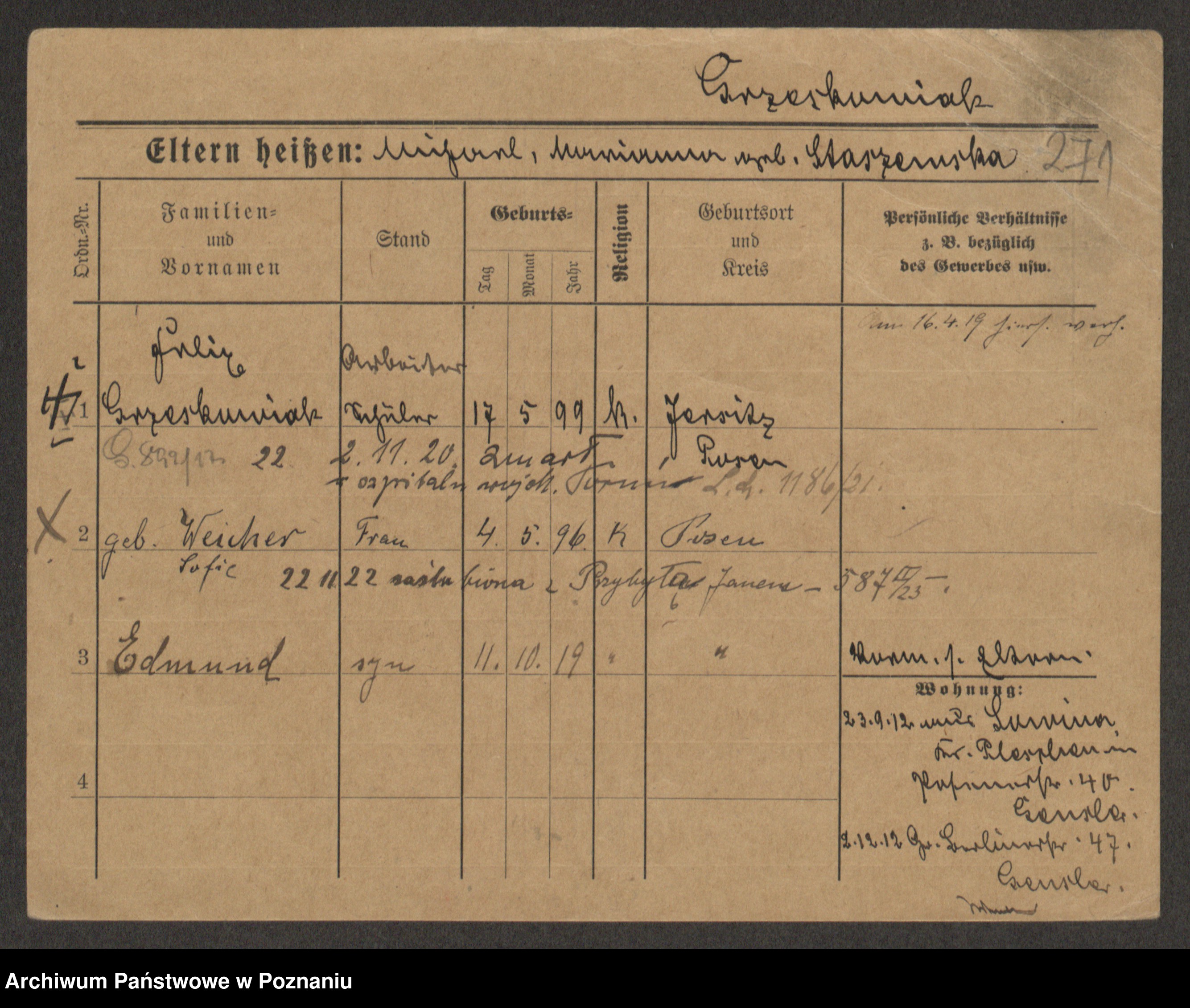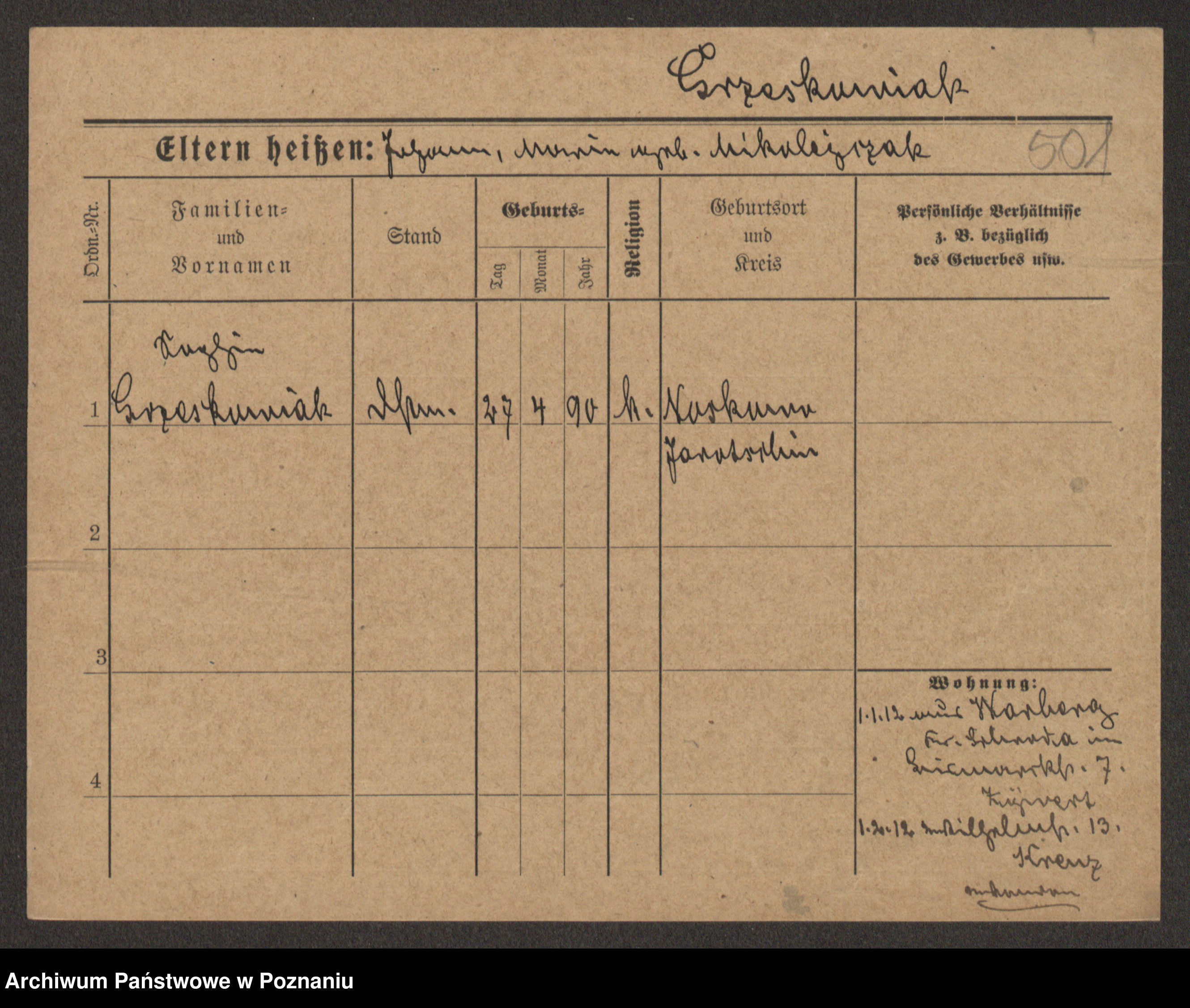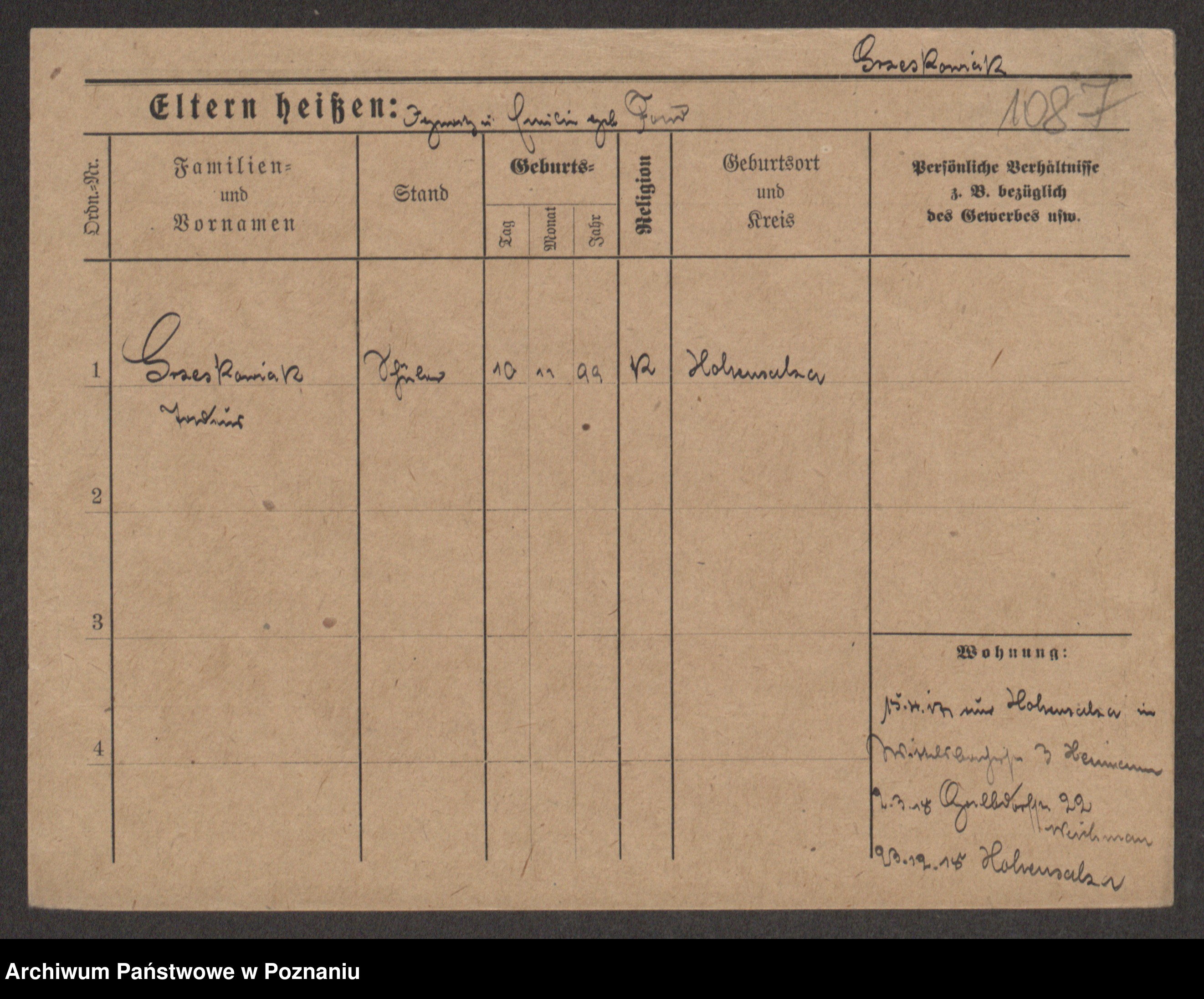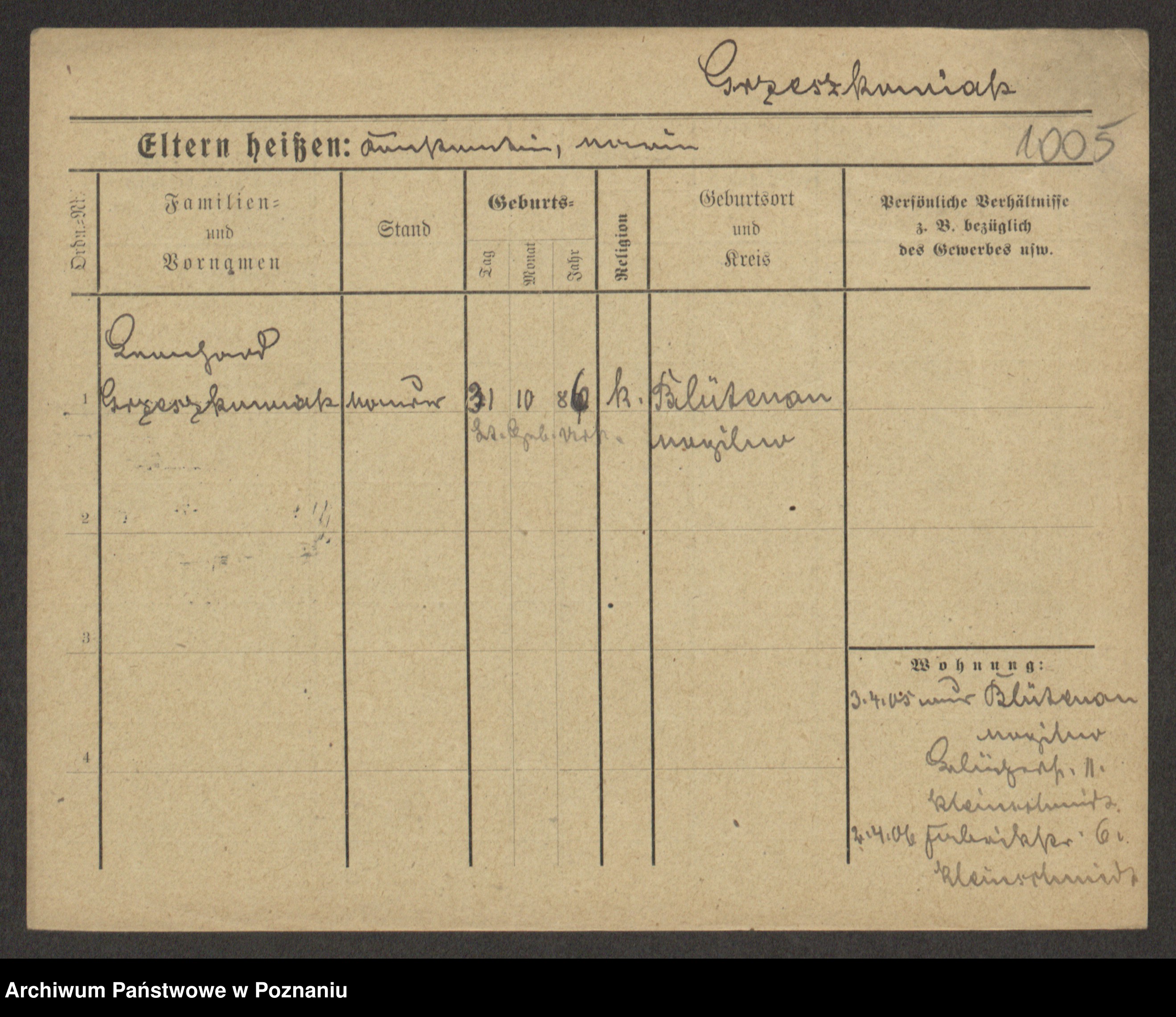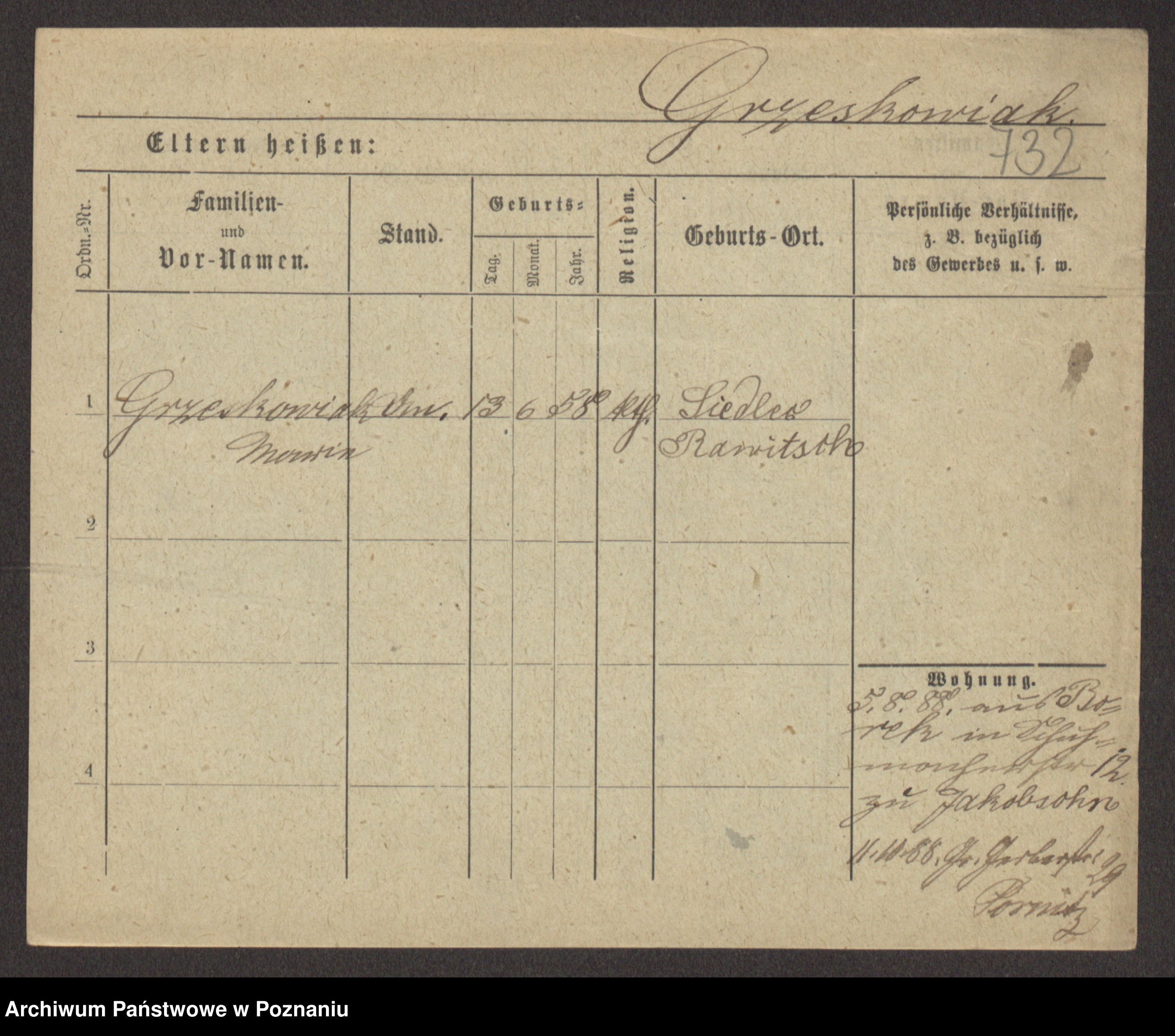 Grześkowiak z d.Wolinska I voto Bertrand, Wilhelmina