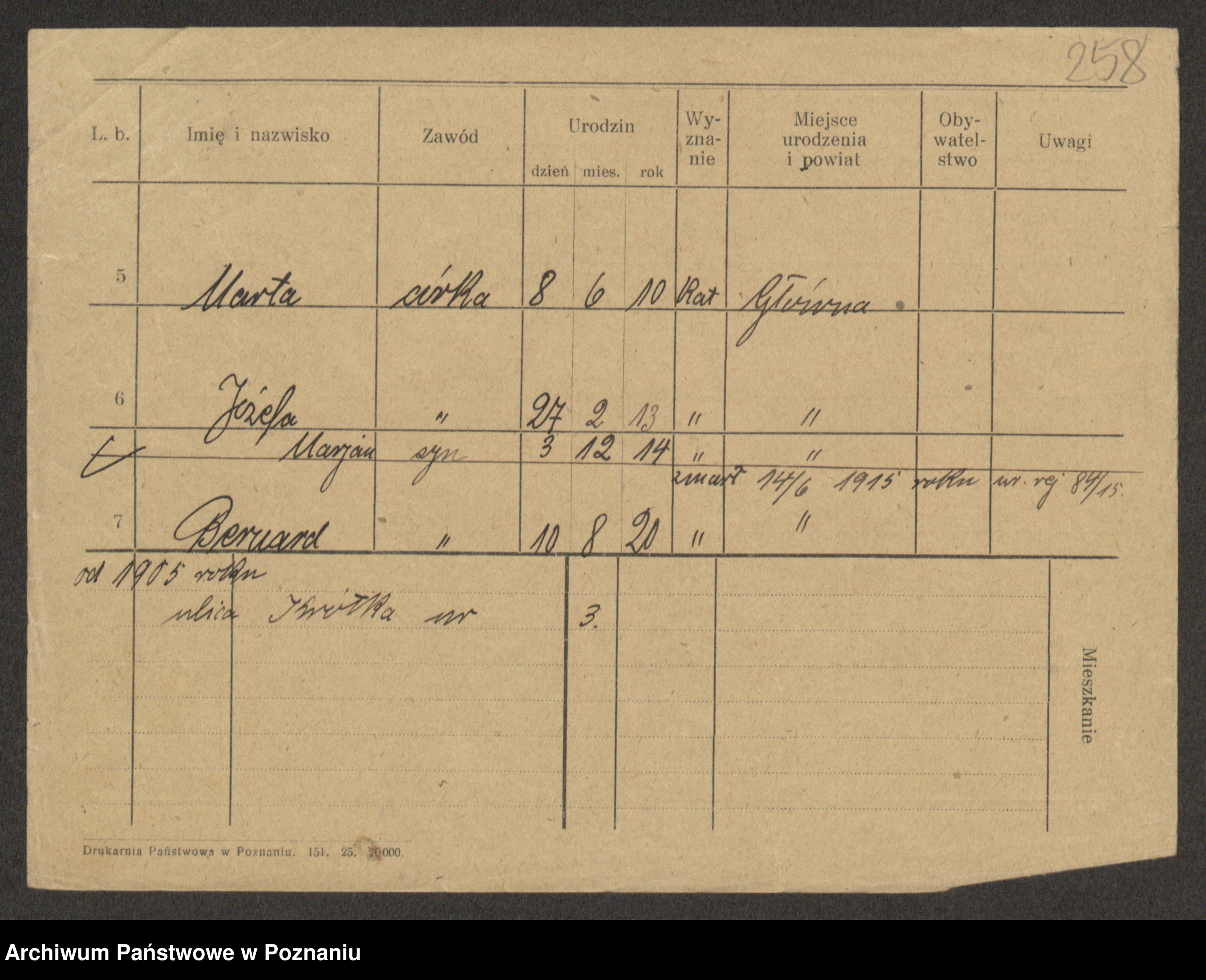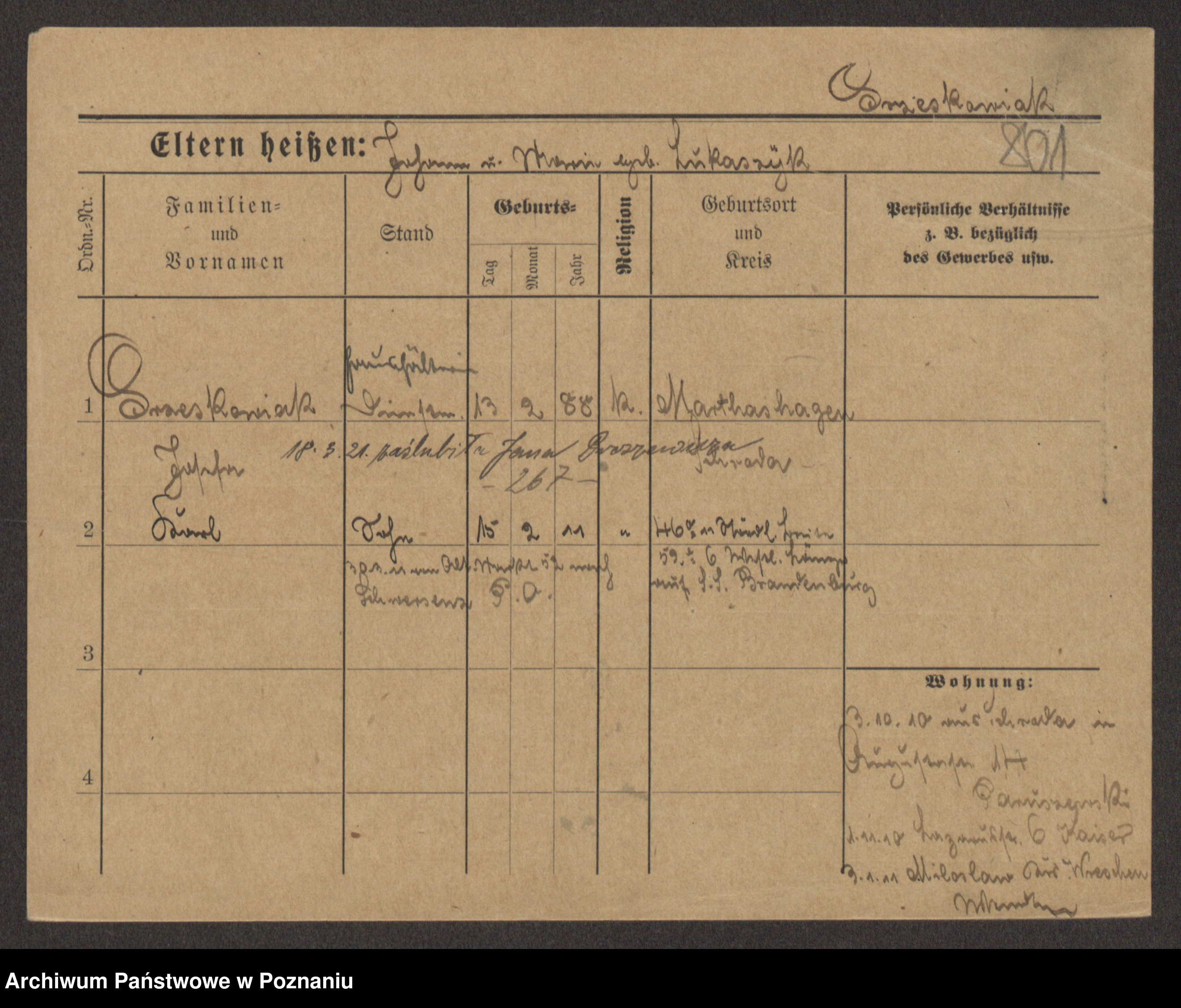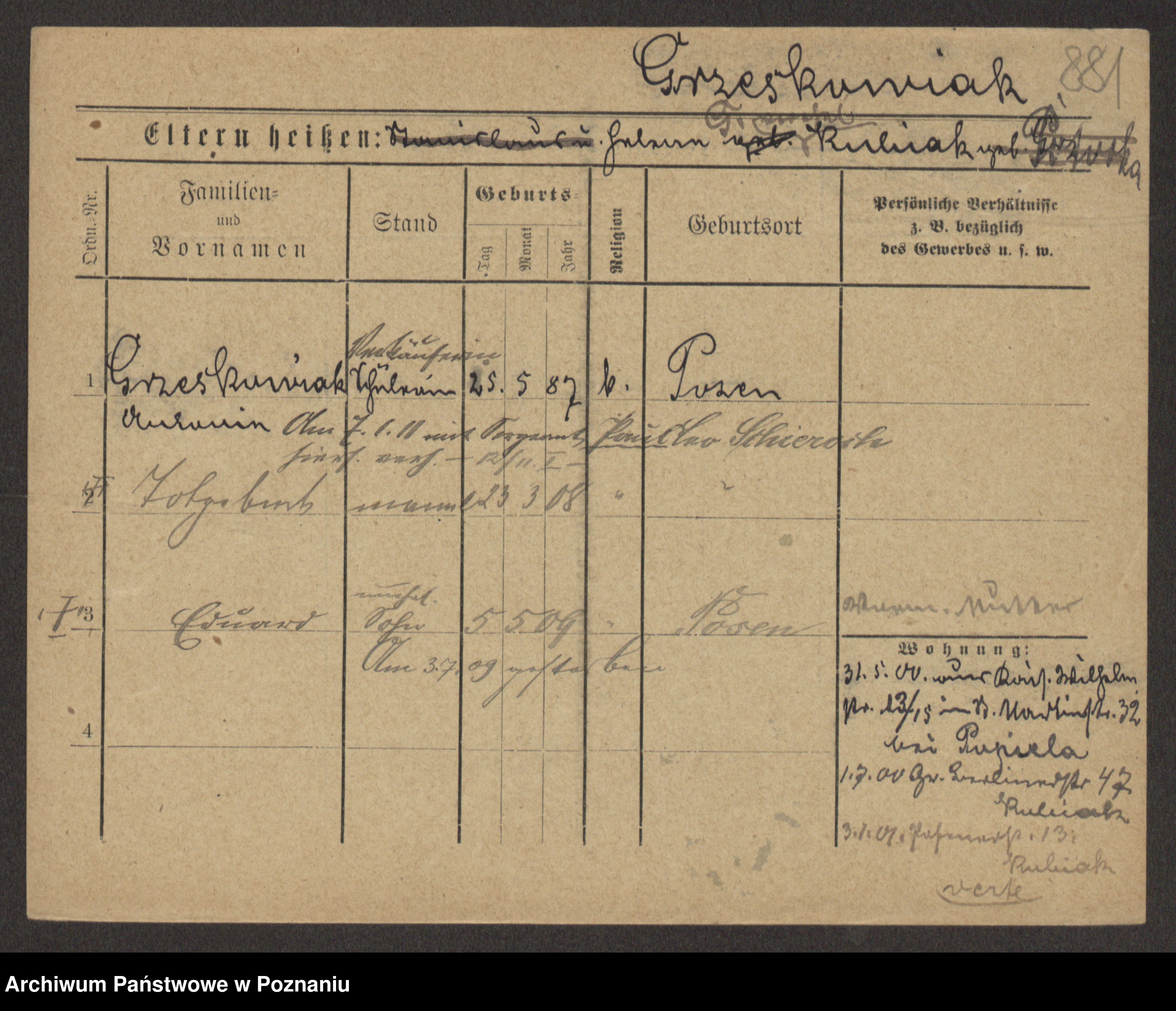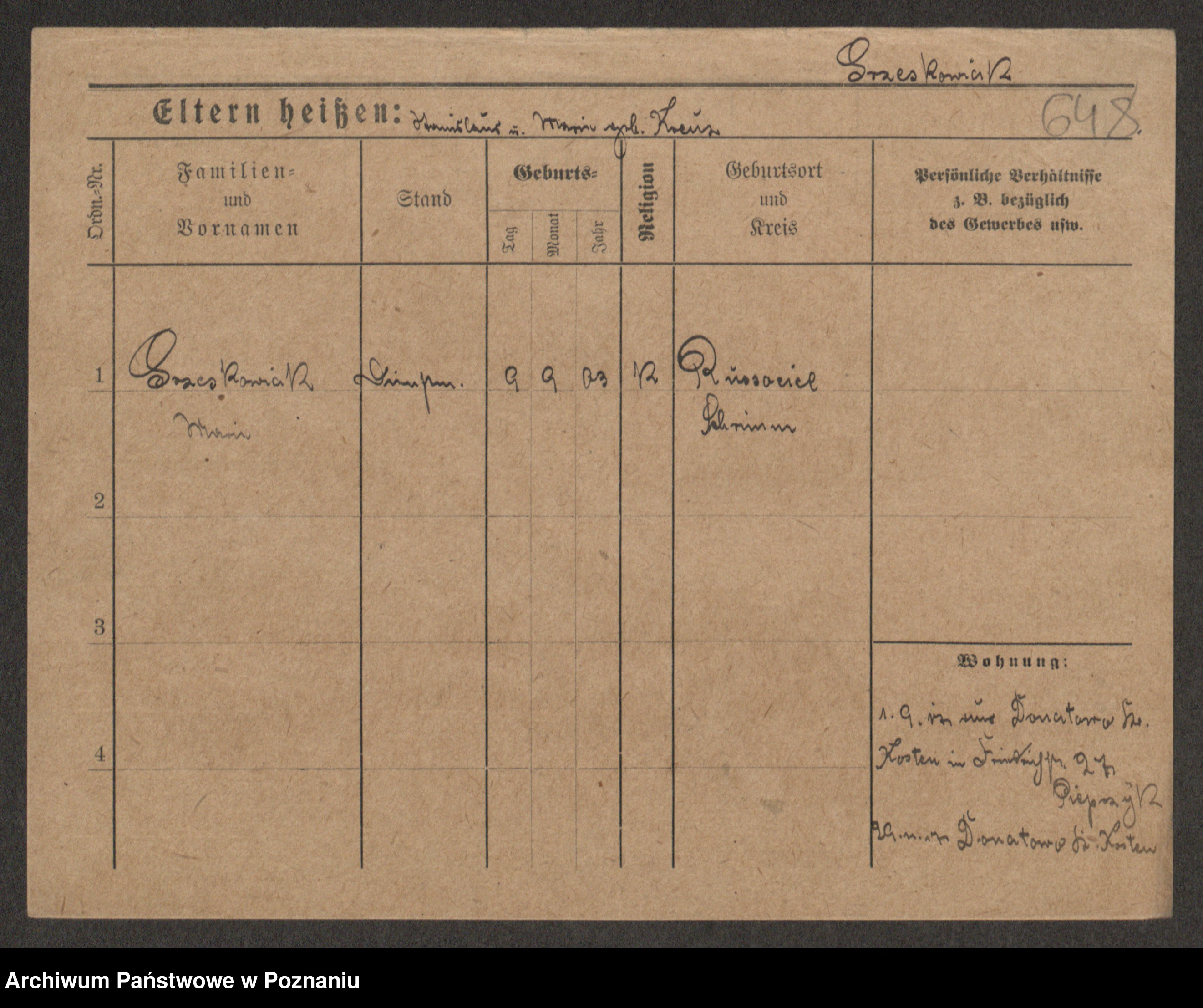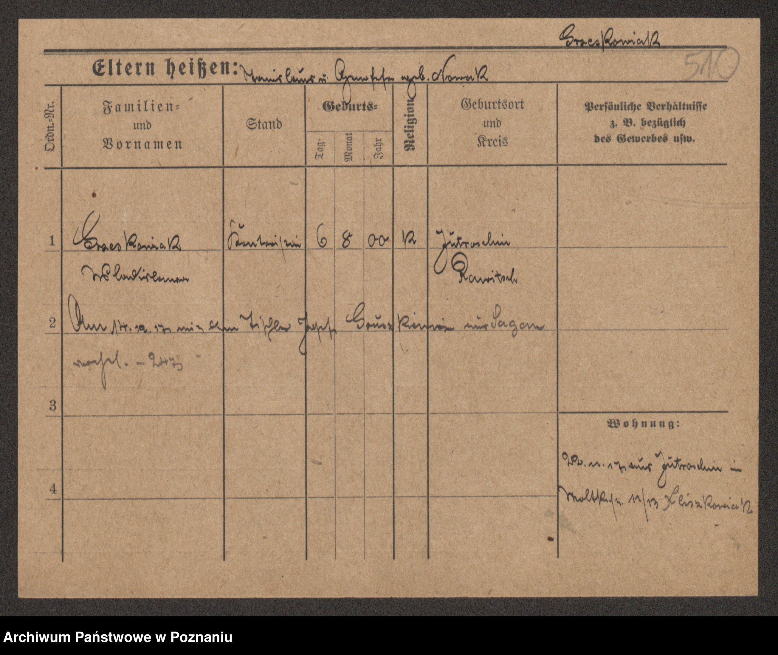 Grześkowiak z d.Wolinska I voto Bertrand, Wilhelmina