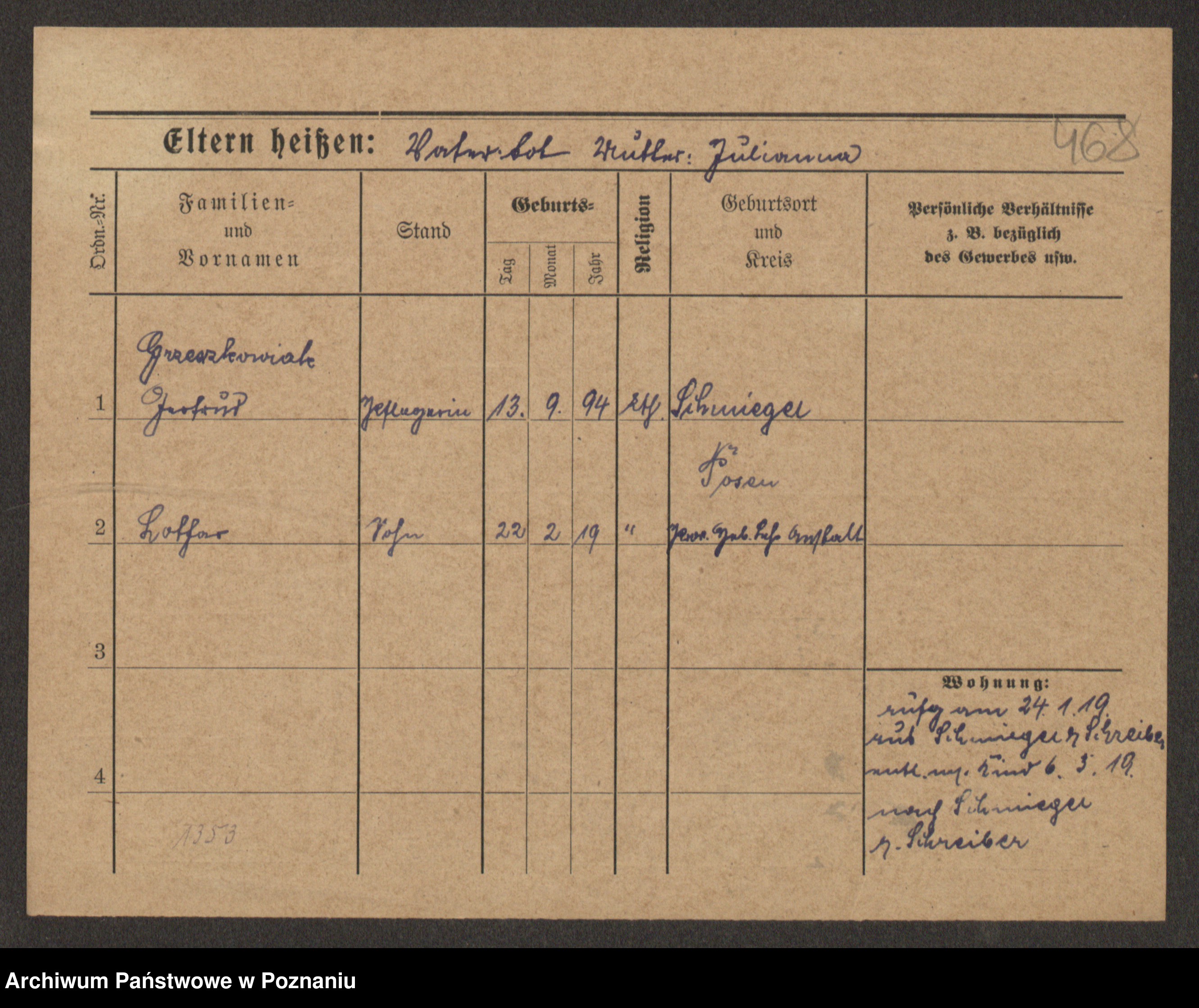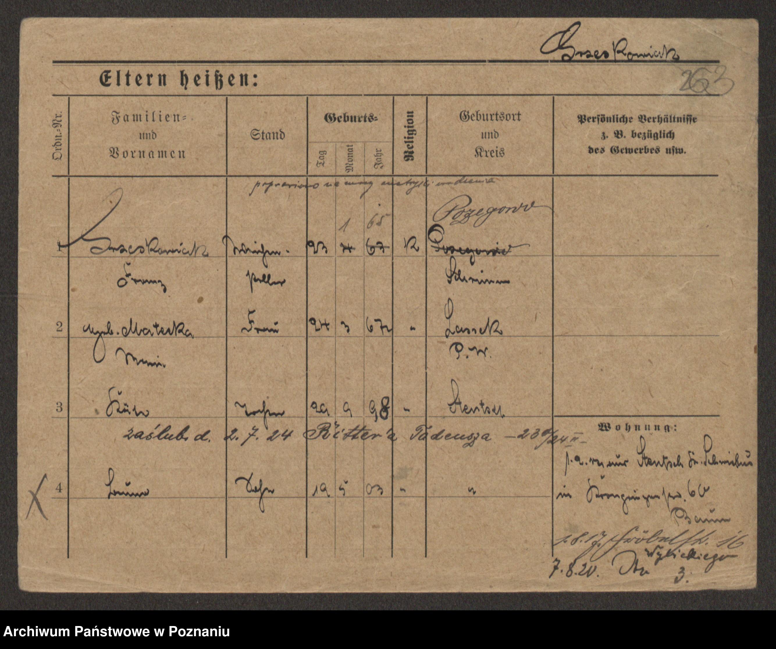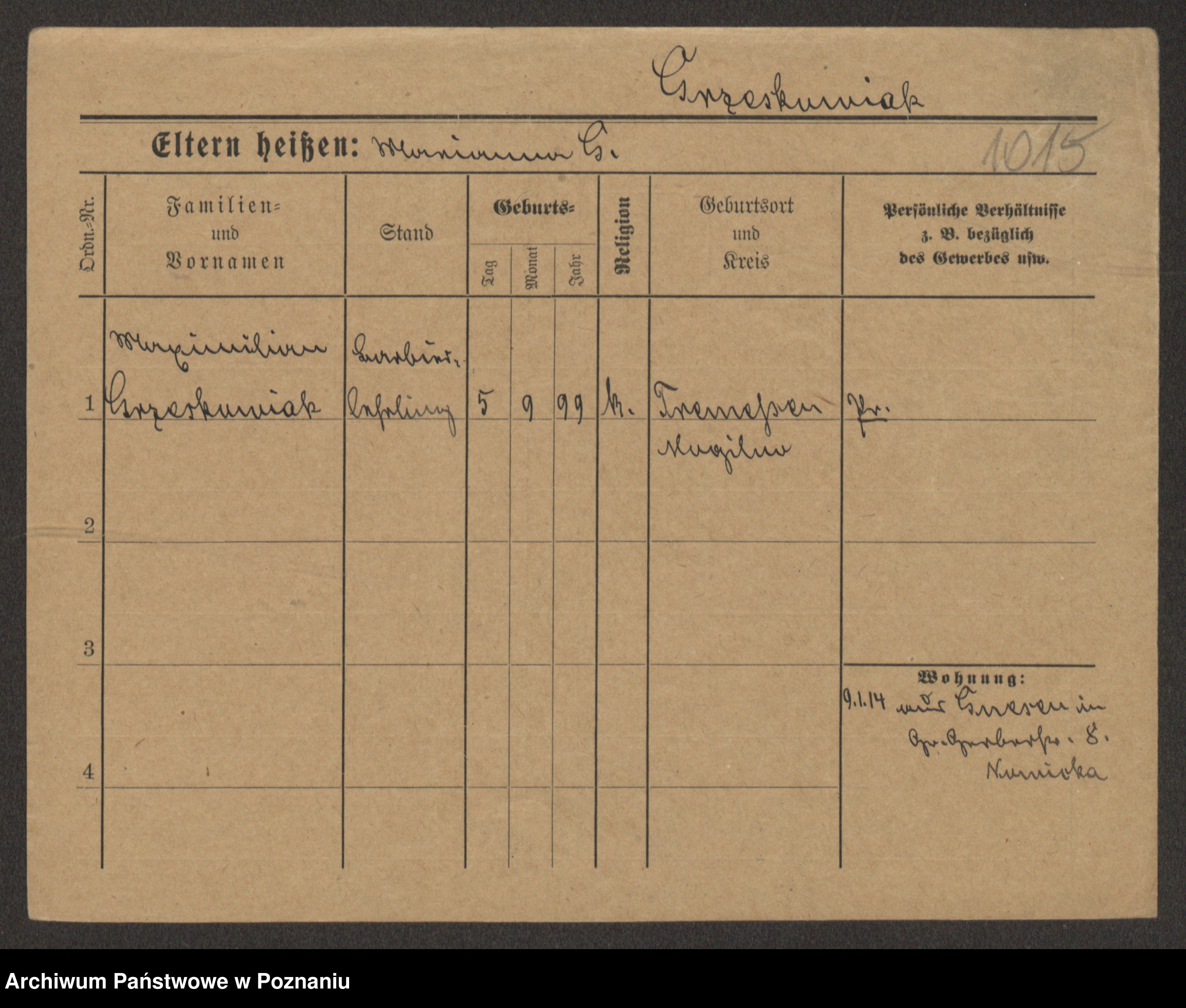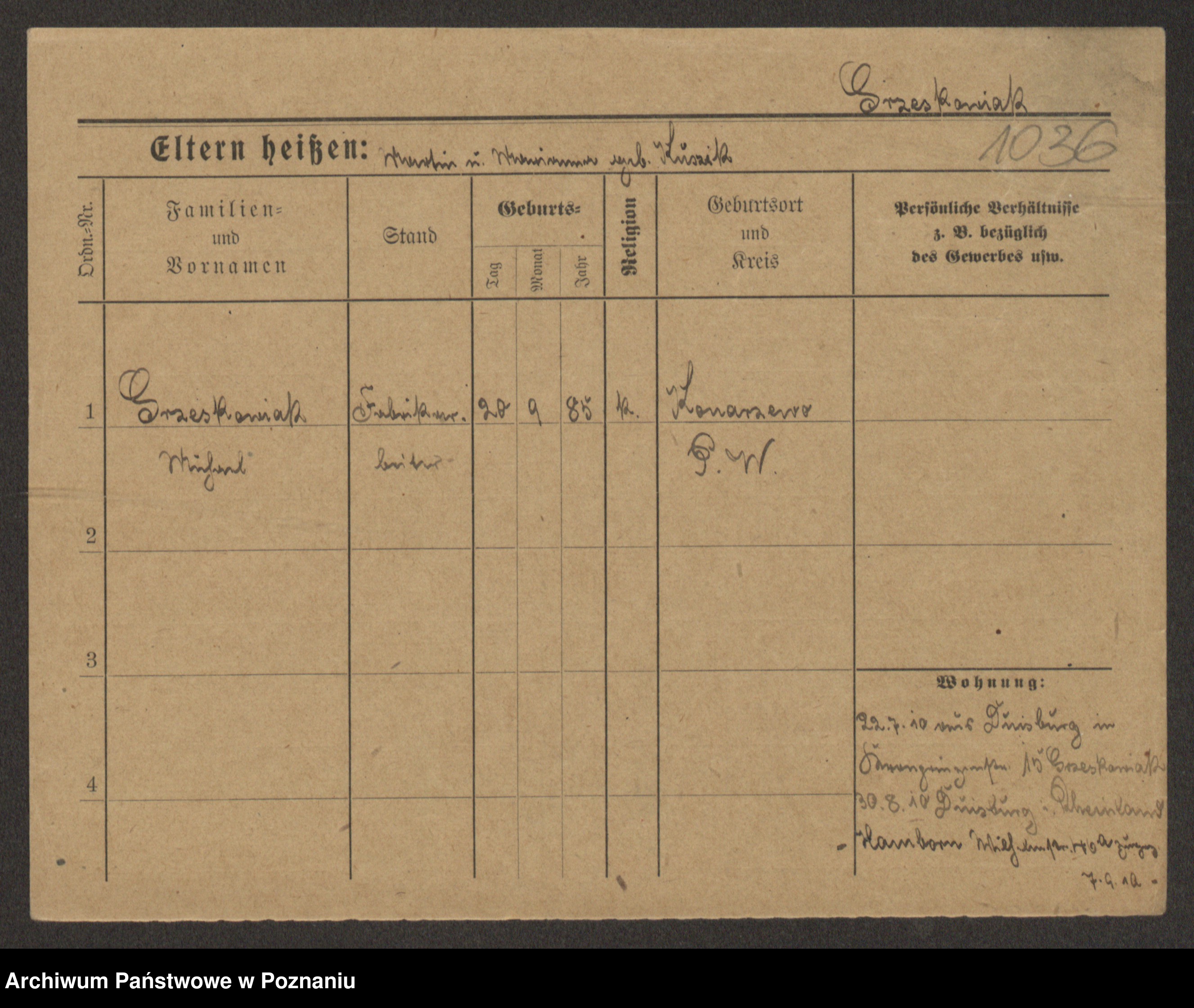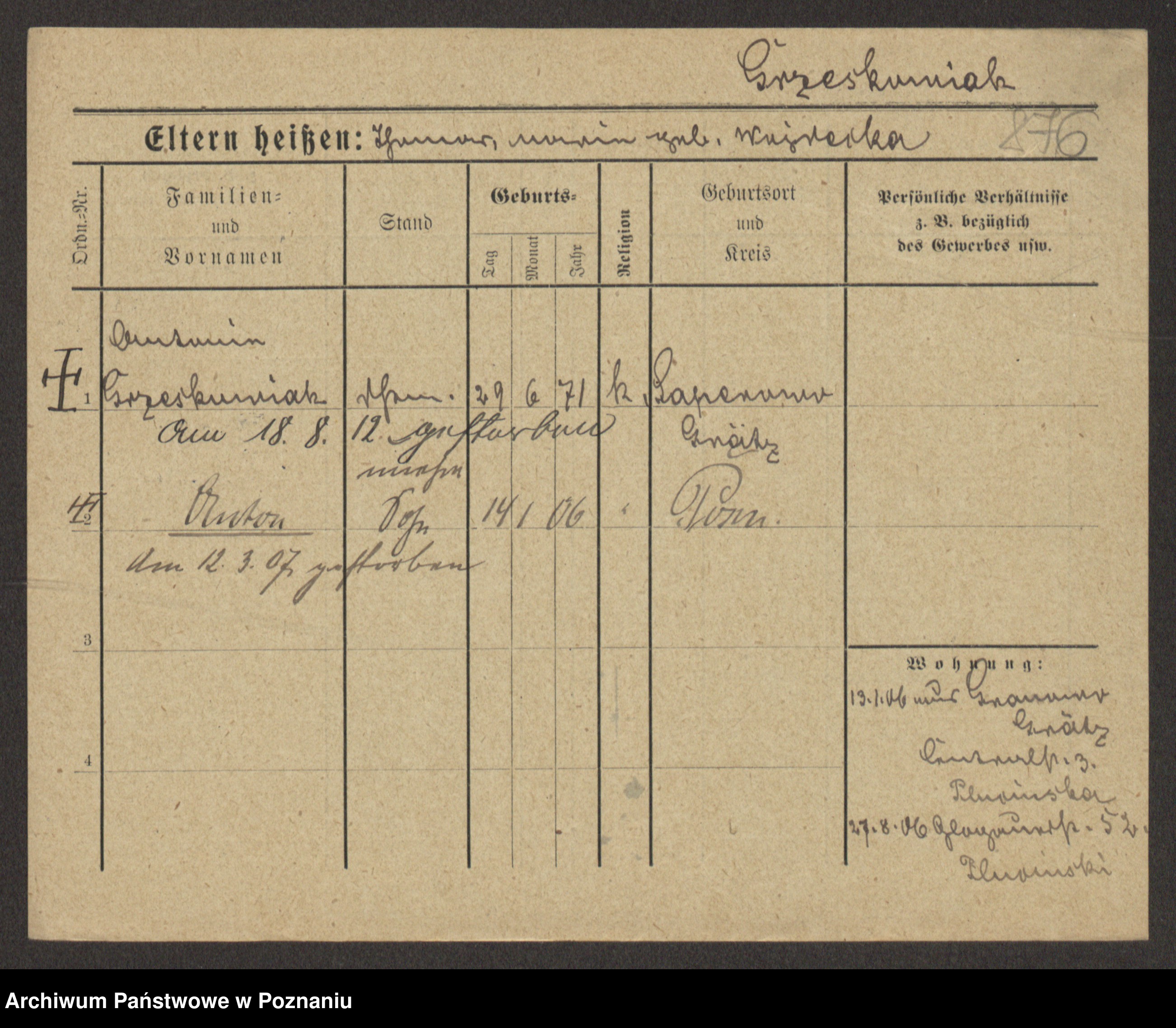 Grześkowiak z d.Wolinska I voto Bertrand, Wilhelmina