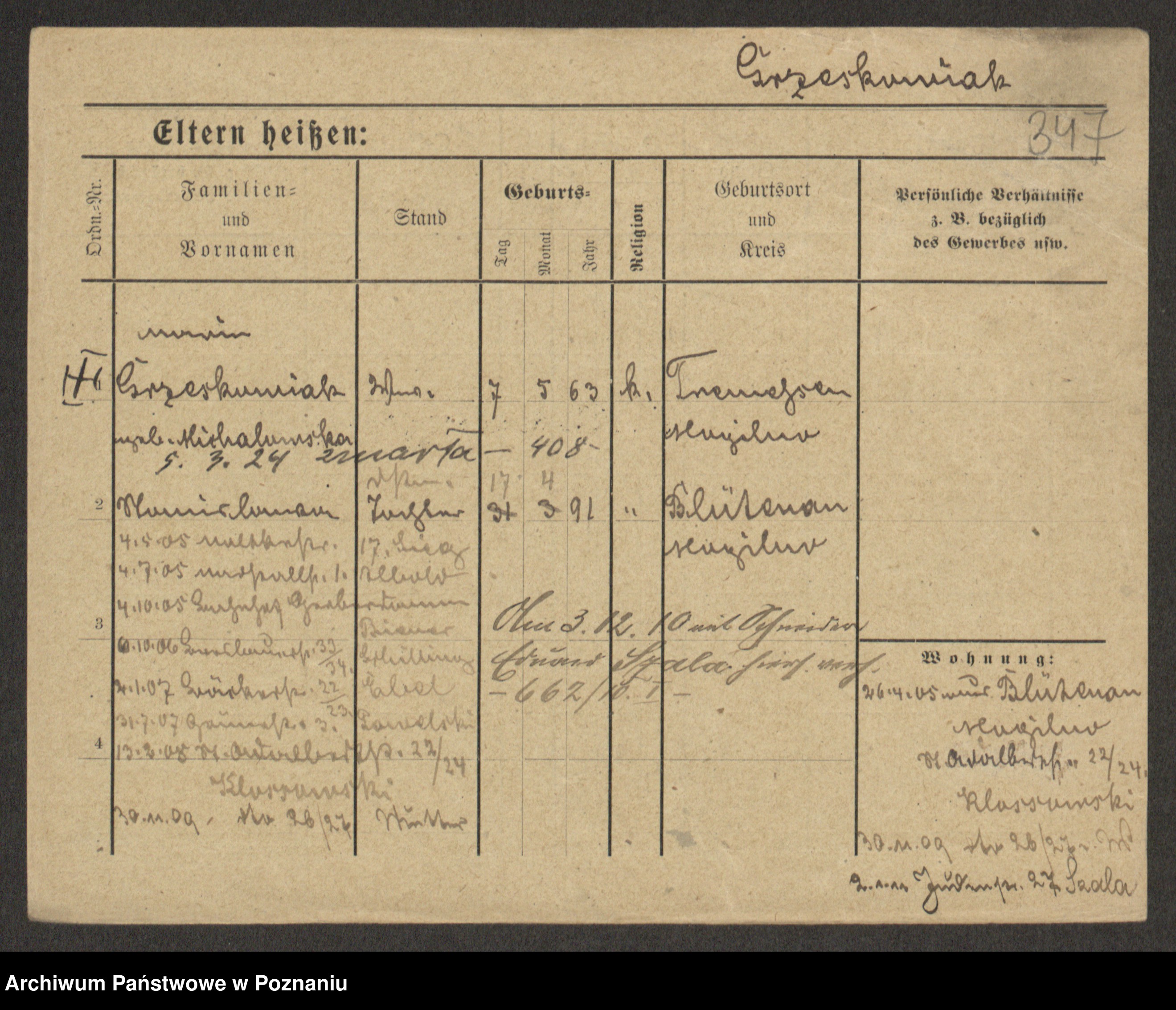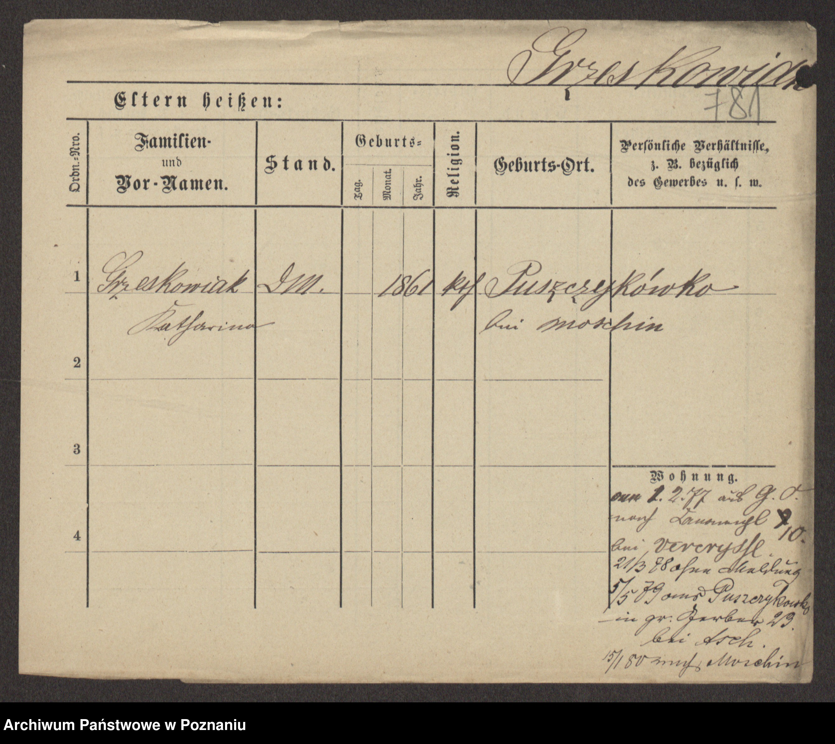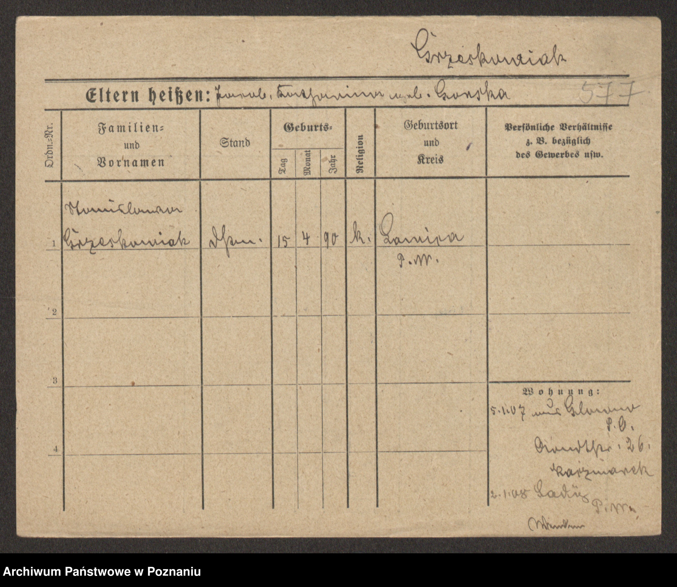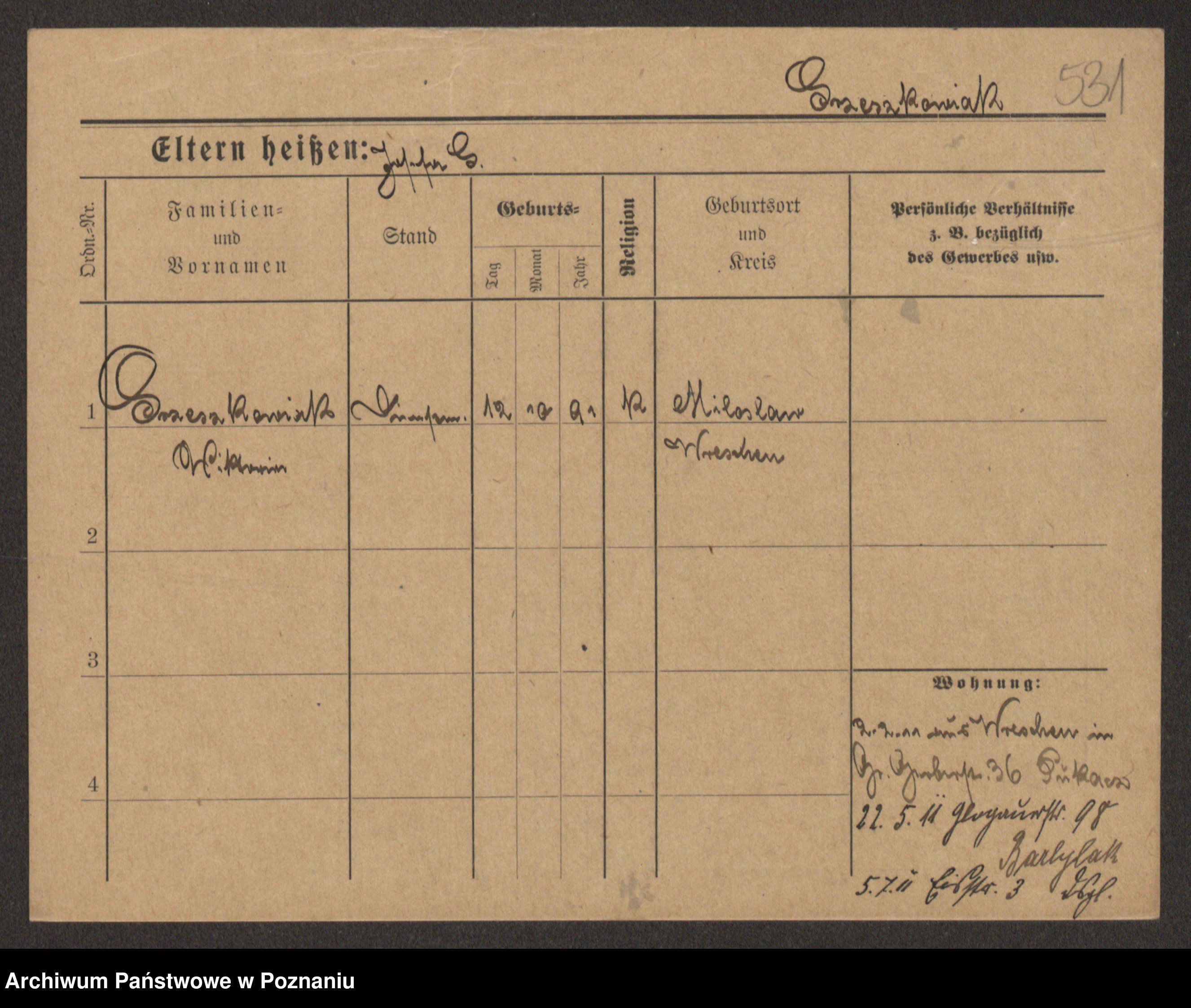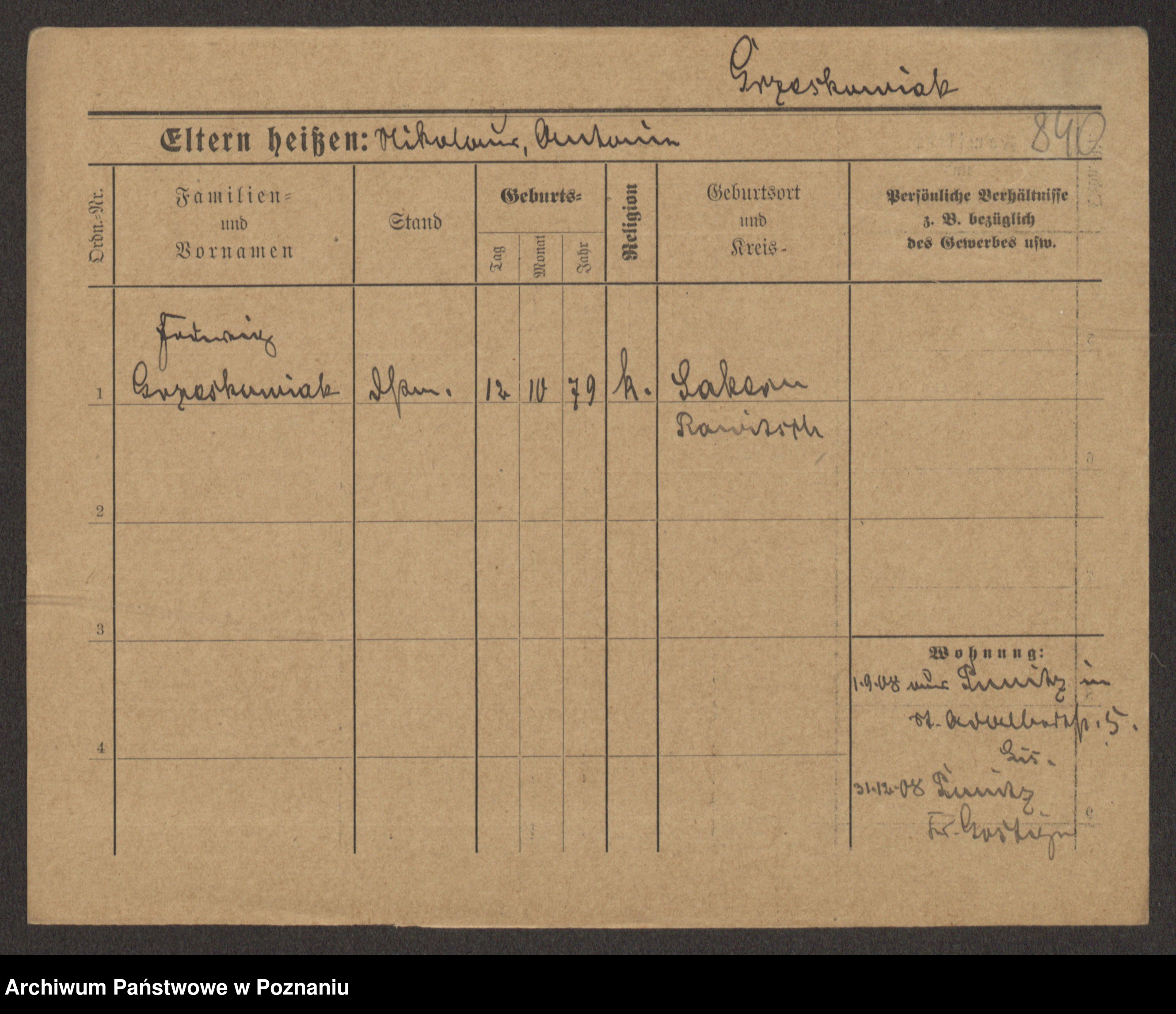 Grześkowiak z d.Wolinska I voto Bertrand, Wilhelmina