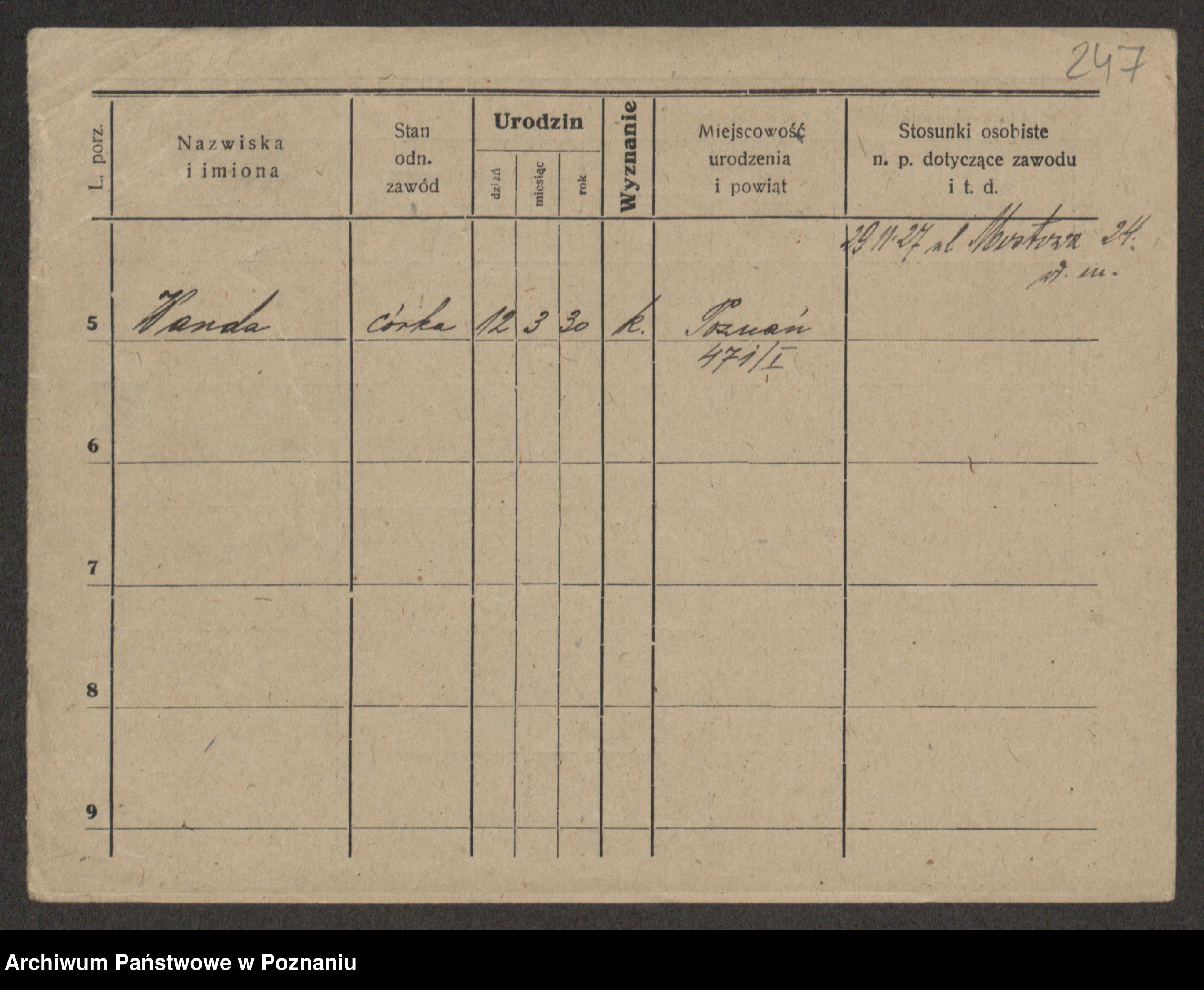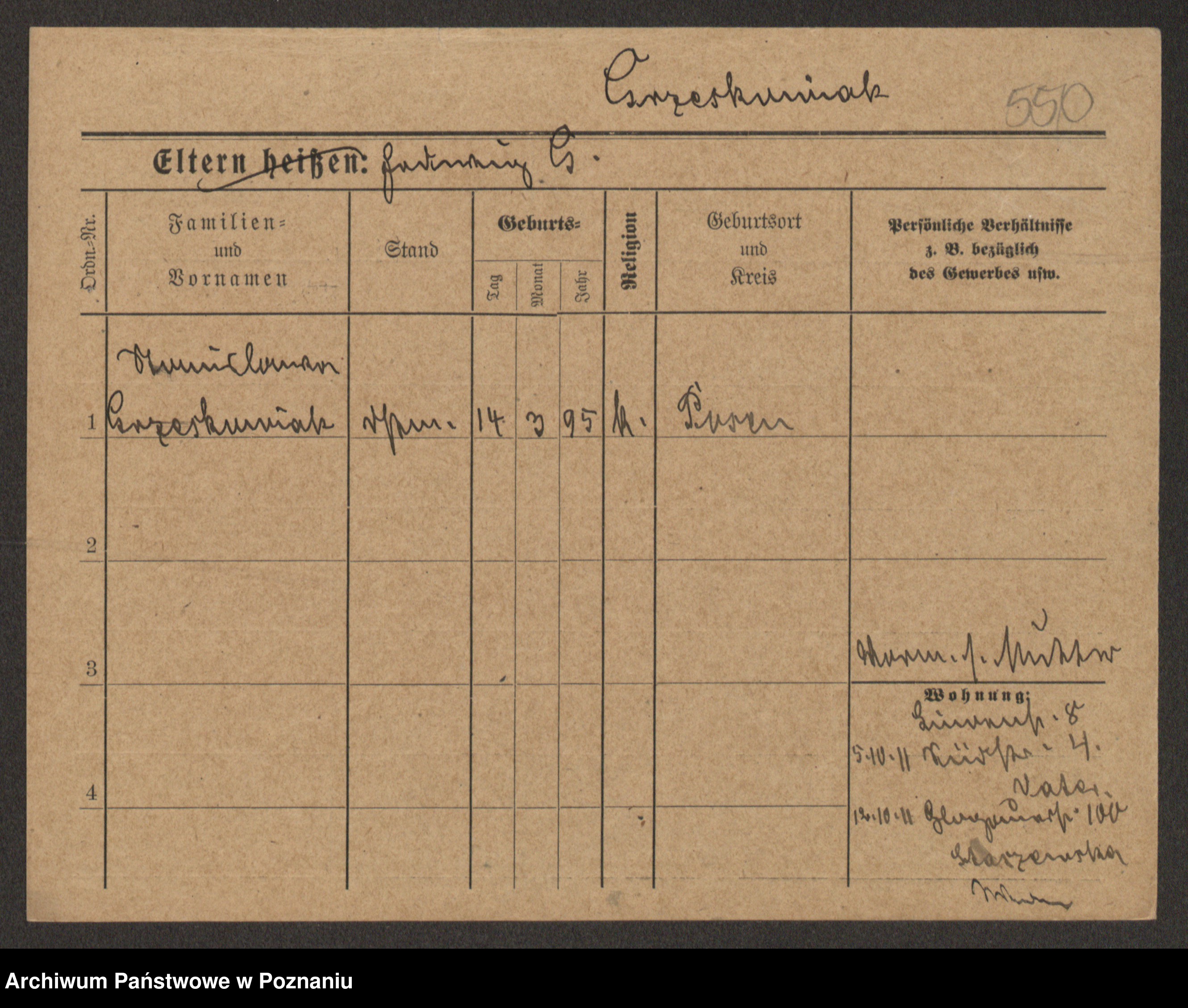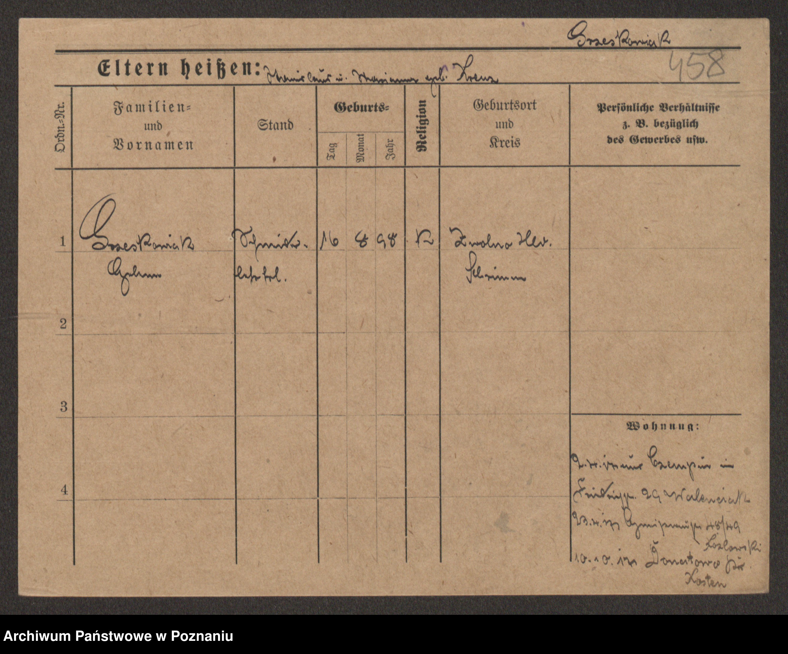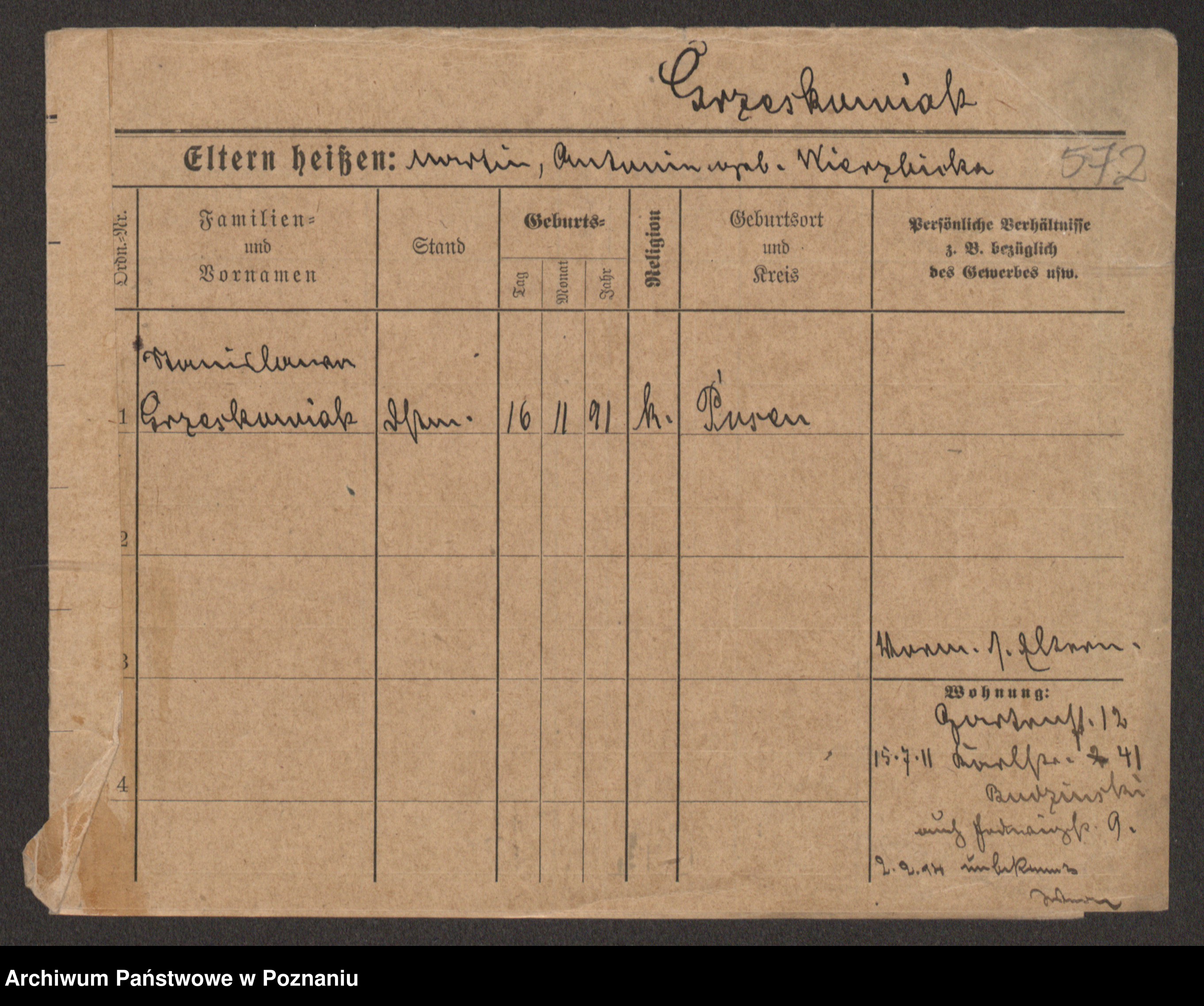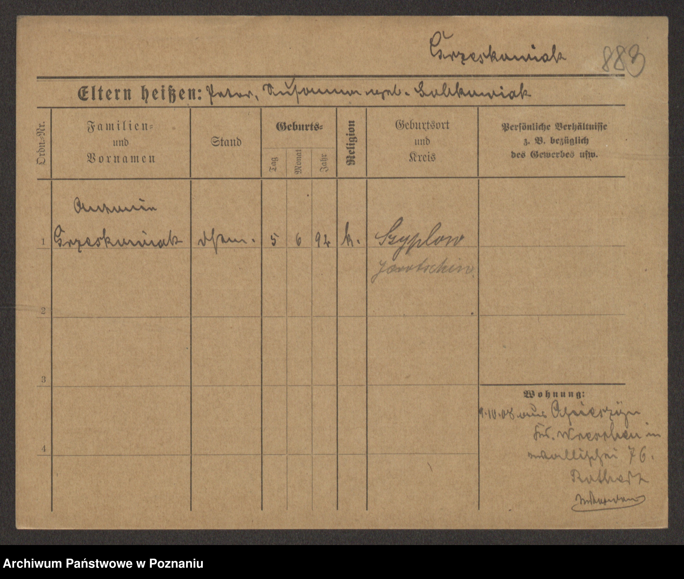 Grześkowiak z d.Wolinska I voto Bertrand, Wilhelmina