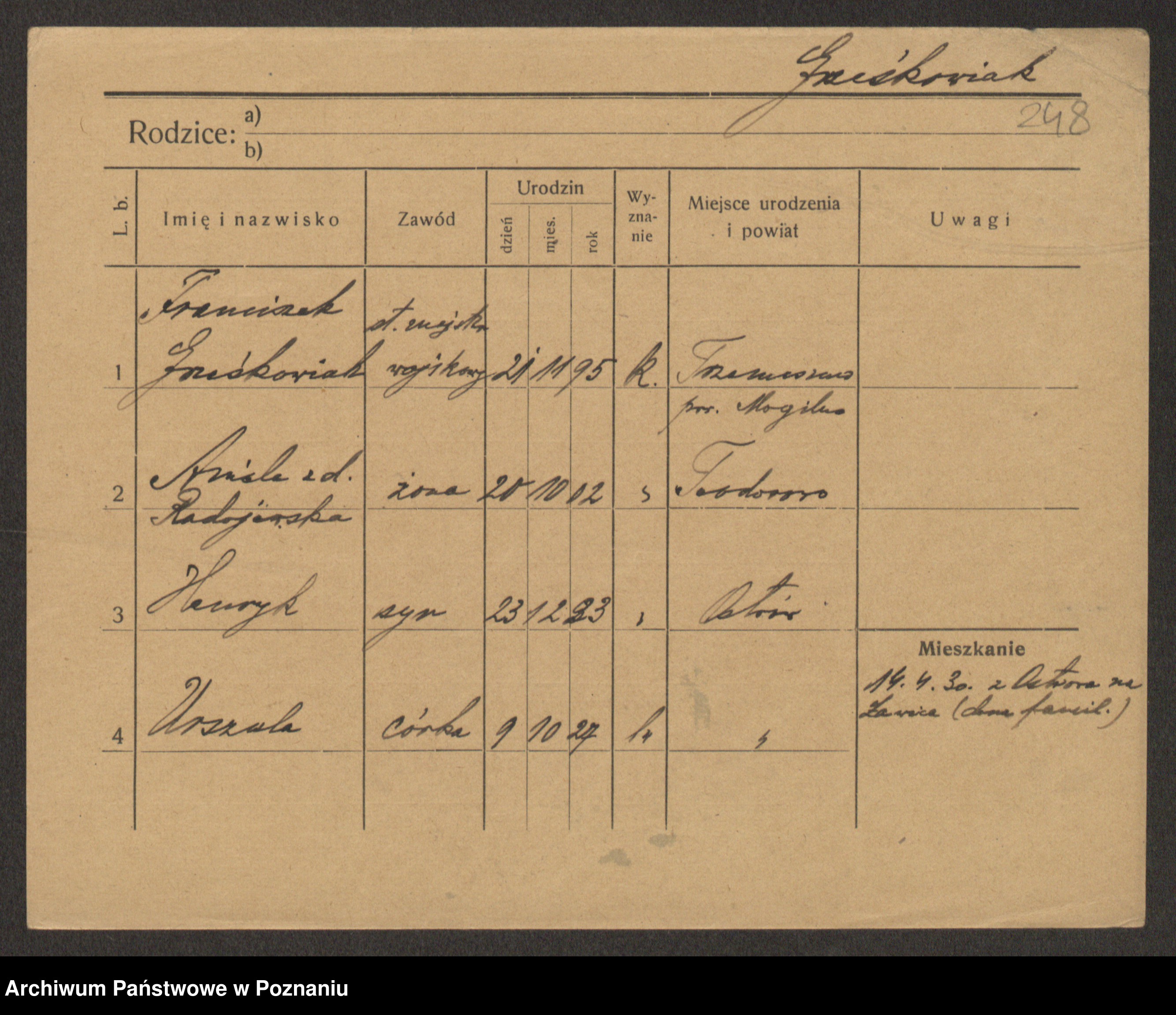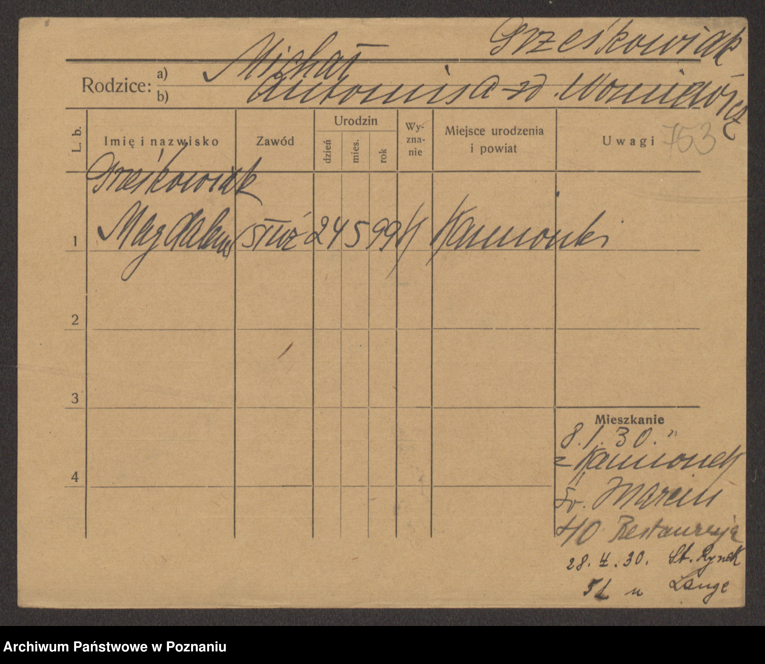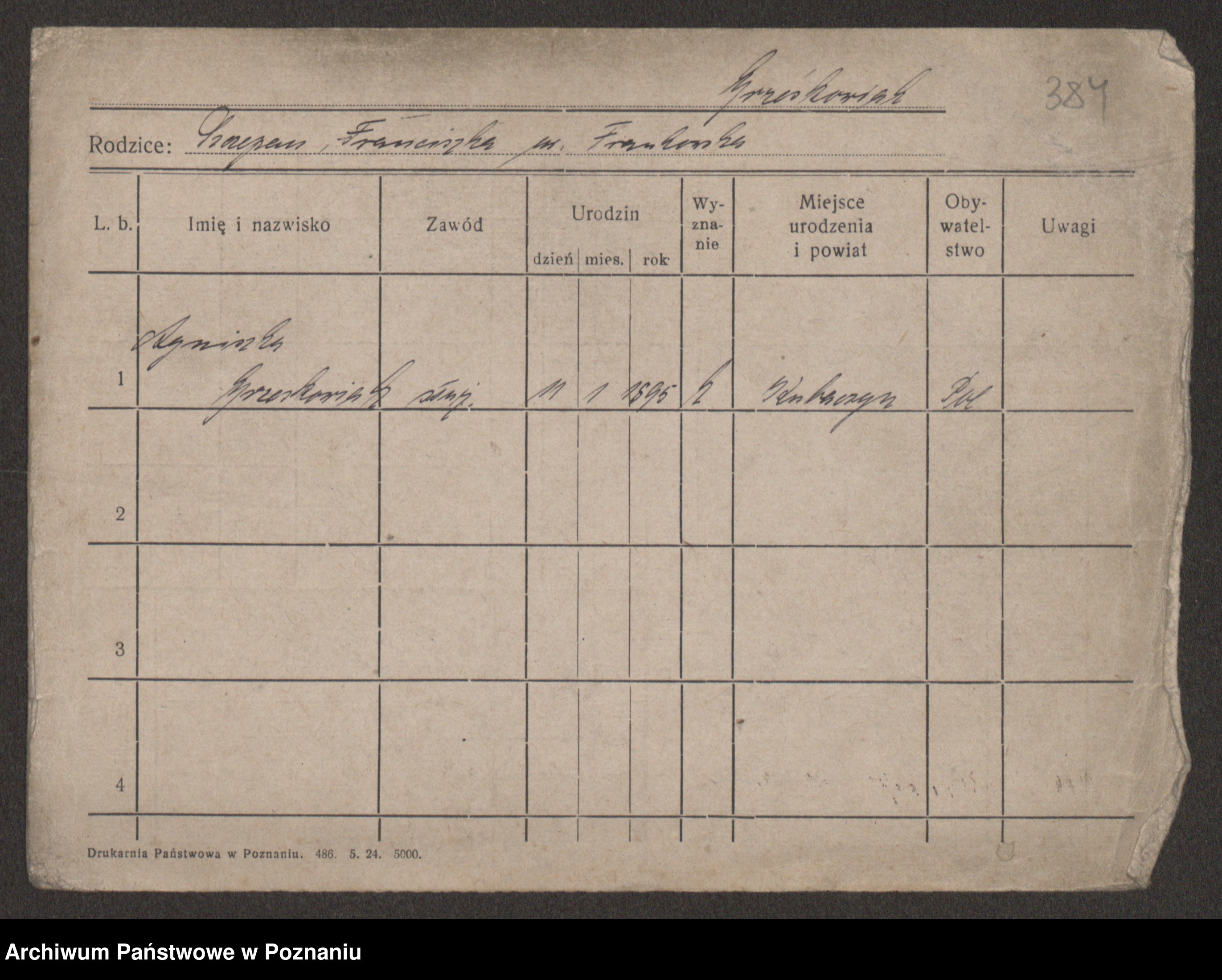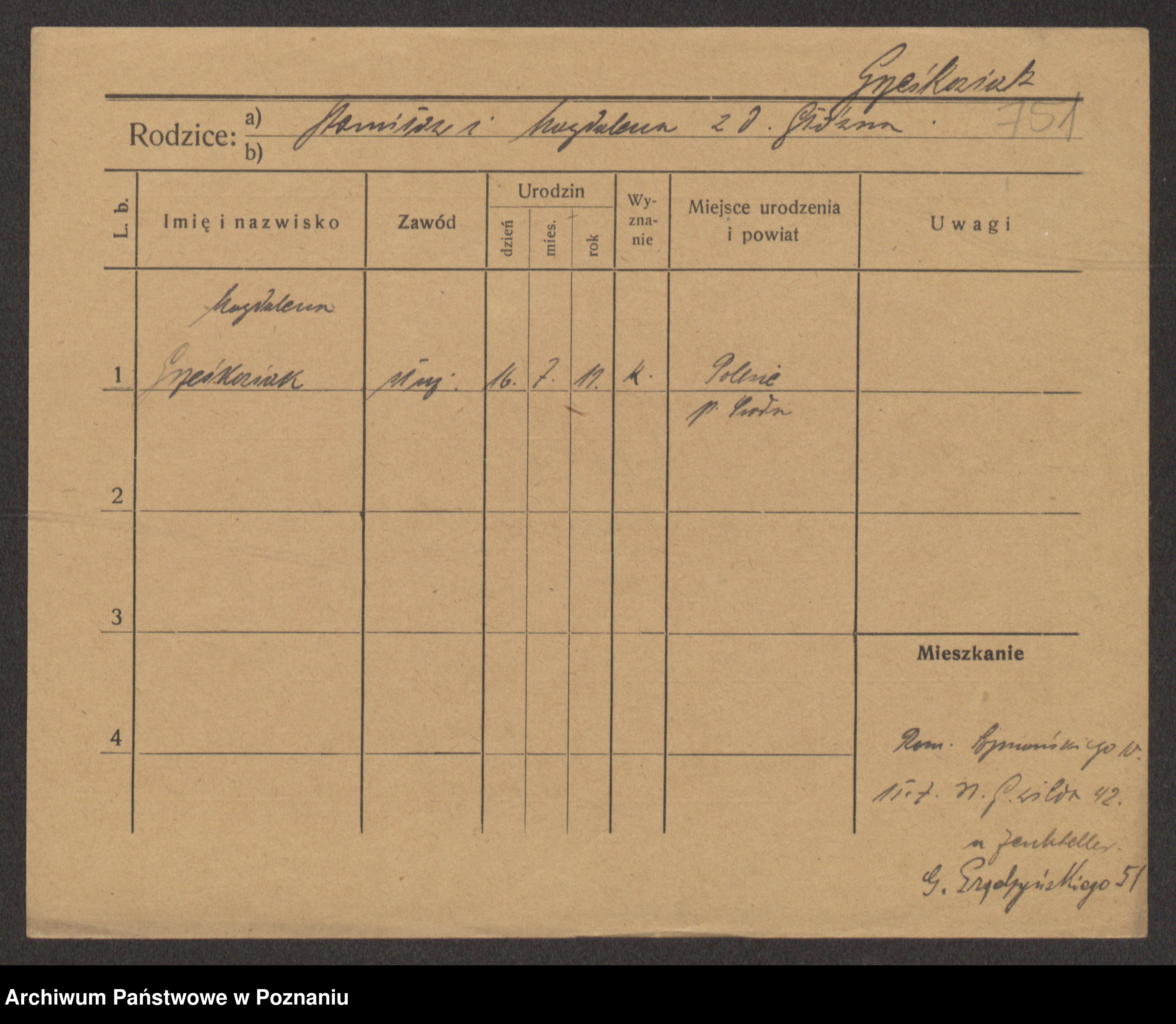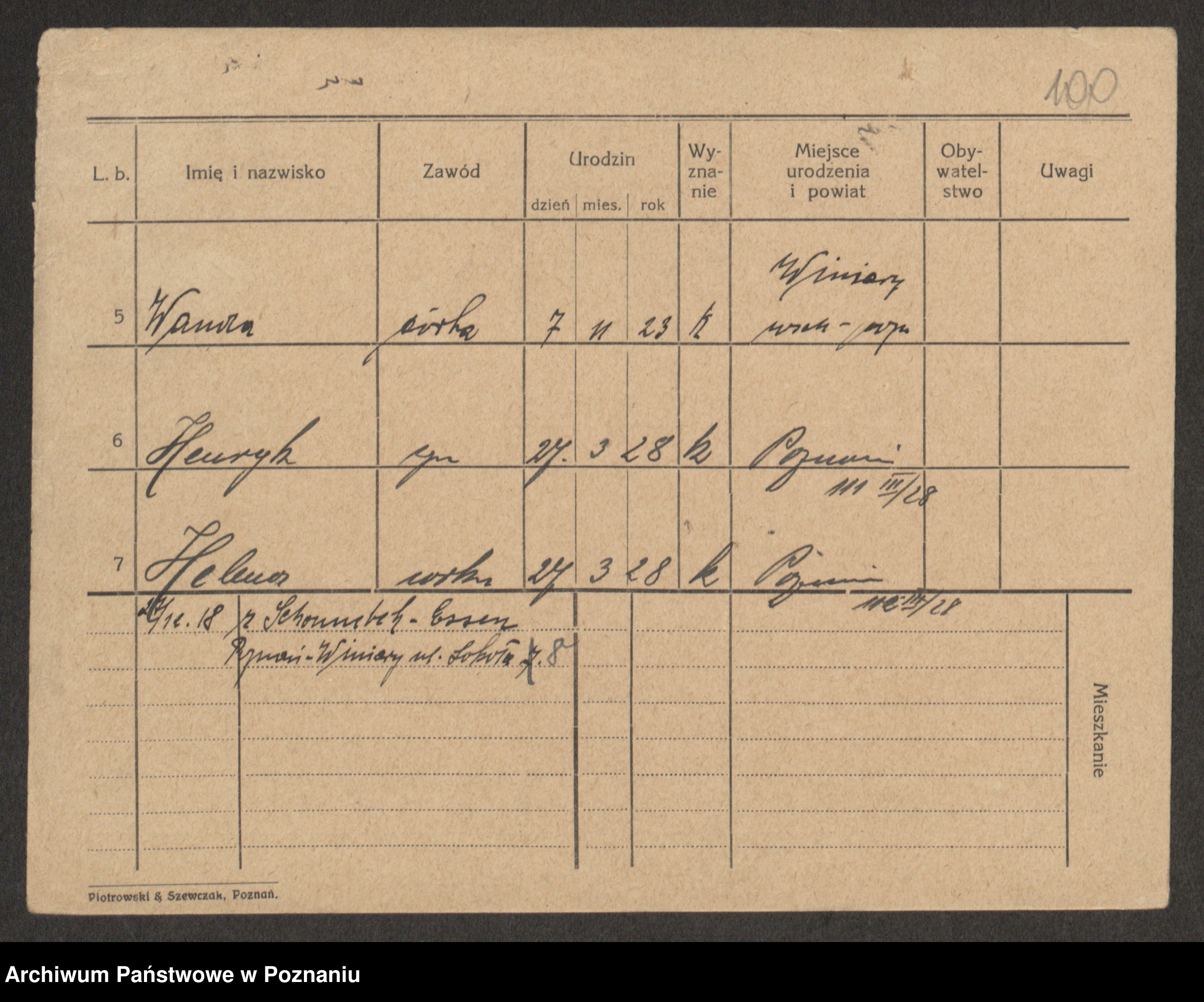 Podgląd karty osobowej dostępny jest po kliknięciu na nazwisko lub ikonkę karty. Można dokonywać powiększenia (ikony na górze) lub przechodzić między kolejnymi skanami (strzałki po bokach).