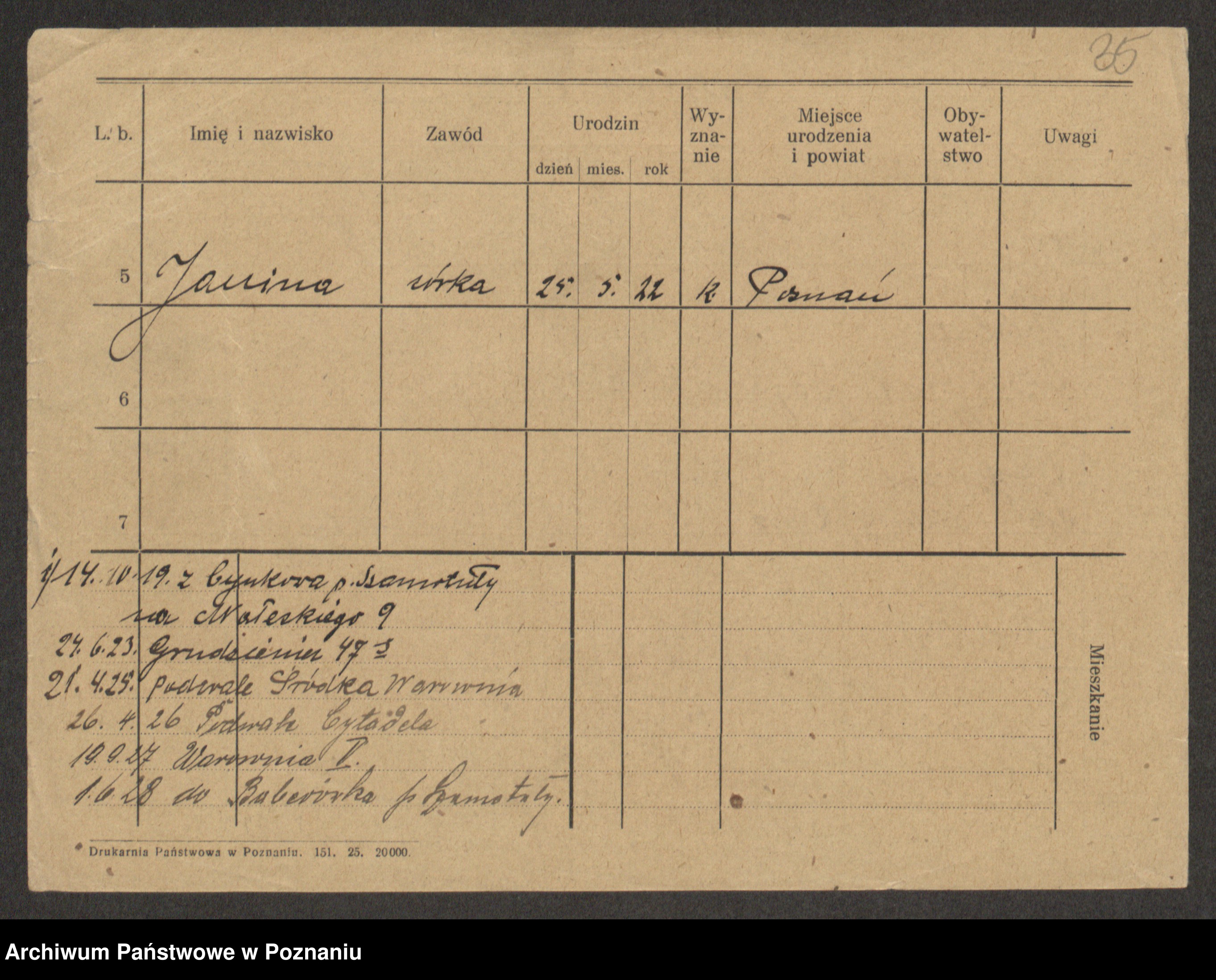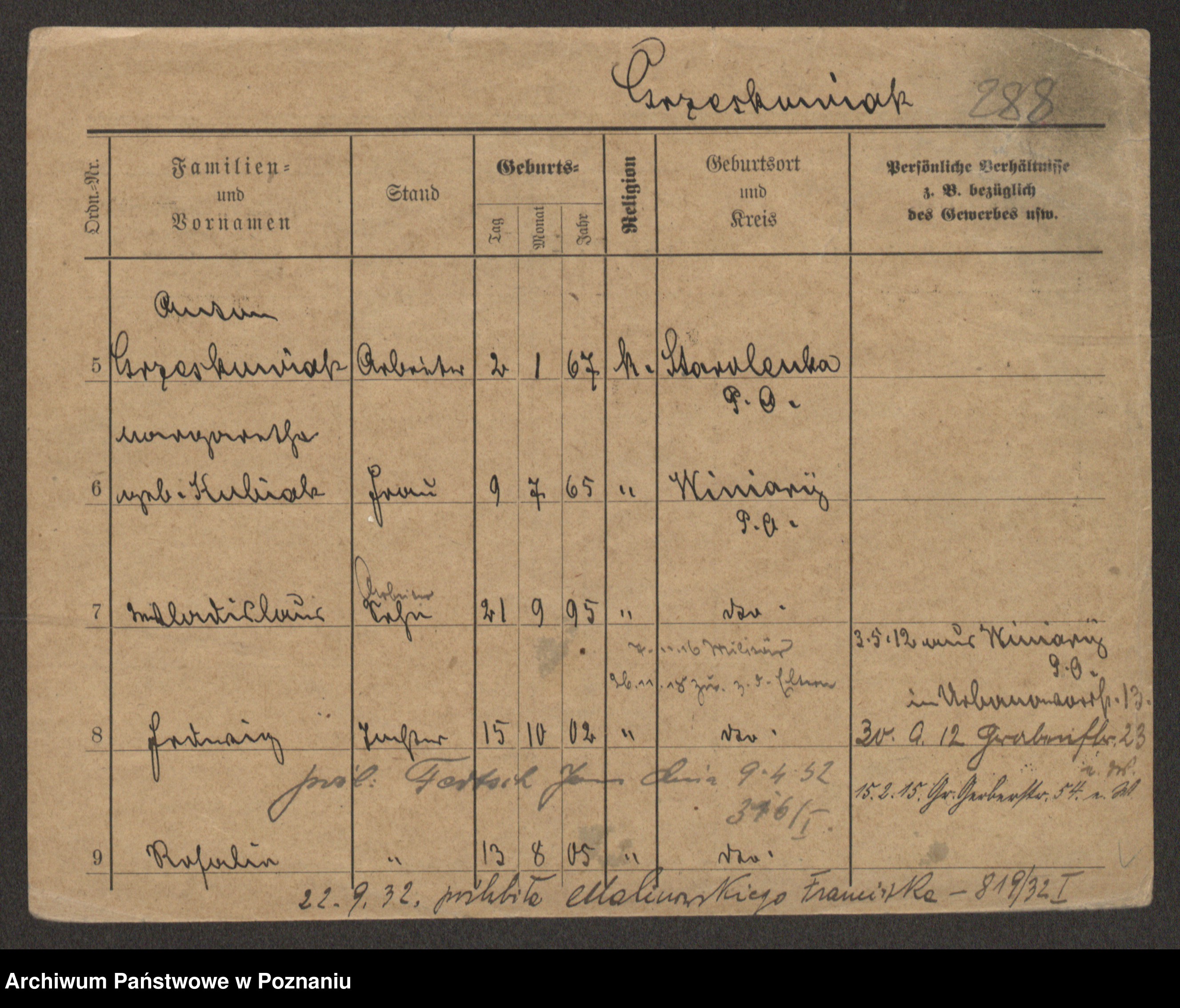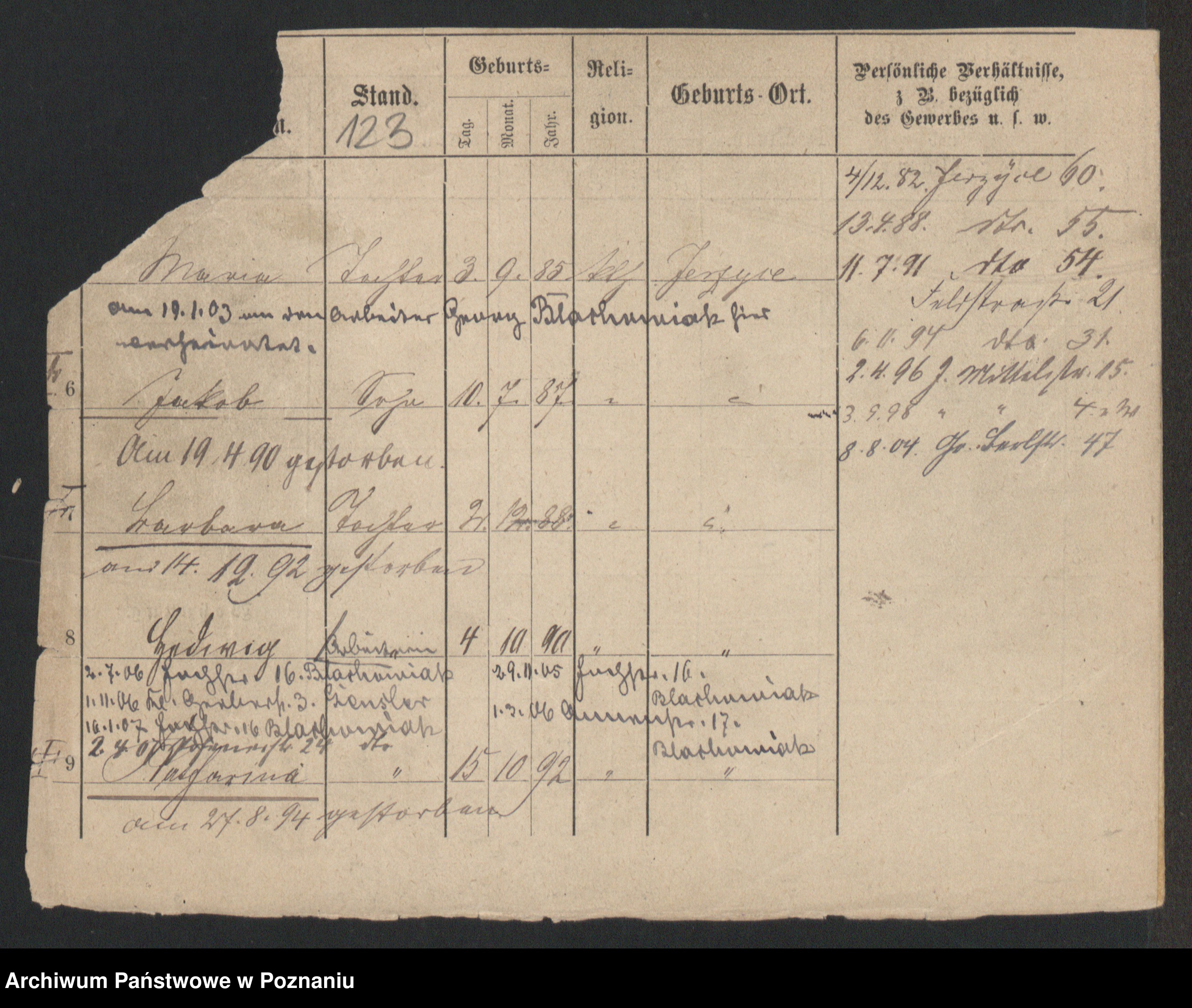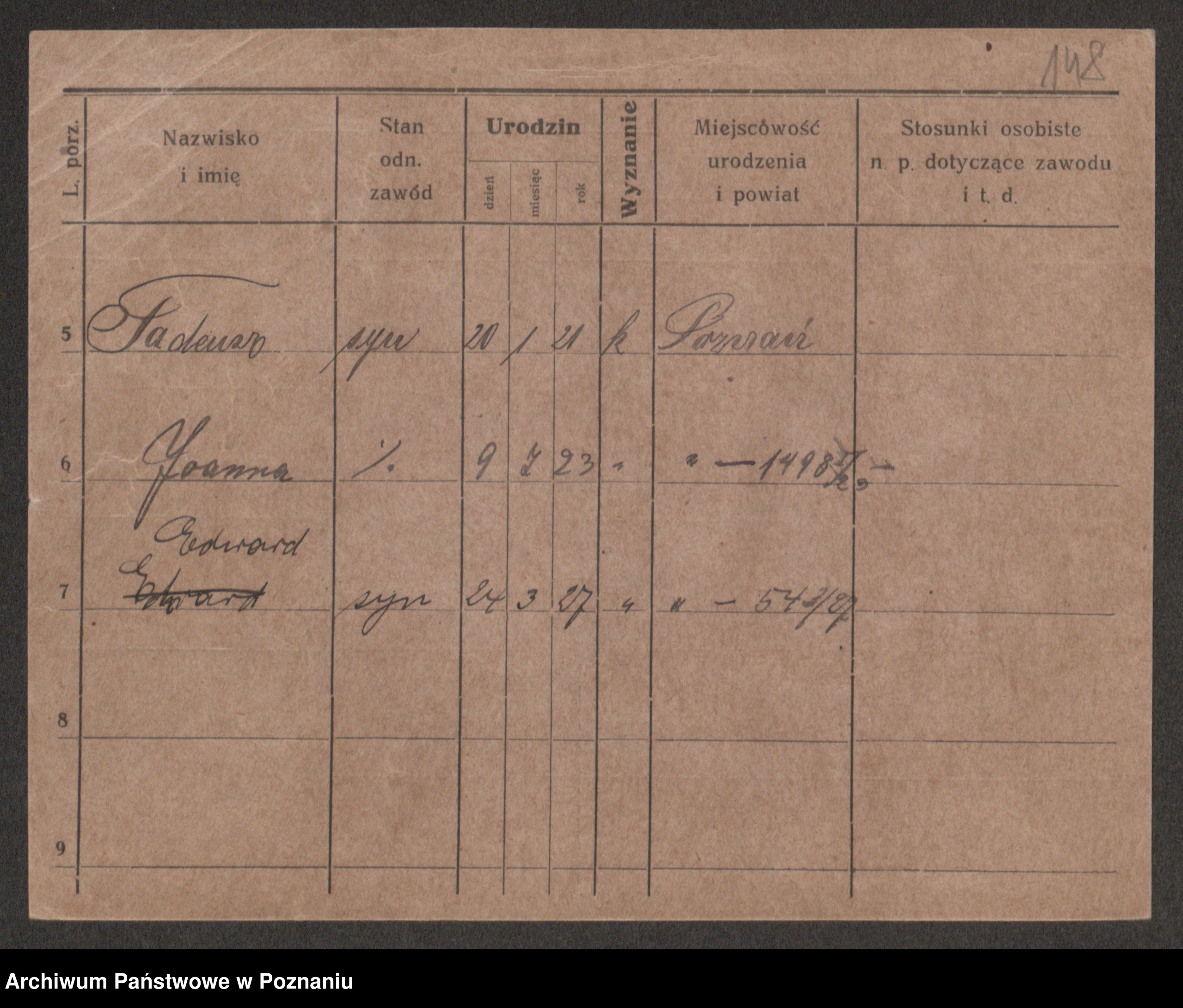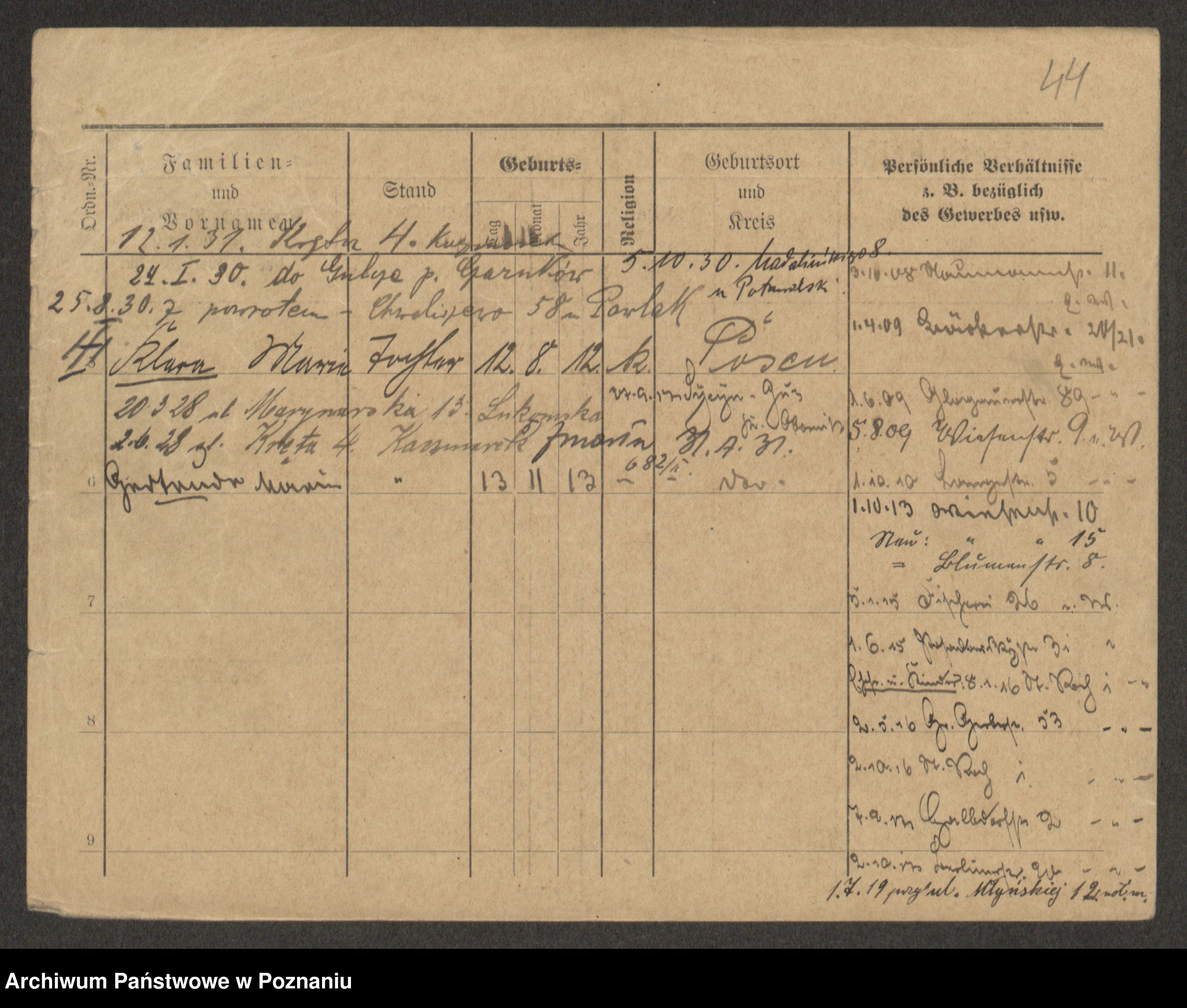 Podgląd karty osobowej dostępny jest po kliknięciu na nazwisko lub ikonkę karty. Można dokonywać powiększenia (ikony na górze) lub przechodzić między kolejnymi skanami (strzałki po bokach).