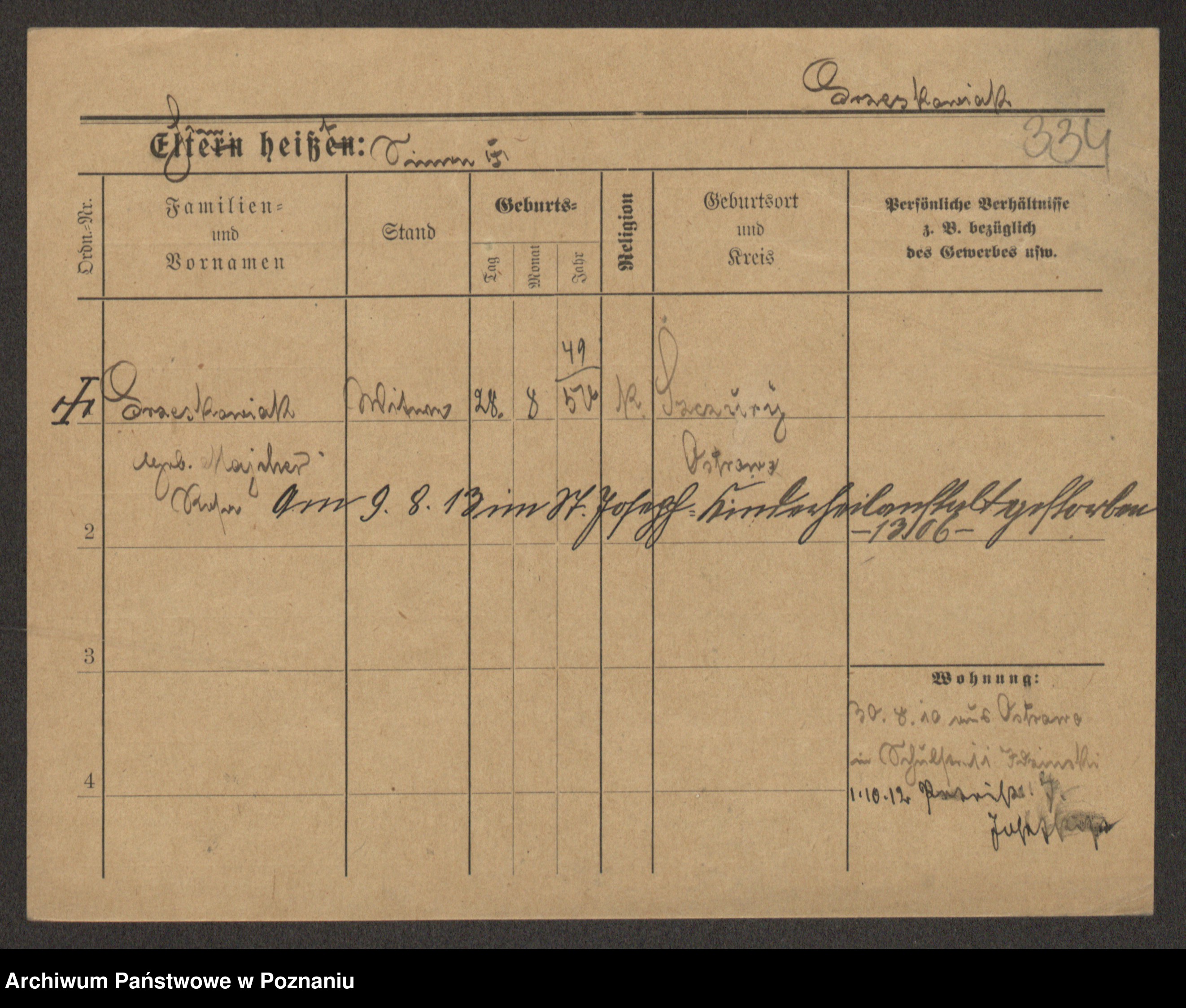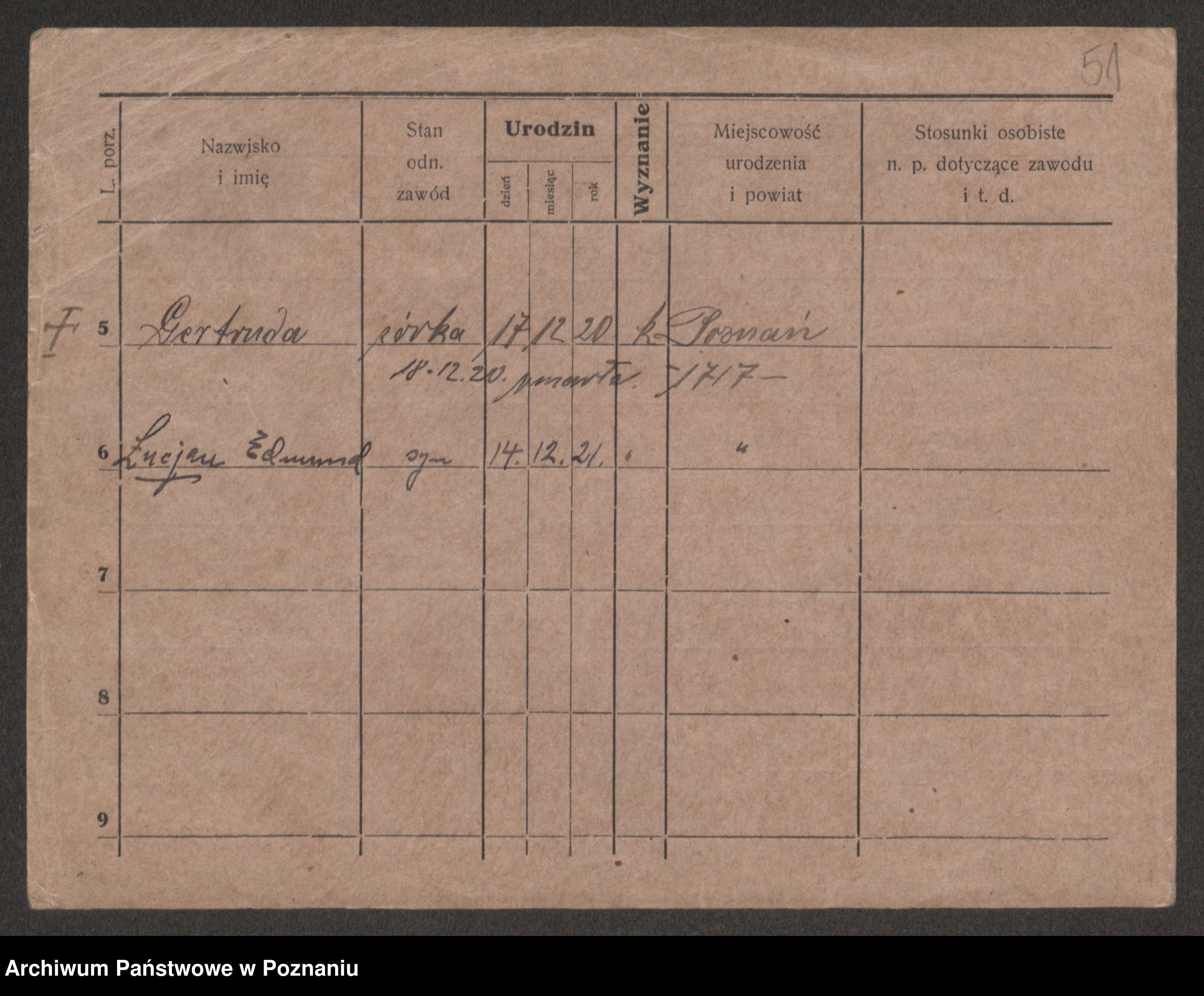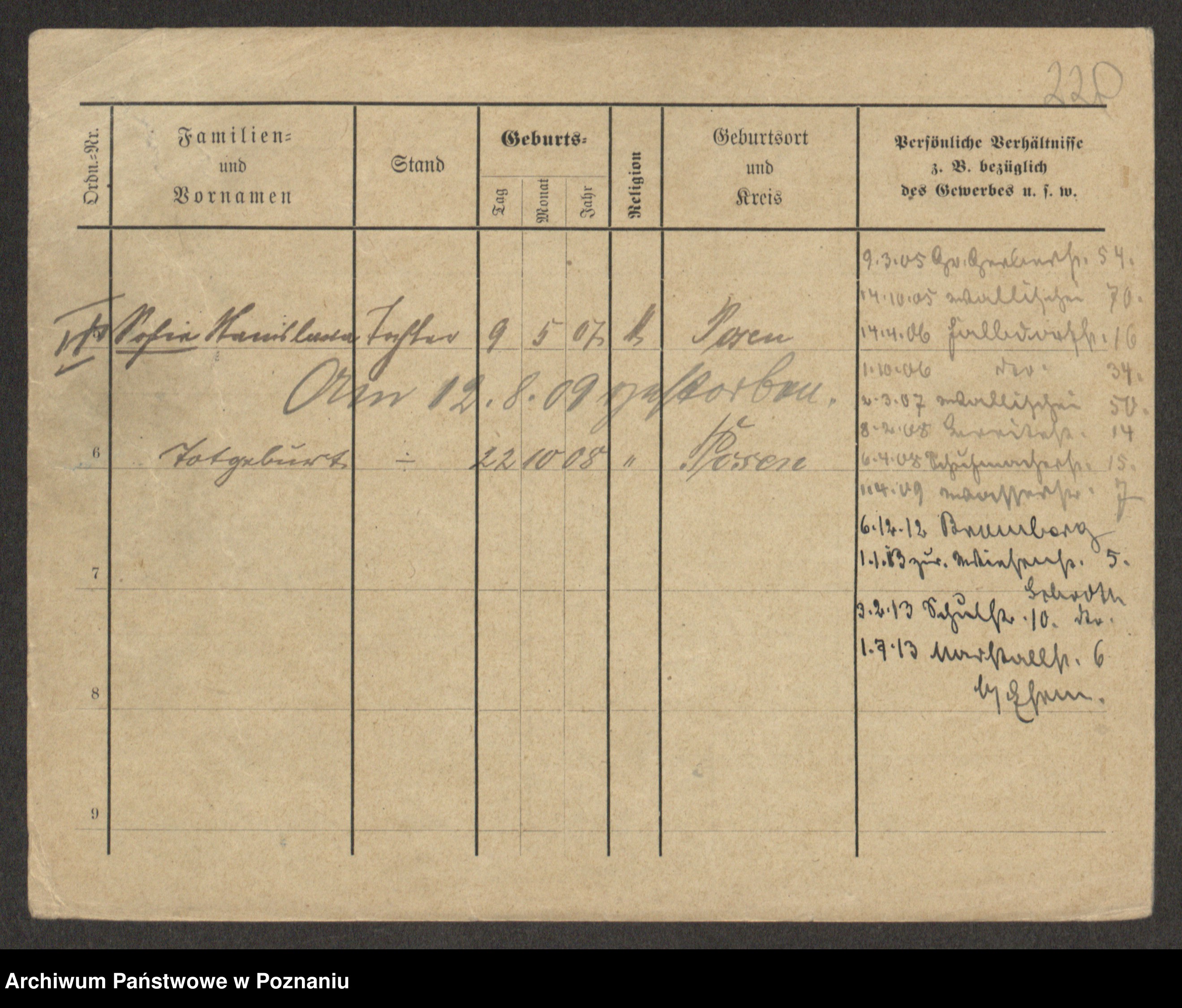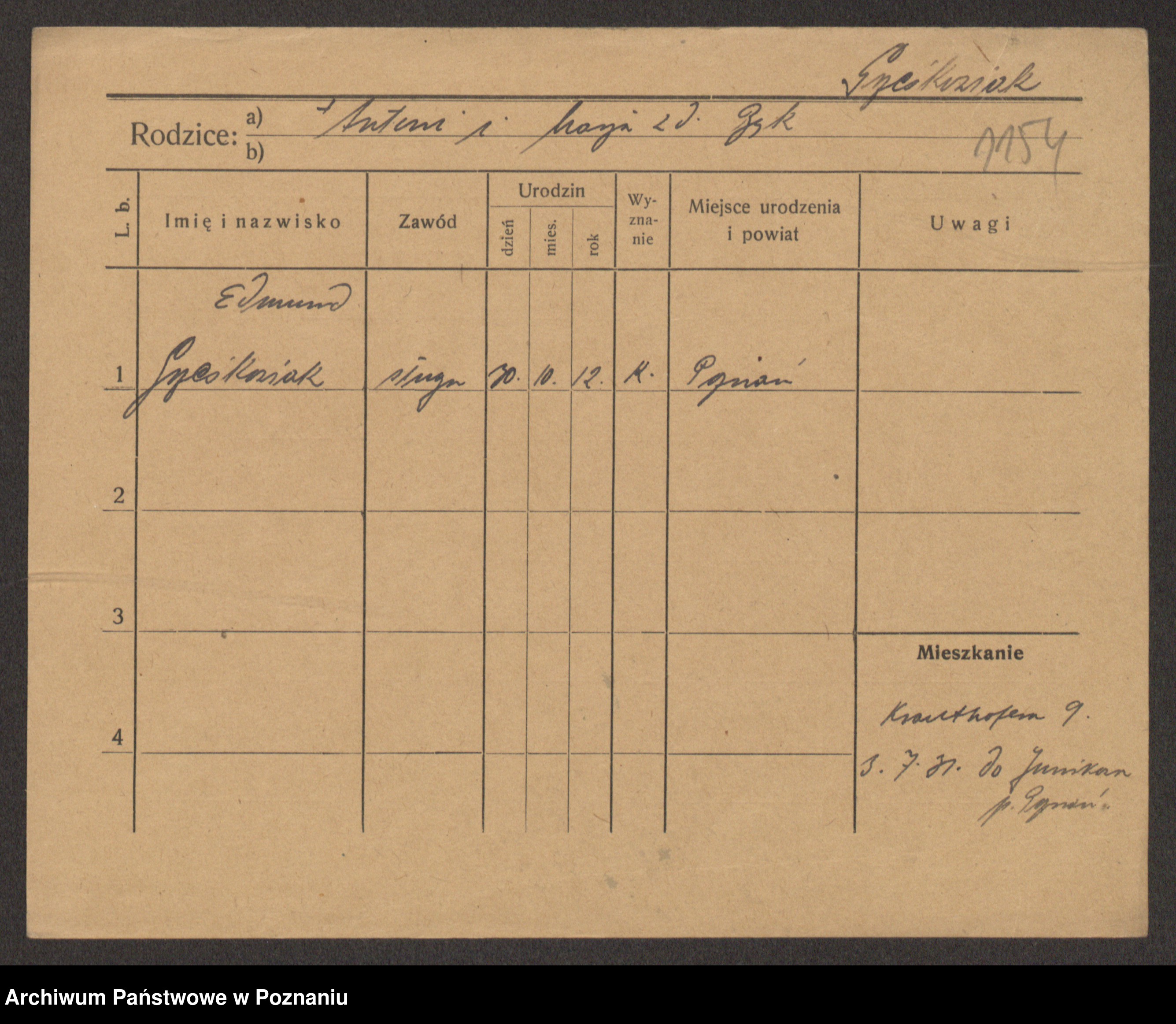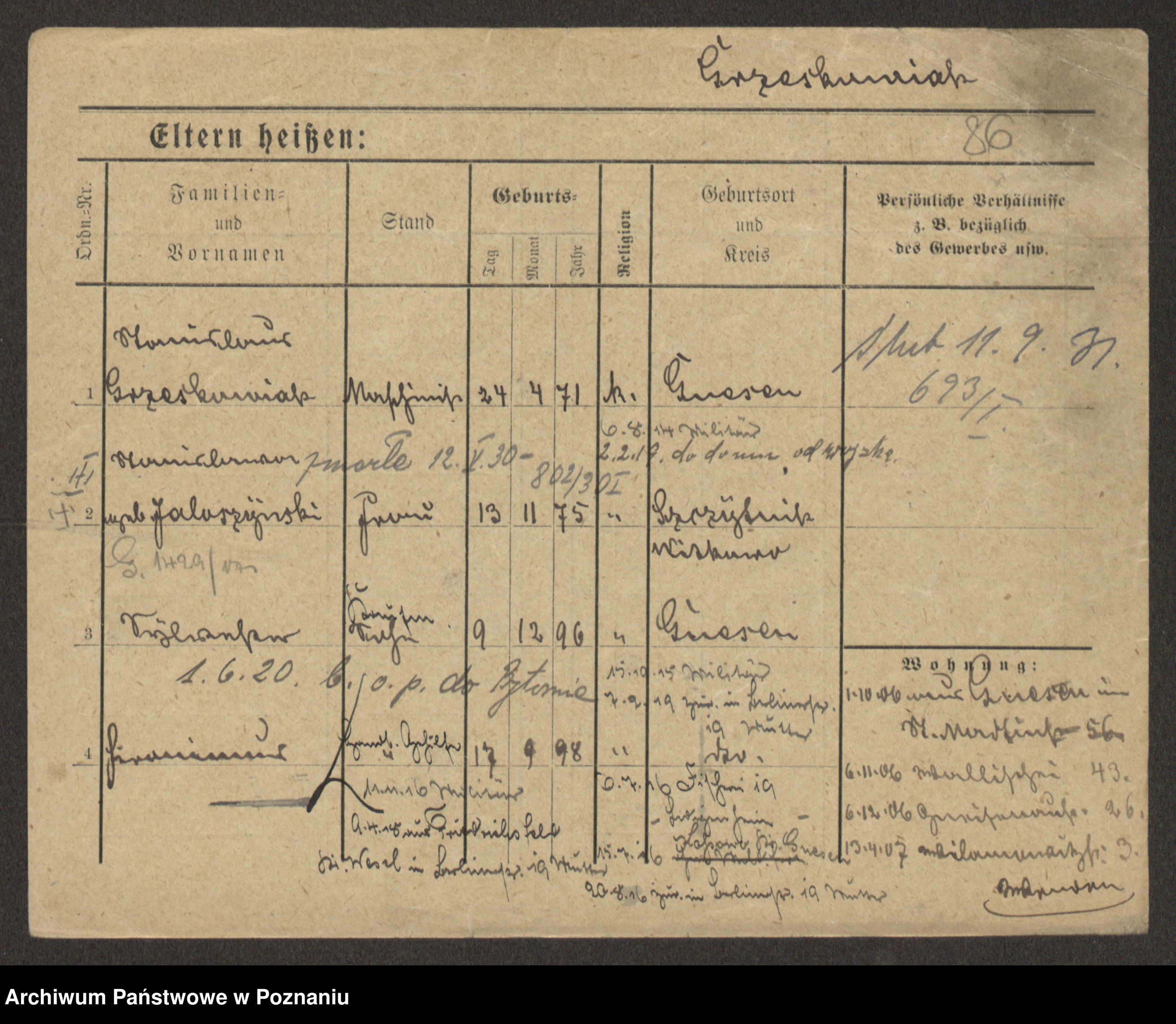 Podgląd karty osobowej dostępny jest po kliknięciu na nazwisko lub ikonkę karty. Można dokonywać powiększenia (ikony na górze) lub przechodzić między kolejnymi skanami (strzałki po bokach).