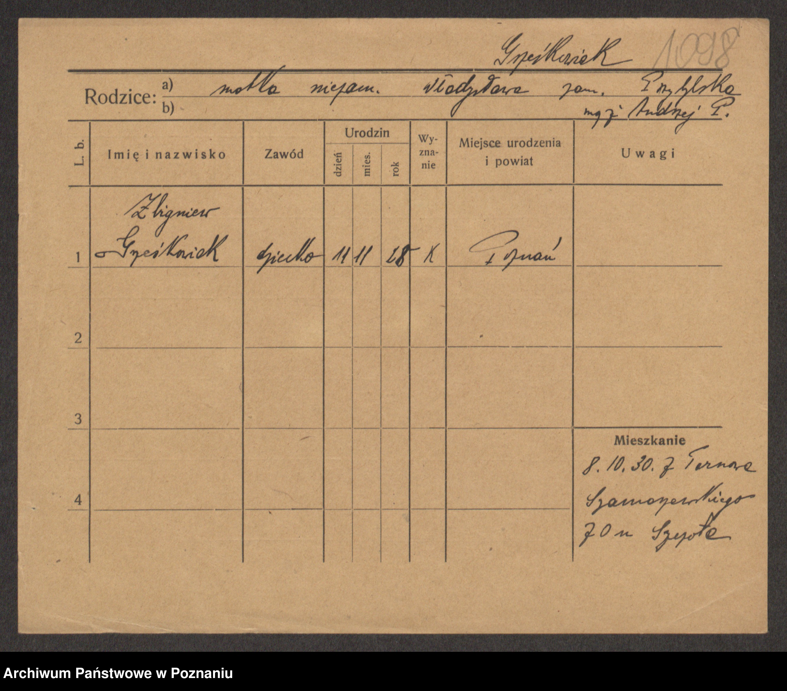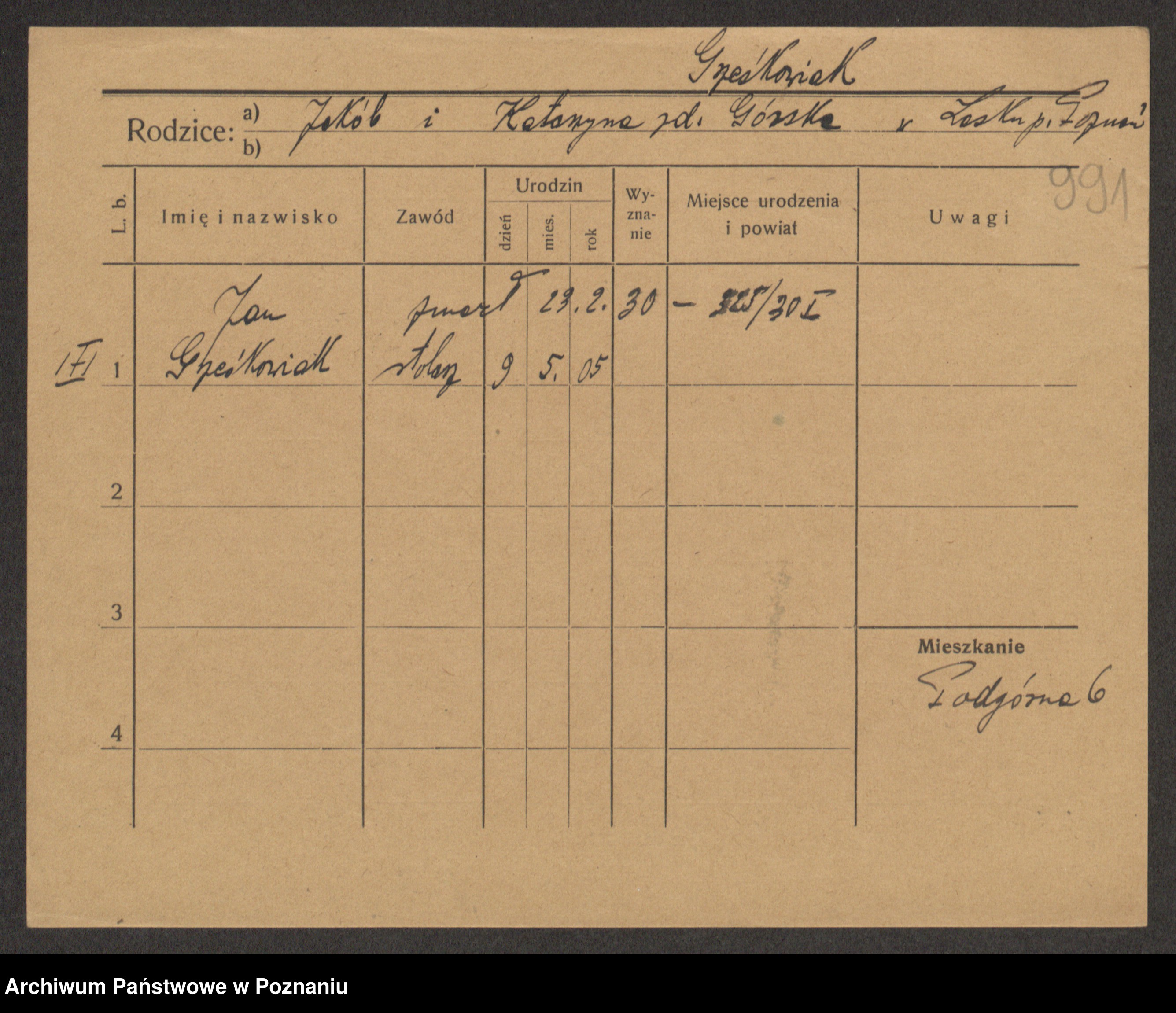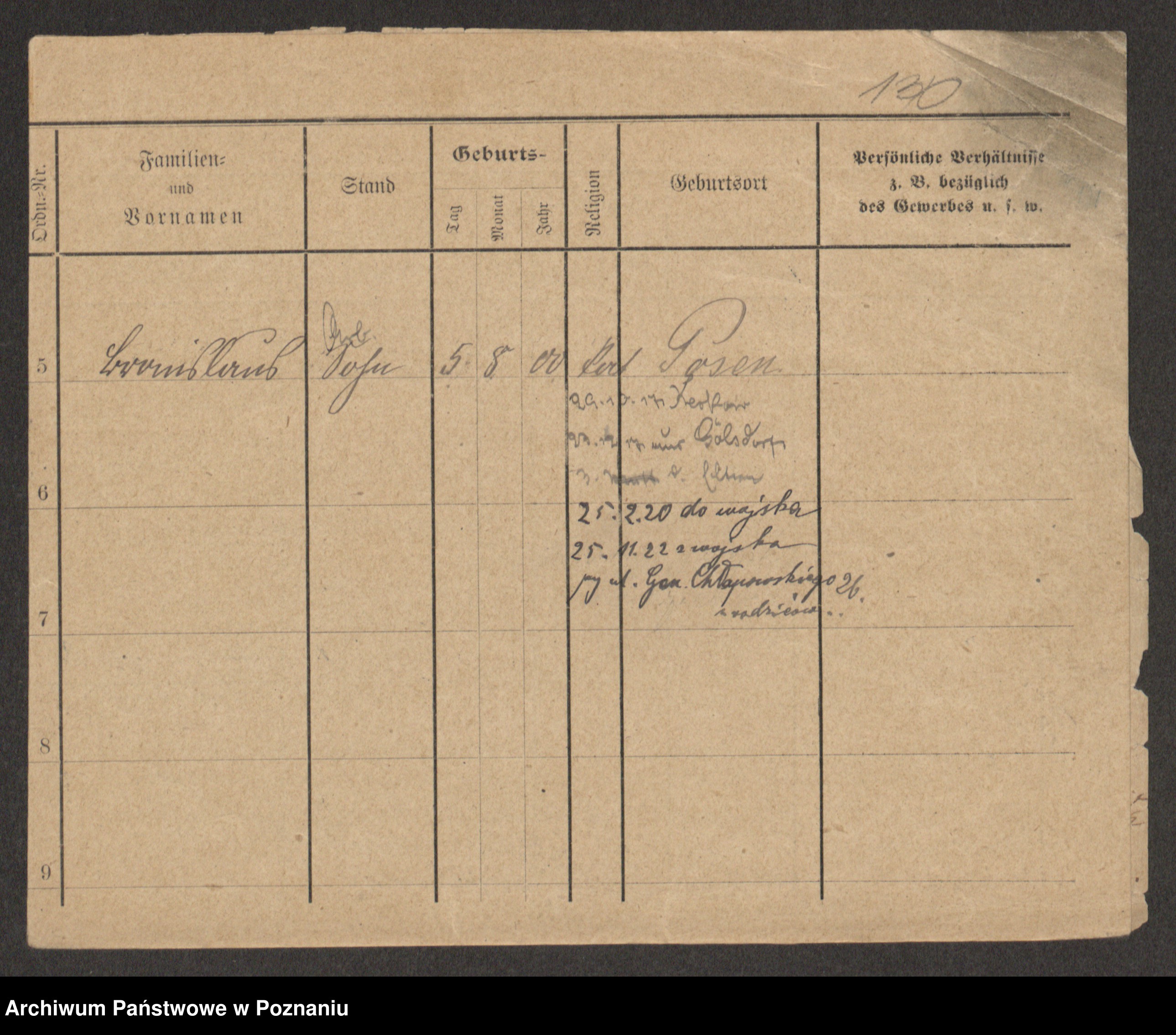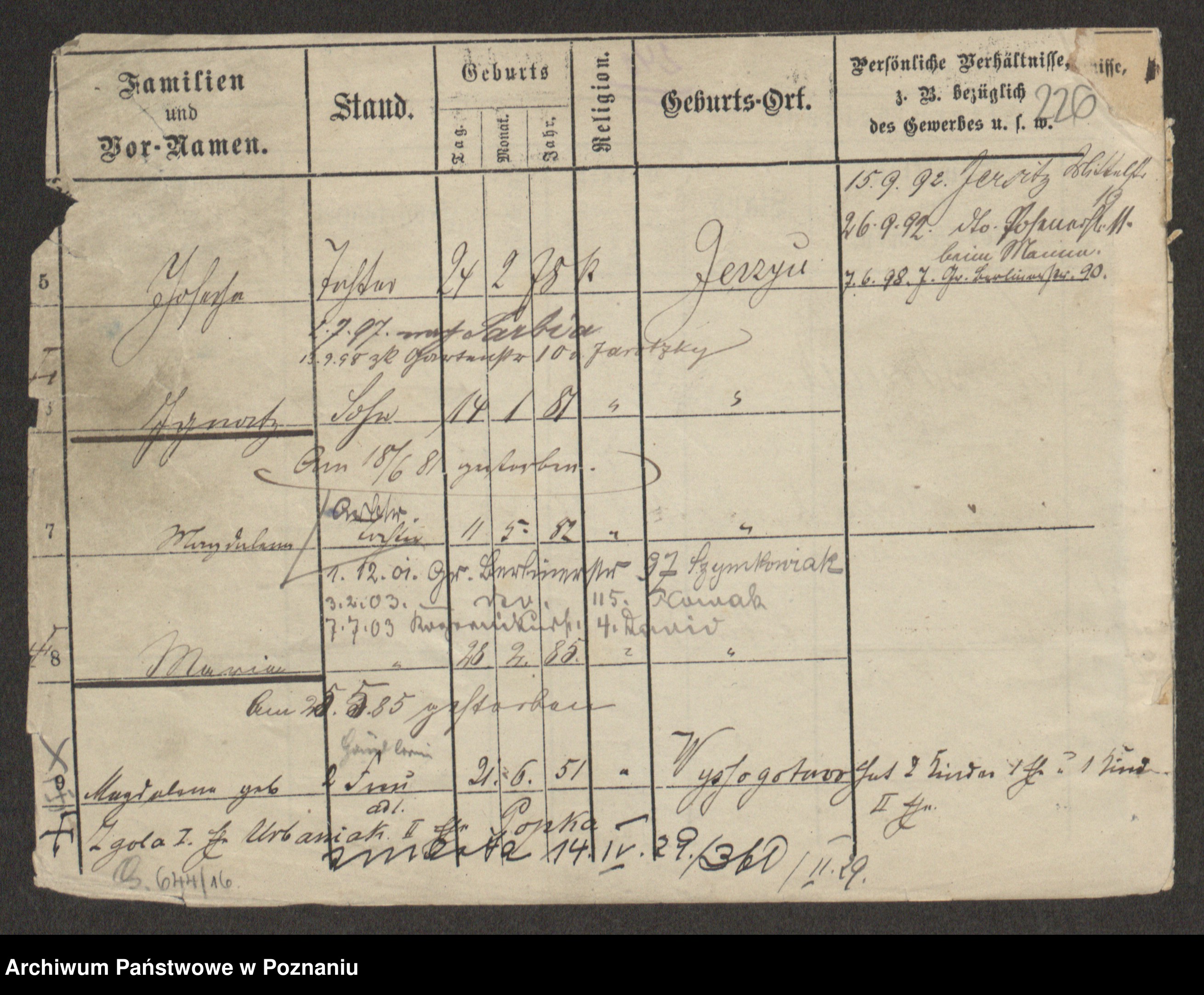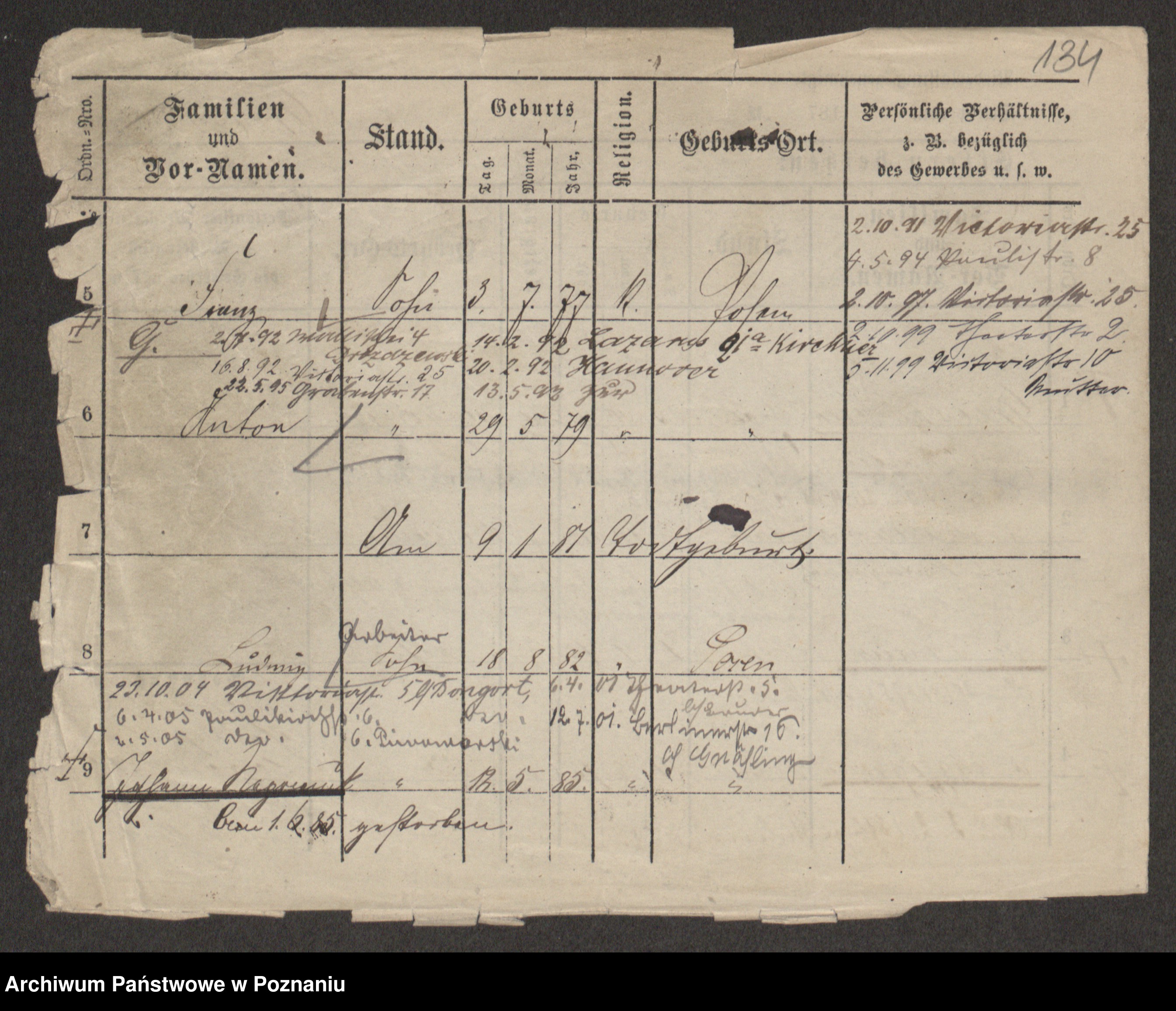 Podgląd karty osobowej dostępny jest po kliknięciu na nazwisko lub ikonkę karty. Można dokonywać powiększenia (ikony na górze) lub przechodzić między kolejnymi skanami (strzałki po bokach).