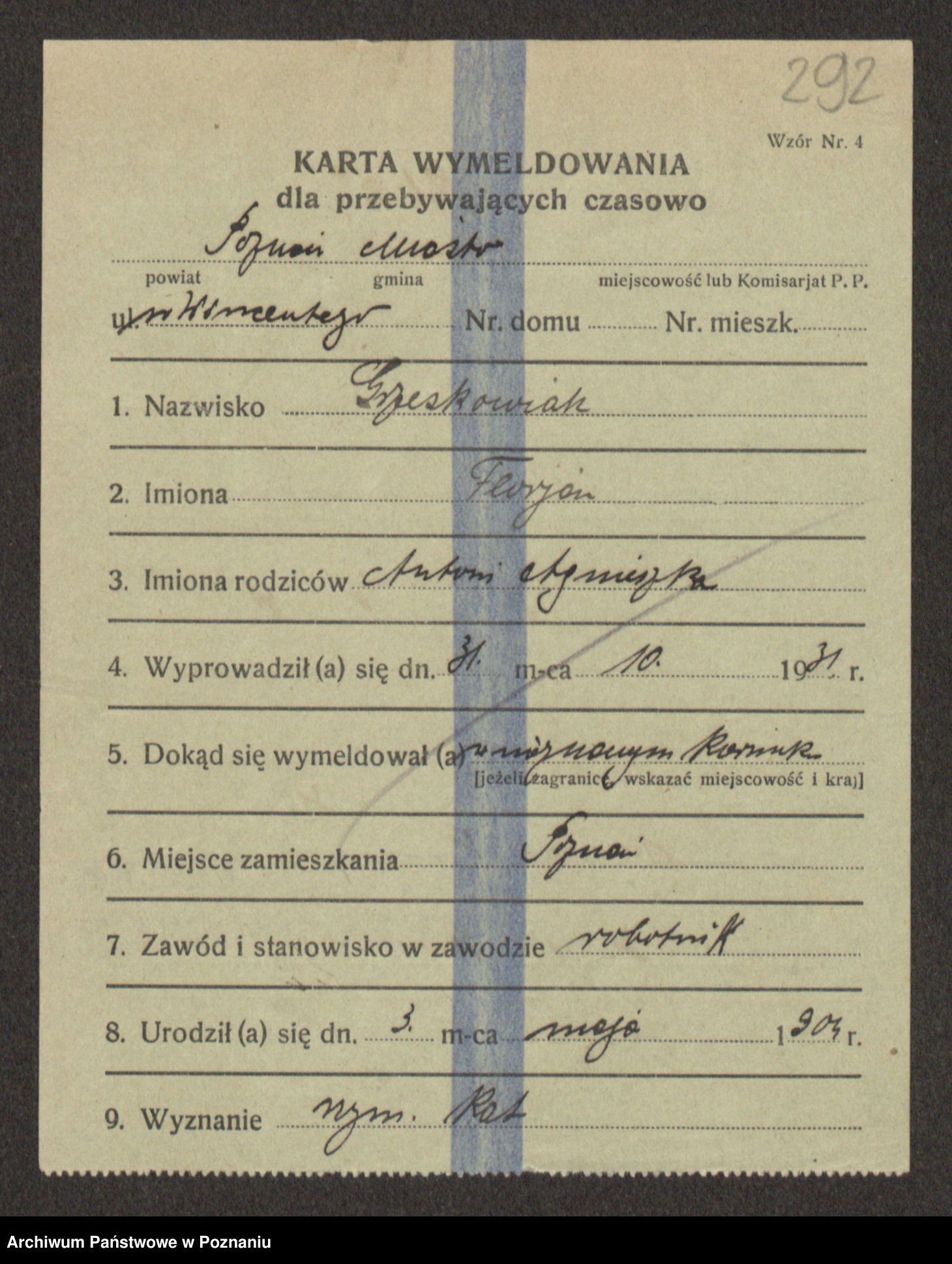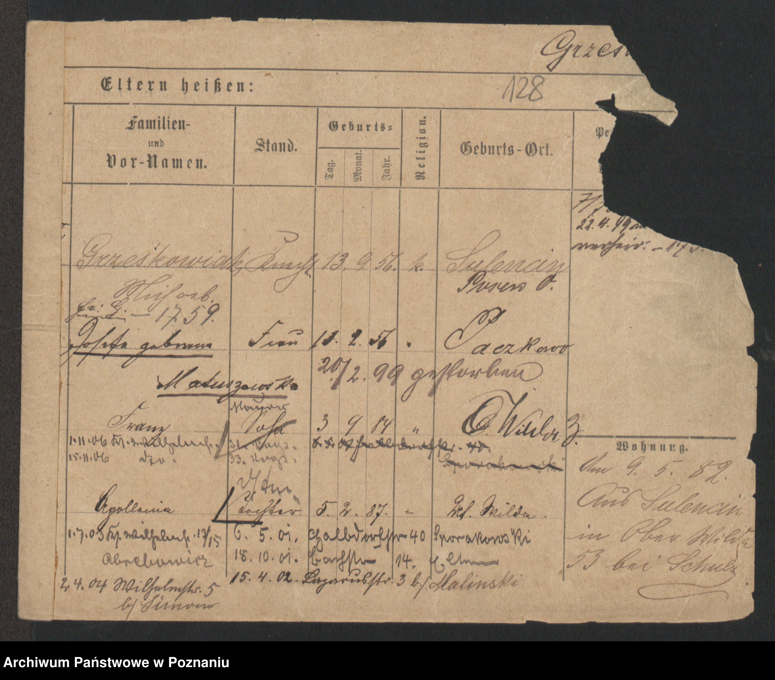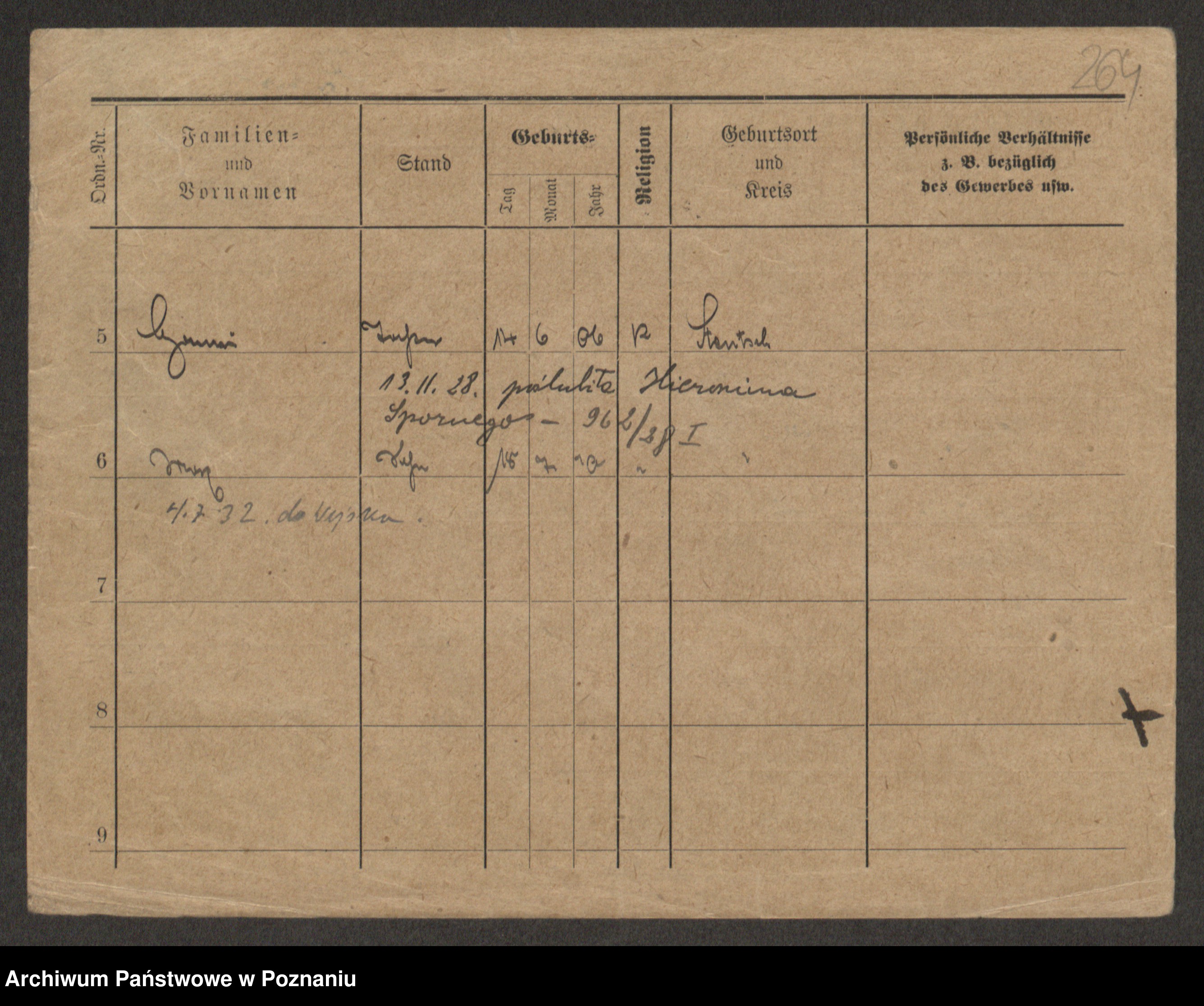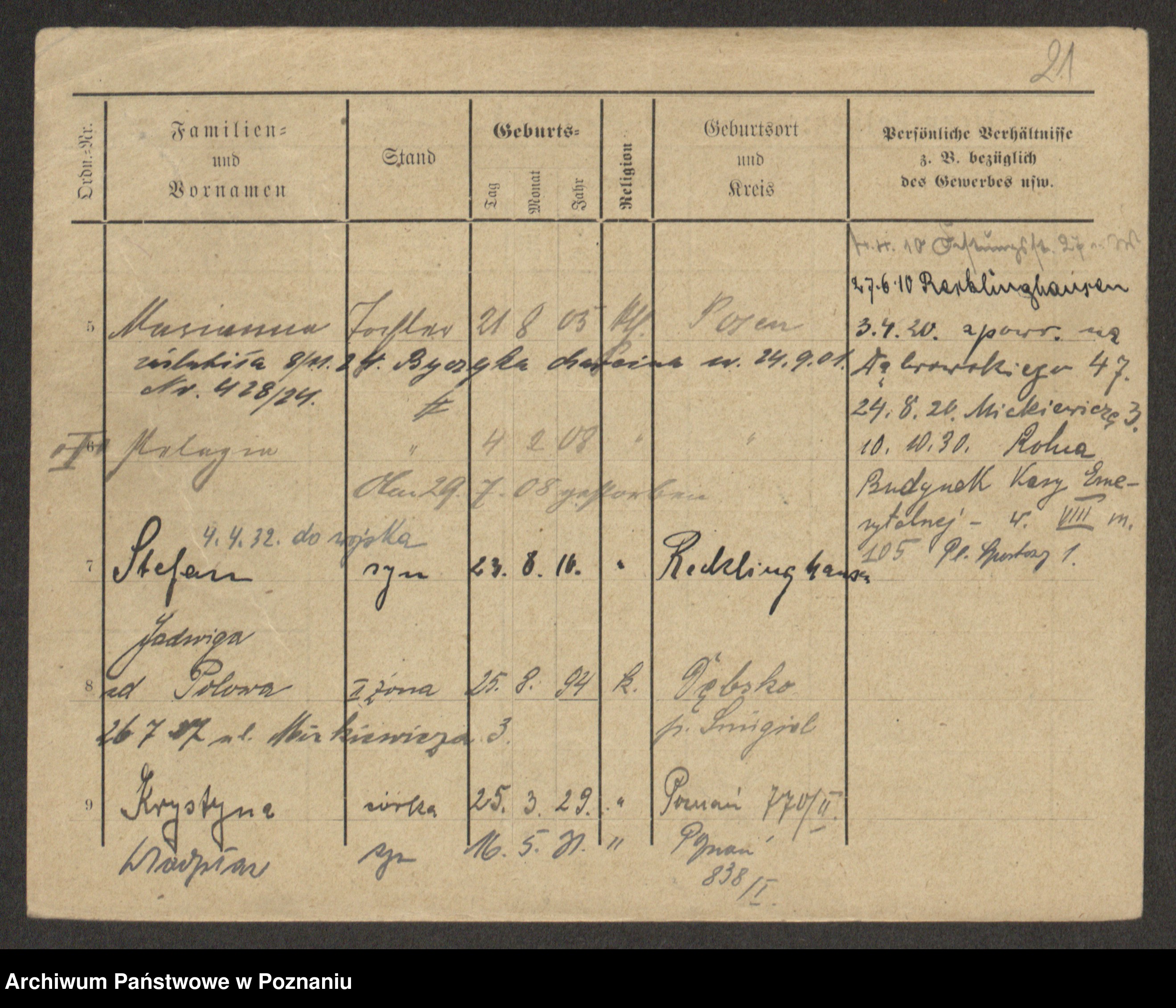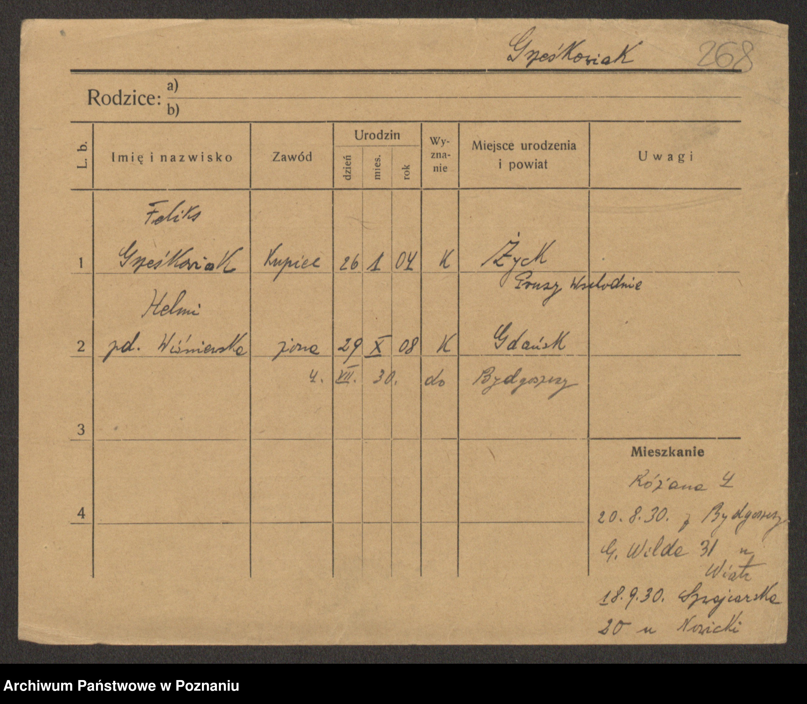 Podgląd karty osobowej dostępny jest po kliknięciu na nazwisko lub ikonkę karty. Można dokonywać powiększenia (ikony na górze) lub przechodzić między kolejnymi skanami (strzałki po bokach).