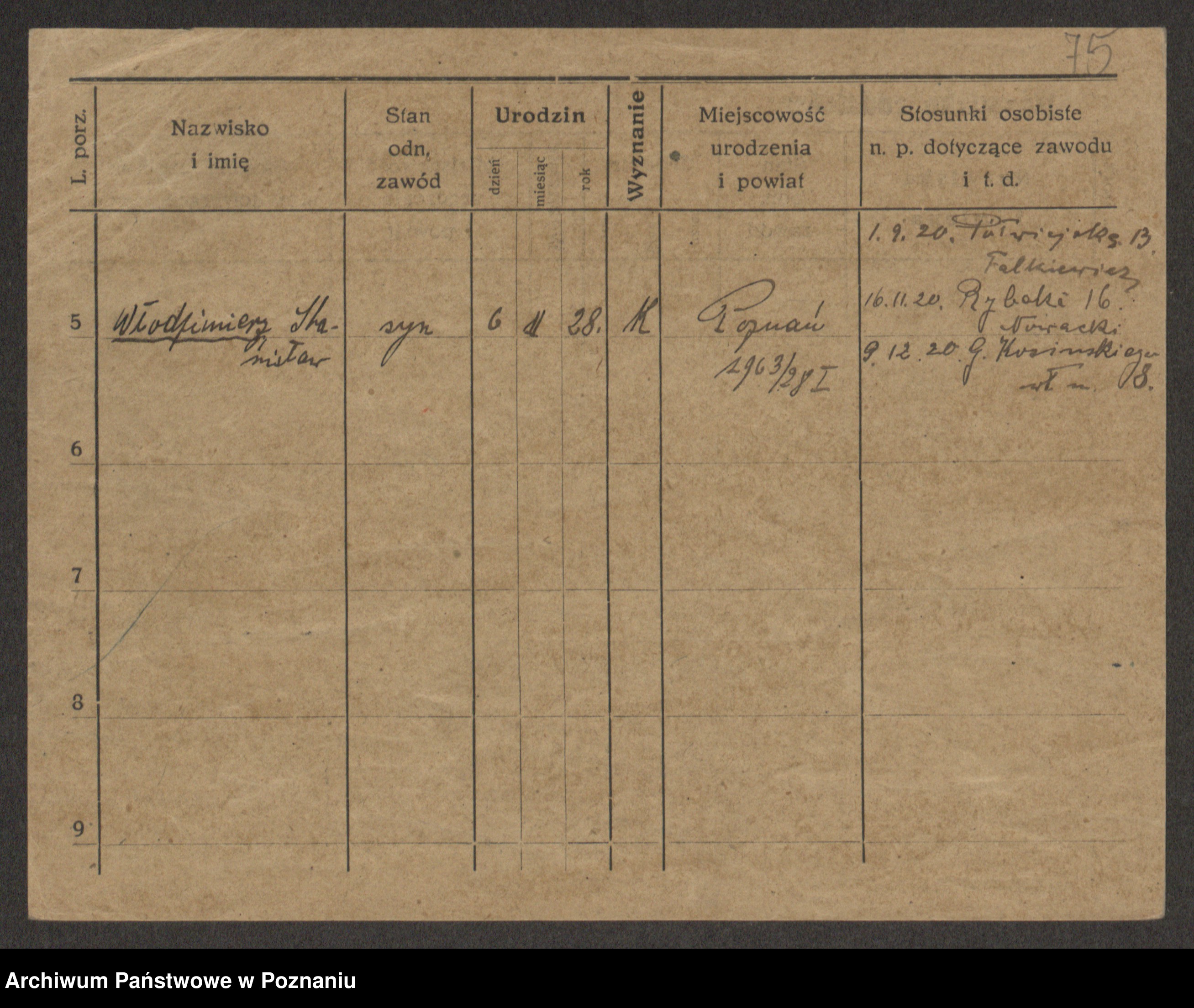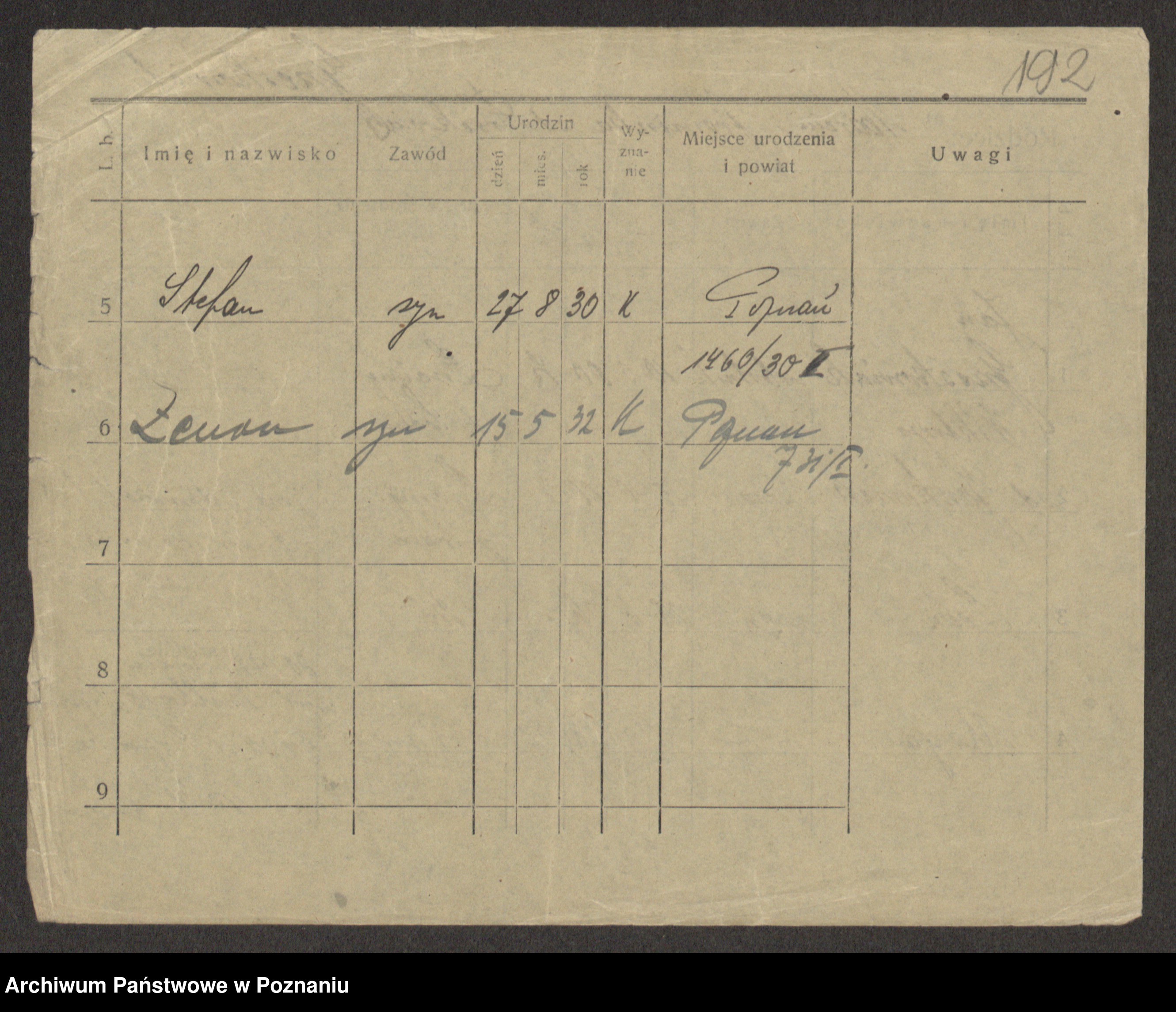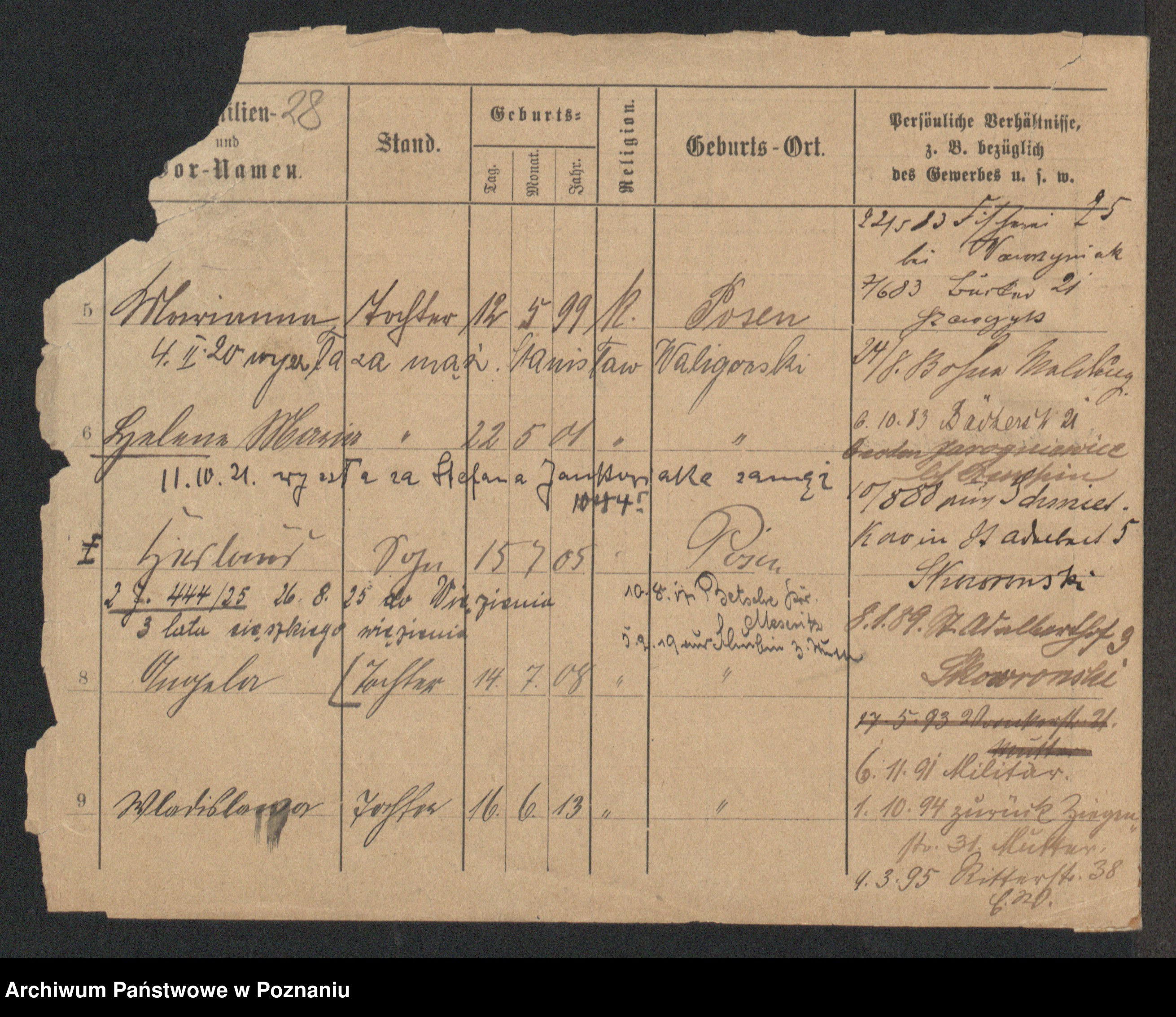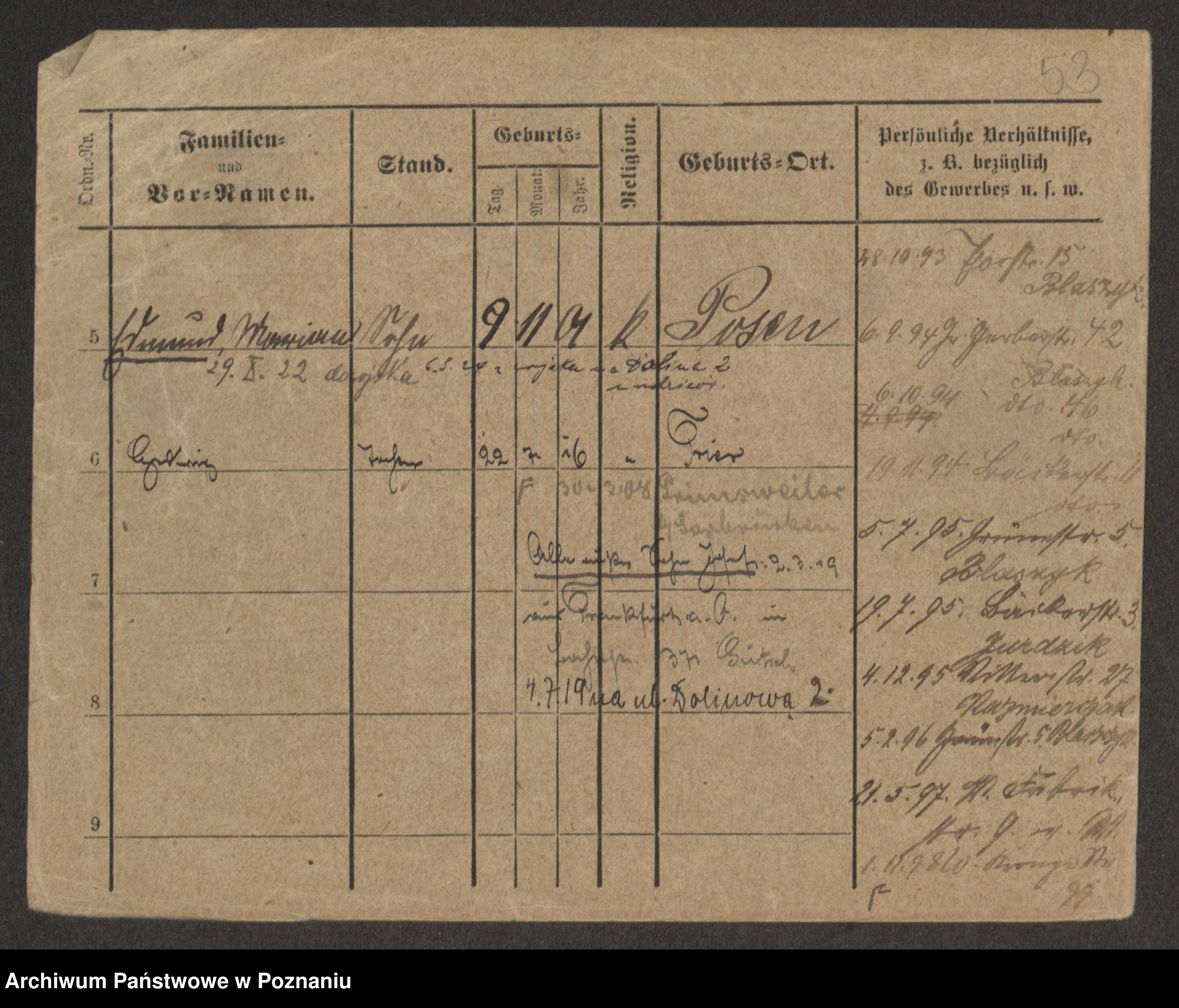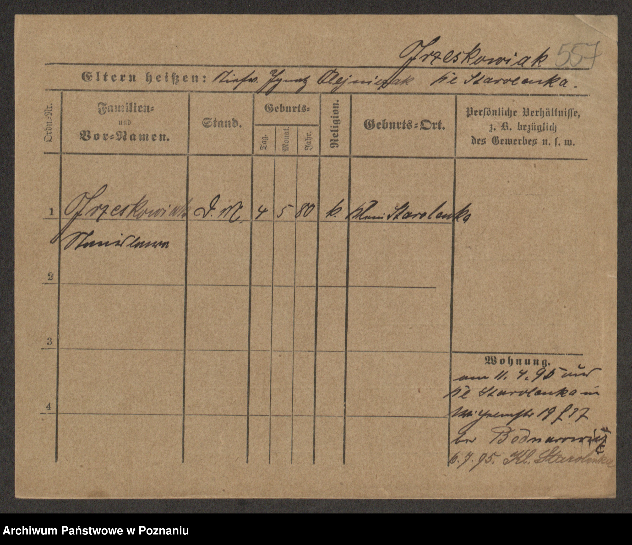 Podgląd karty osobowej dostępny jest po kliknięciu na nazwisko lub ikonkę karty. Można dokonywać powiększenia (ikony na górze) lub przechodzić między kolejnymi skanami (strzałki po bokach).