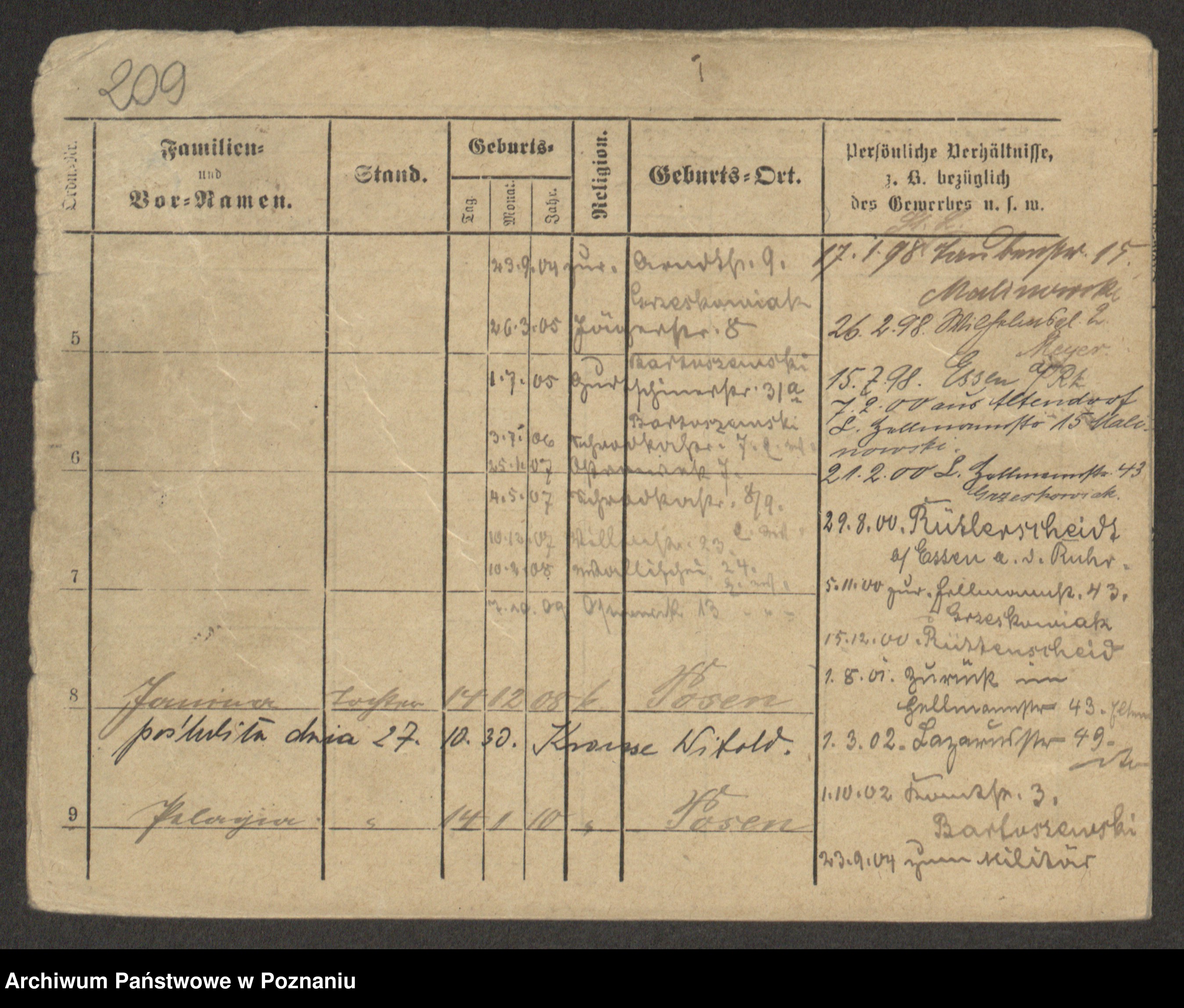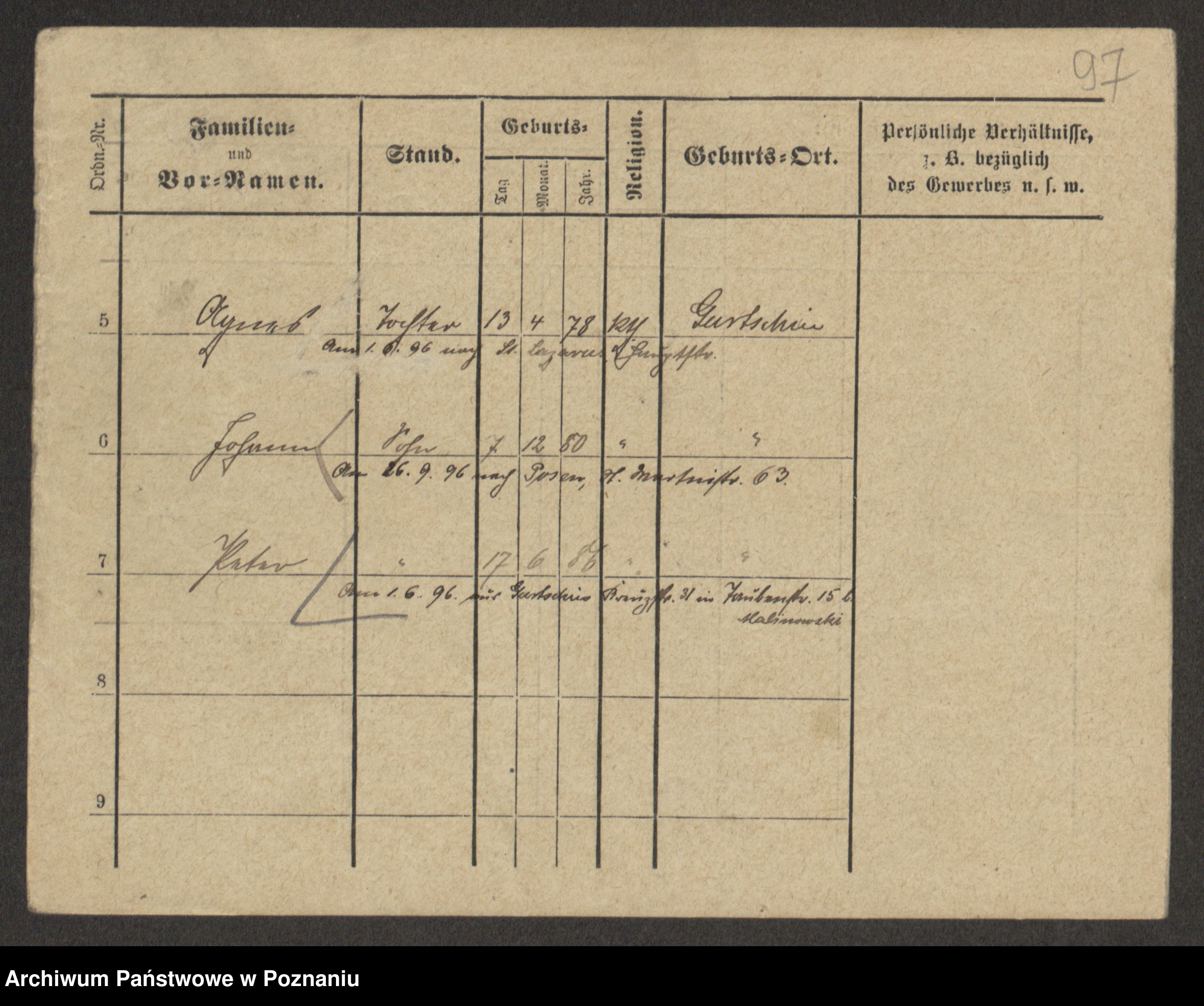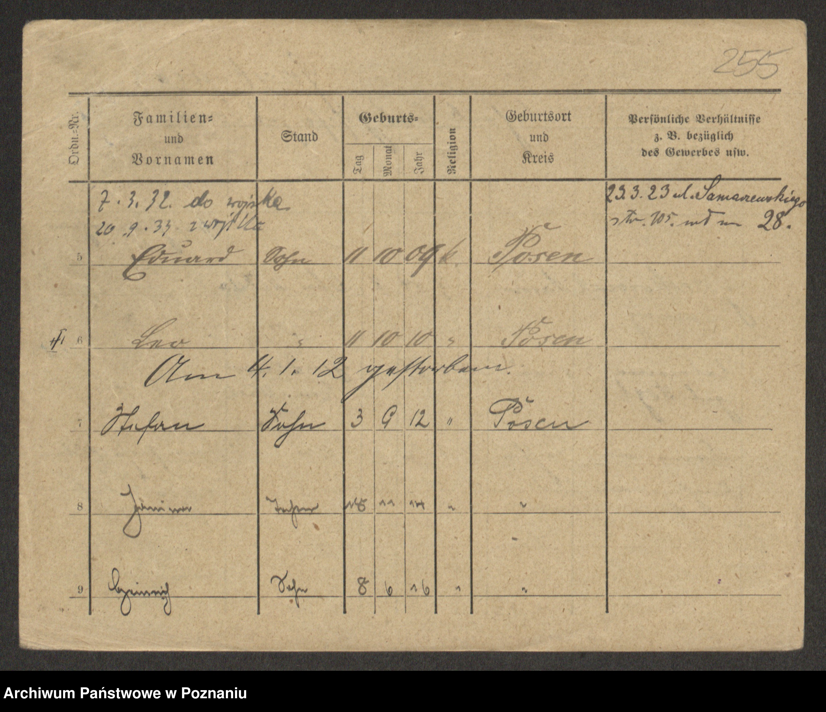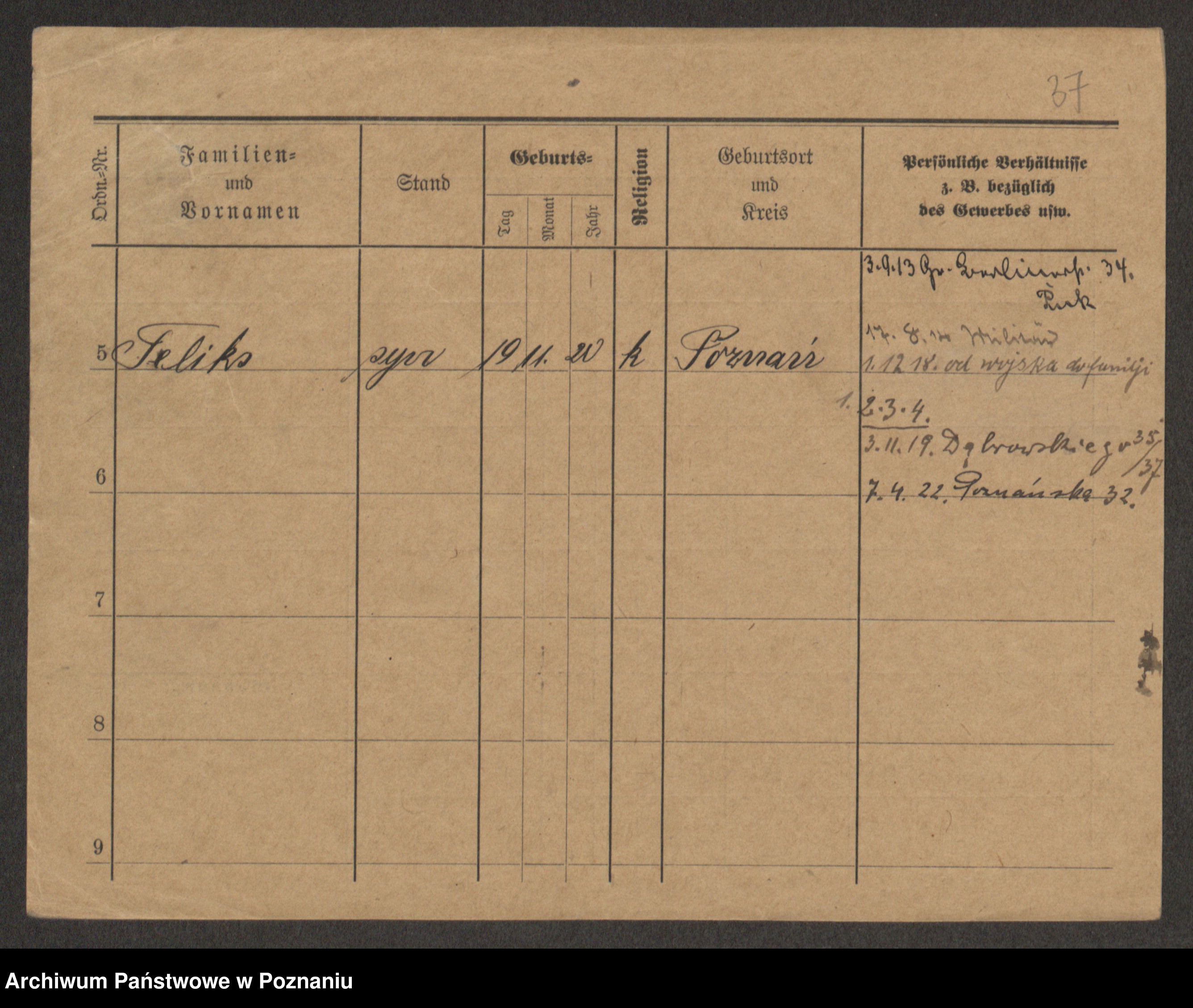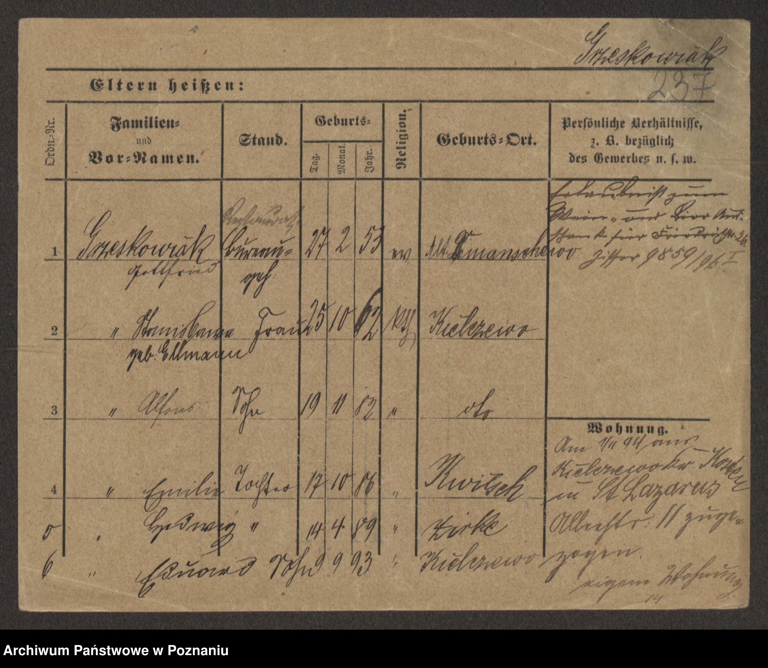 Podgląd karty osobowej dostępny jest po kliknięciu na nazwisko lub ikonkę karty. Można dokonywać powiększenia (ikony na górze) lub przechodzić między kolejnymi skanami (strzałki po bokach).