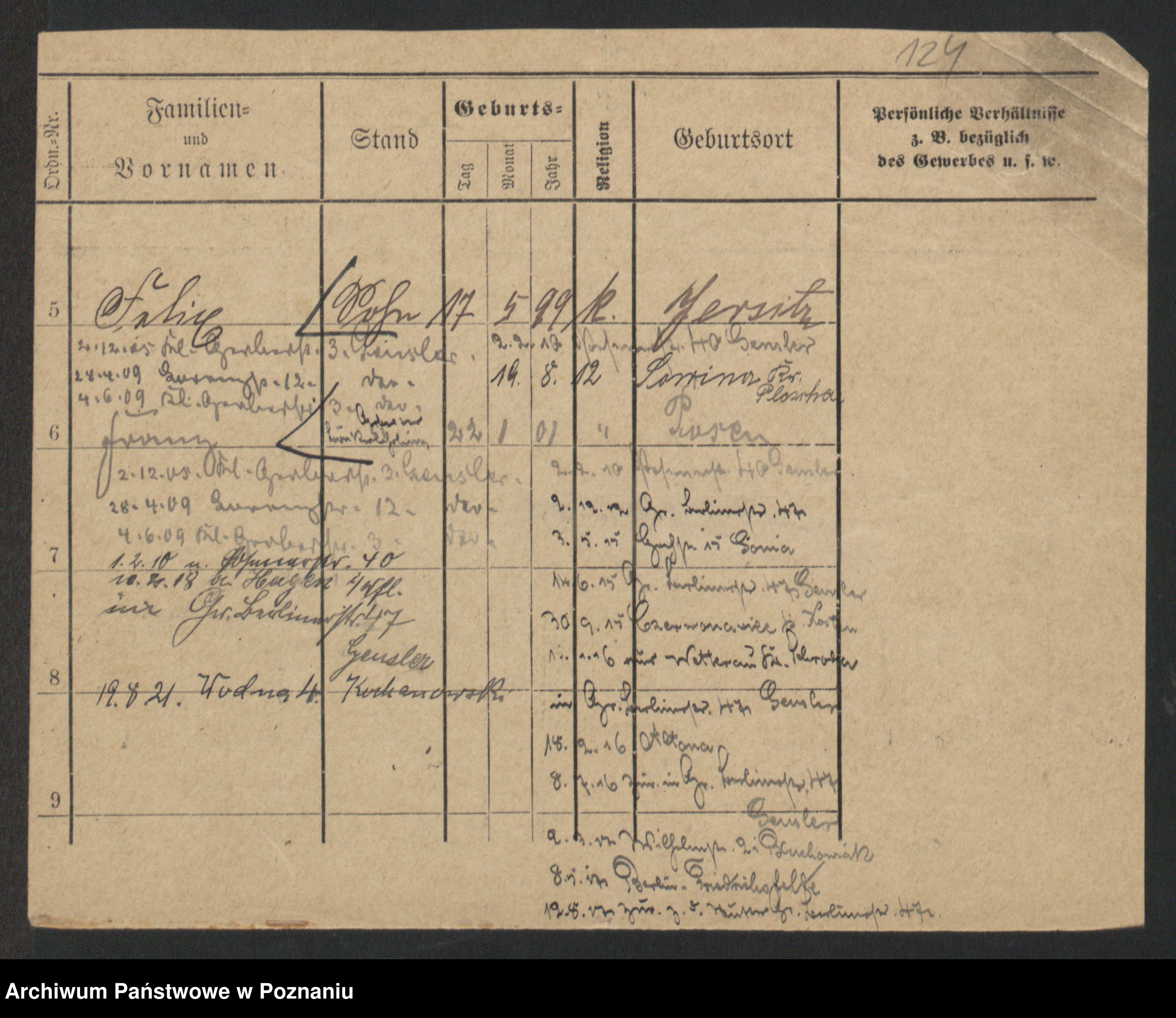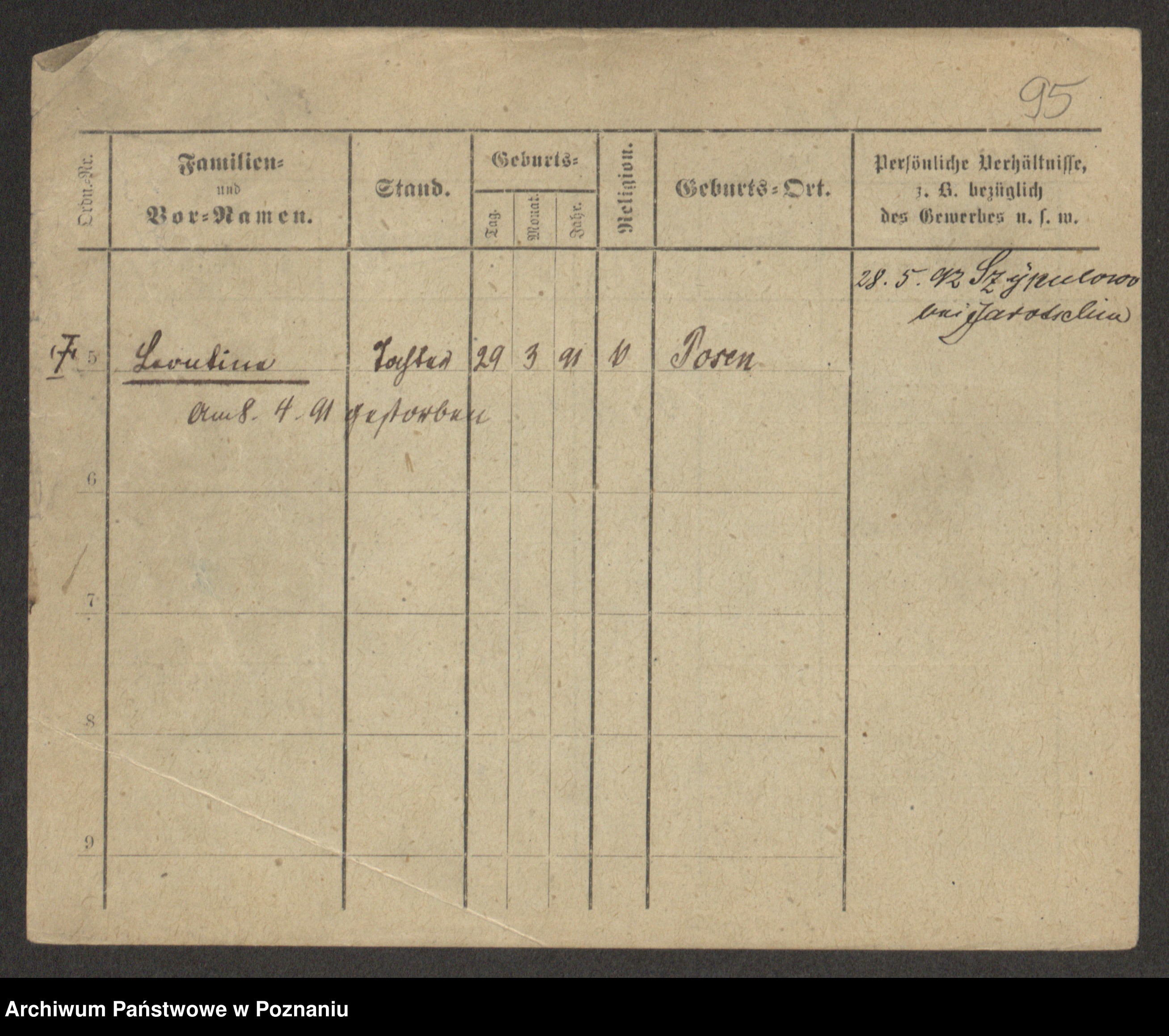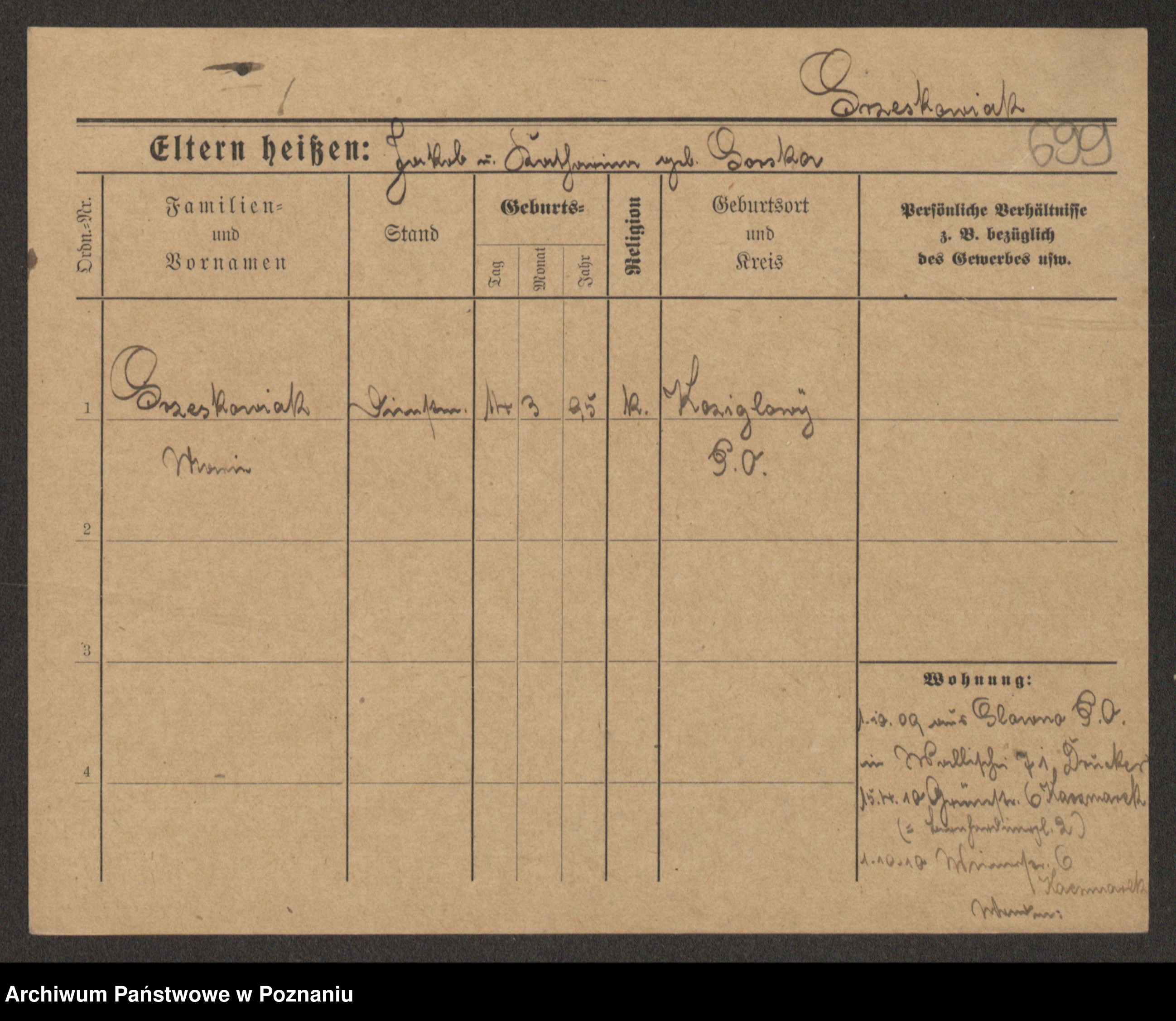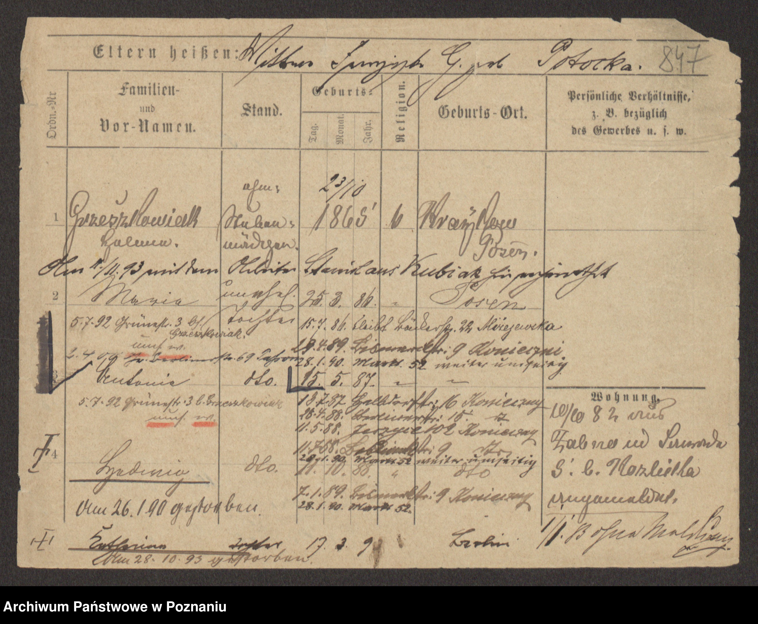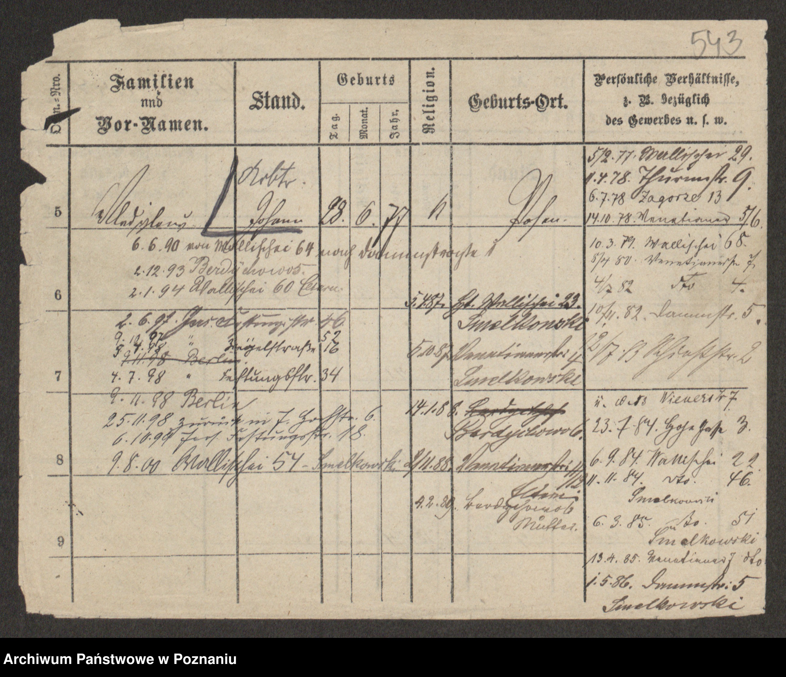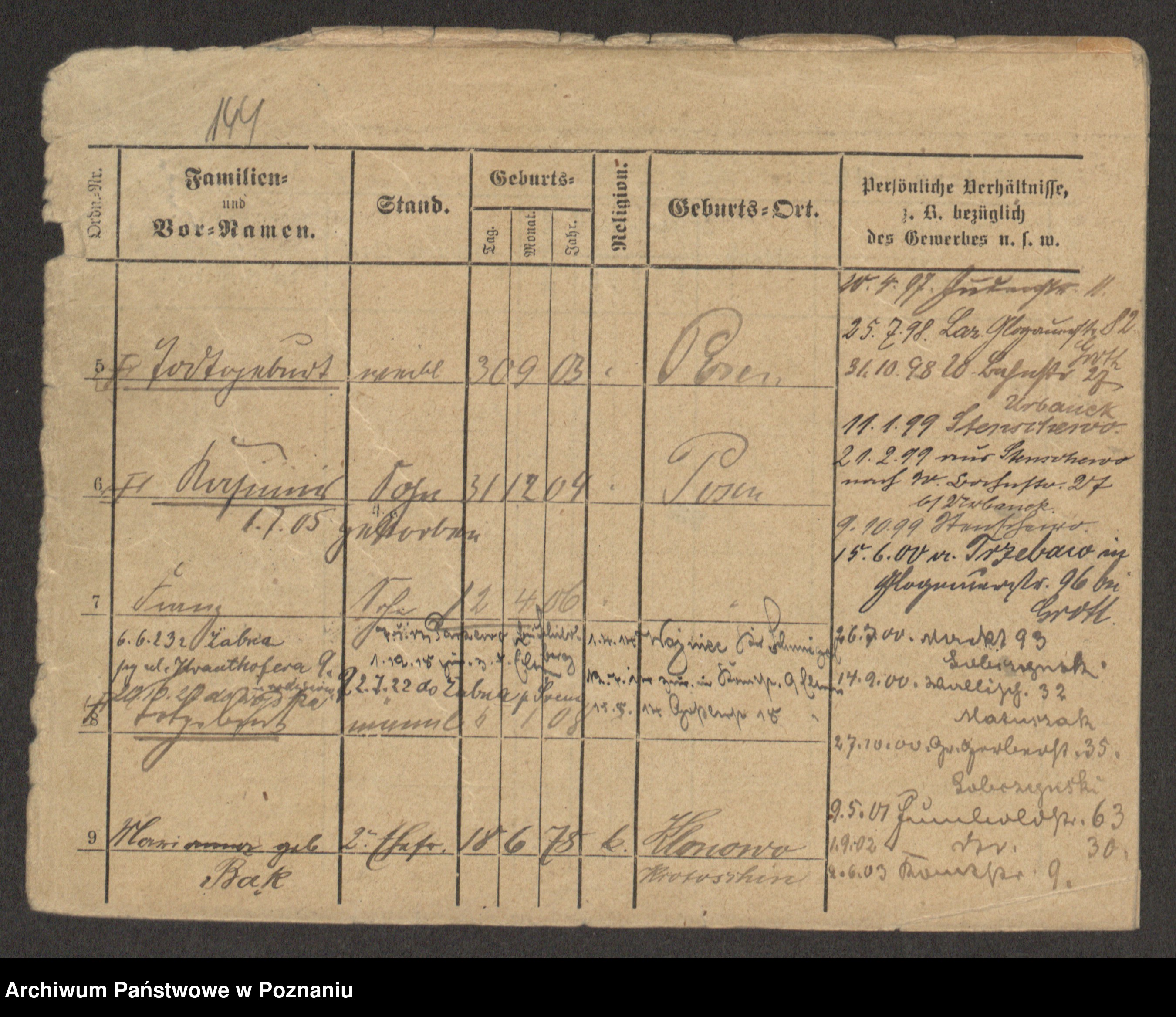 Podgląd karty osobowej dostępny jest po kliknięciu na nazwisko lub ikonkę karty. Można dokonywać powiększenia (ikony na górze) lub przechodzić między kolejnymi skanami (strzałki po bokach).