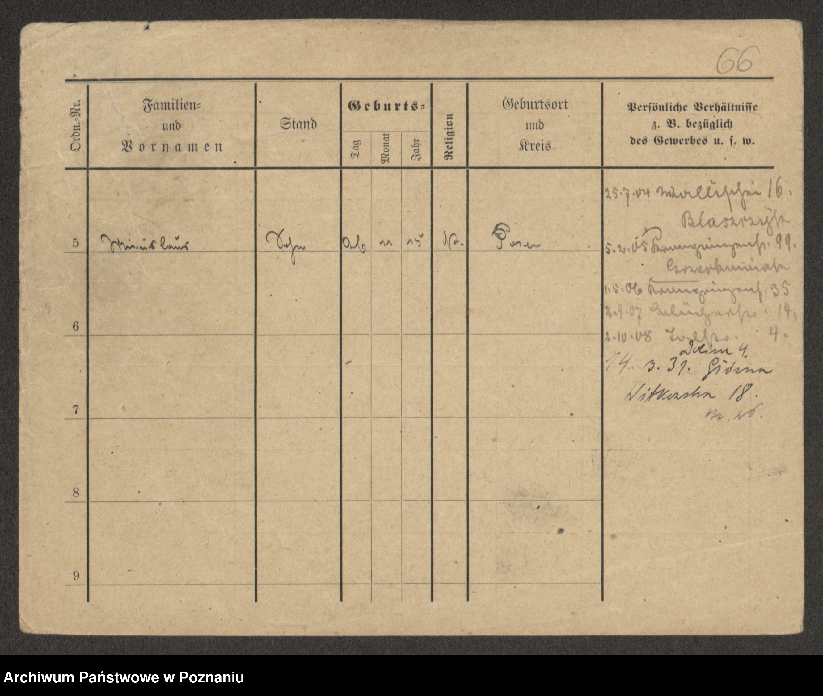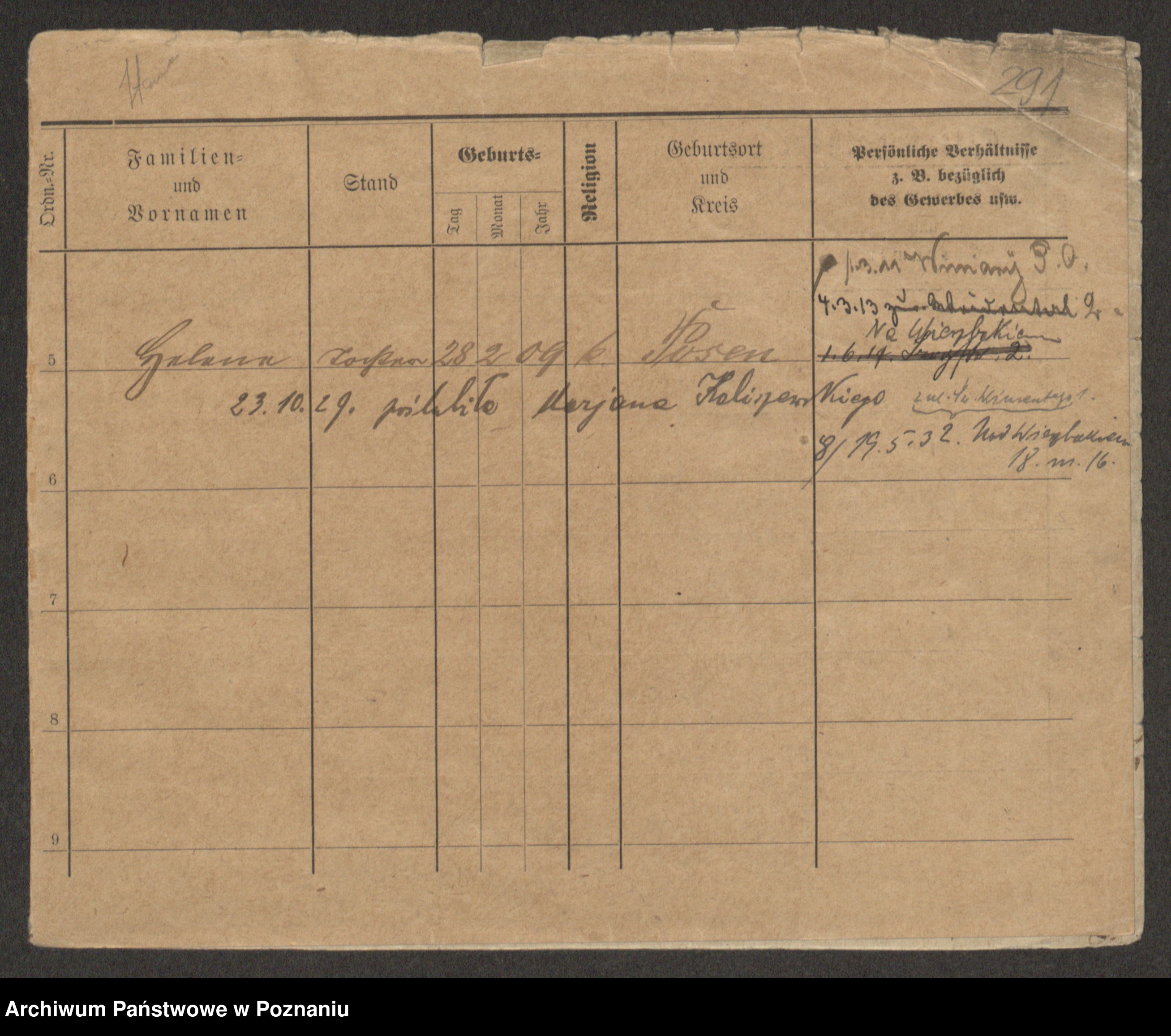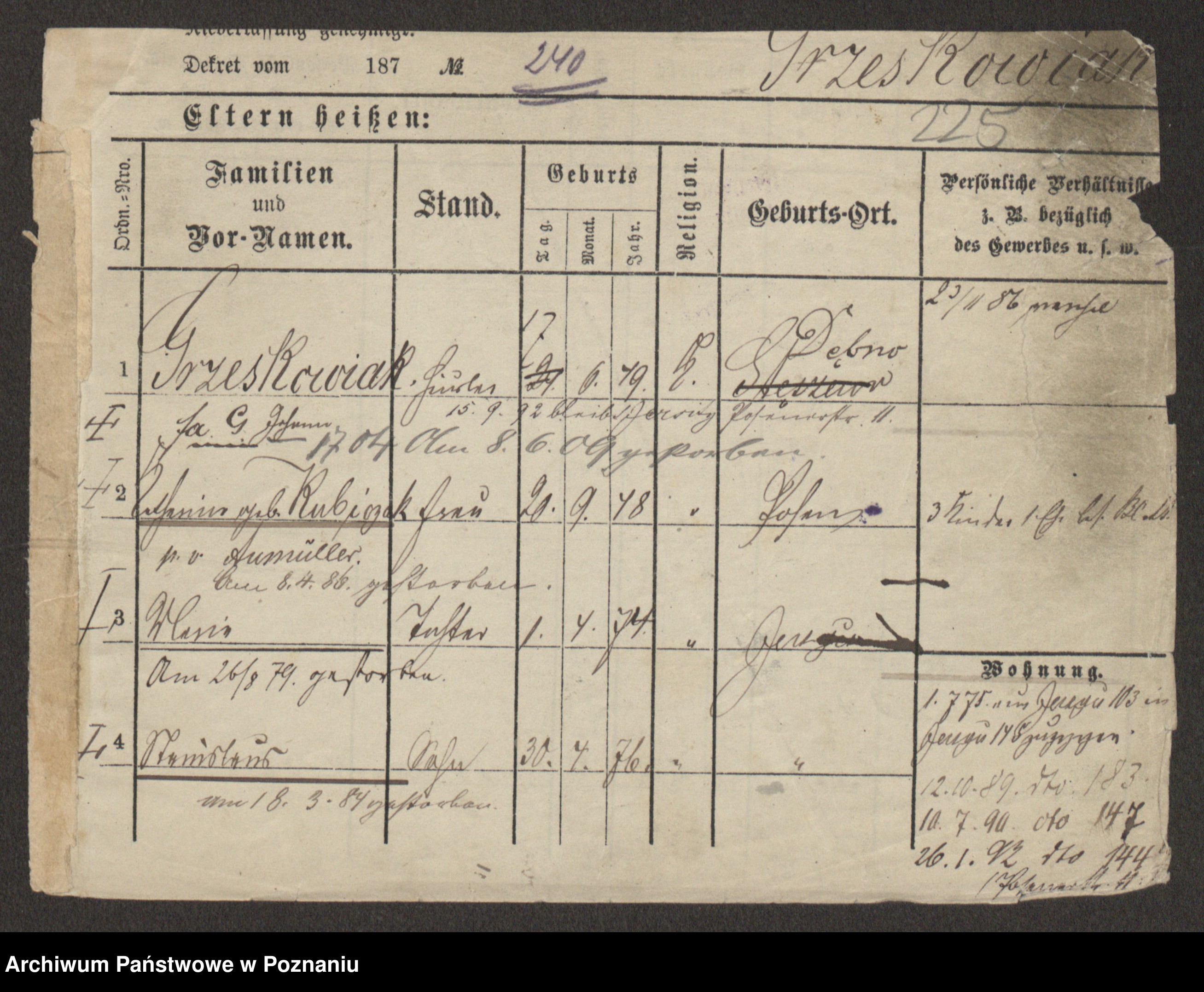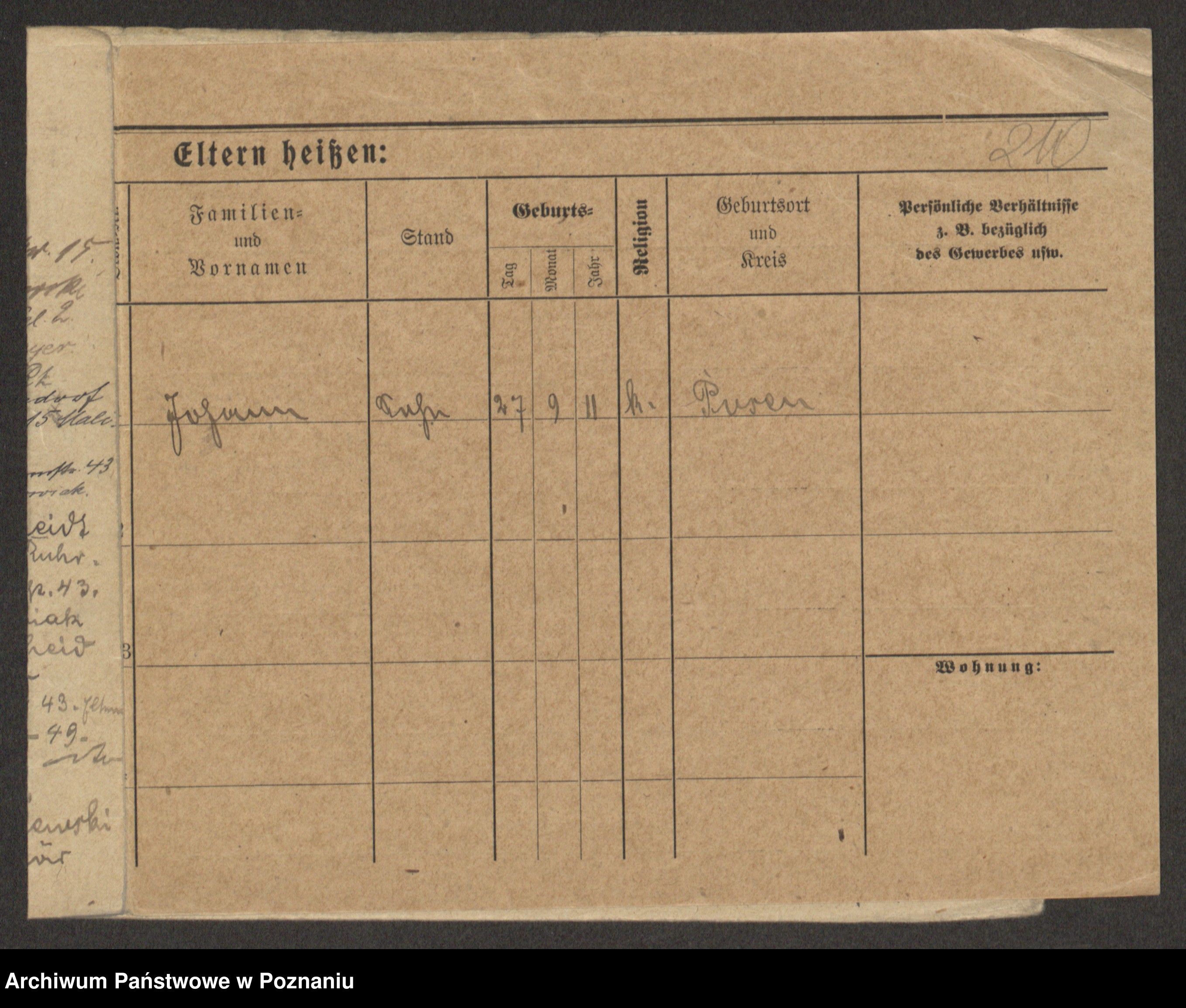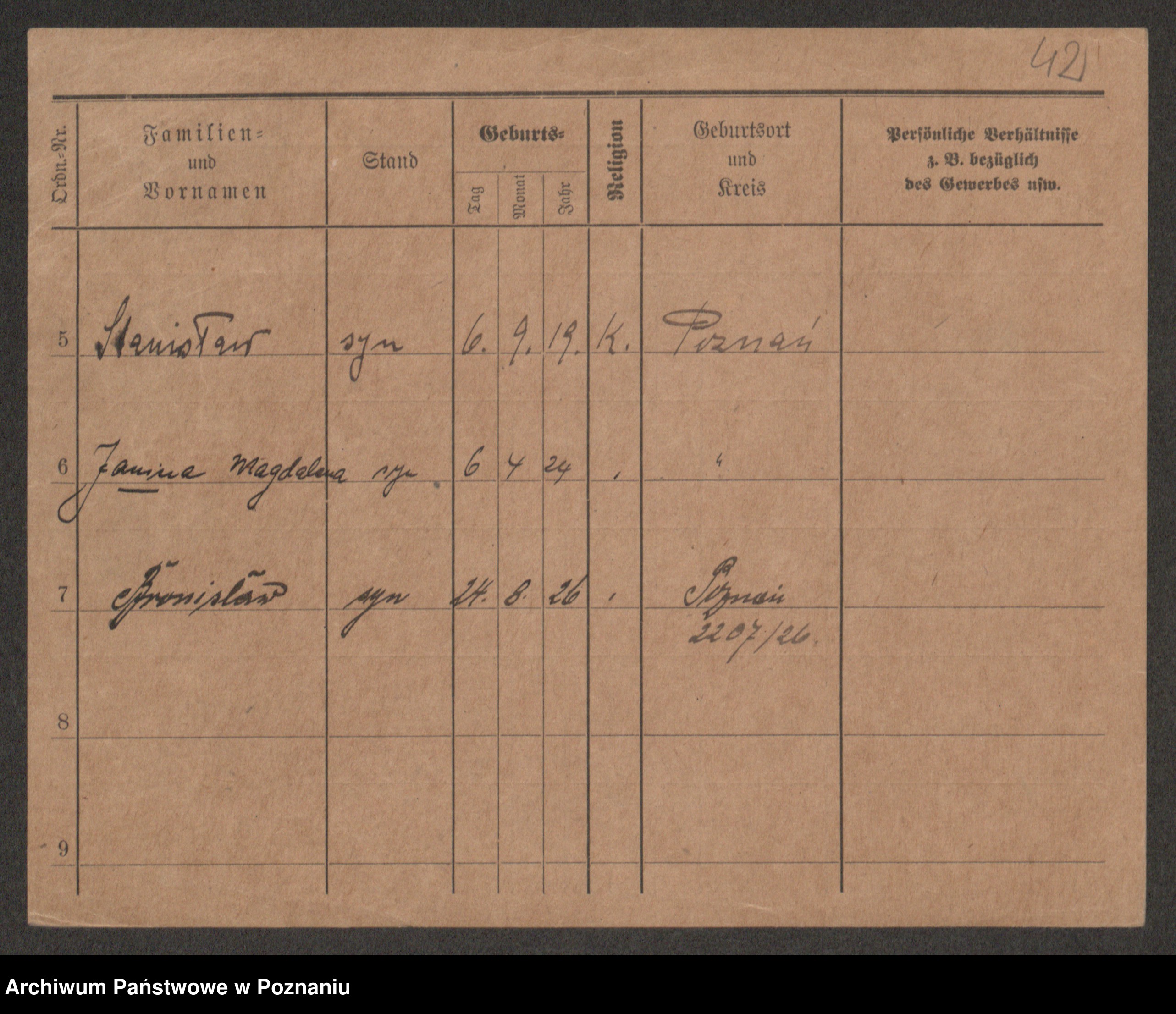 Podgląd karty osobowej dostępny jest po kliknięciu na nazwisko lub ikonkę karty. Można dokonywać powiększenia (ikony na górze) lub przechodzić między kolejnymi skanami (strzałki po bokach).