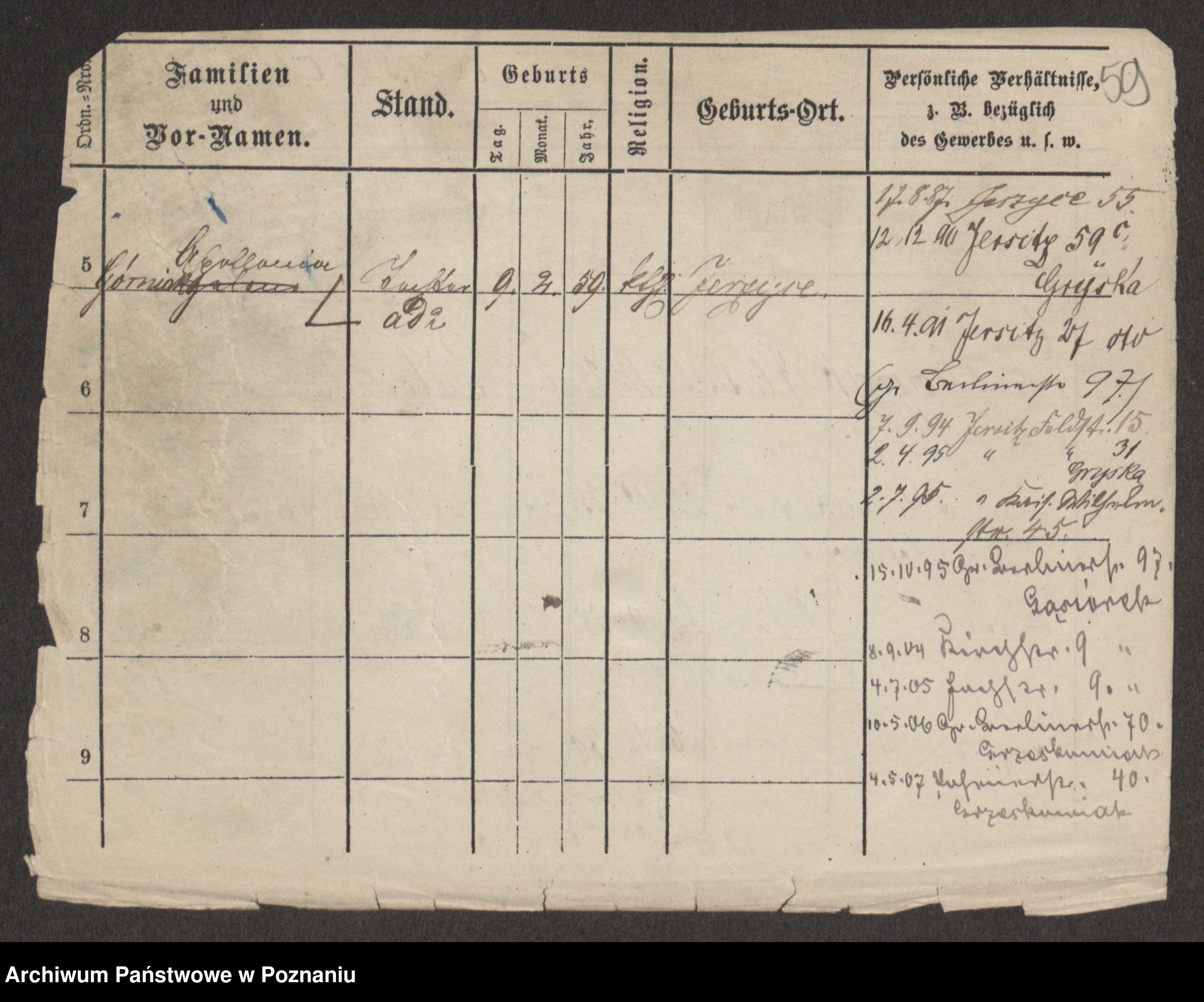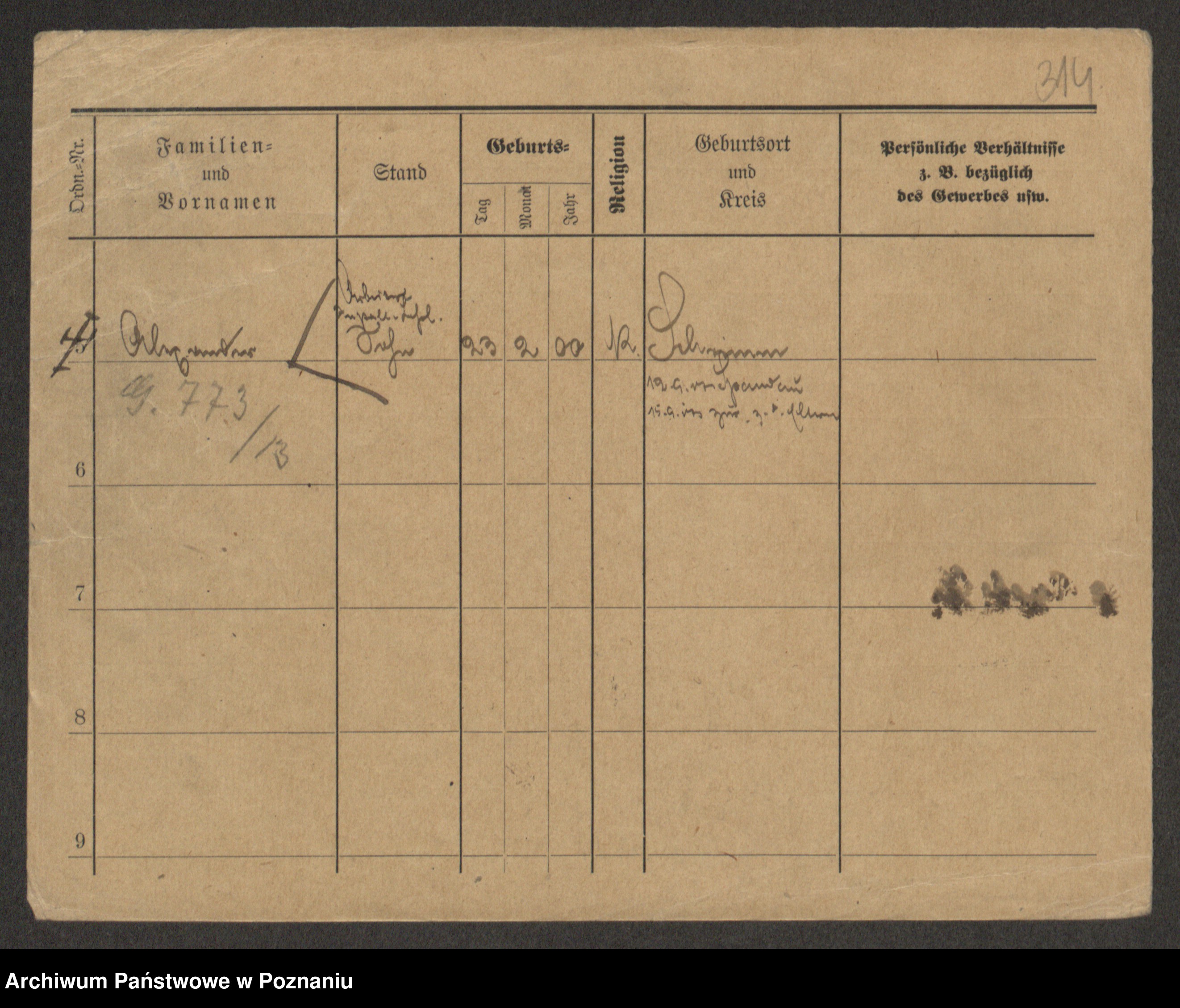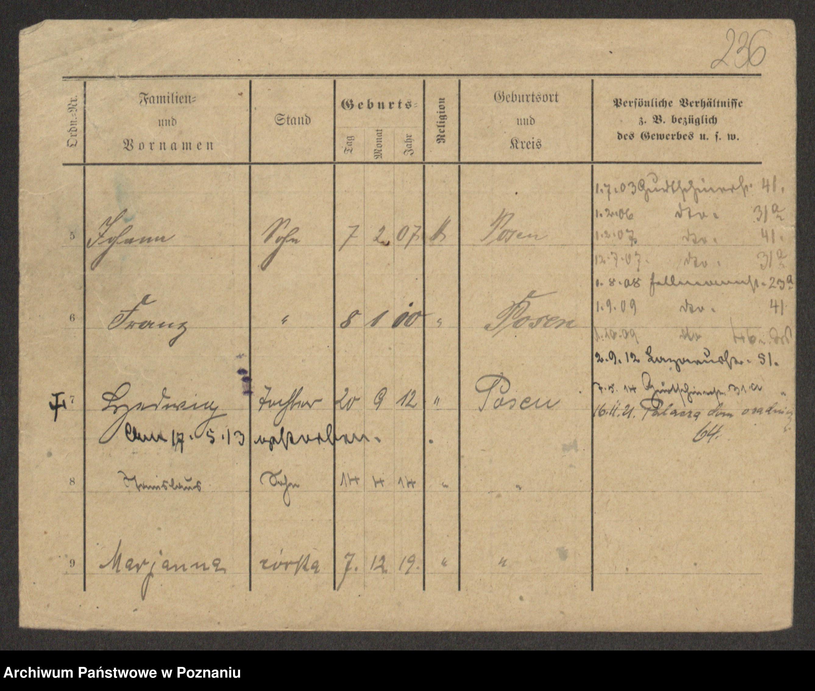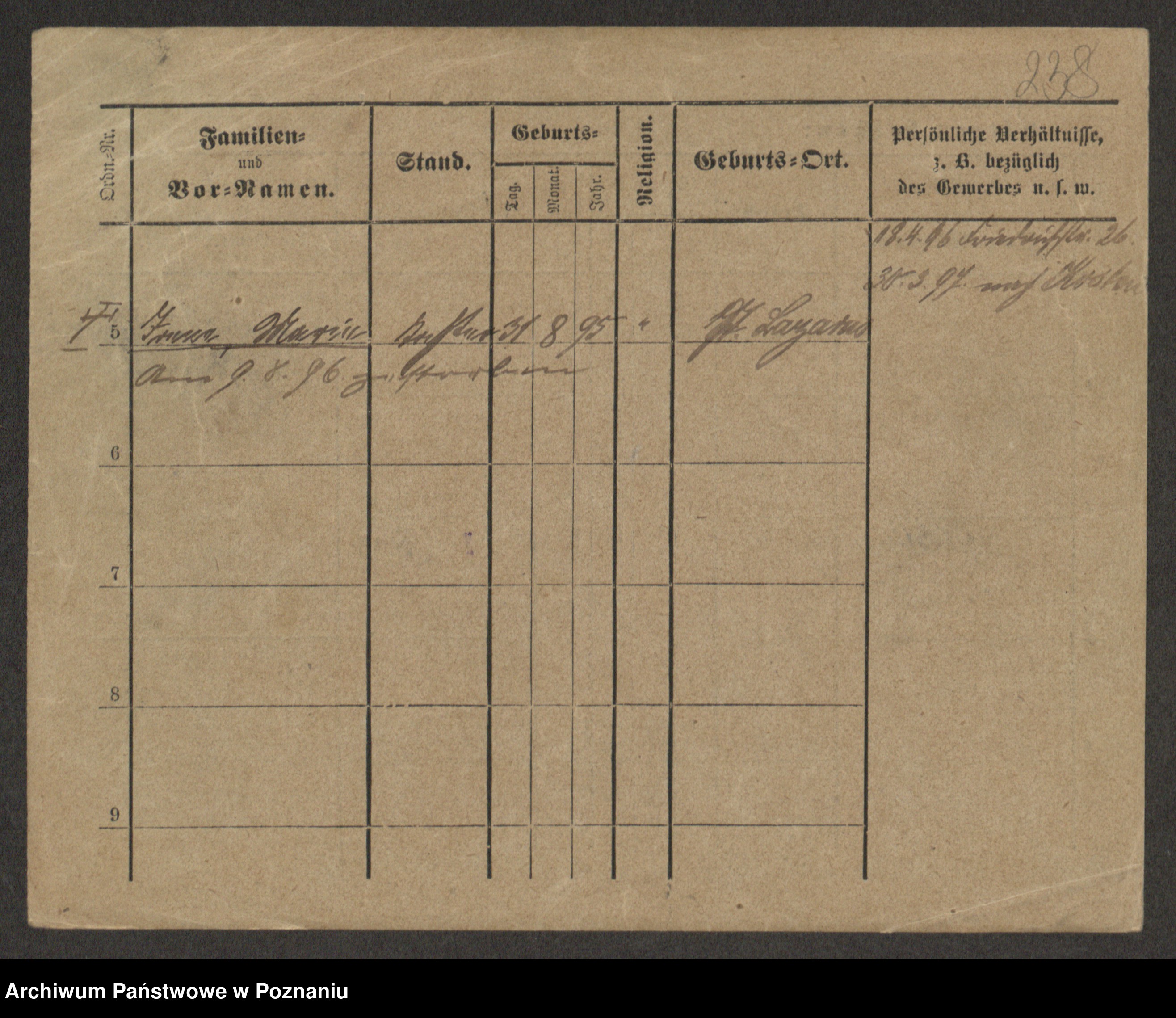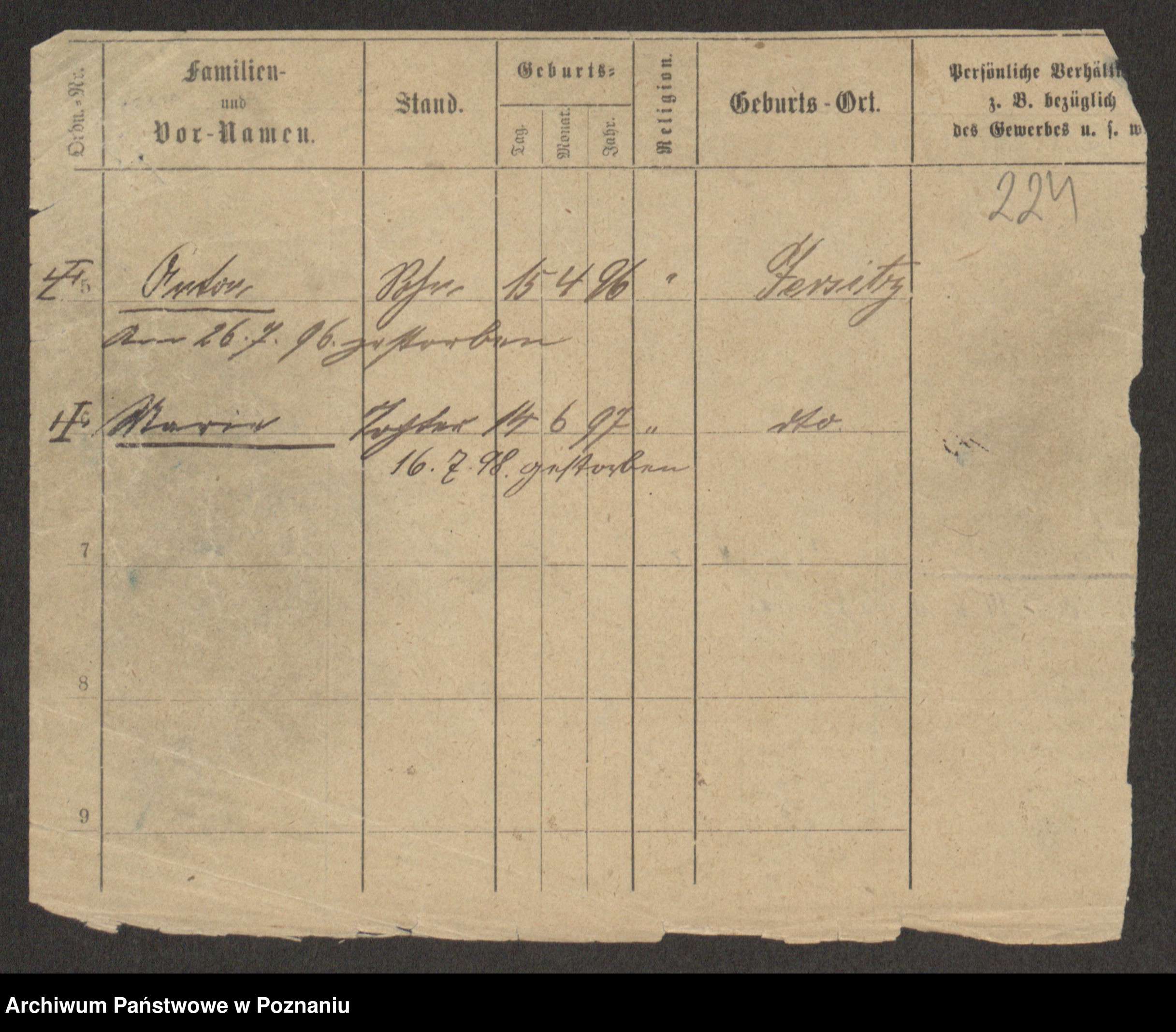 Podgląd karty osobowej dostępny jest po kliknięciu na nazwisko lub ikonkę karty. Można dokonywać powiększenia (ikony na górze) lub przechodzić między kolejnymi skanami (strzałki po bokach).