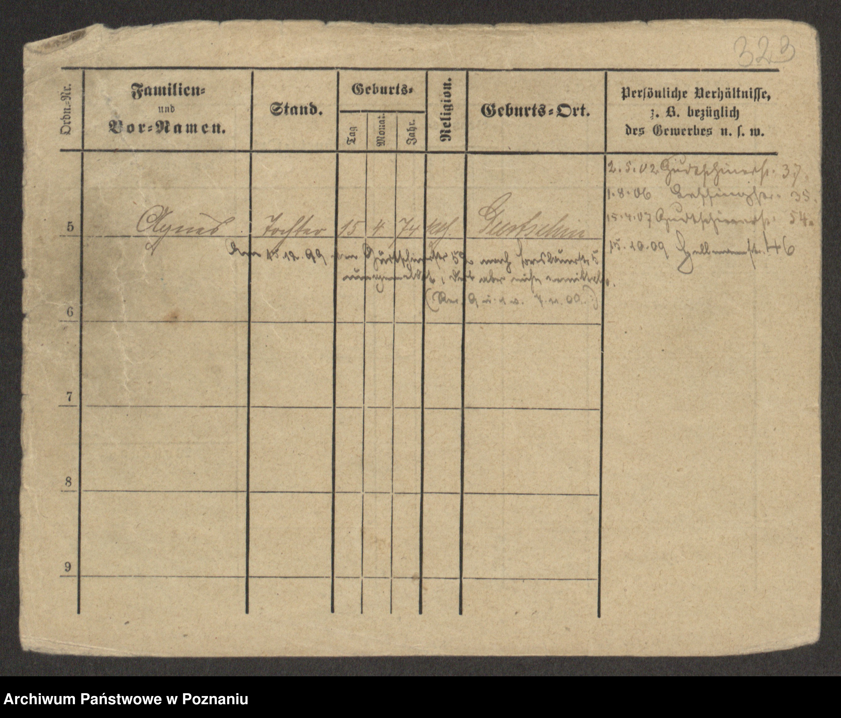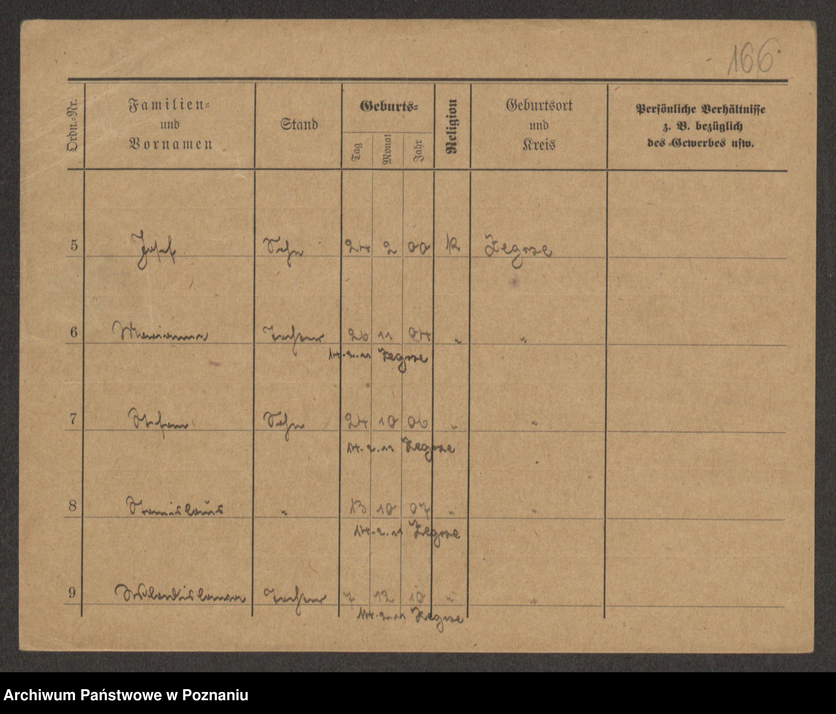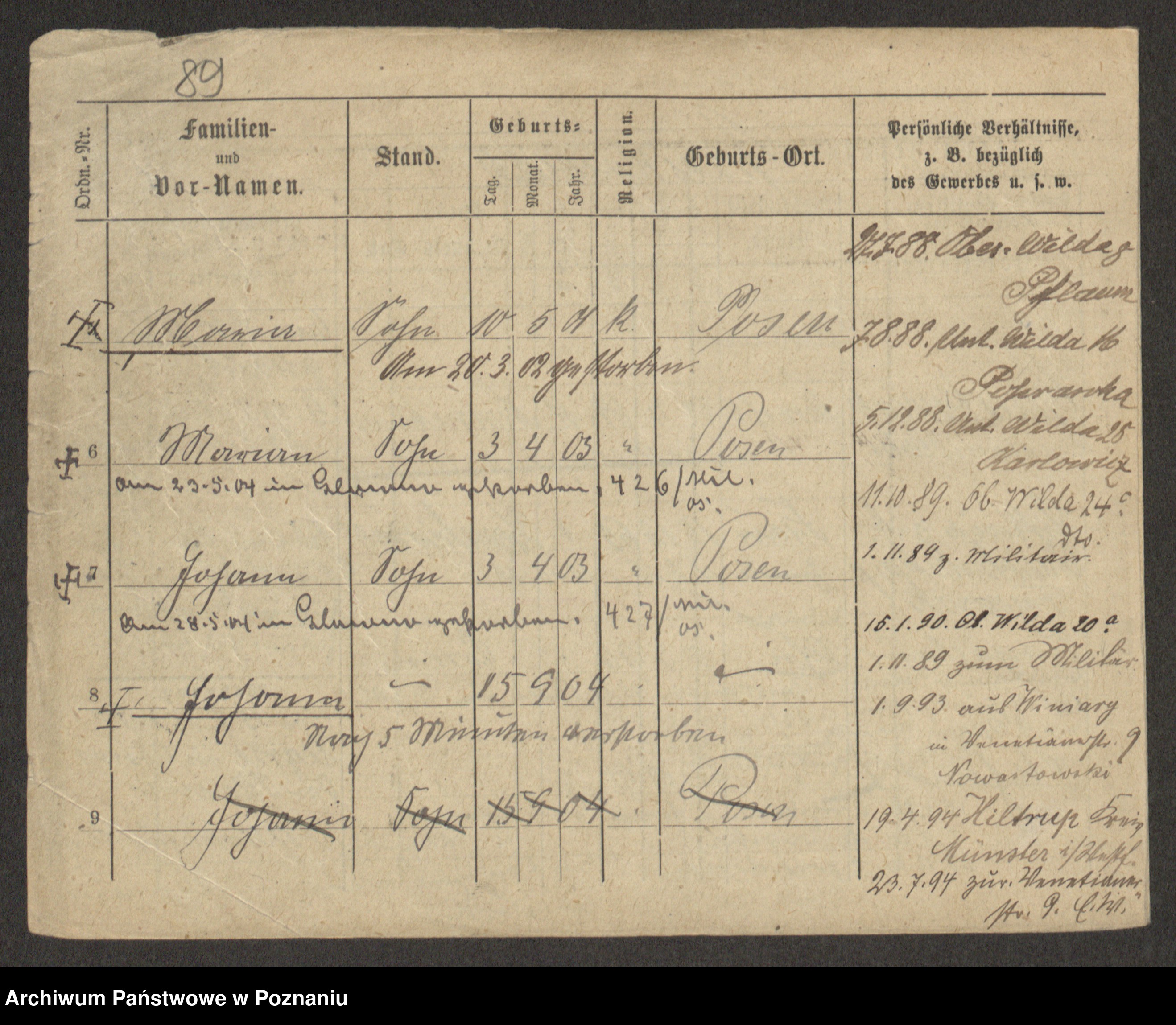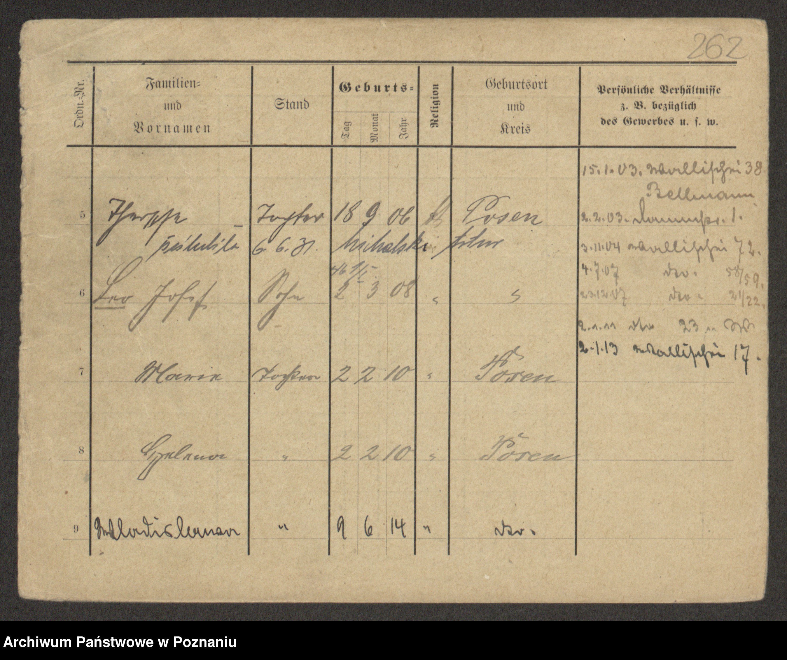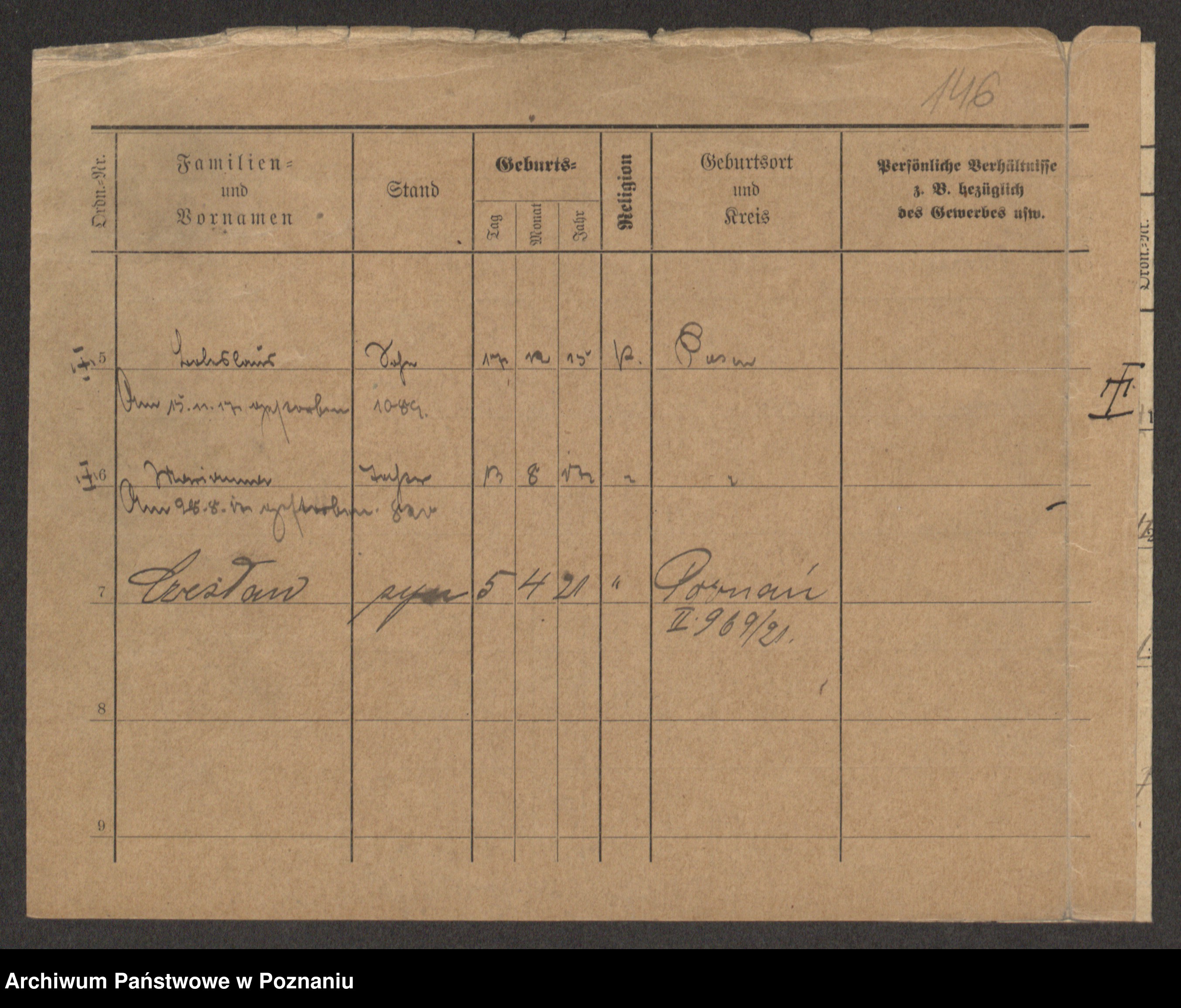 Podgląd karty osobowej dostępny jest po kliknięciu na nazwisko lub ikonkę karty. Można dokonywać powiększenia (ikony na górze) lub przechodzić między kolejnymi skanami (strzałki po bokach).