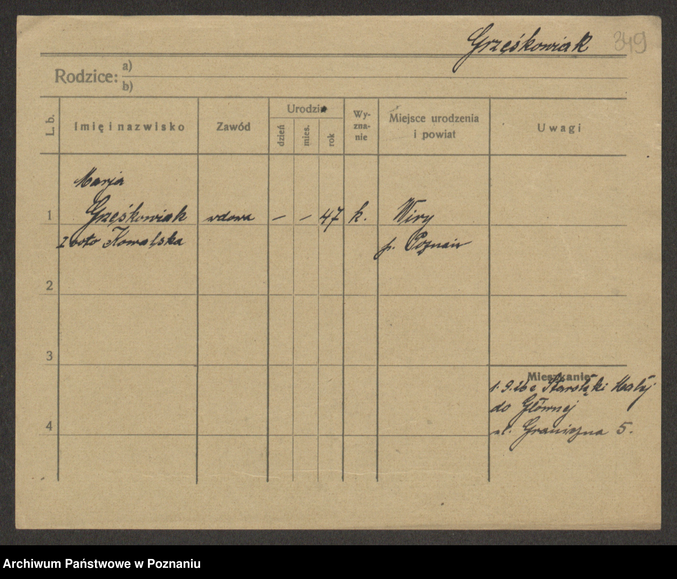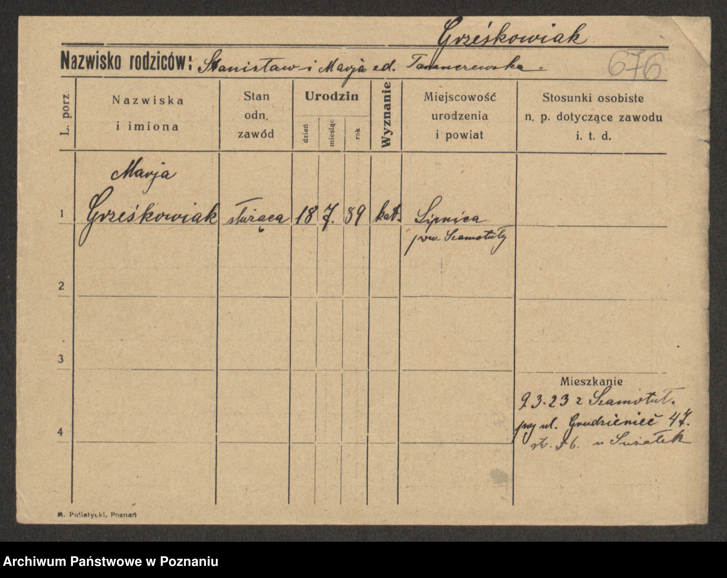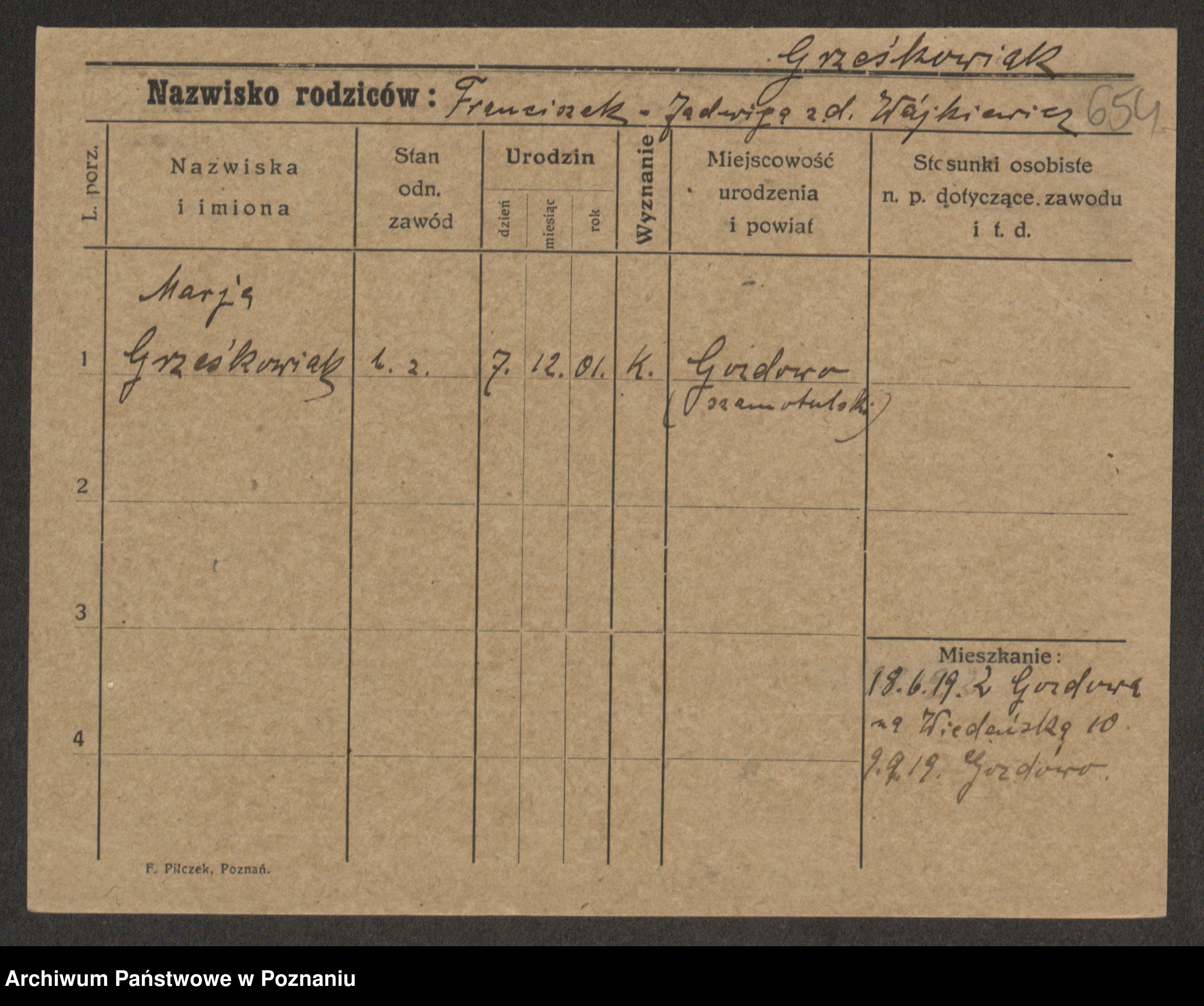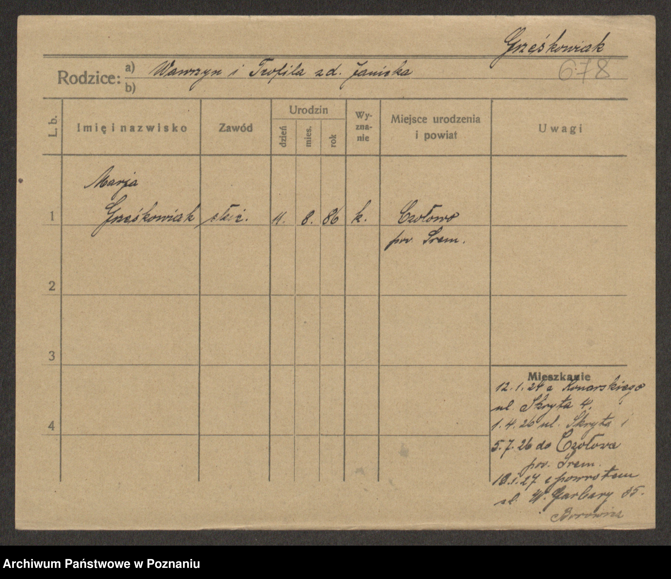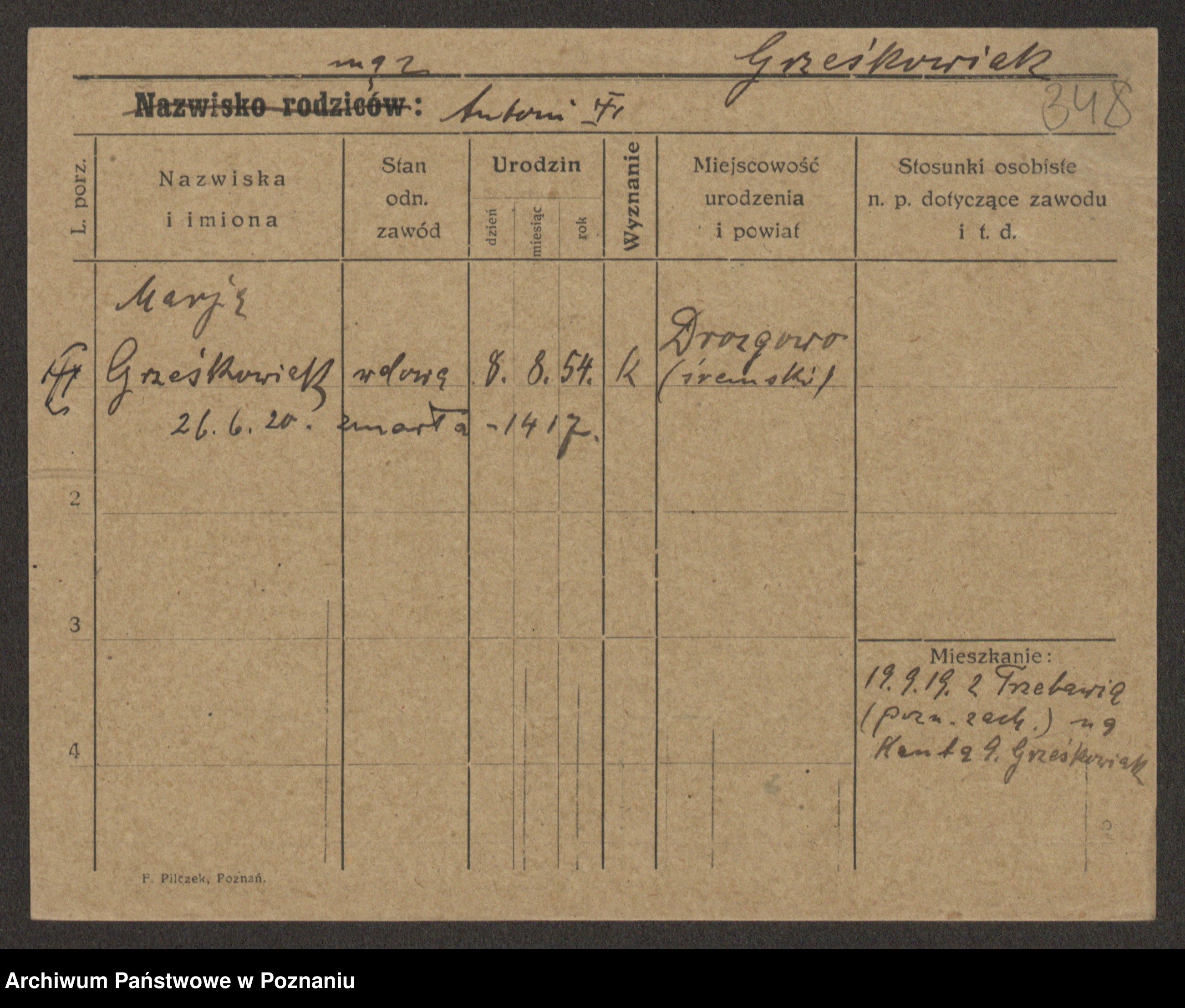 Grześkowiak z d. Czechelska, Marja