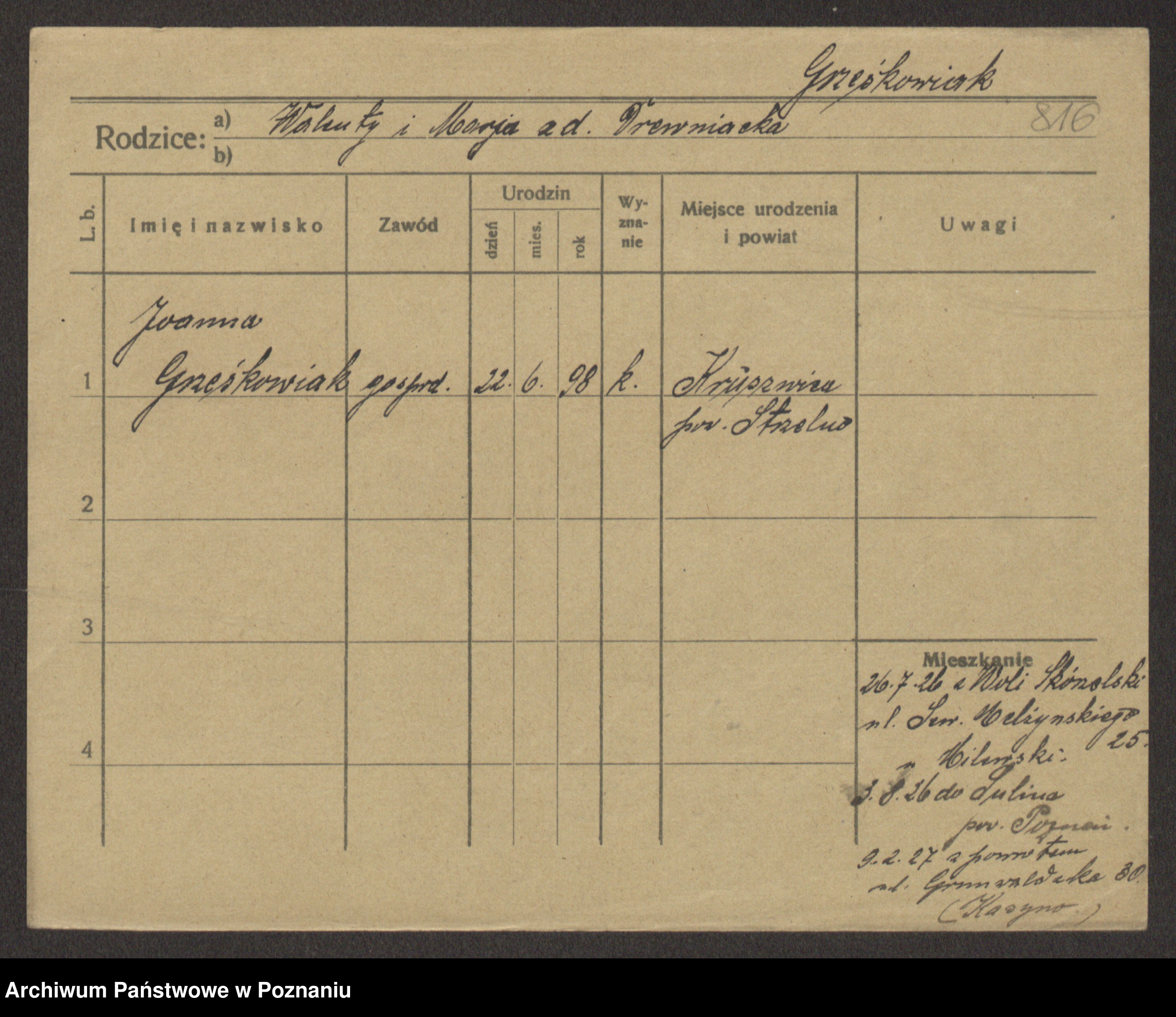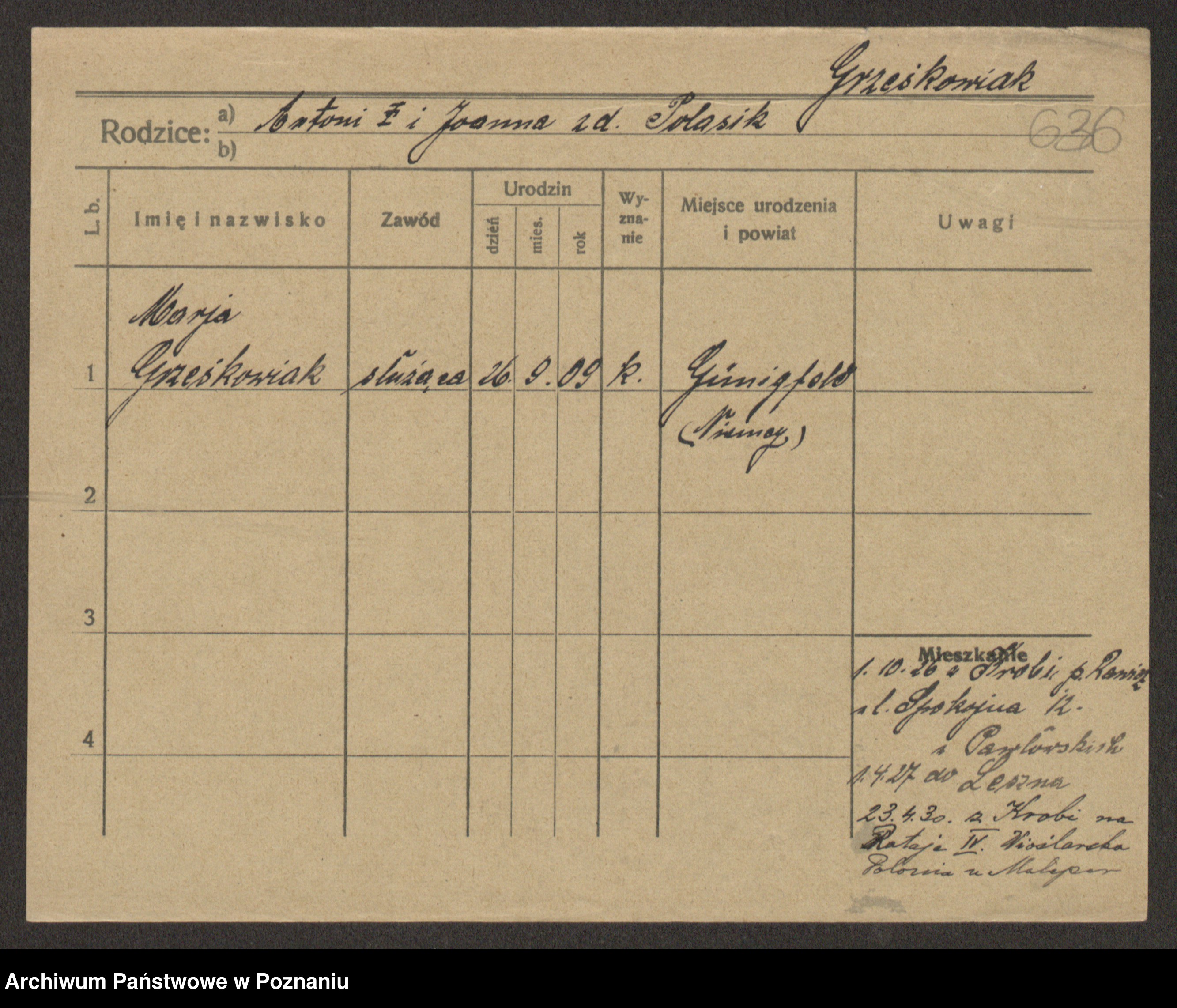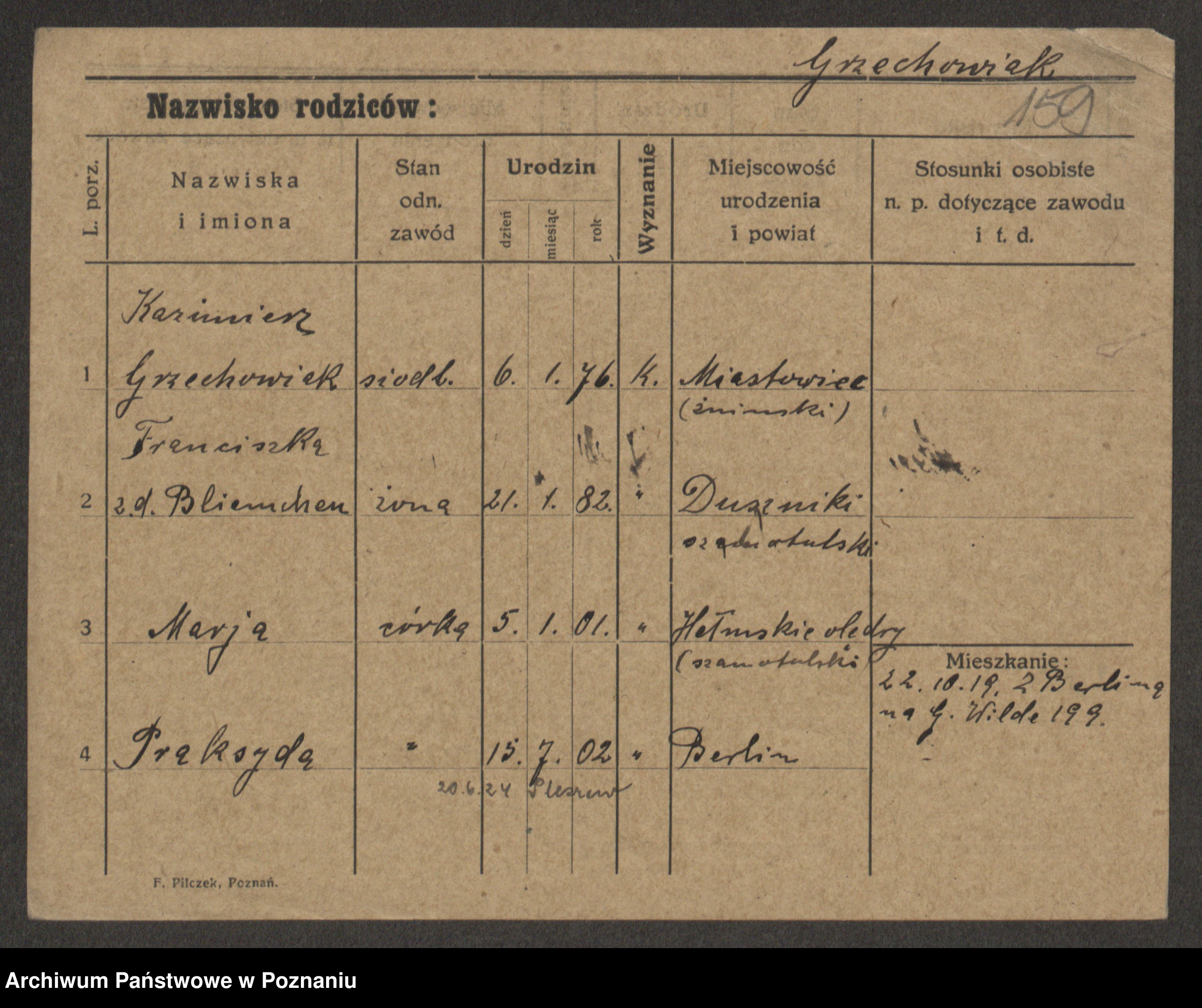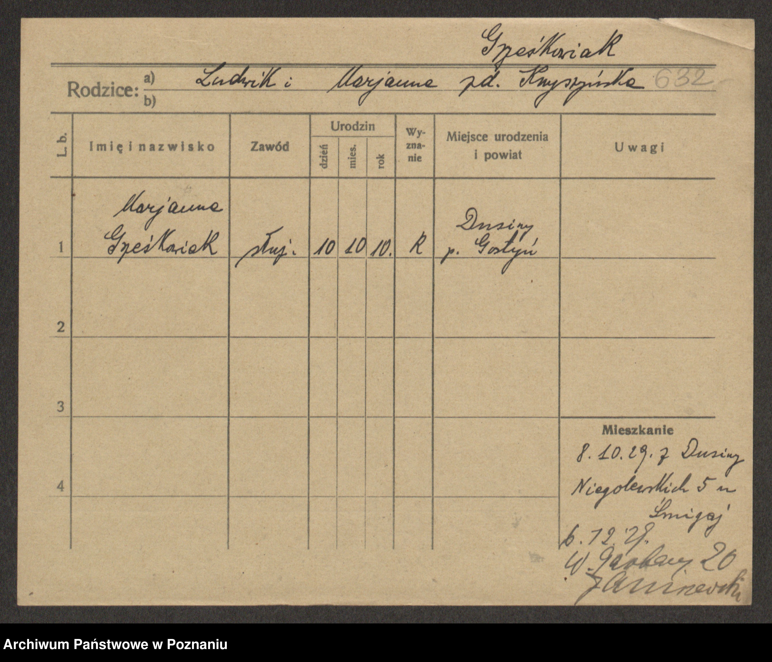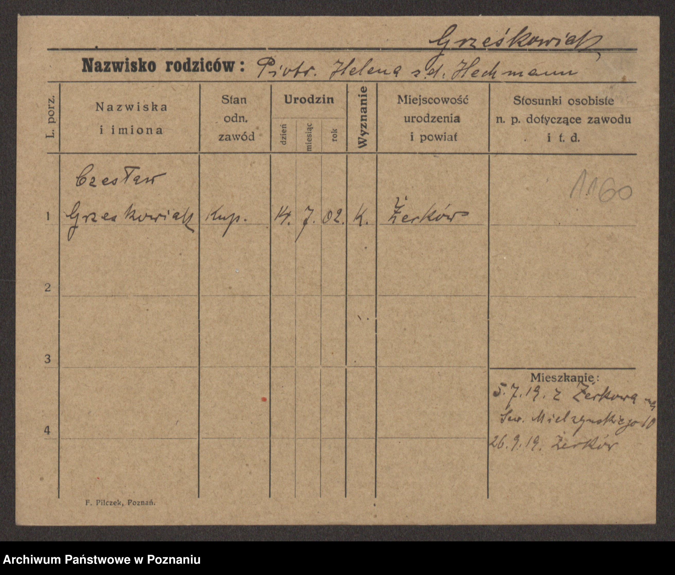 Grześkowiak z d. Czechelska, Marja