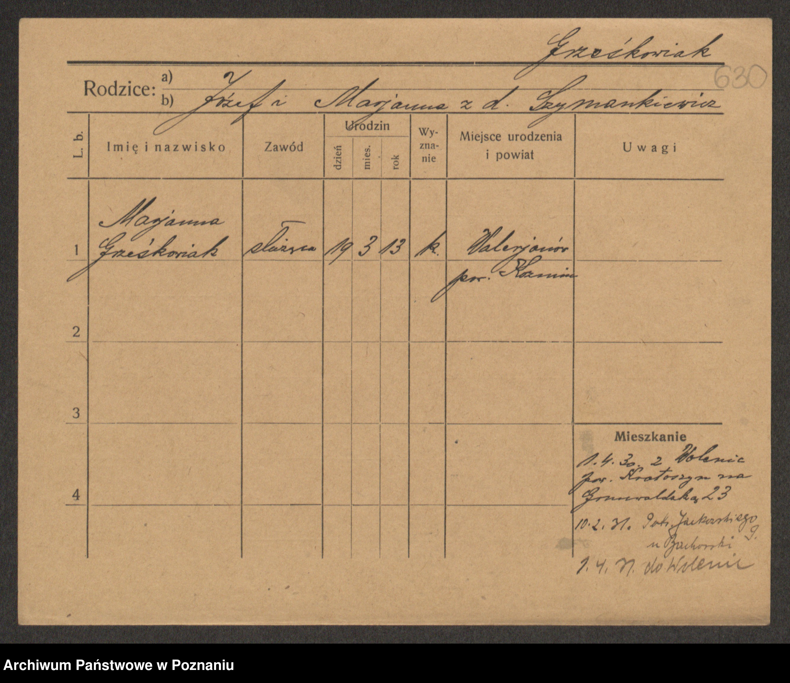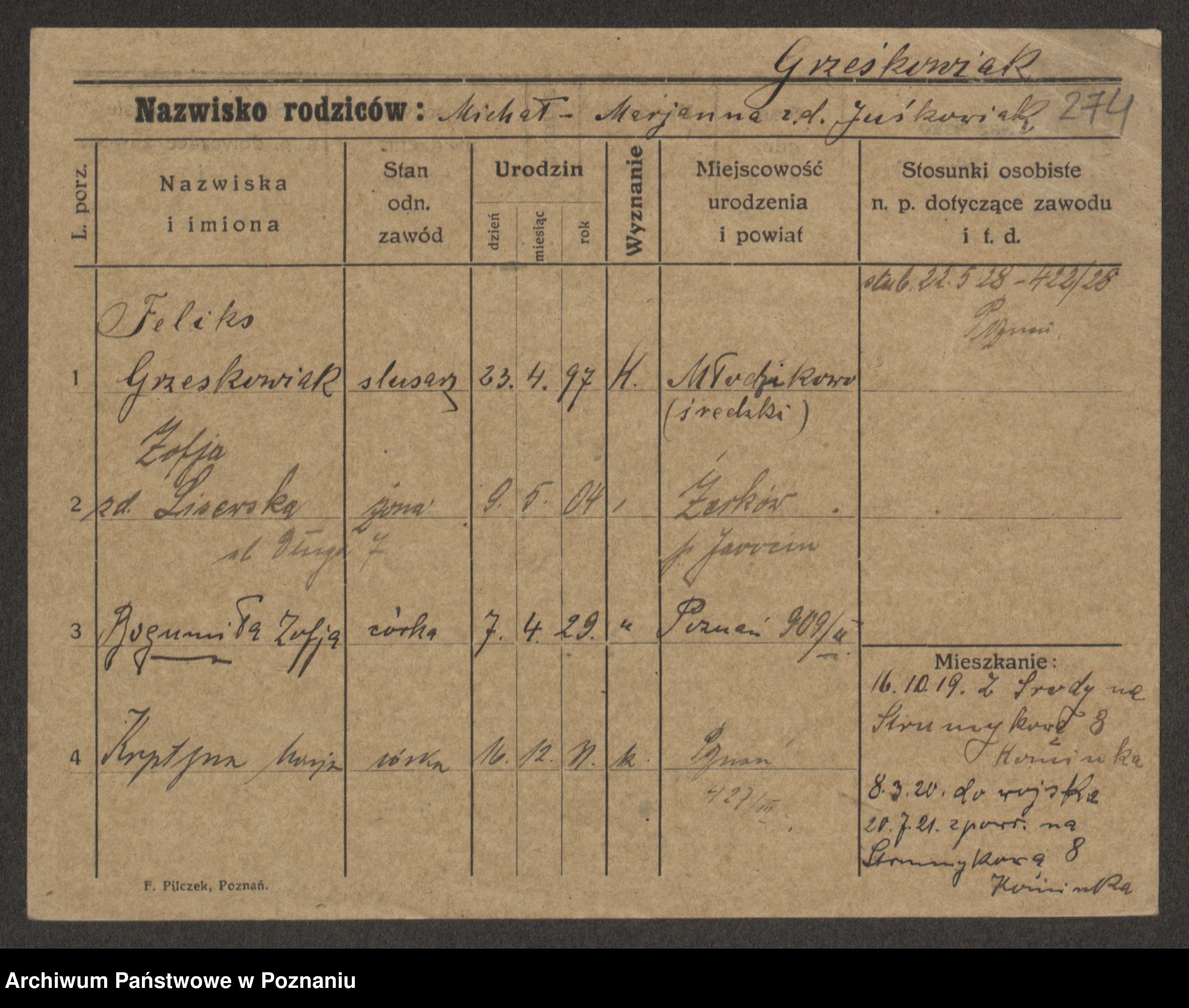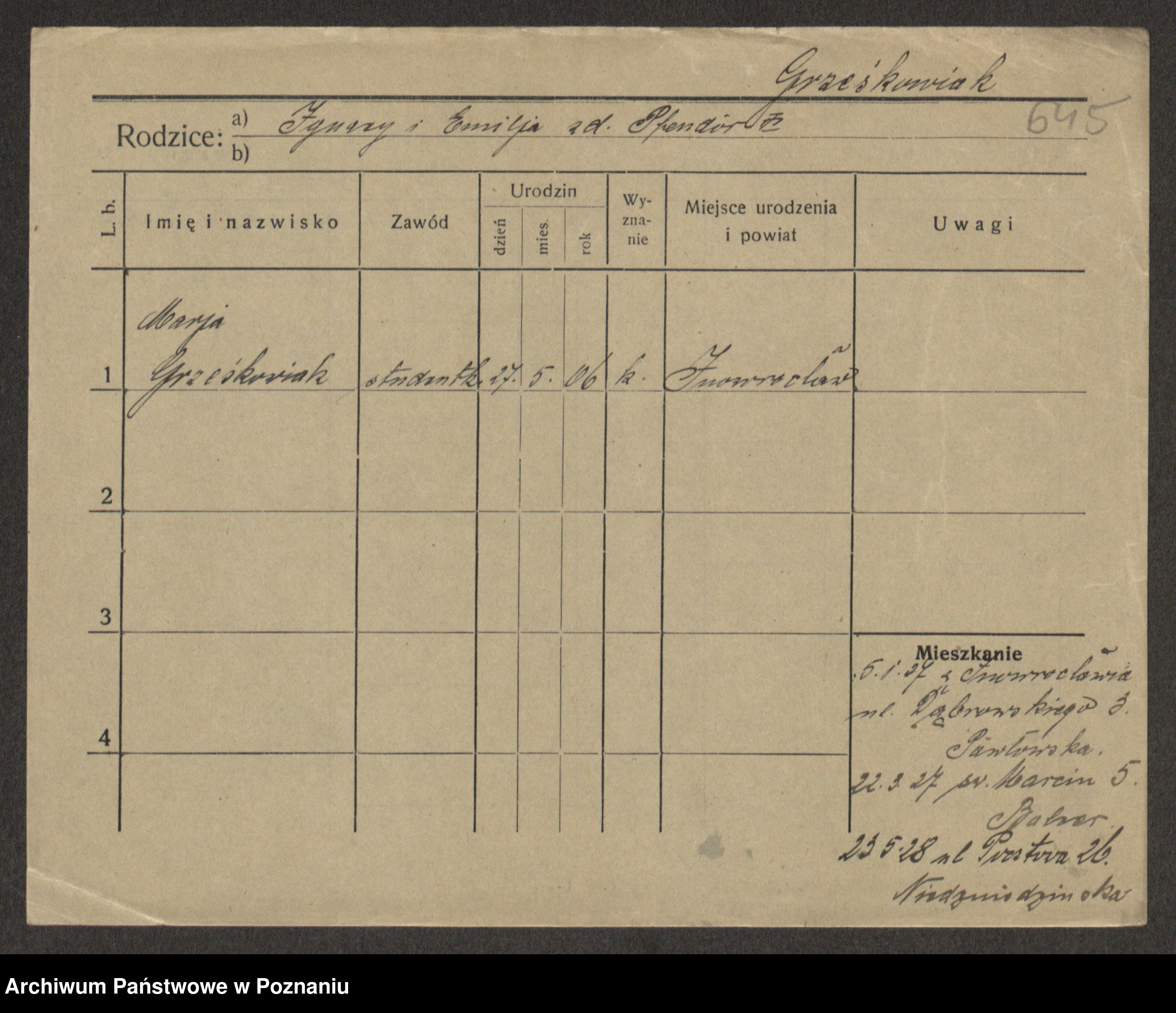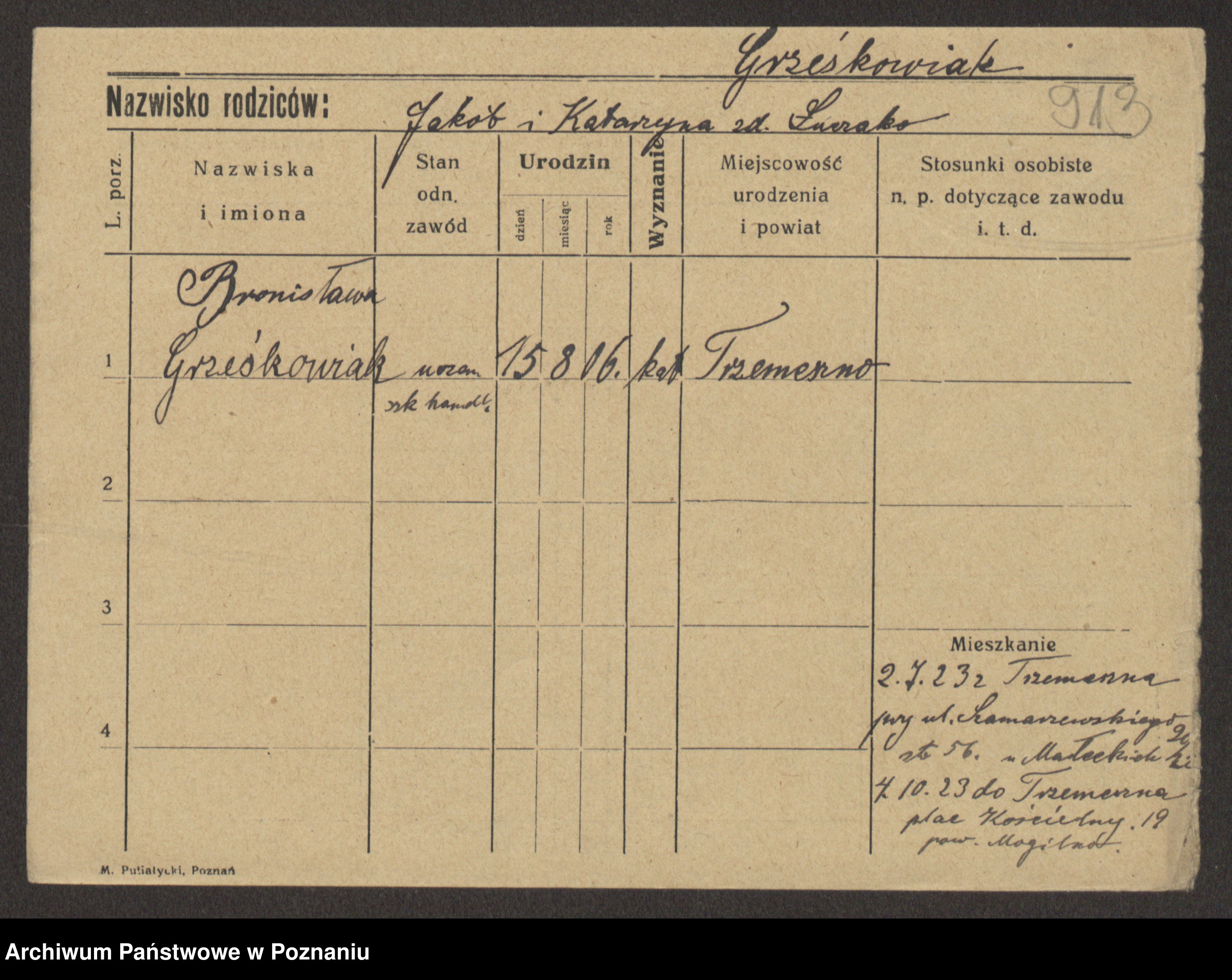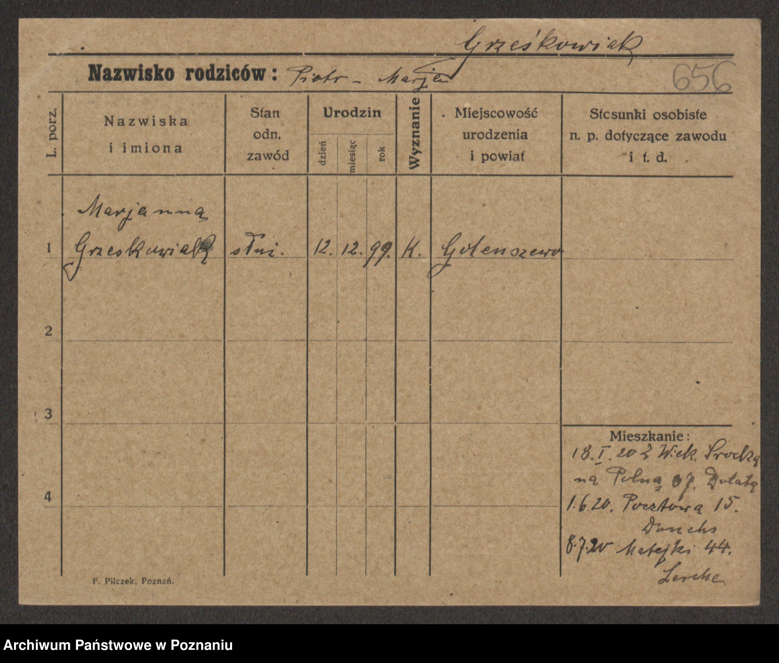 Grześkowiak z d. Czechelska, Marja