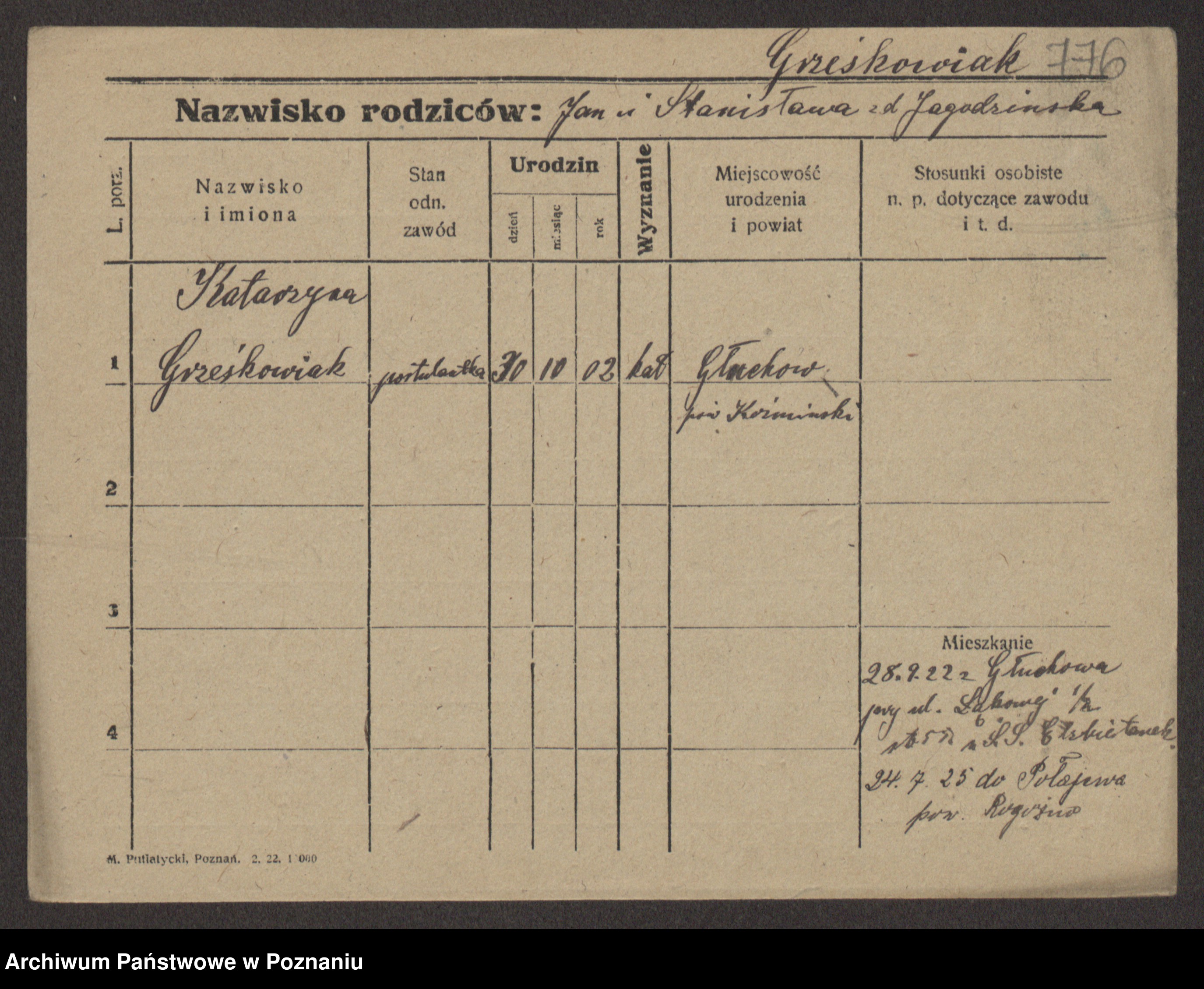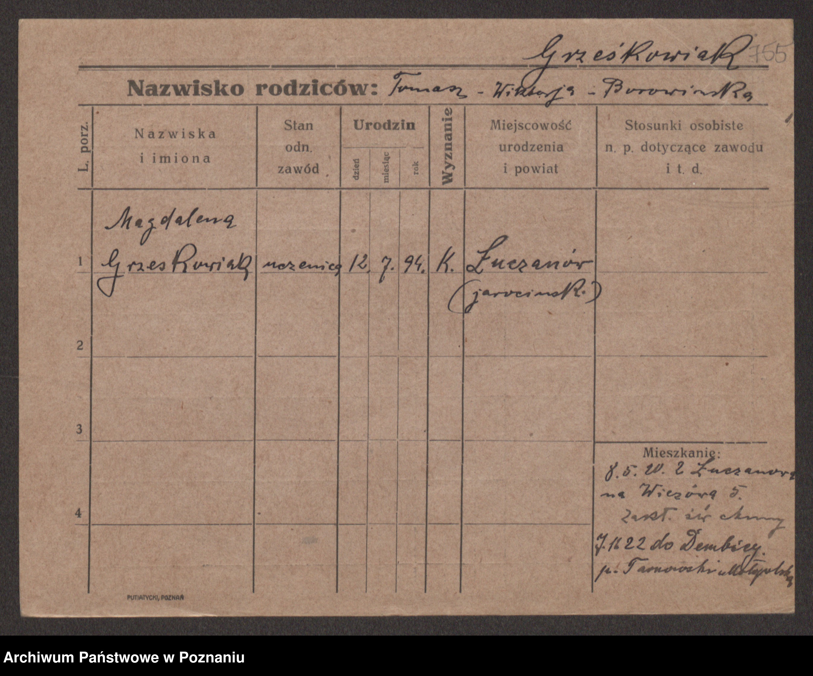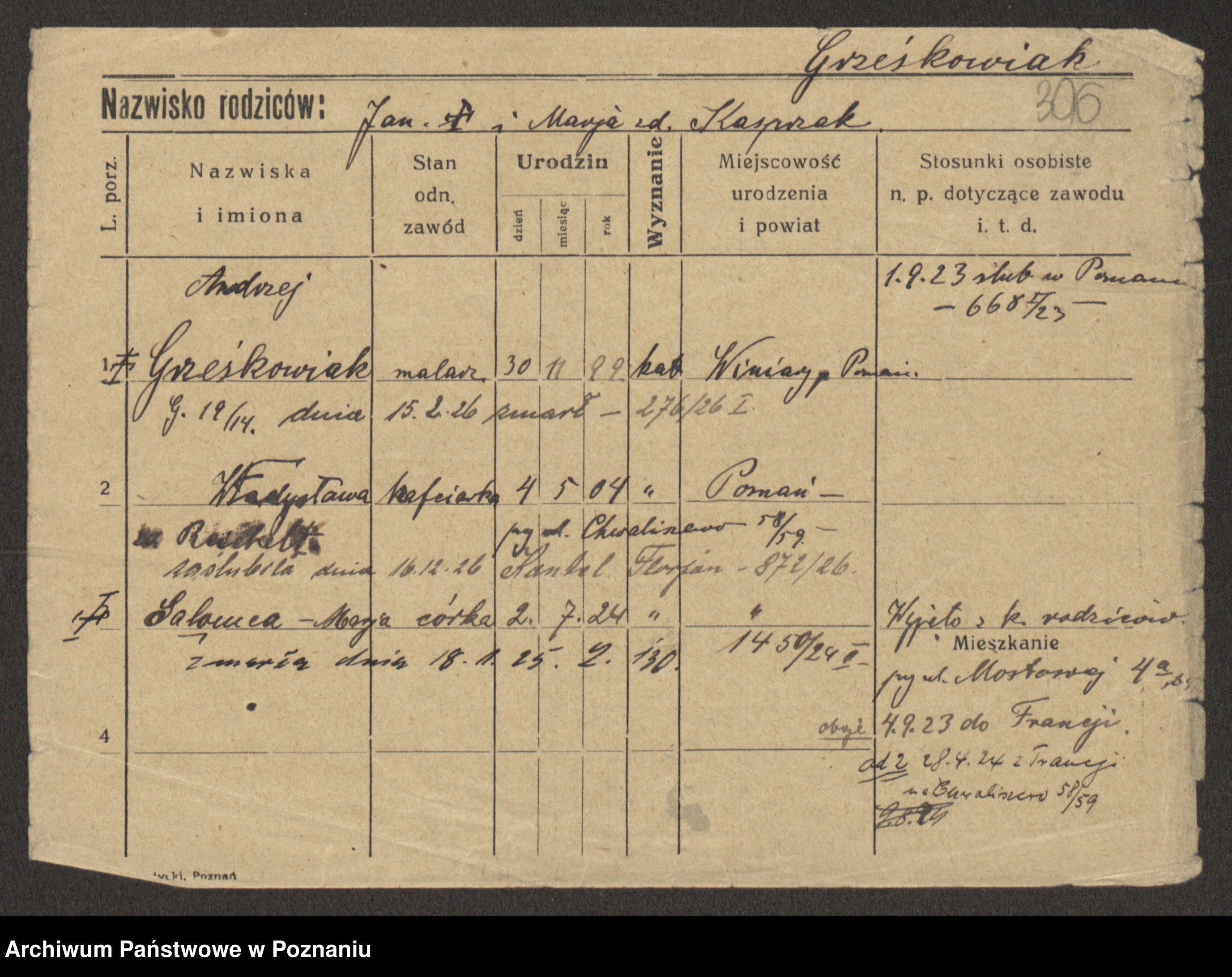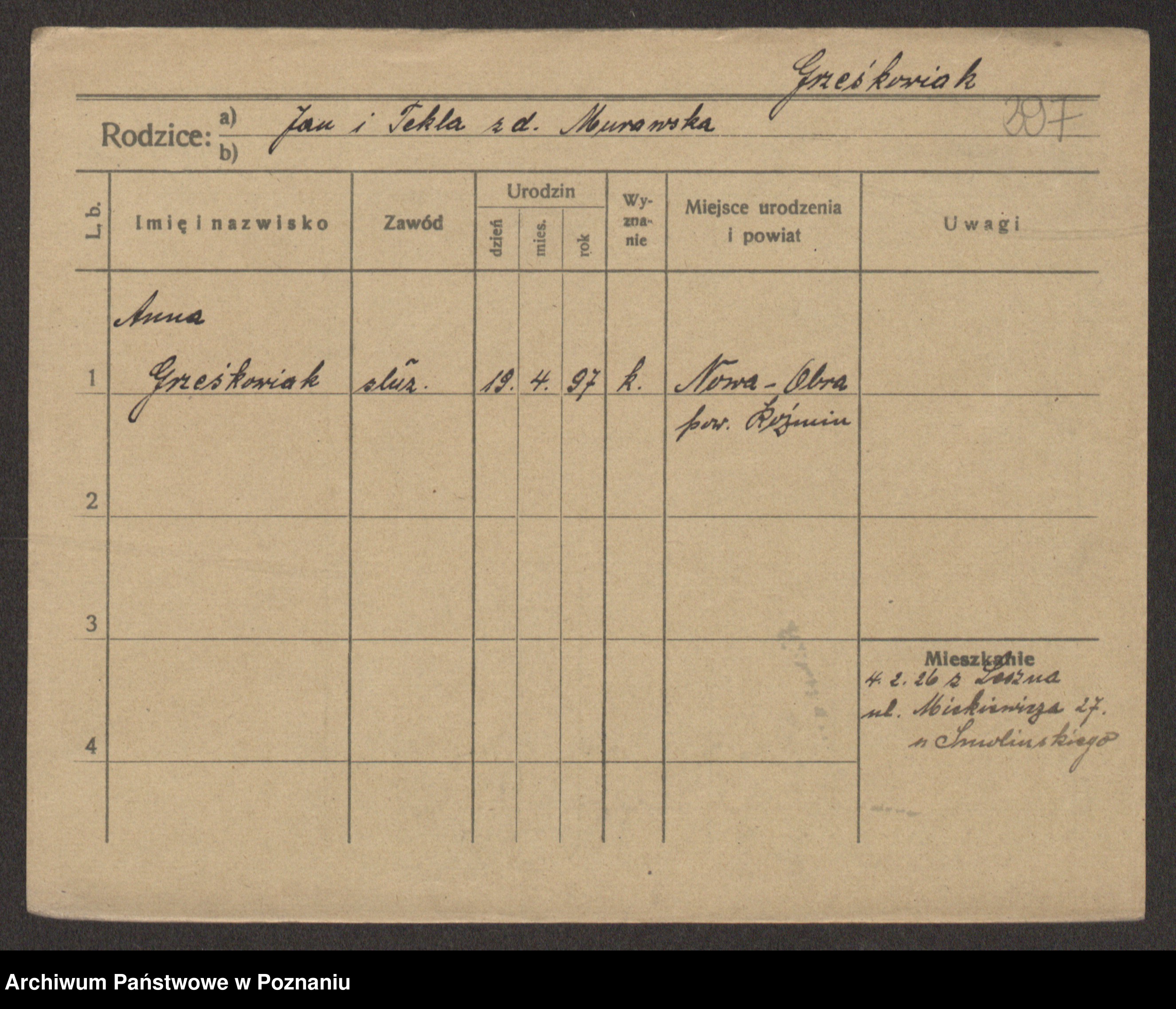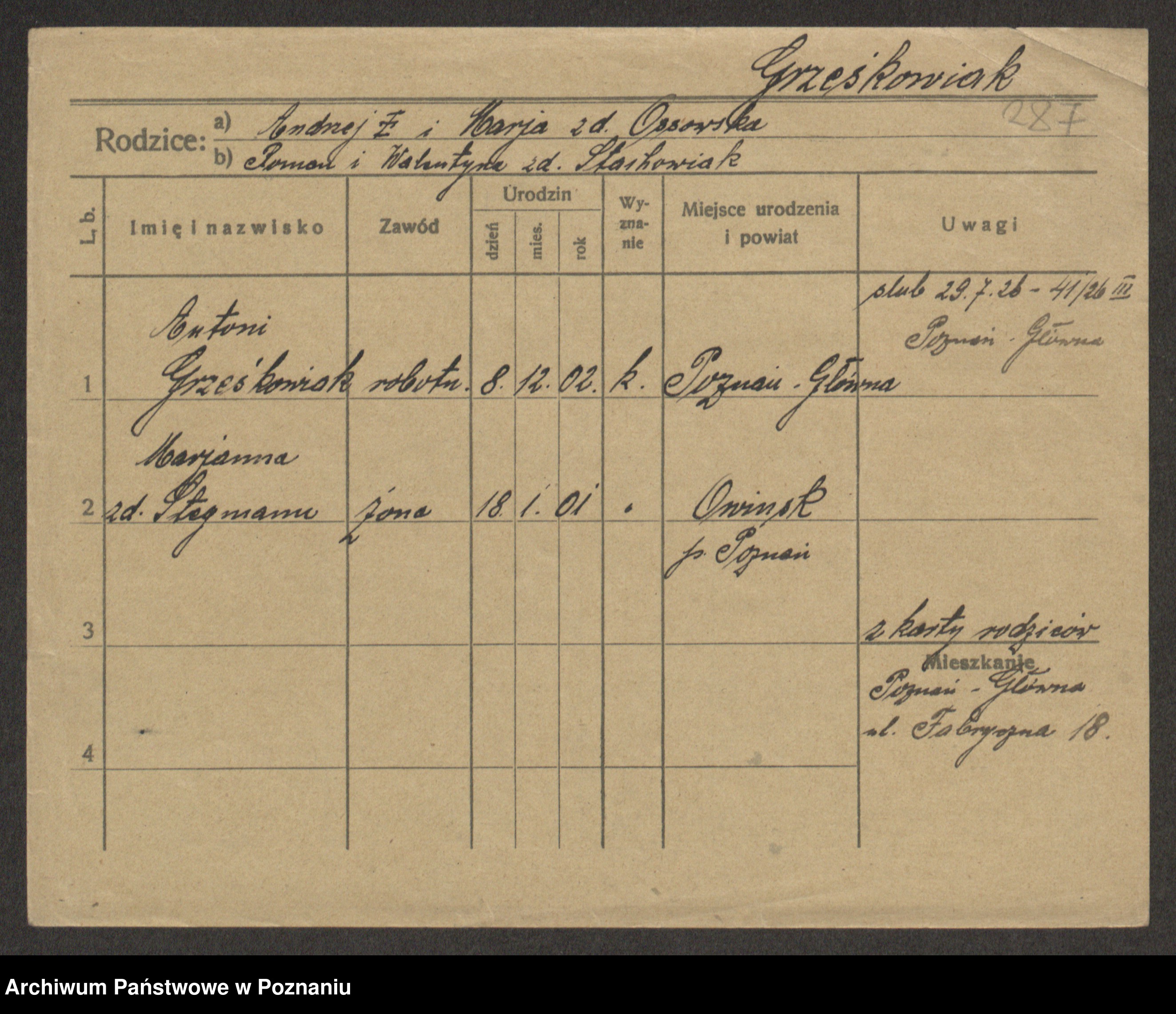 Grześkowiak z d. Czechelska, Marja