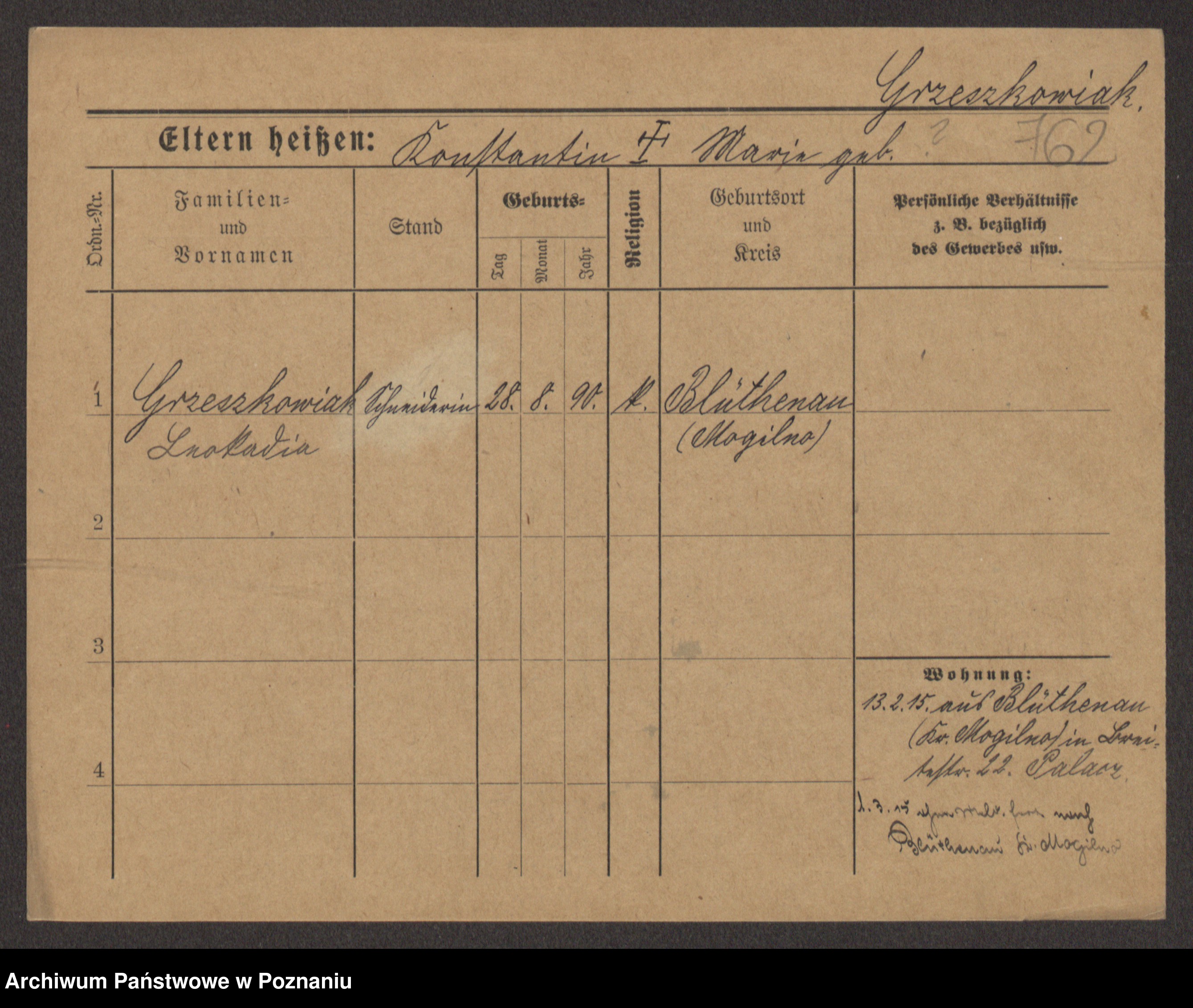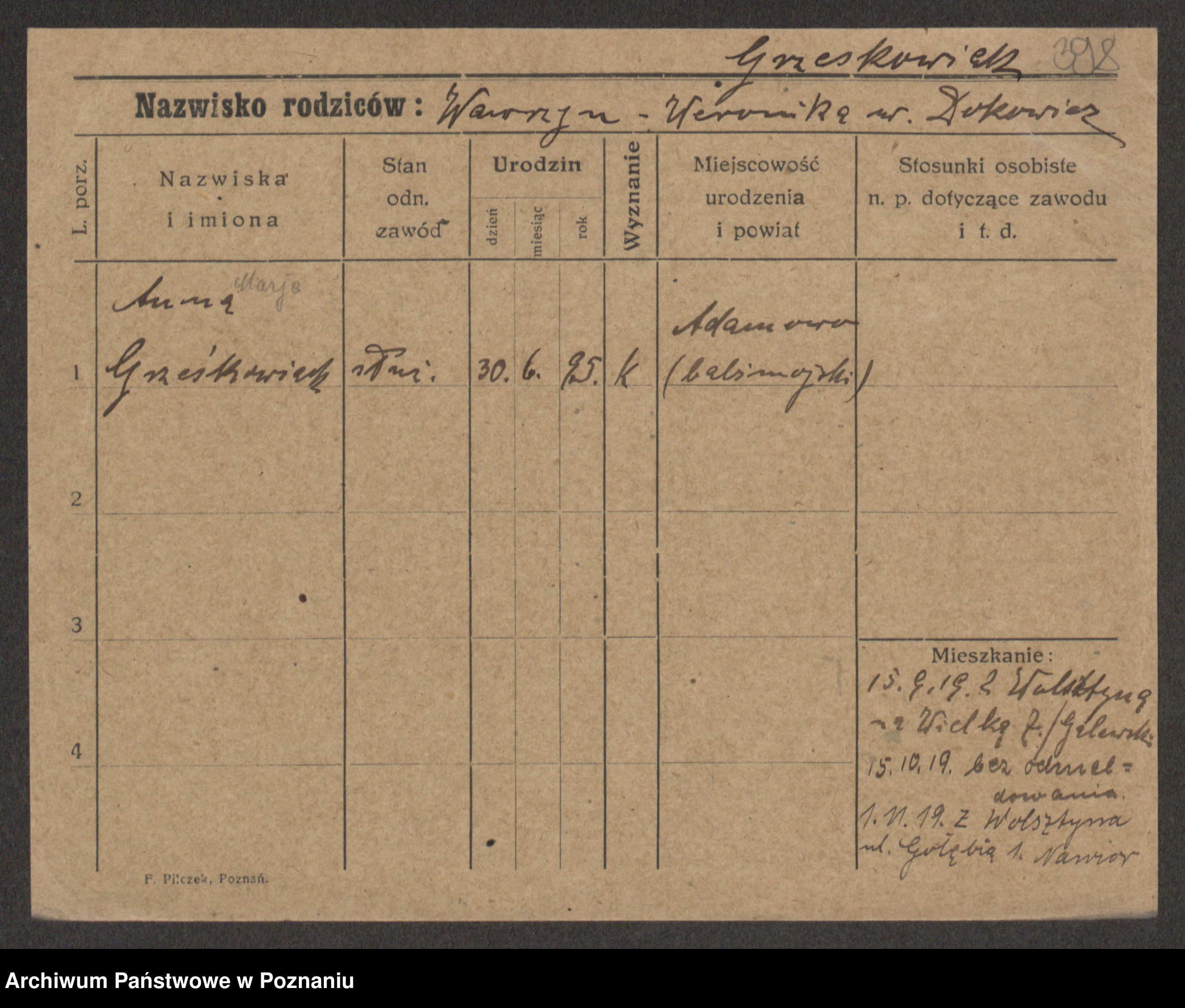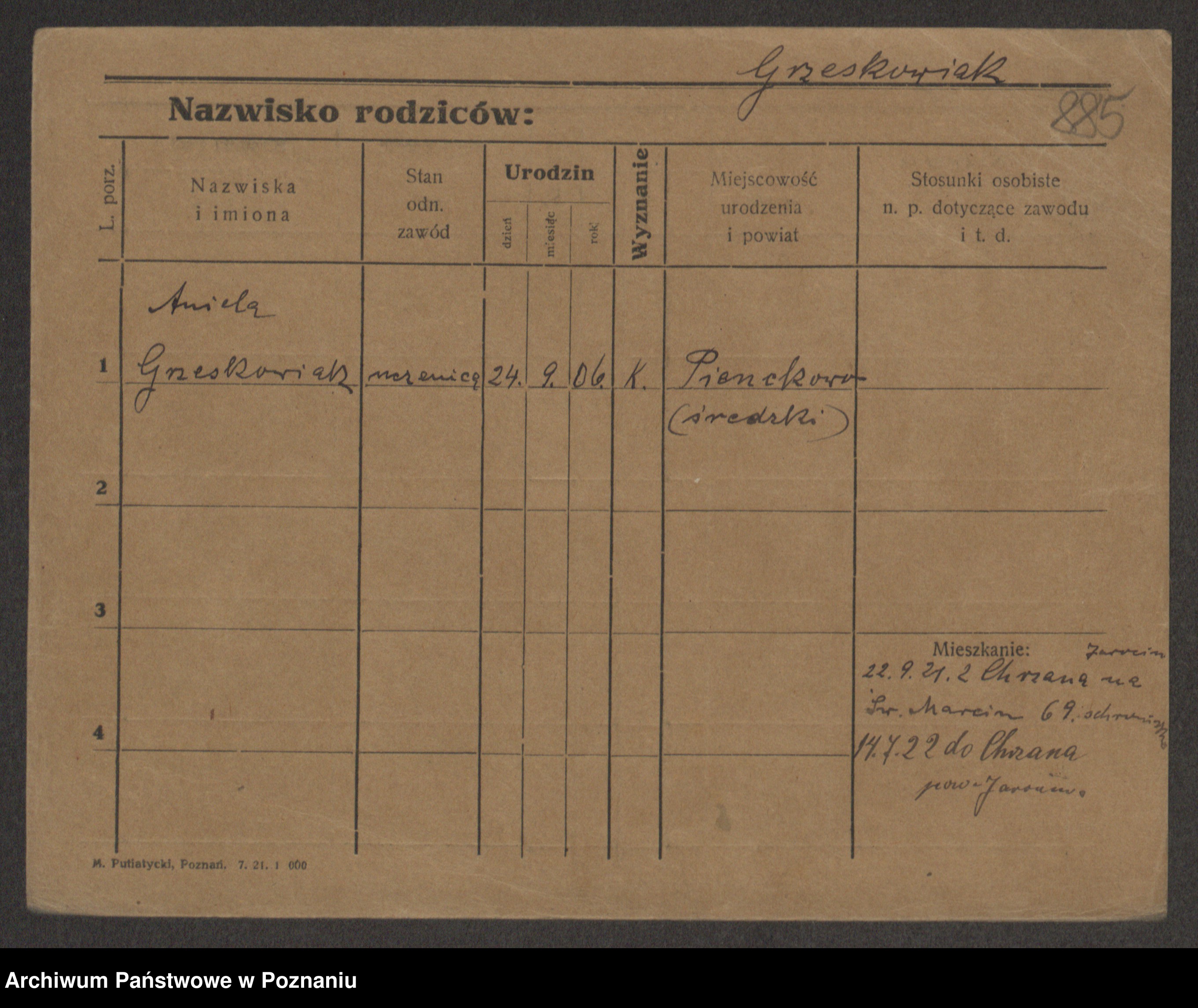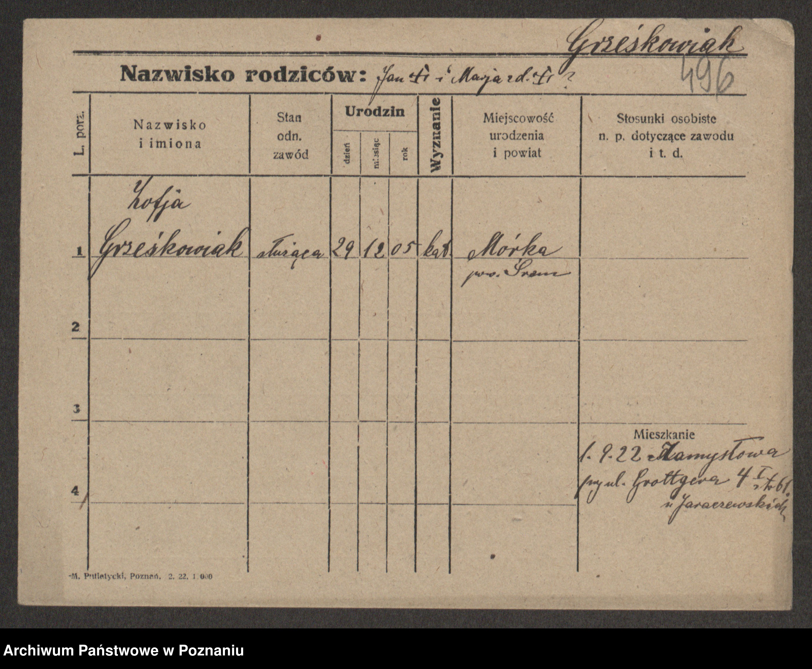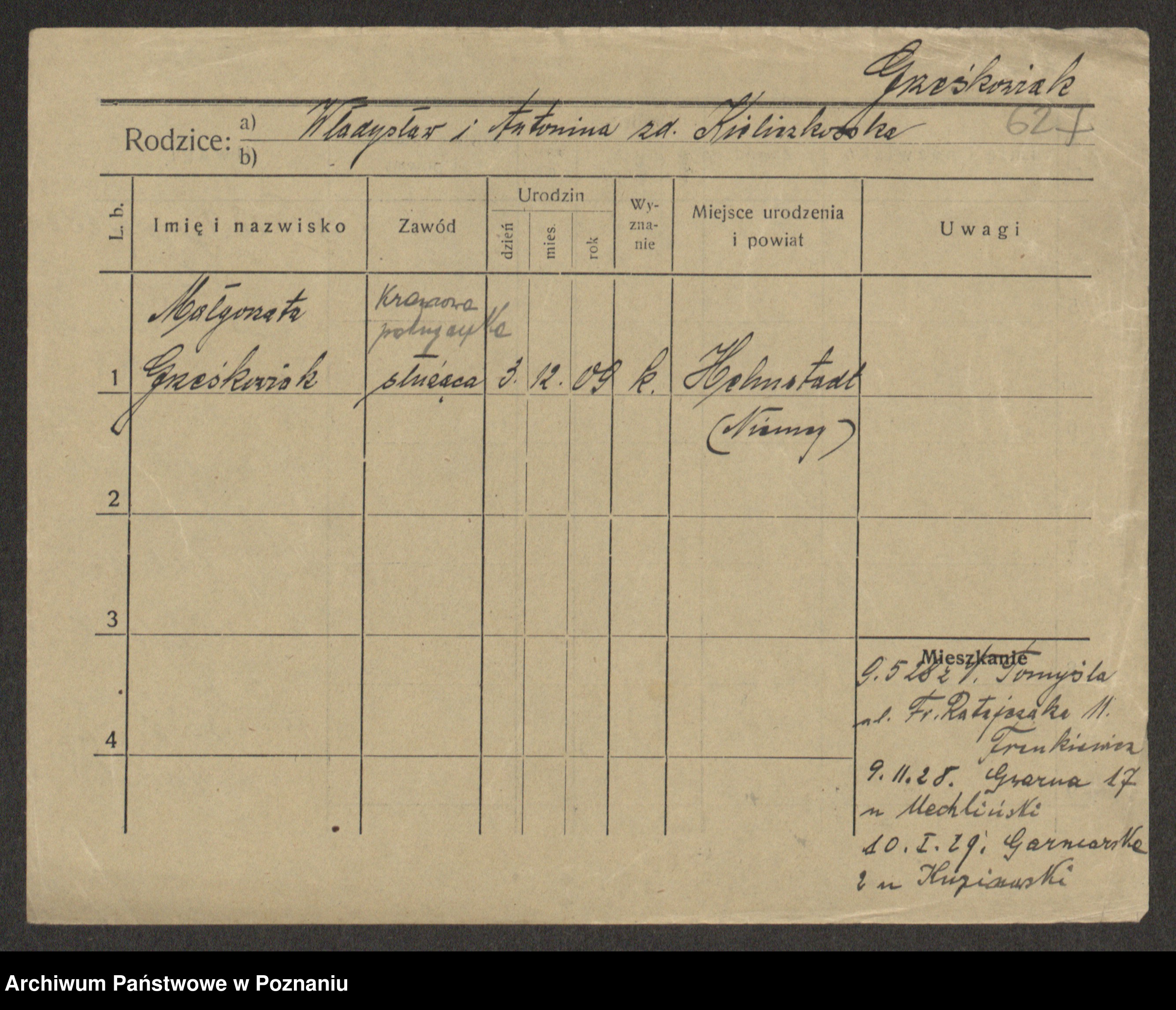 Grześkowiak z d. Czechelska, Marja