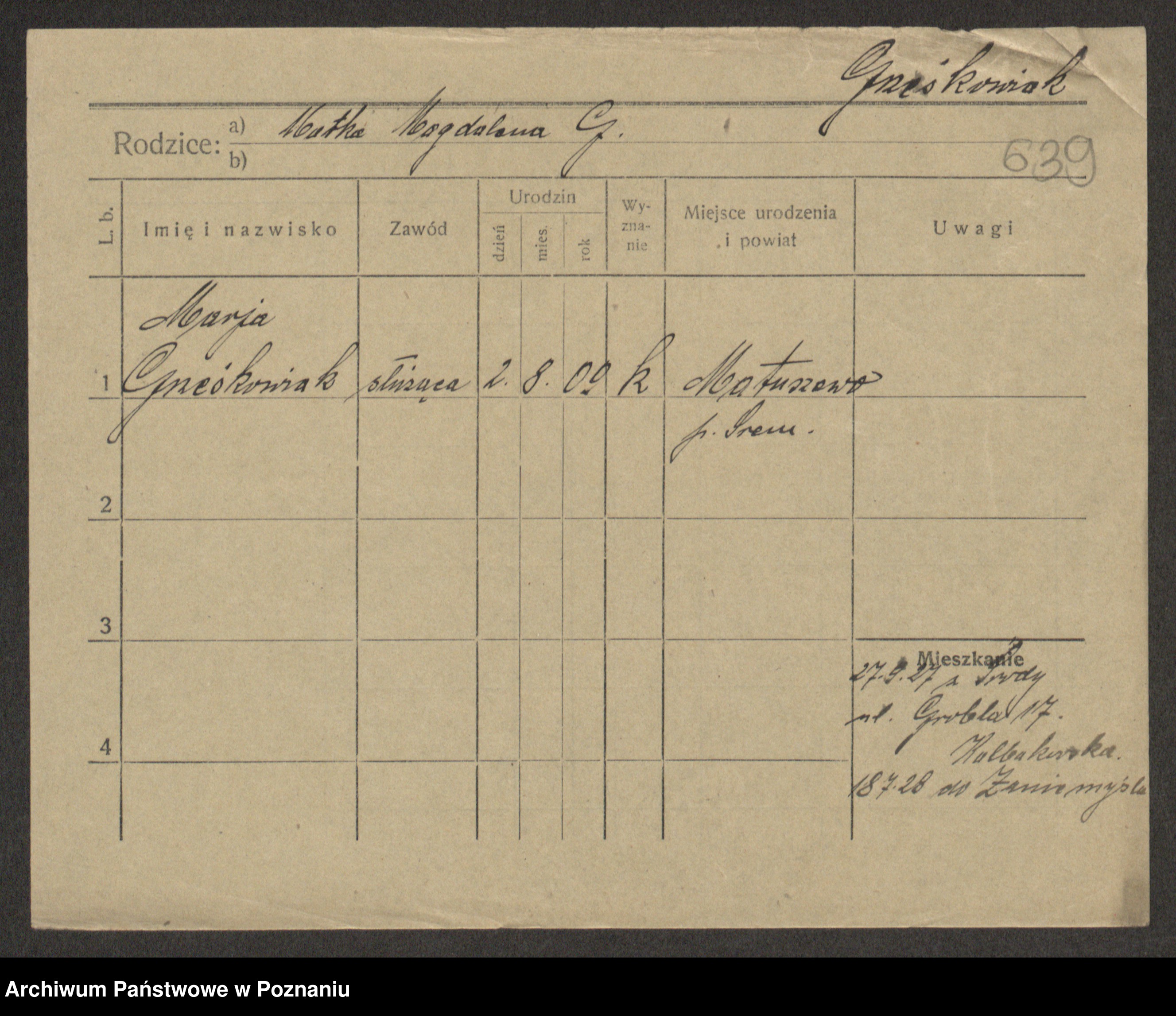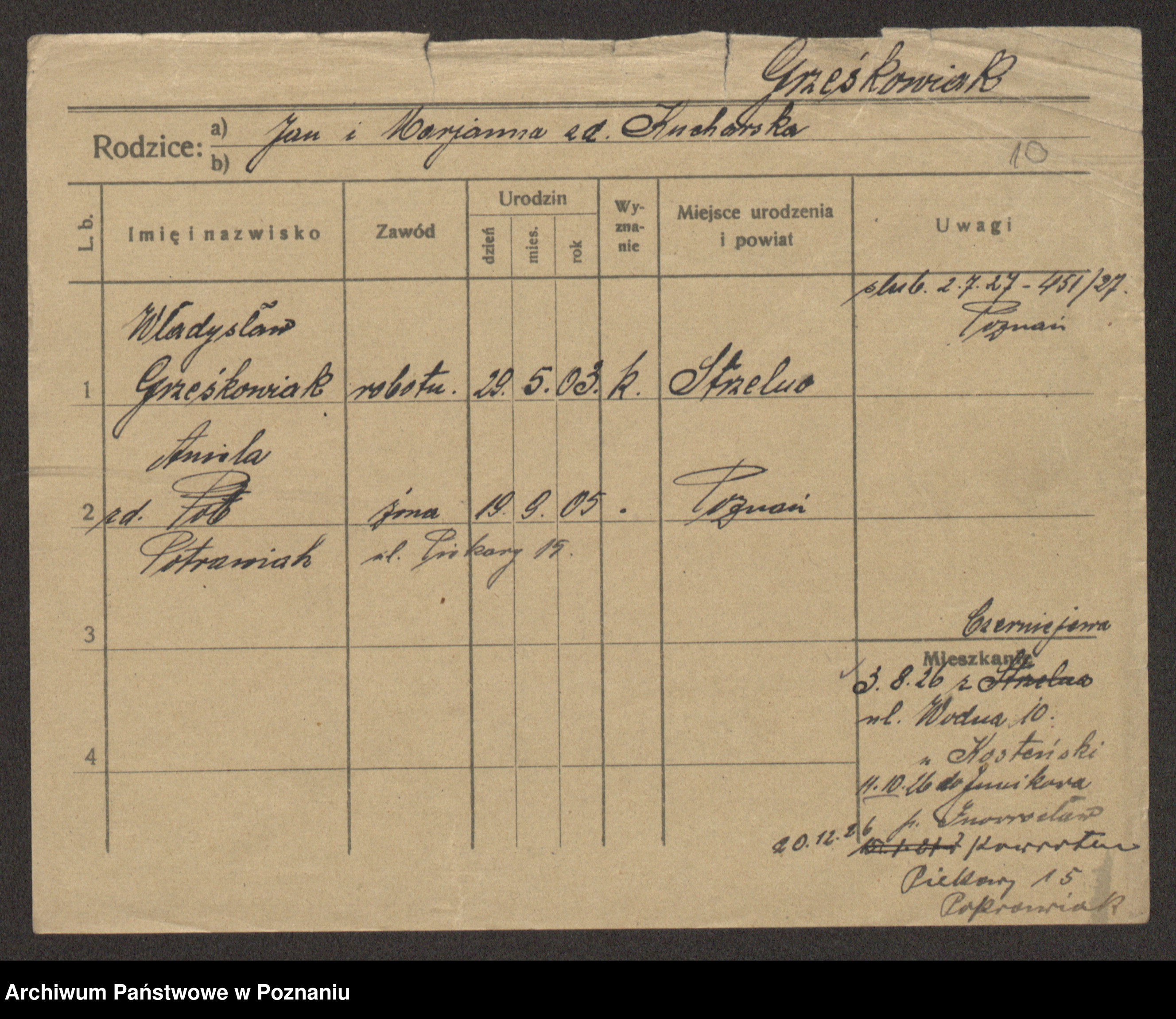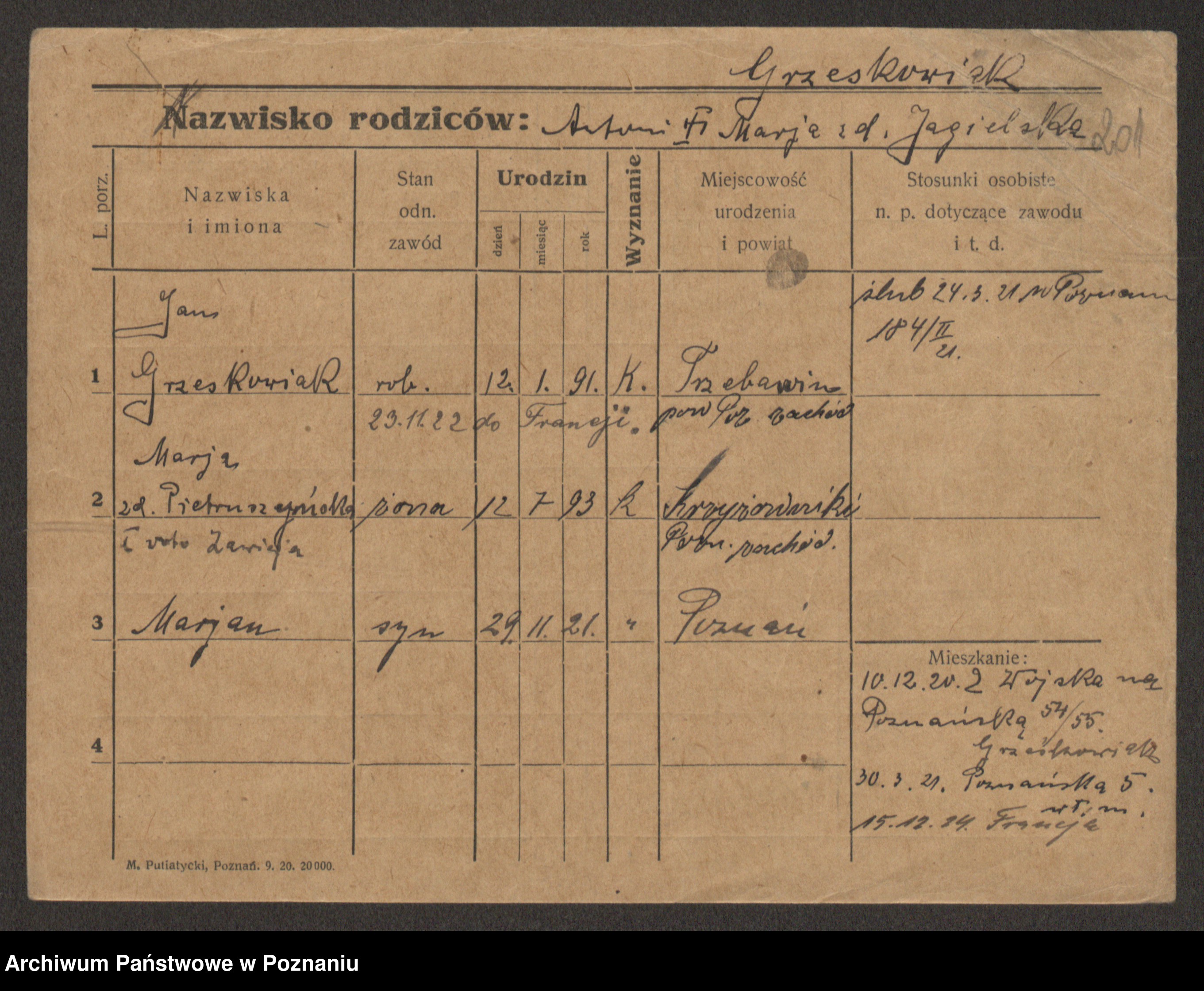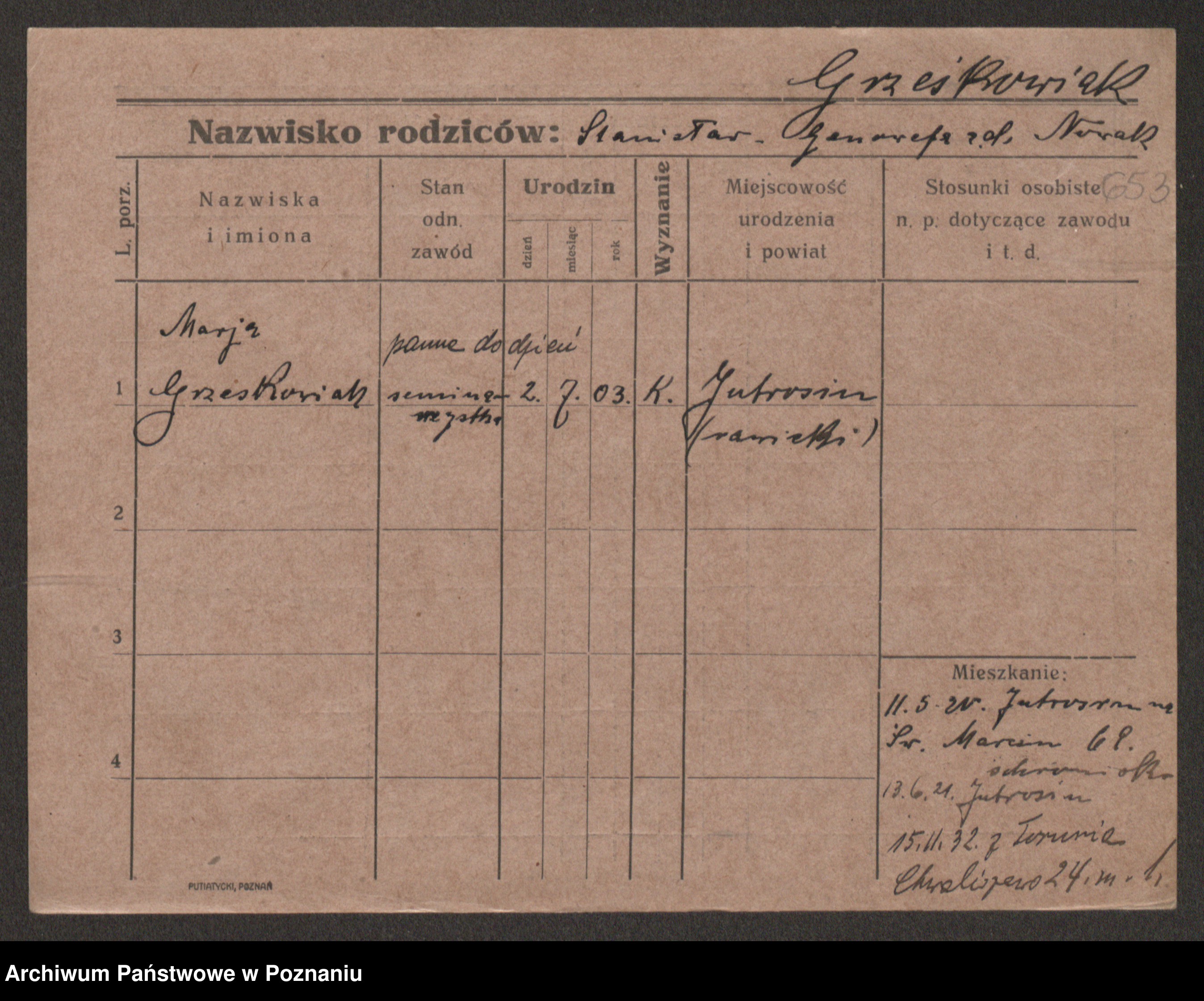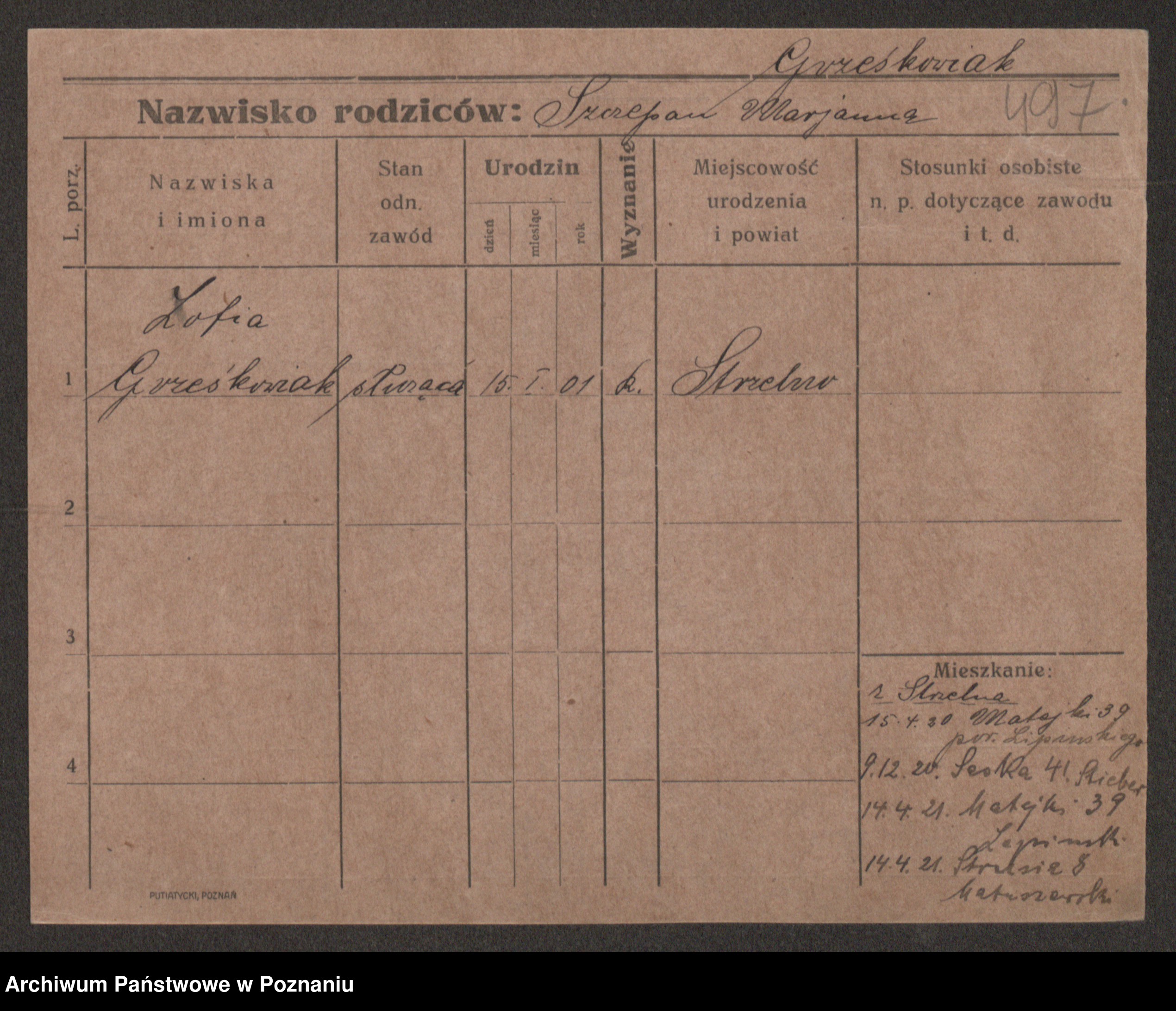 Grześkowiak z d. Czechelska, Marja