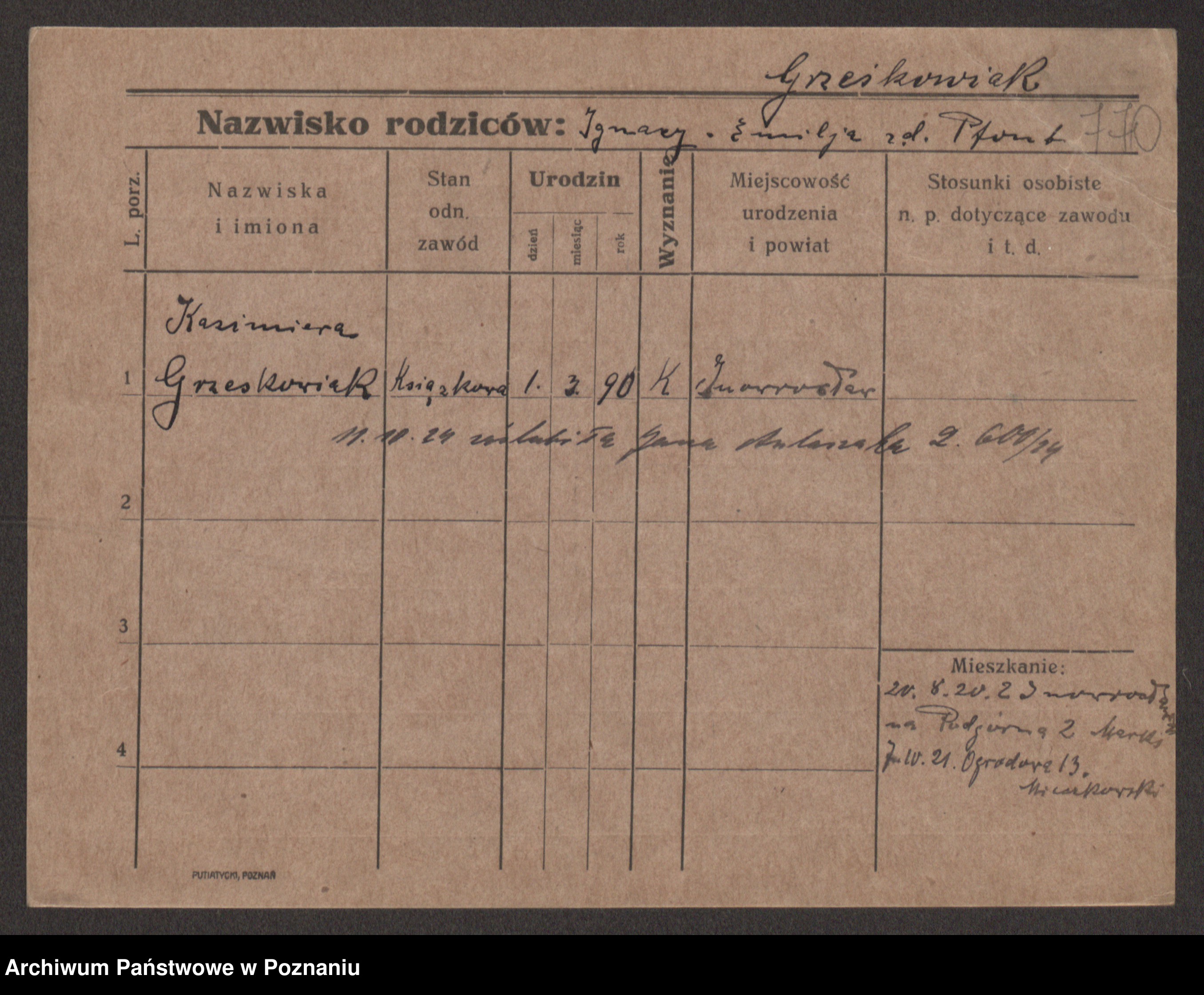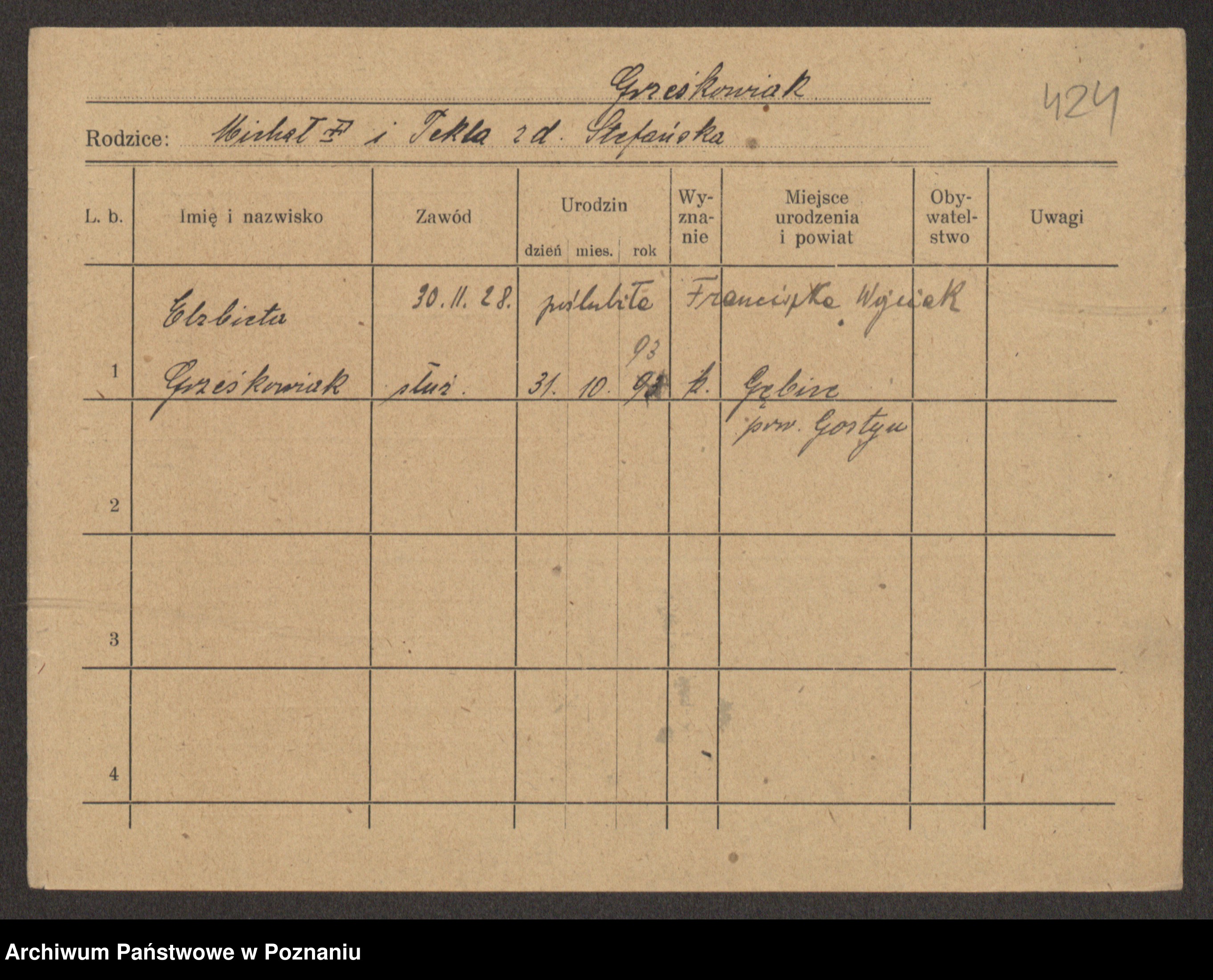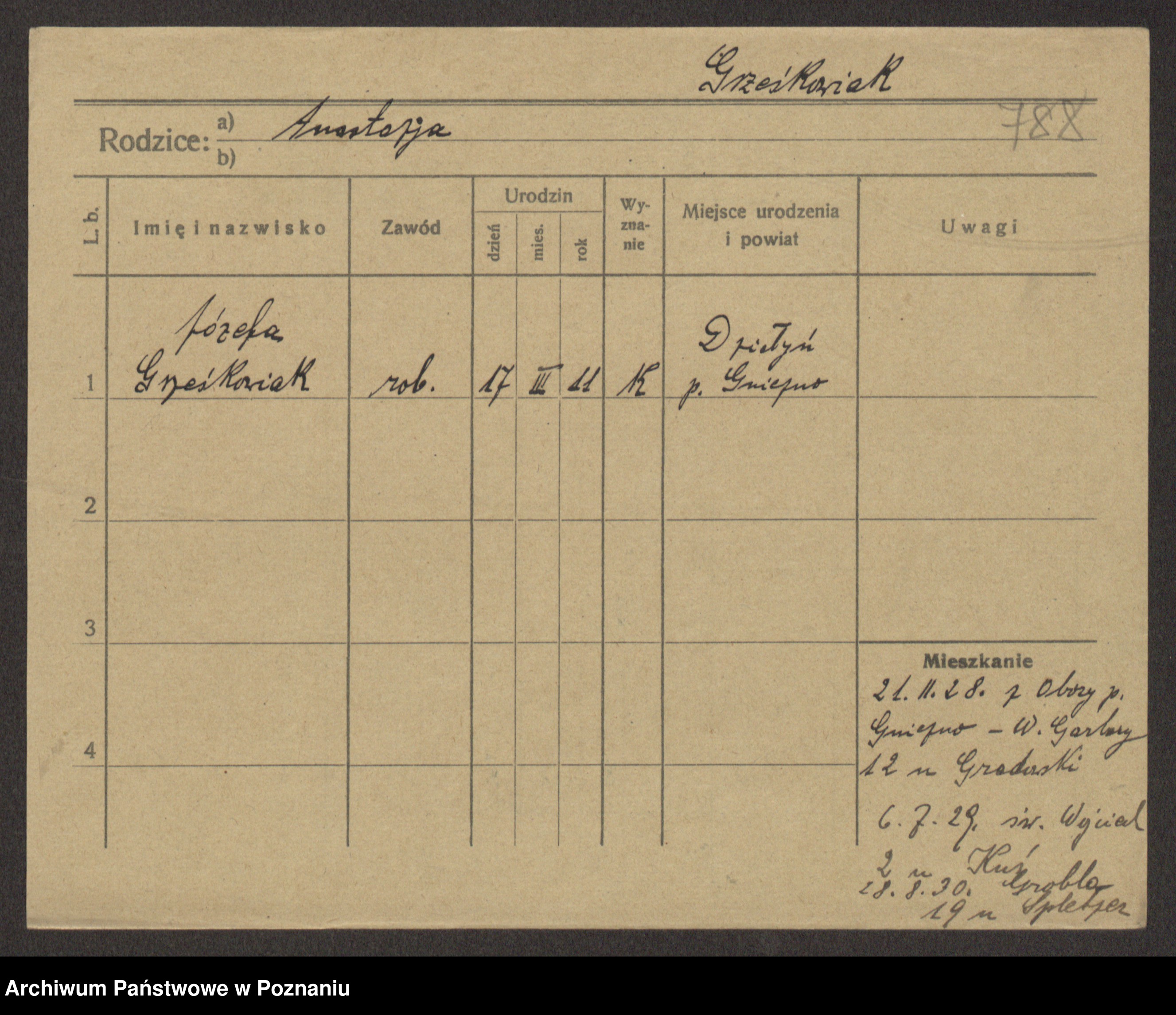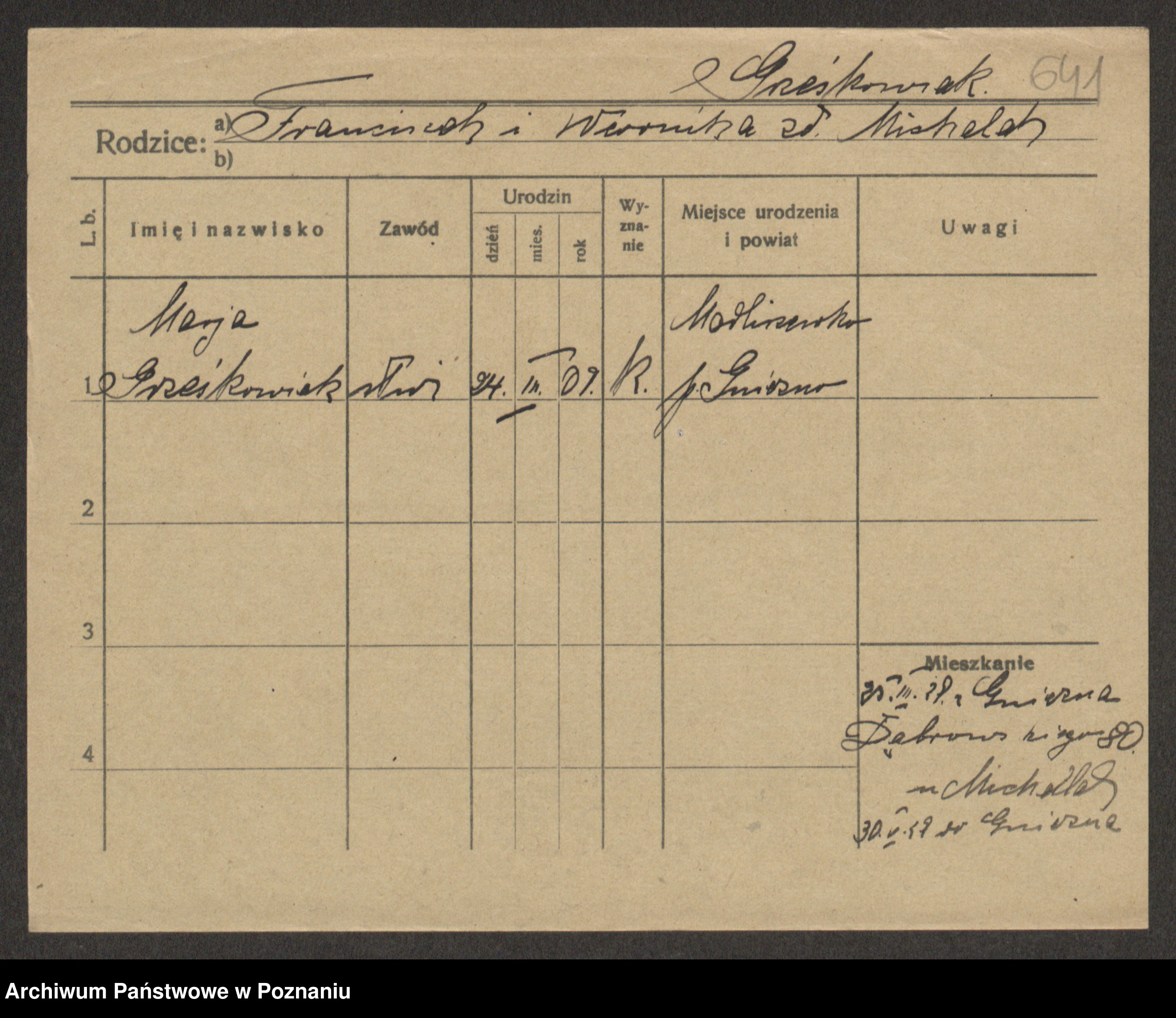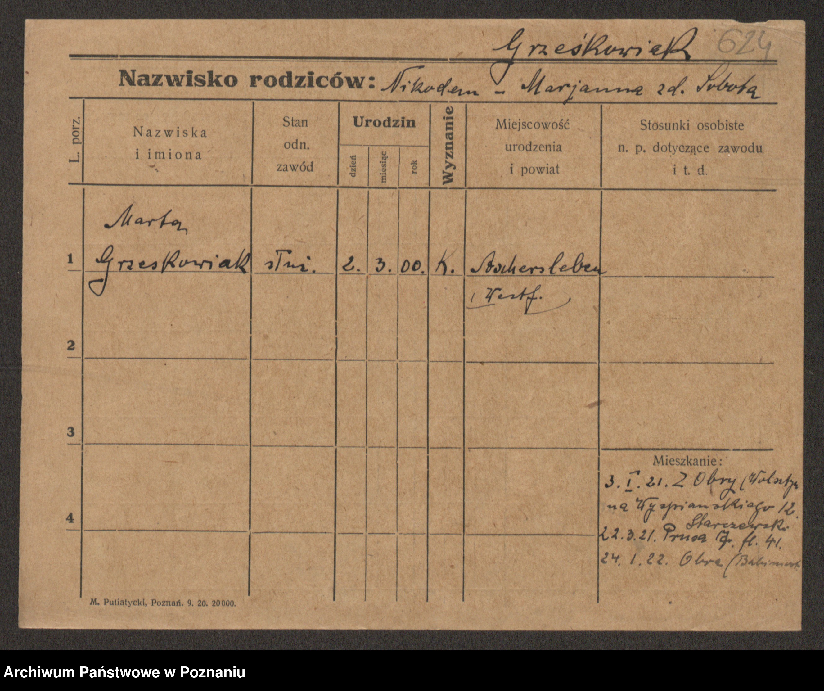 Grześkowiak z d. Czechelska, Marja