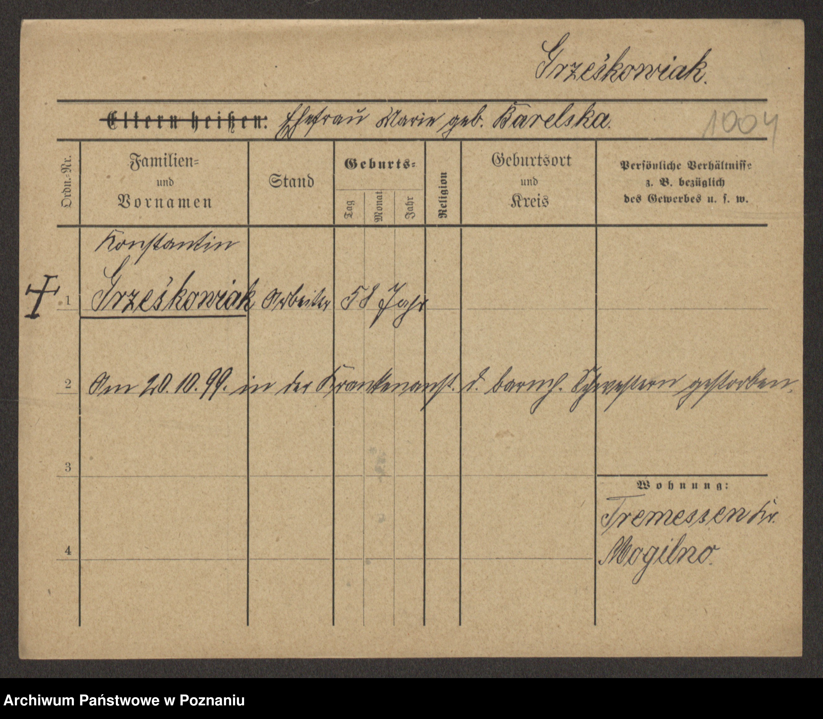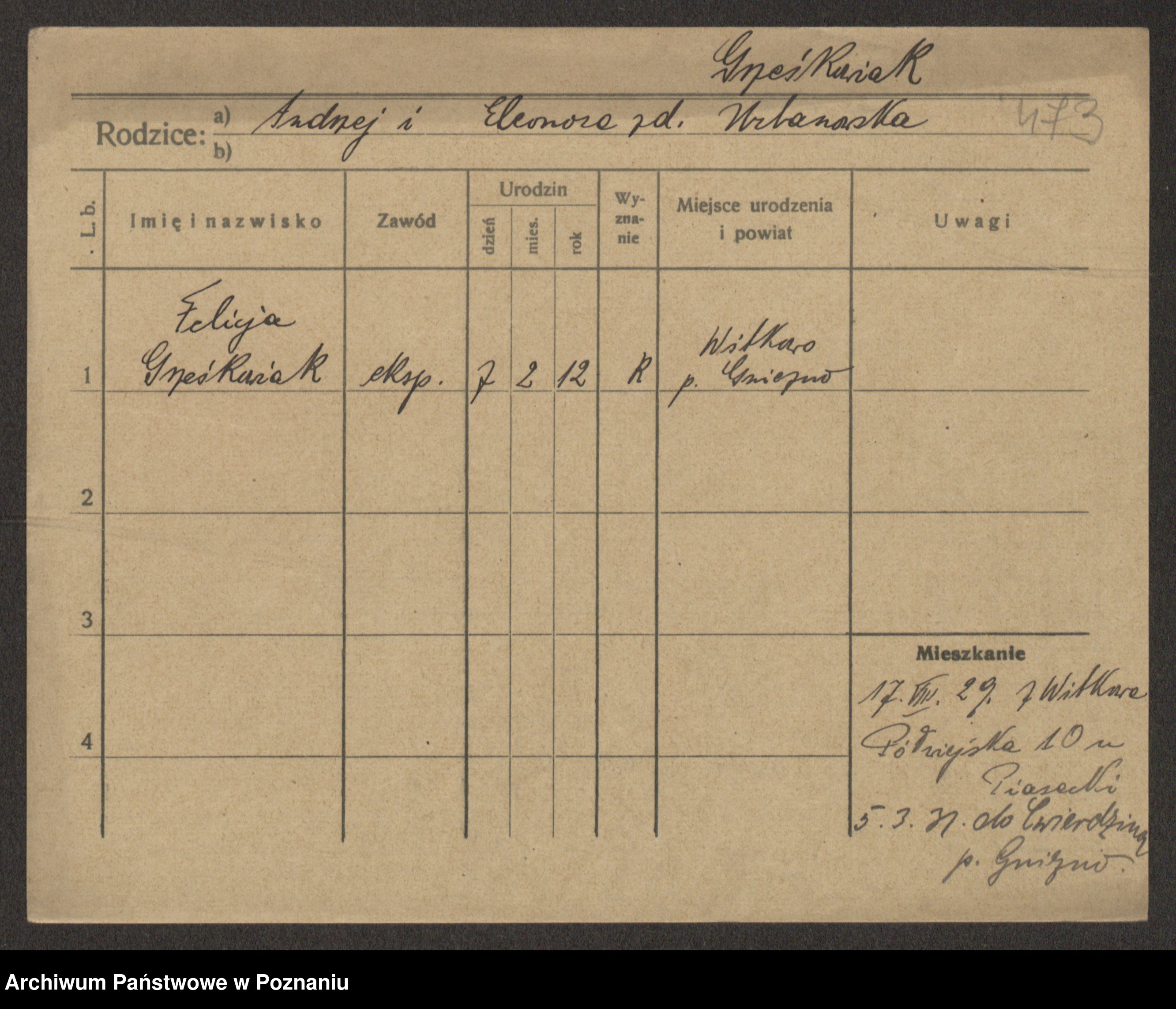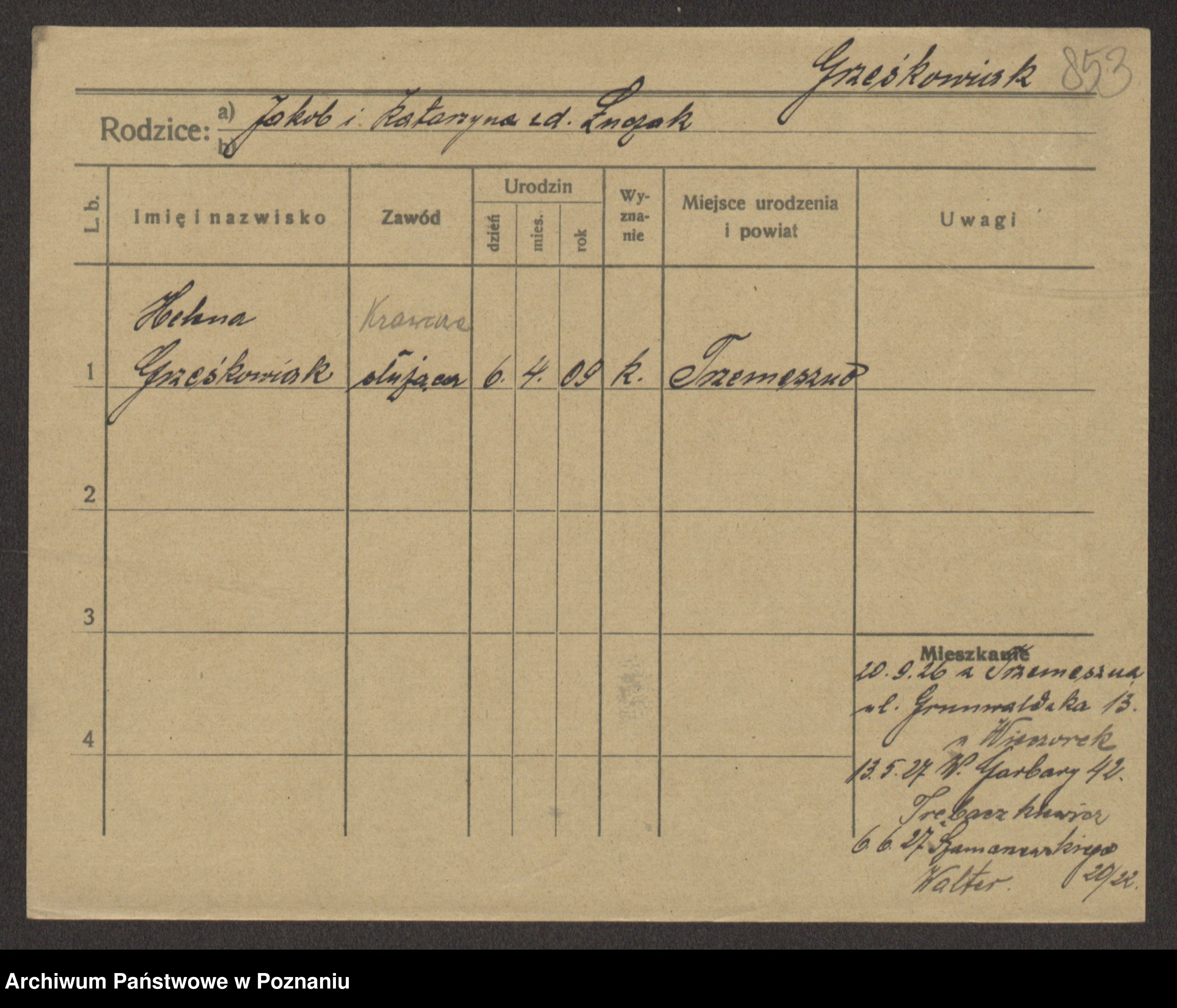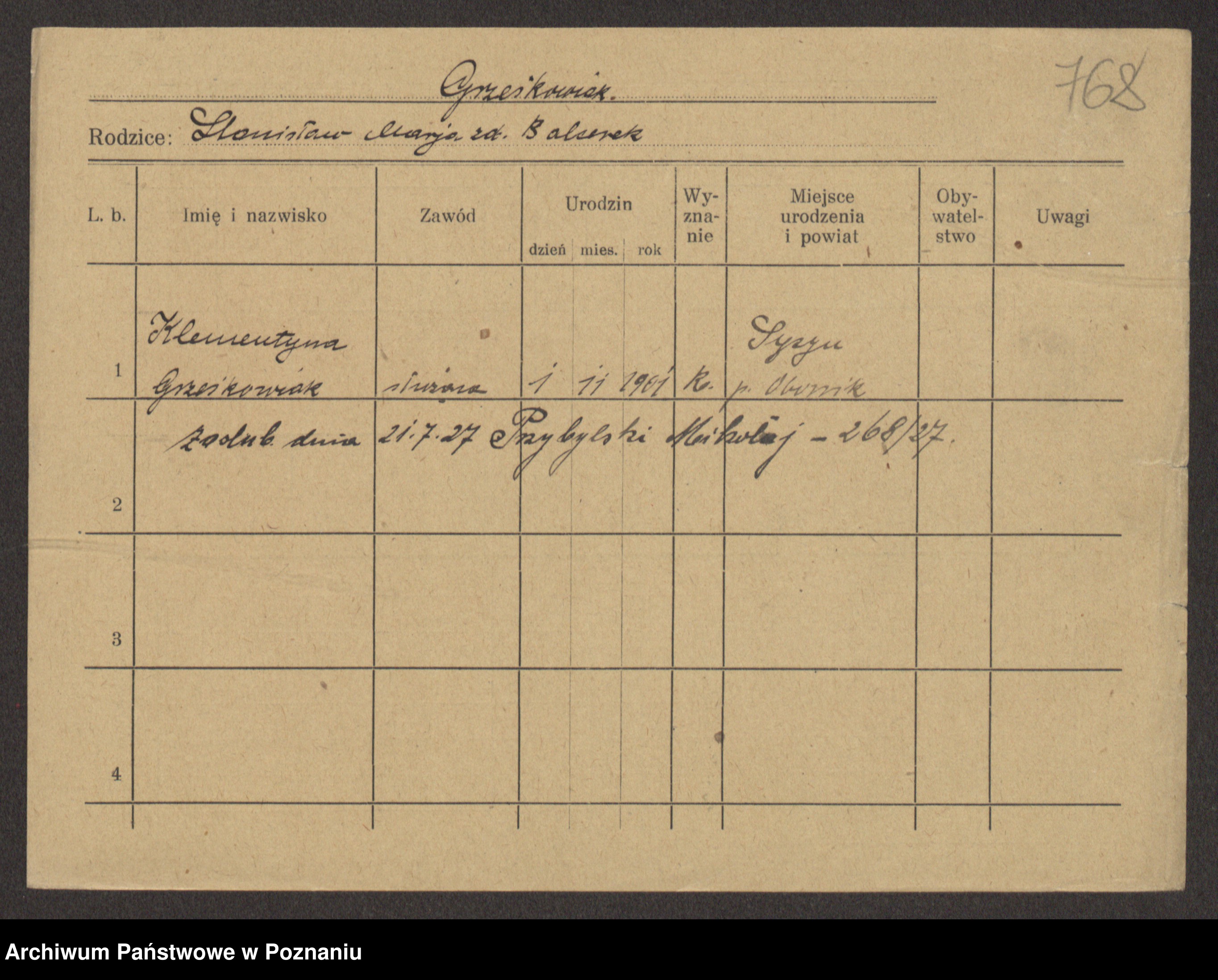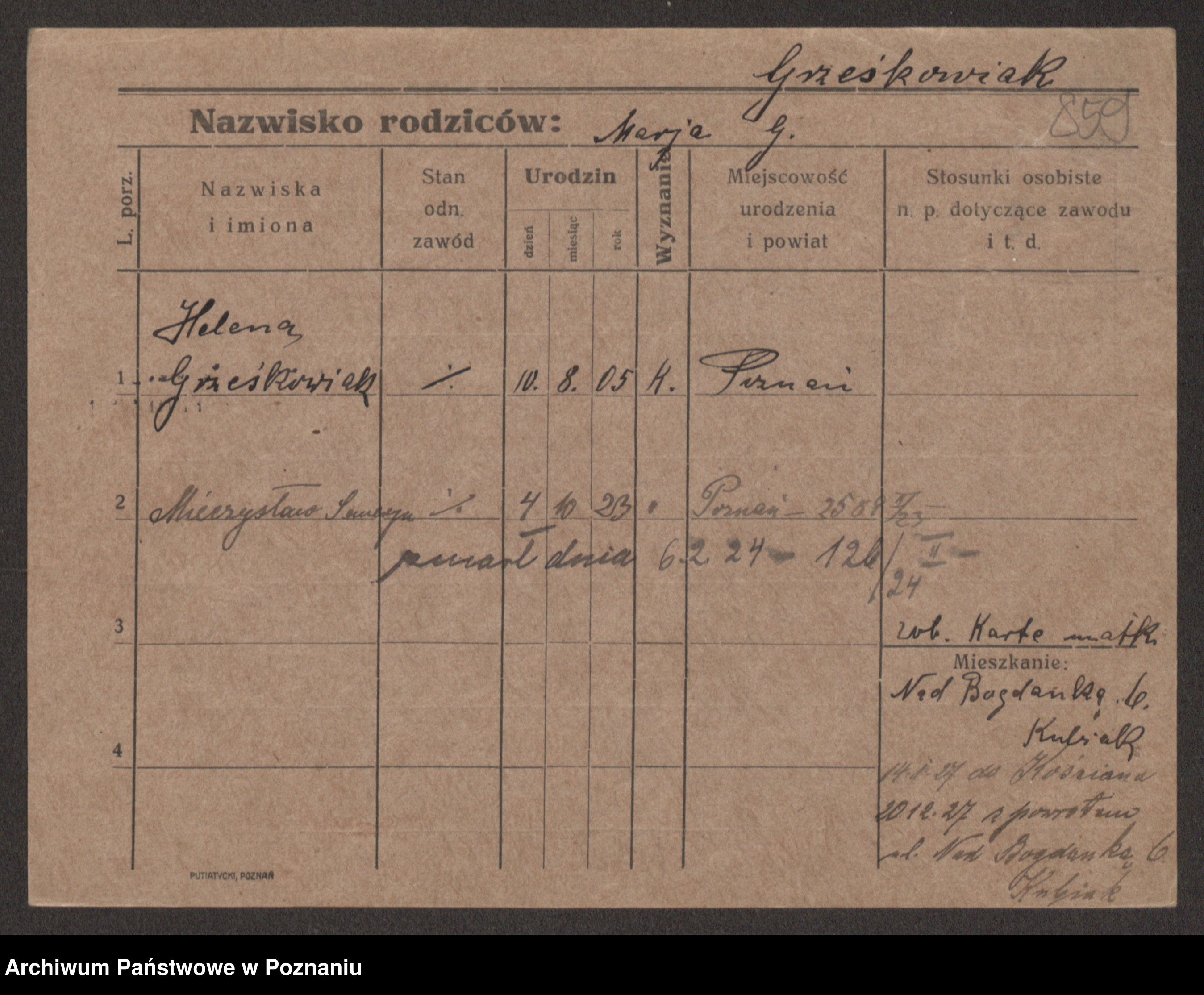 Grześkowiak z d. Czechelska, Marja