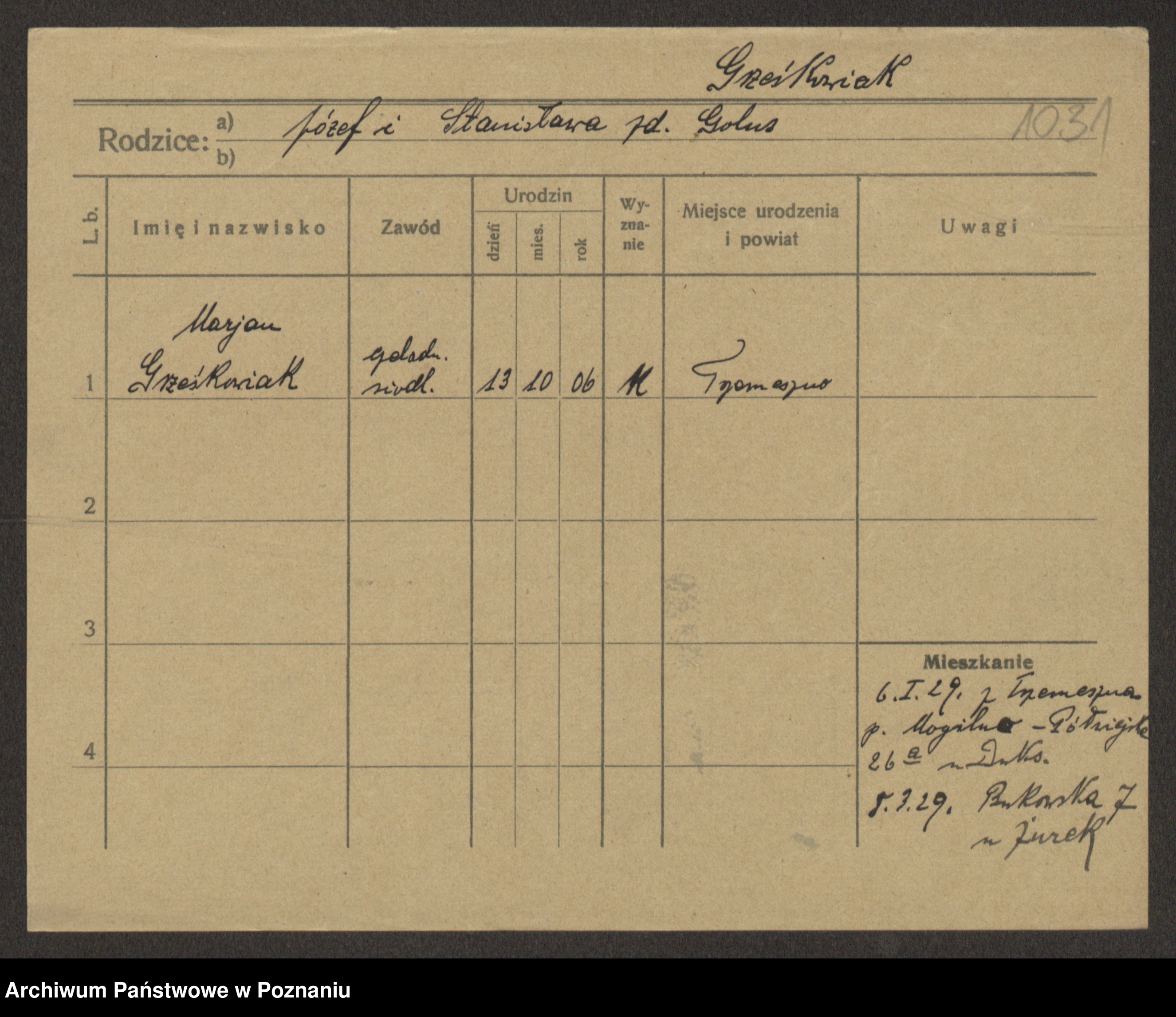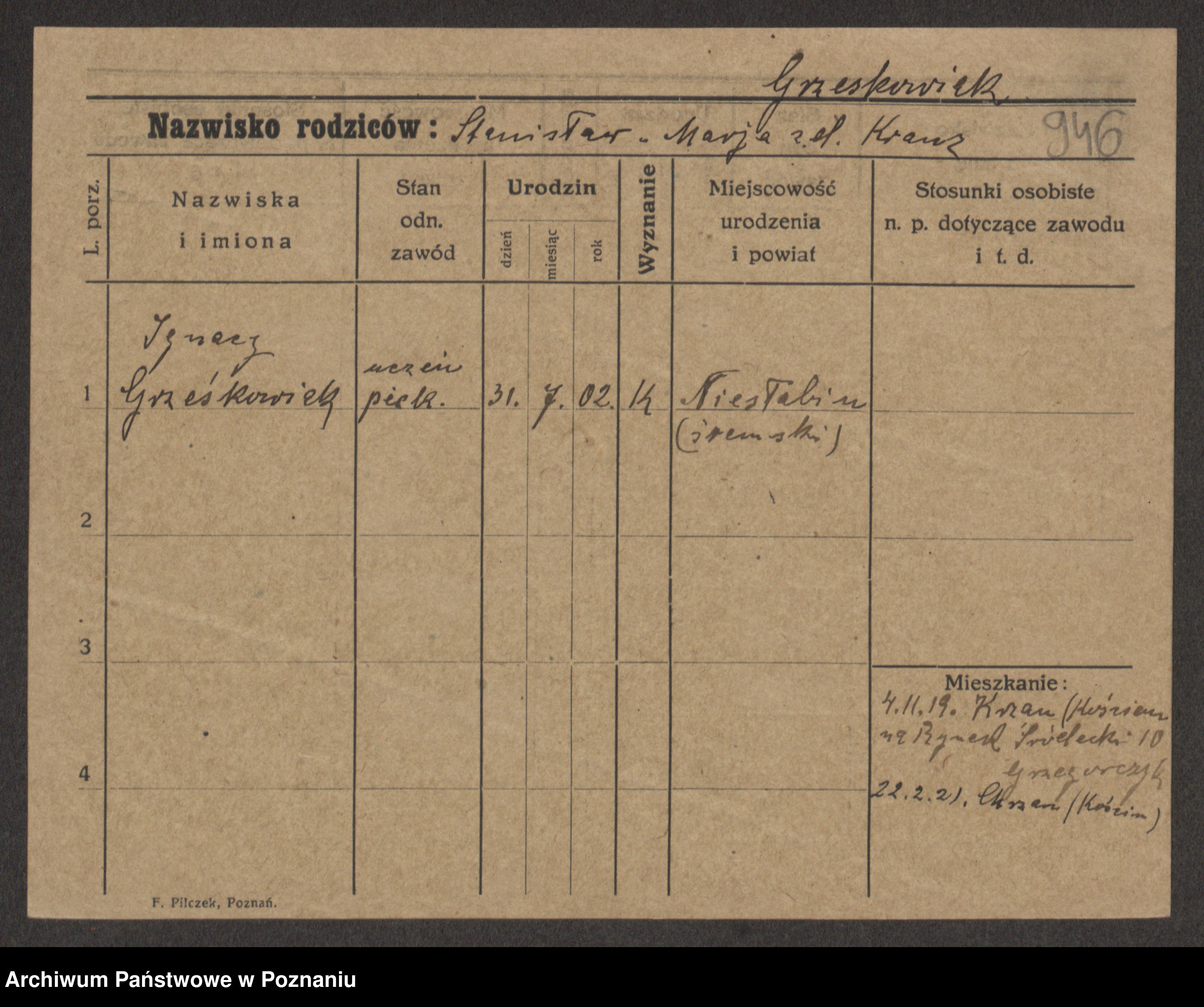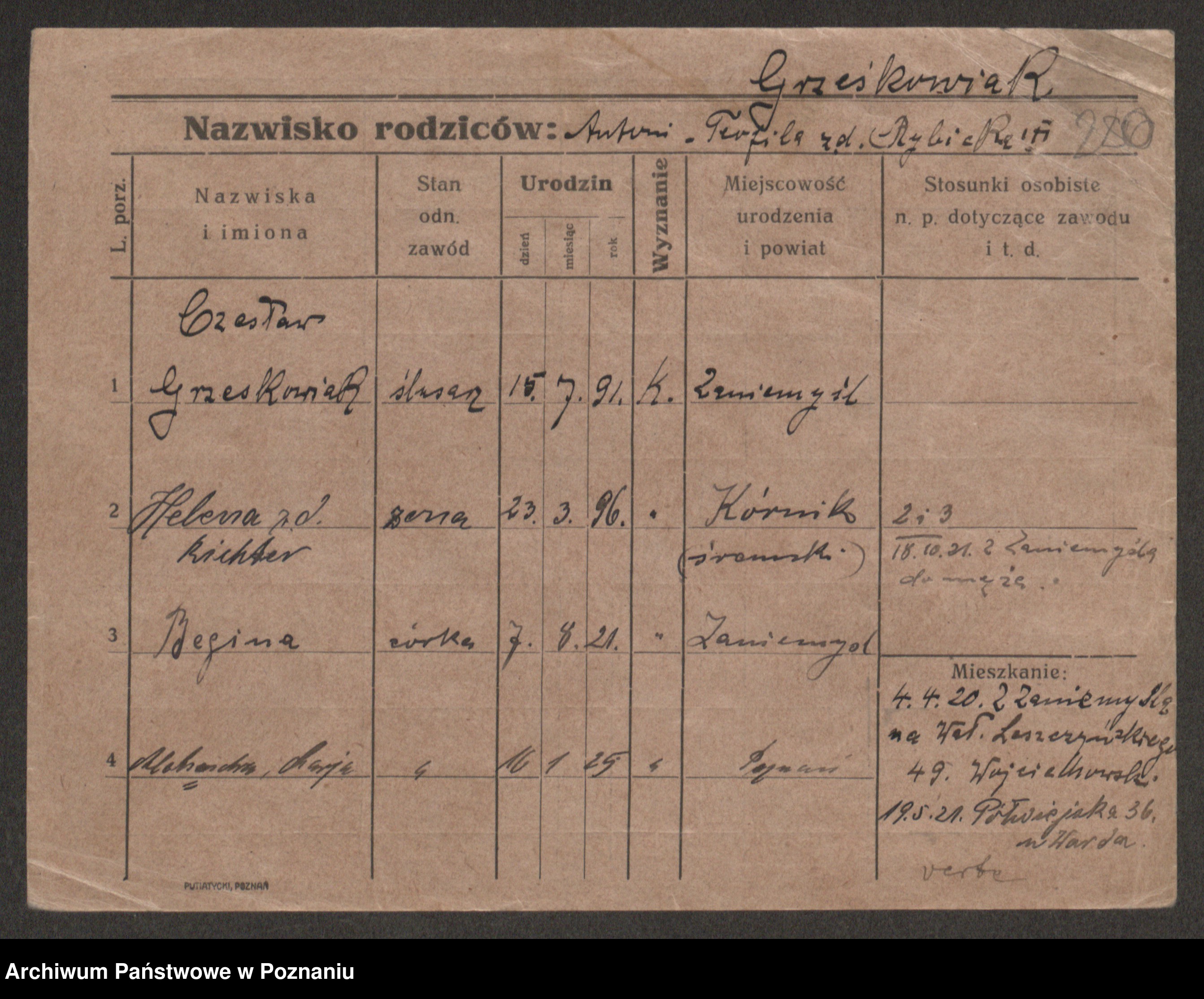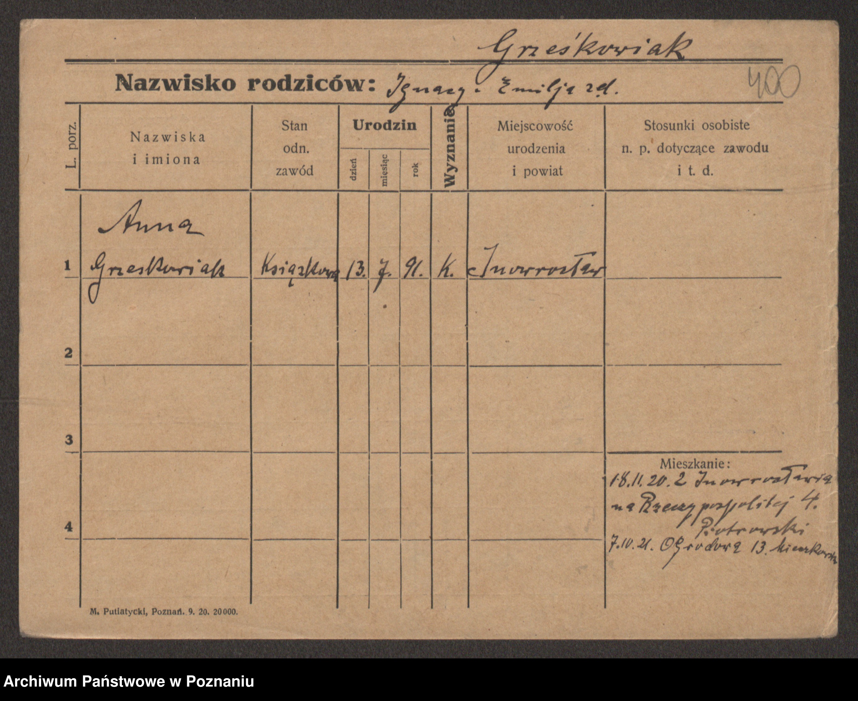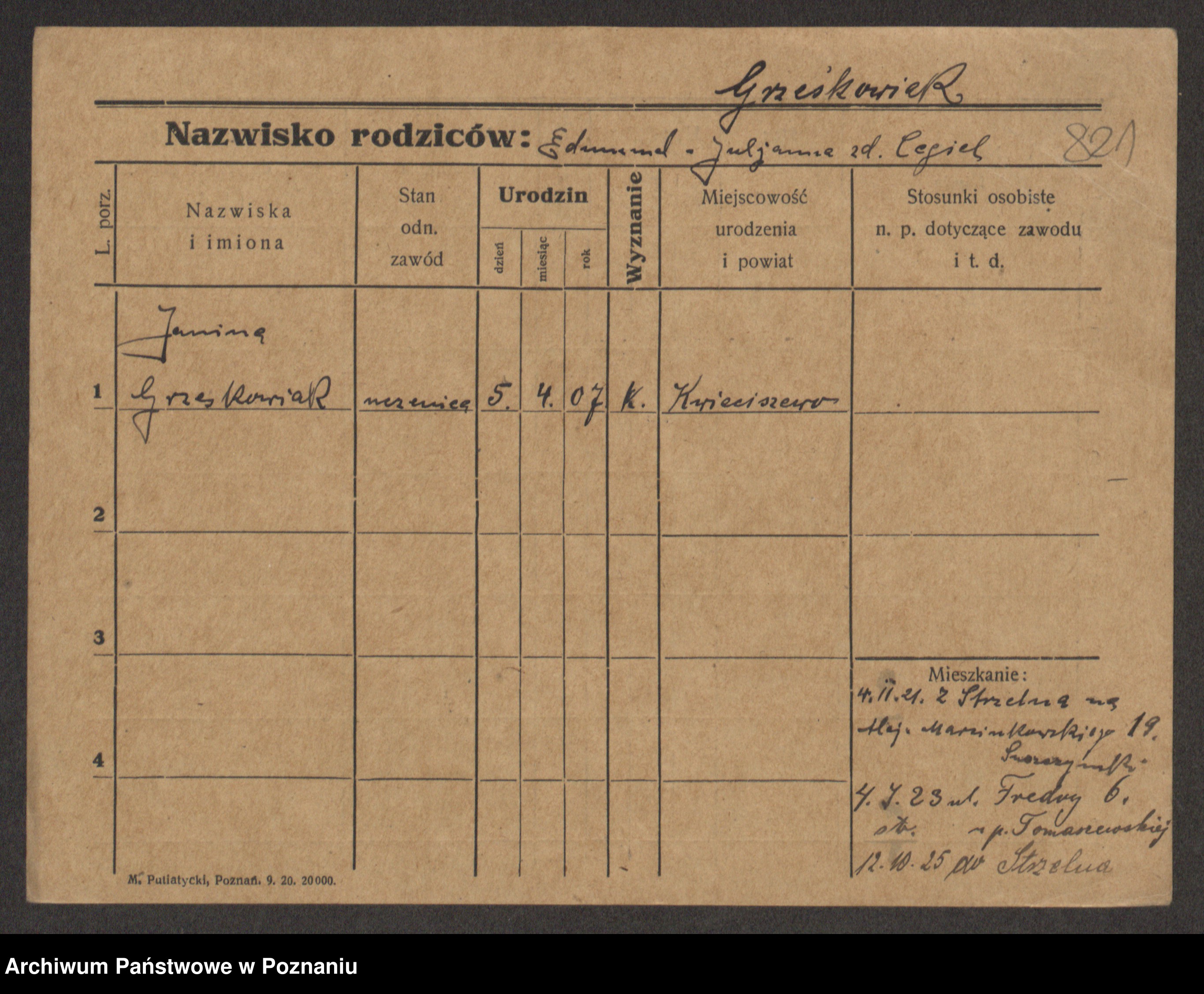 Grześkowiak z d. Czechelska, Marja