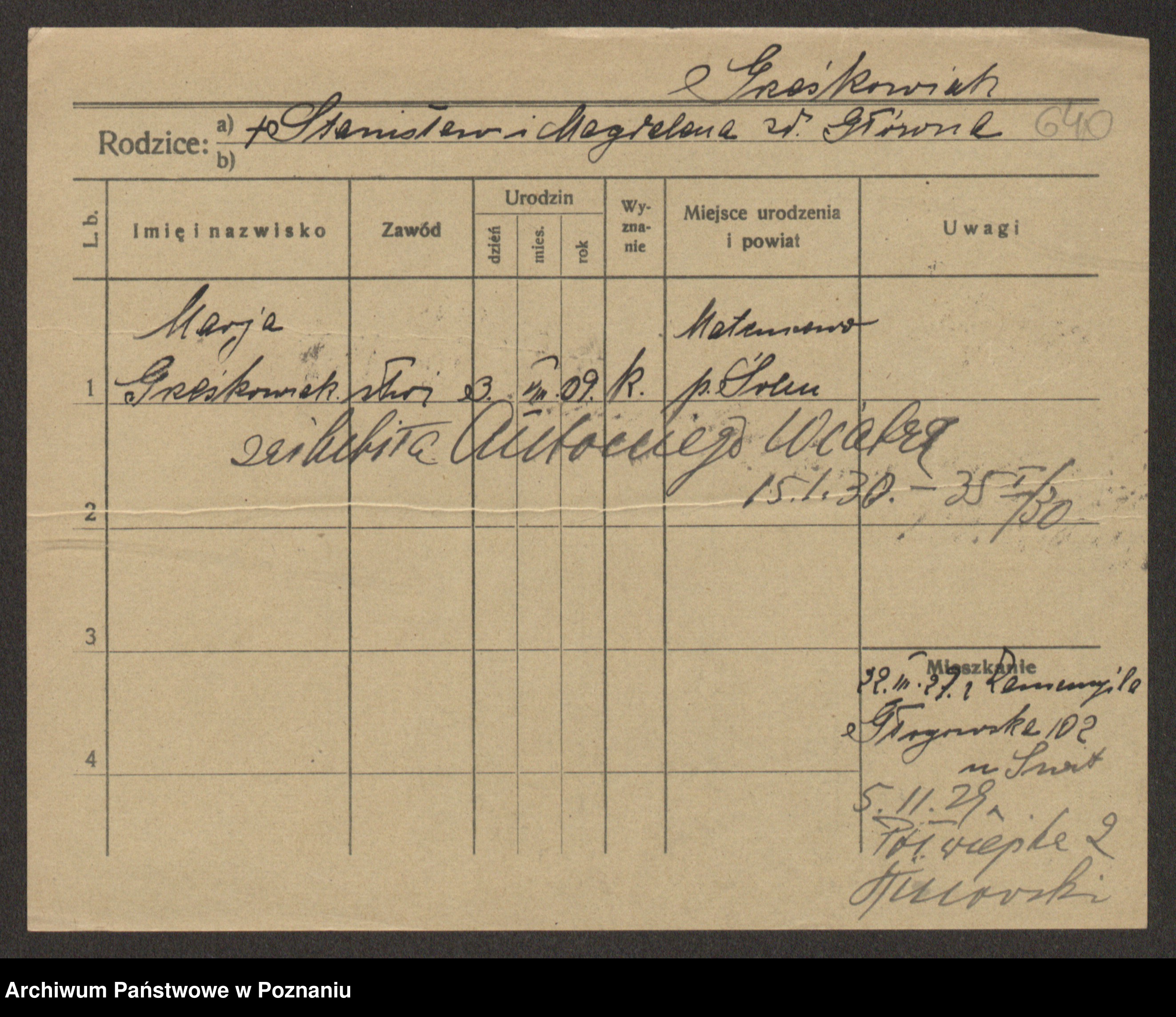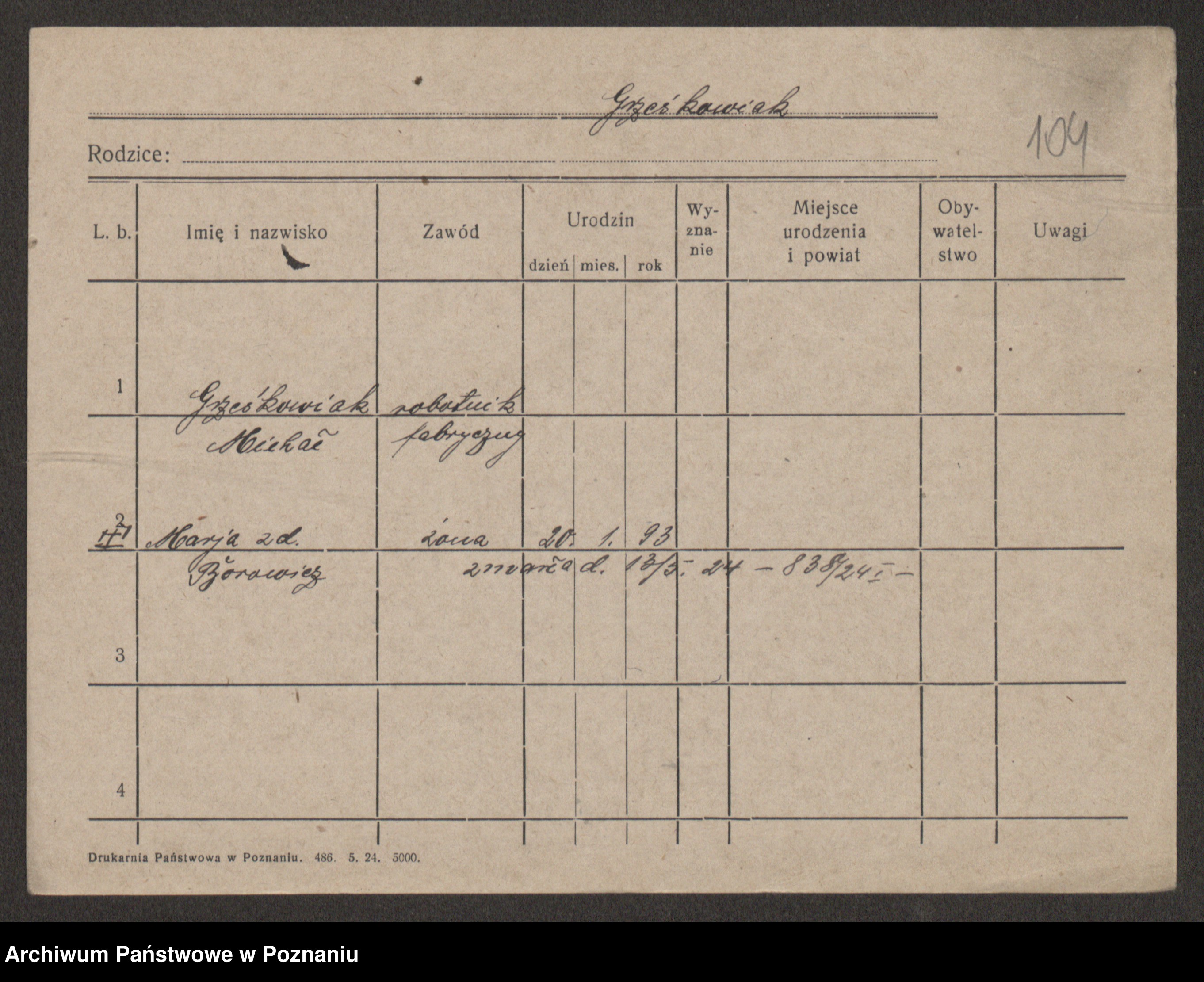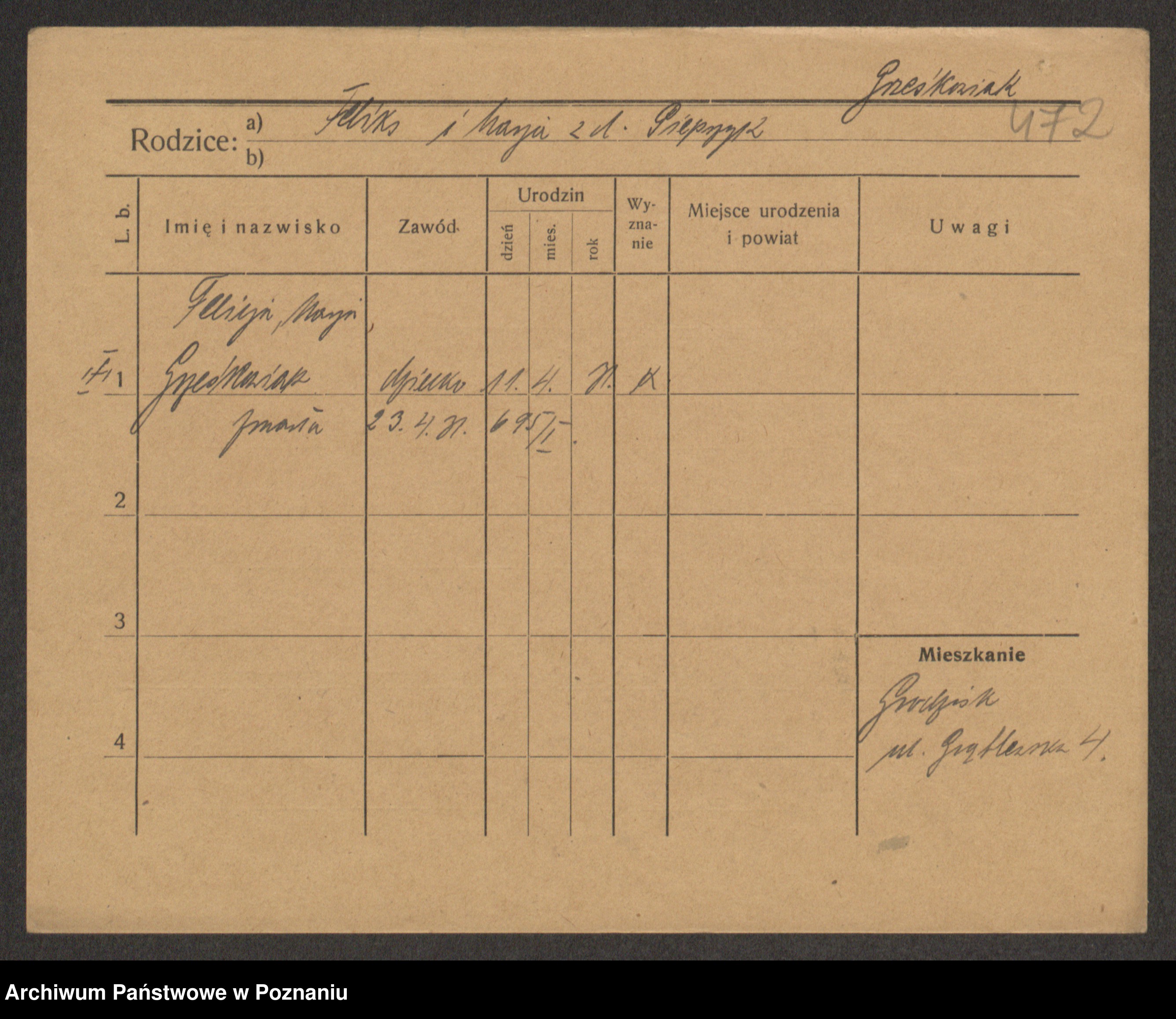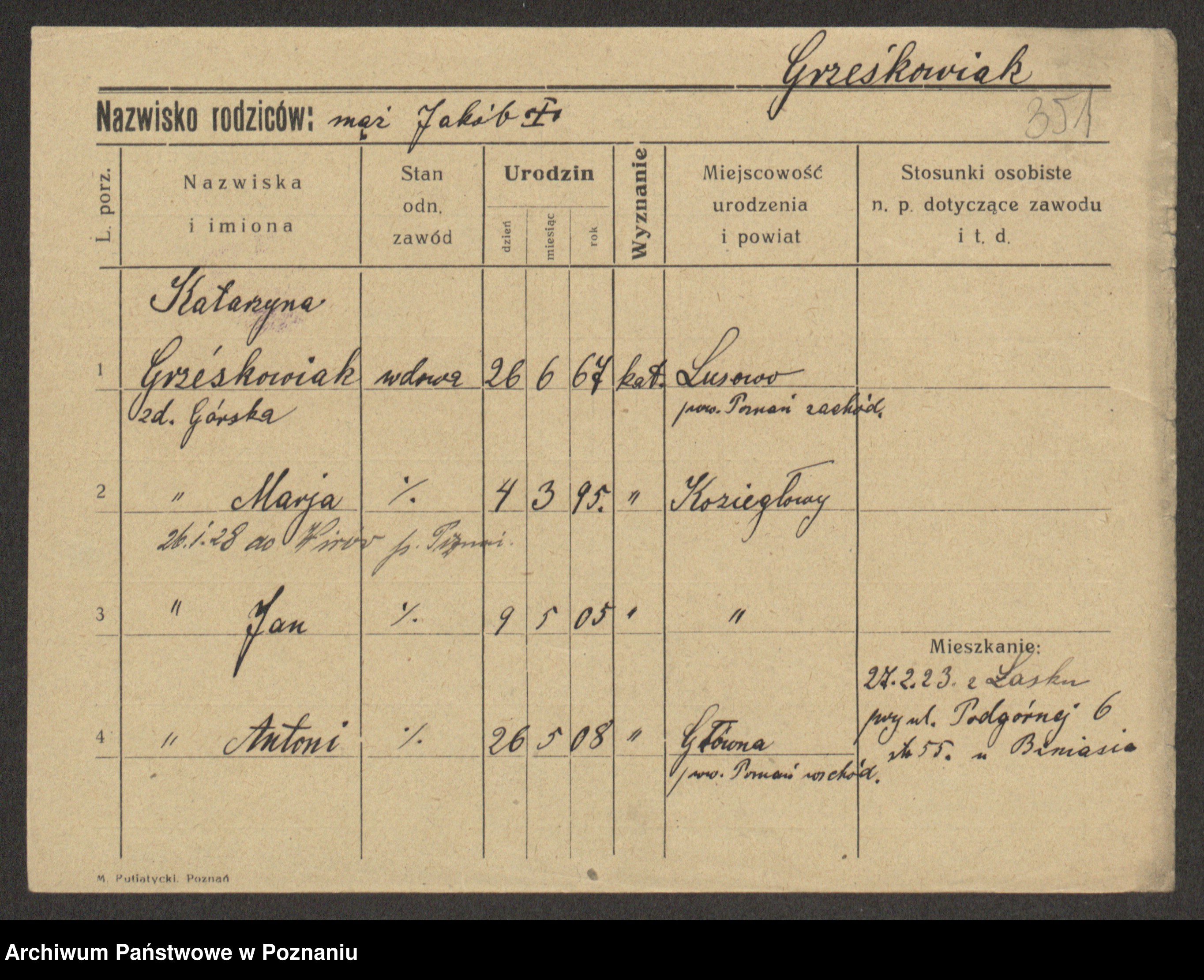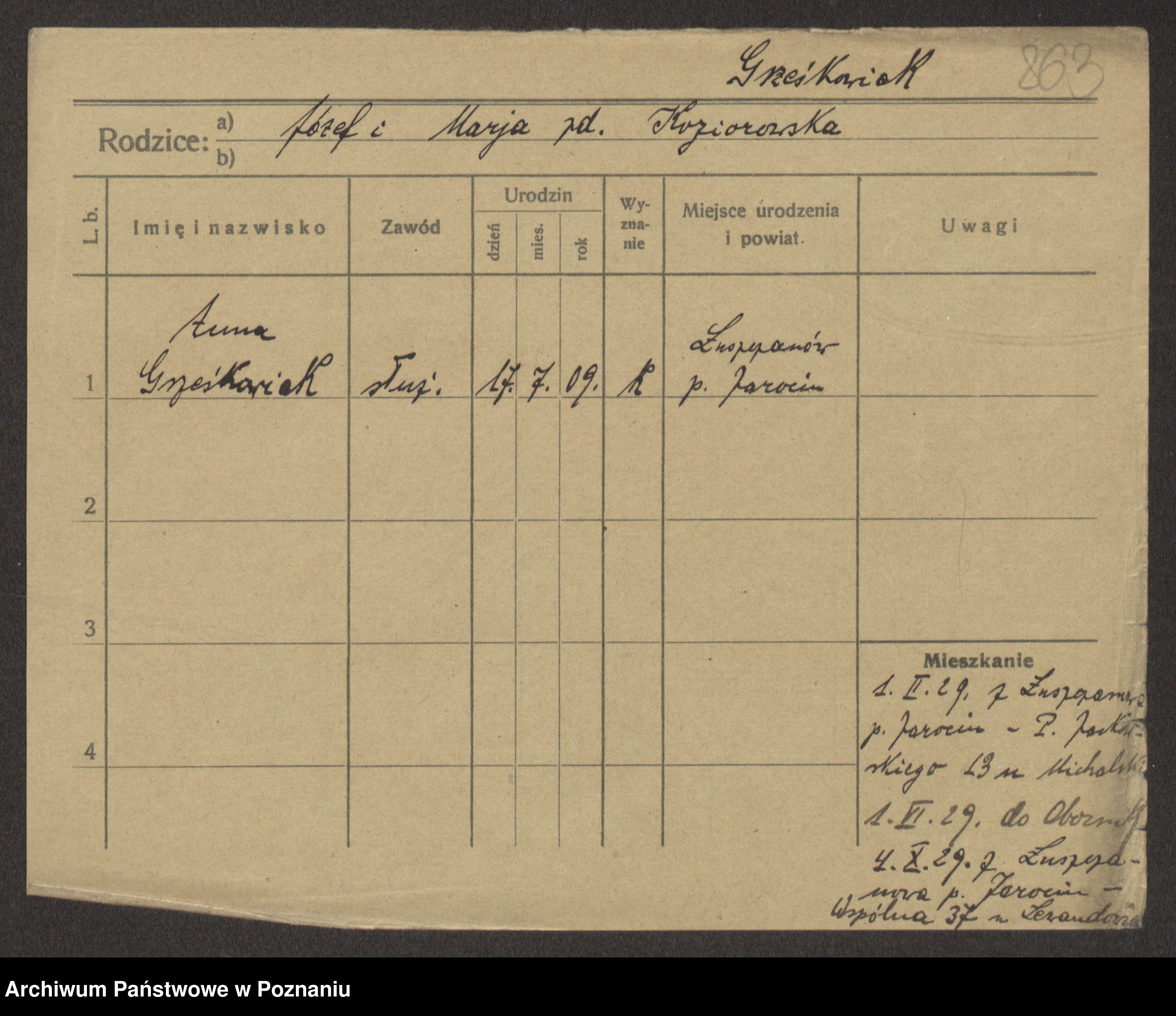 Grześkowiak z d. Czechelska, Marja