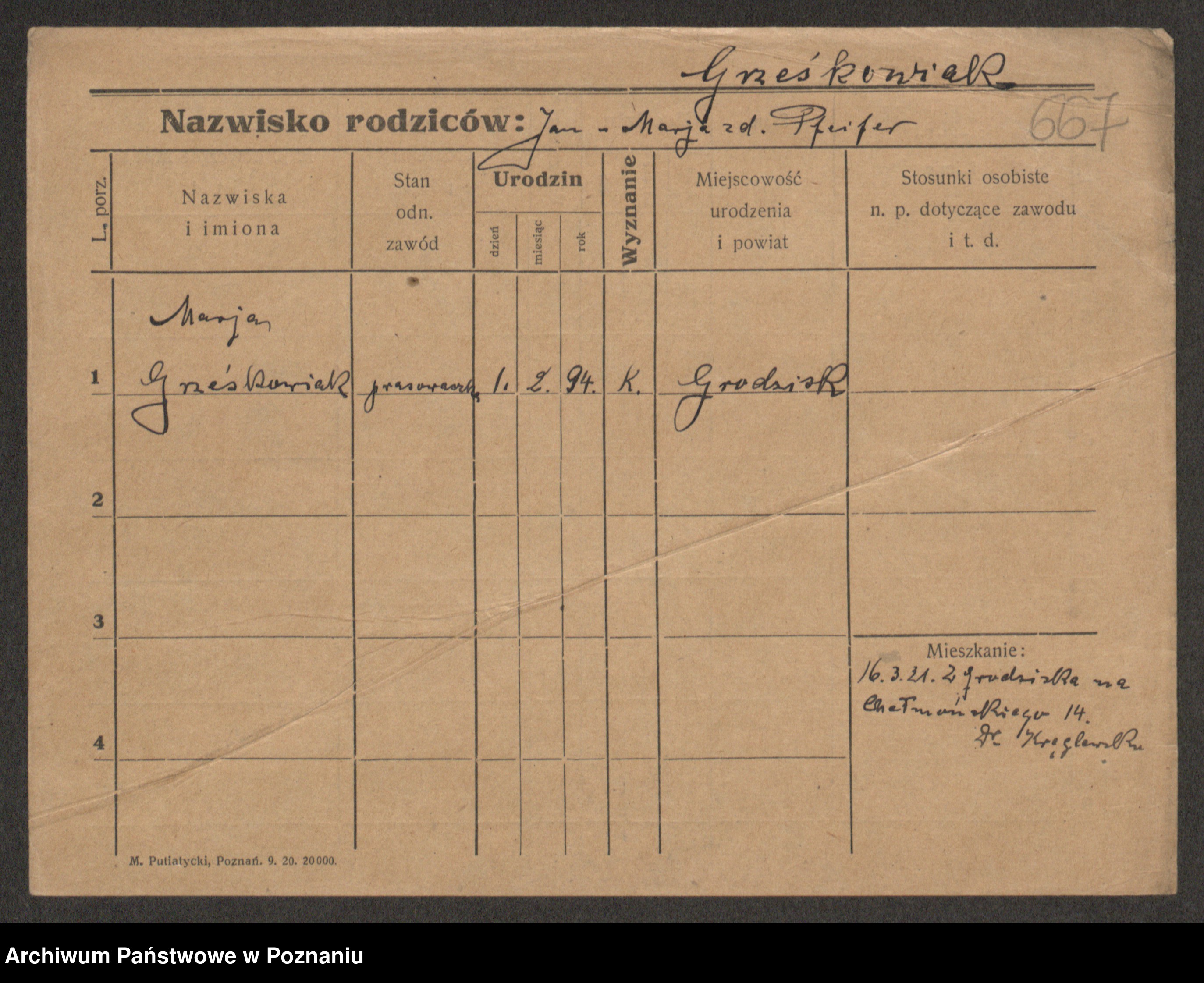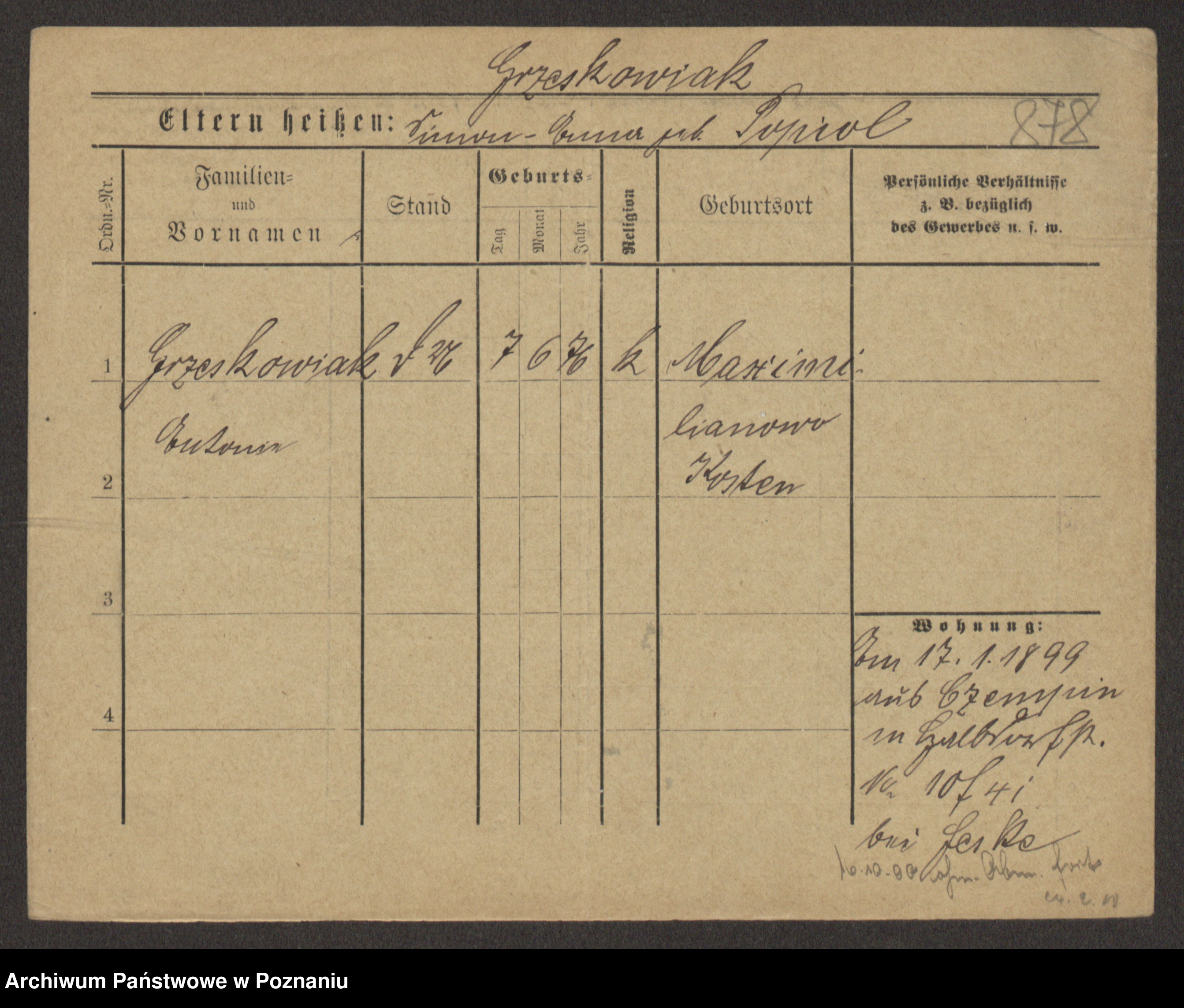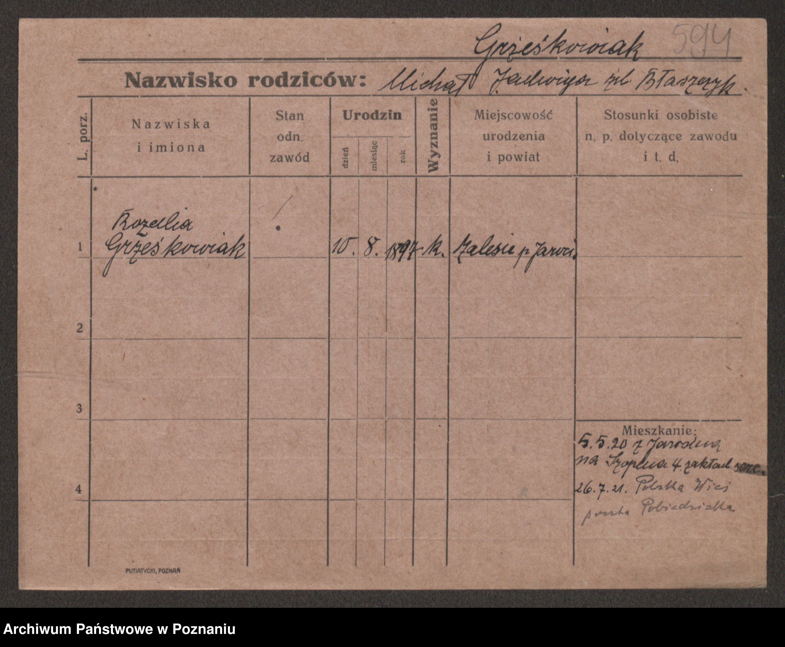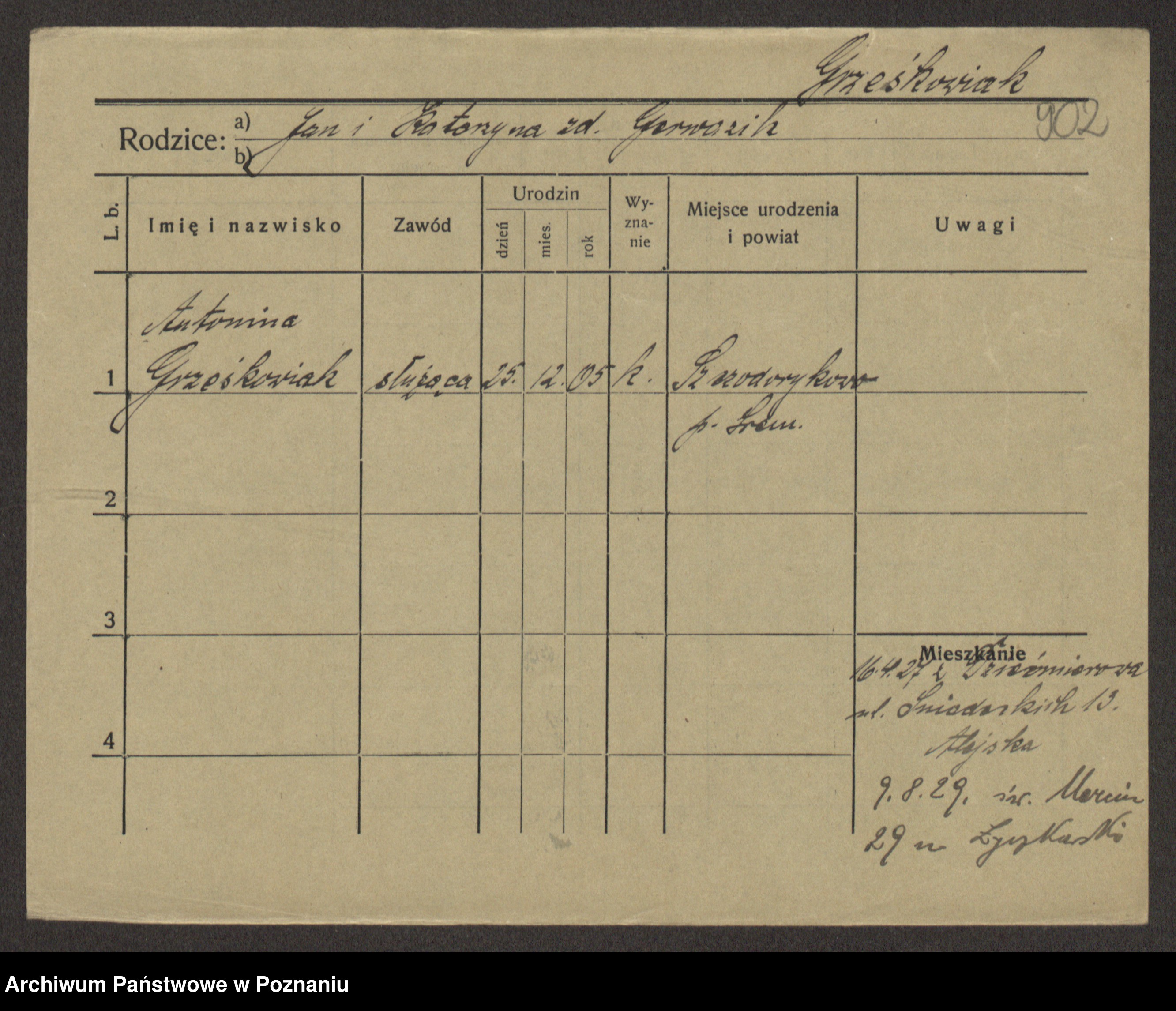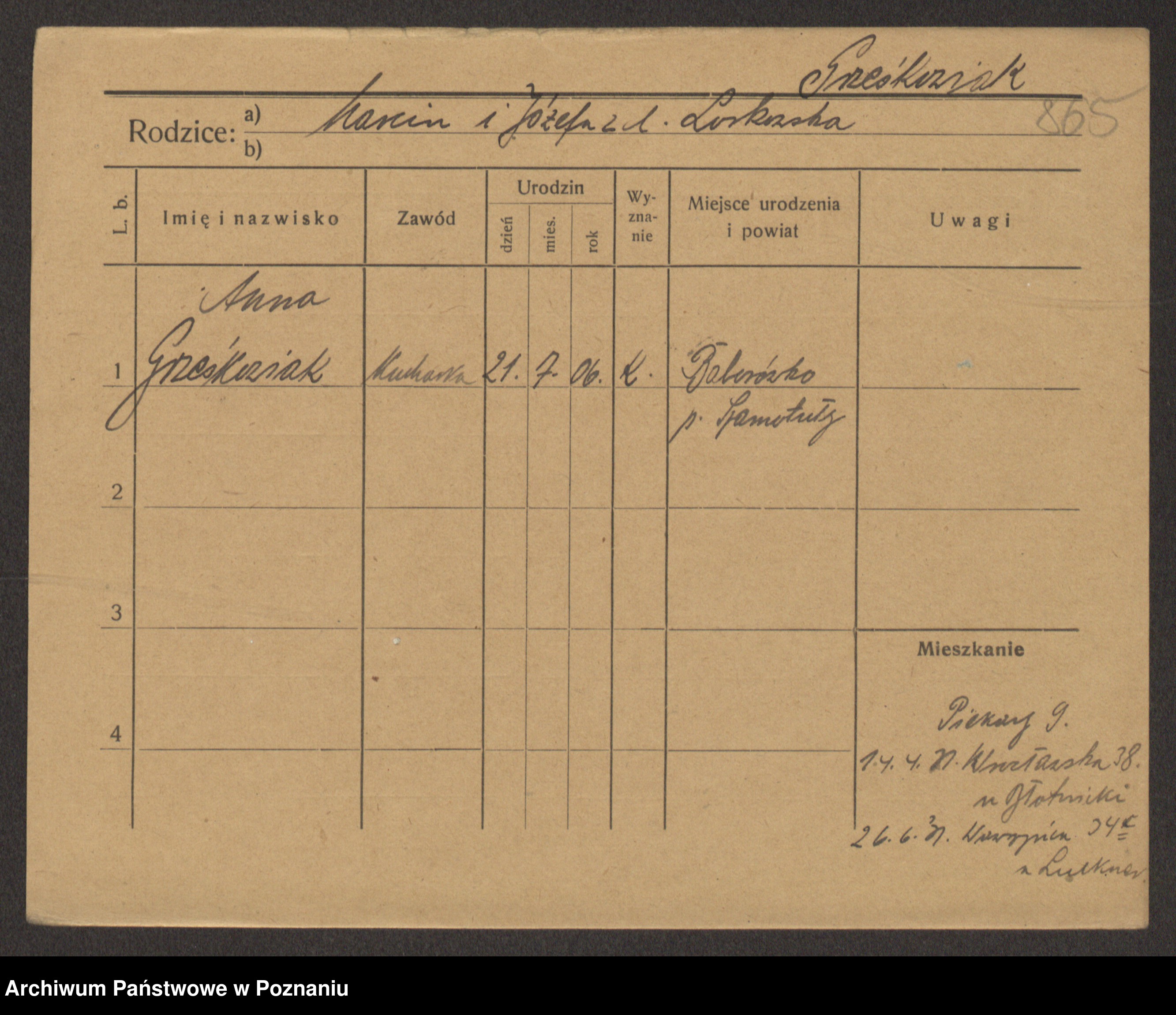 Grześkowiak z d. Czechelska, Marja