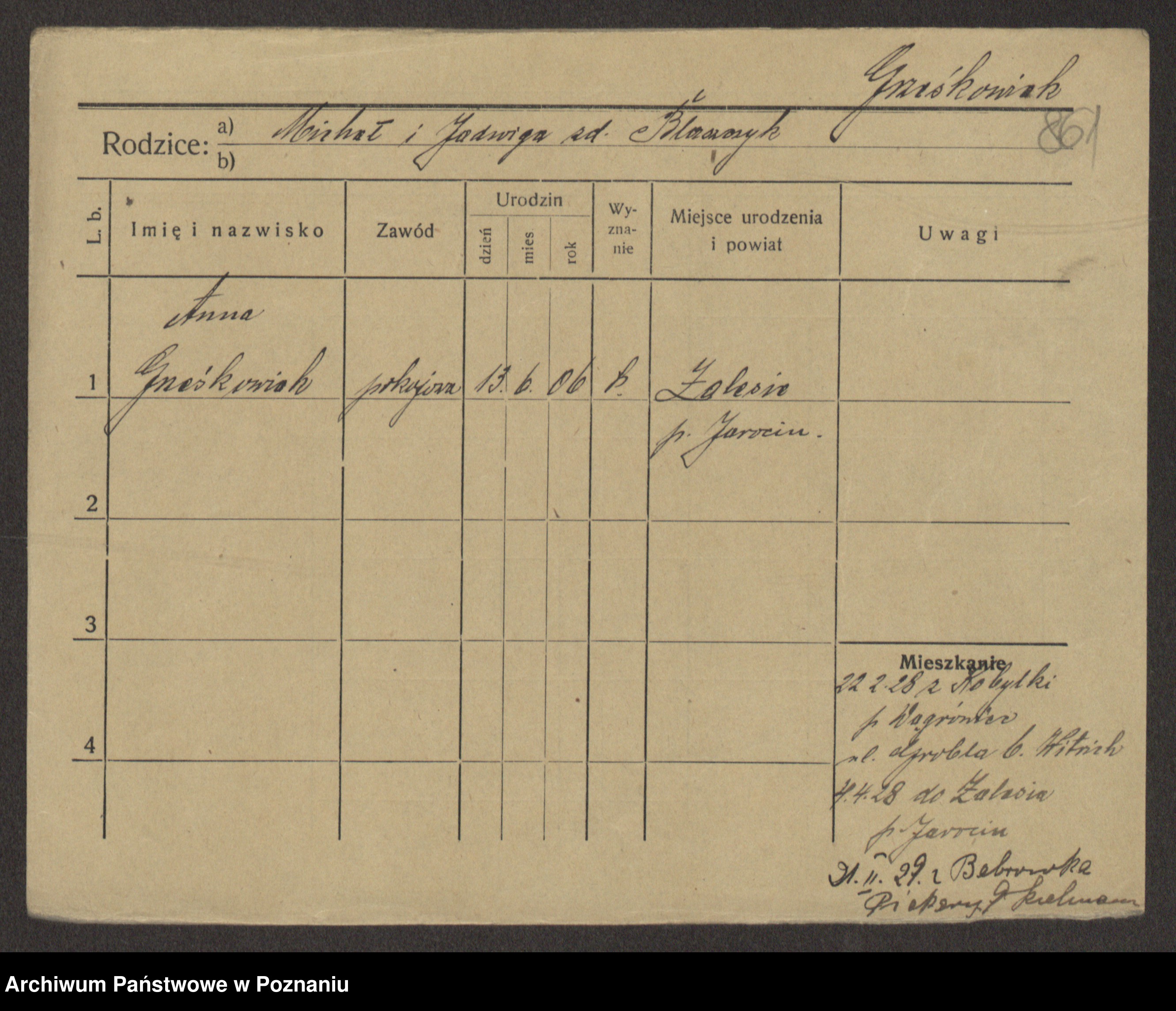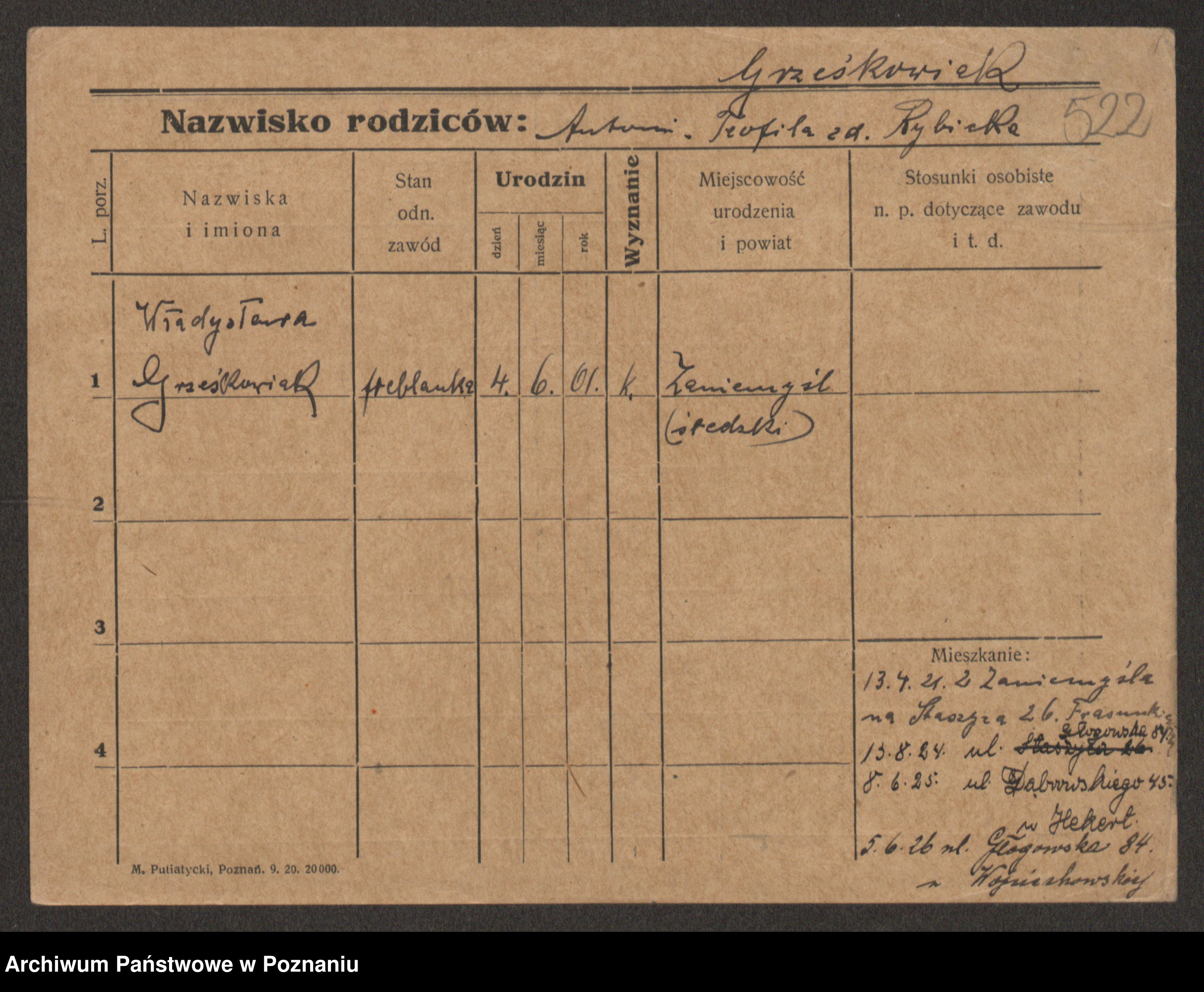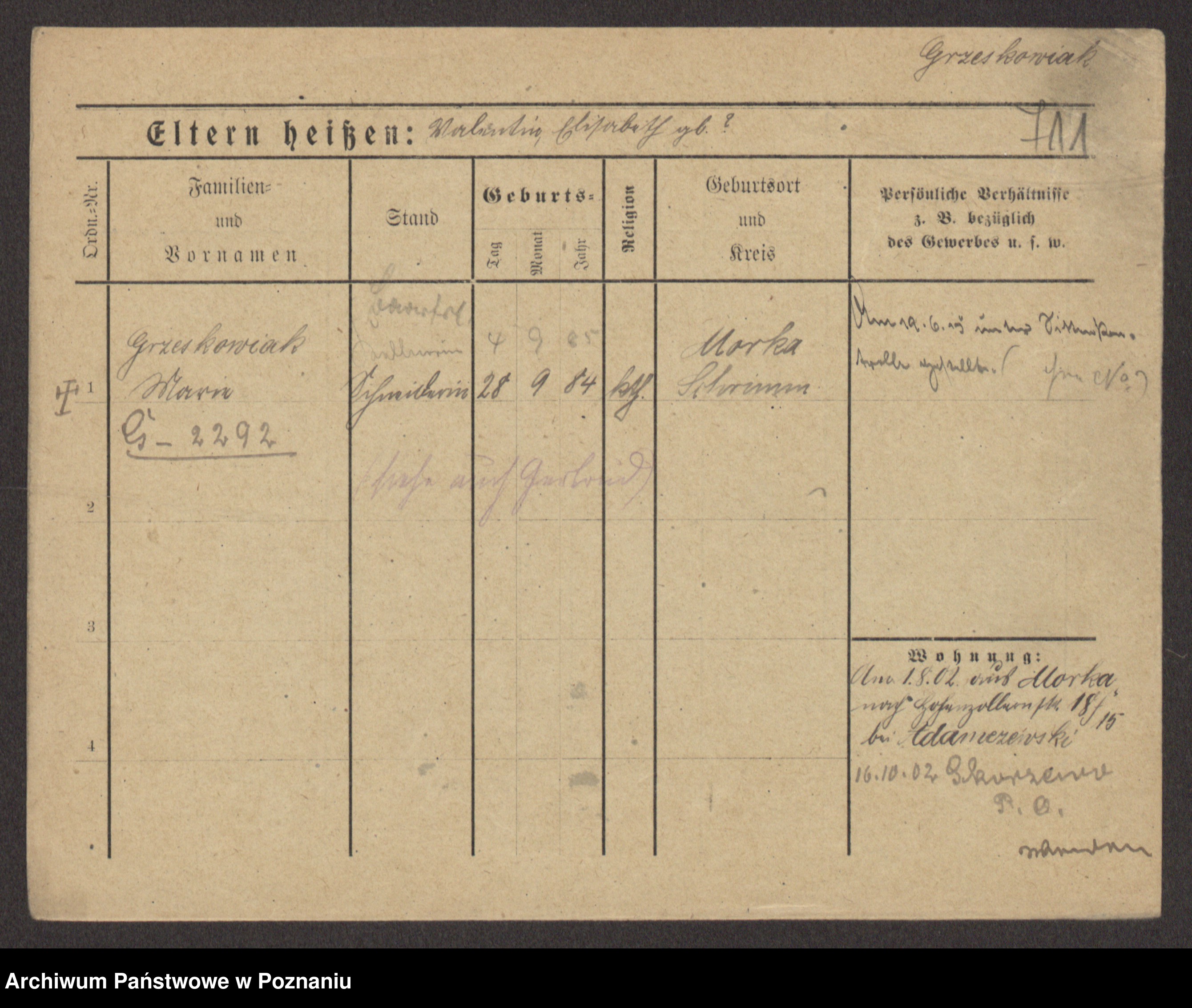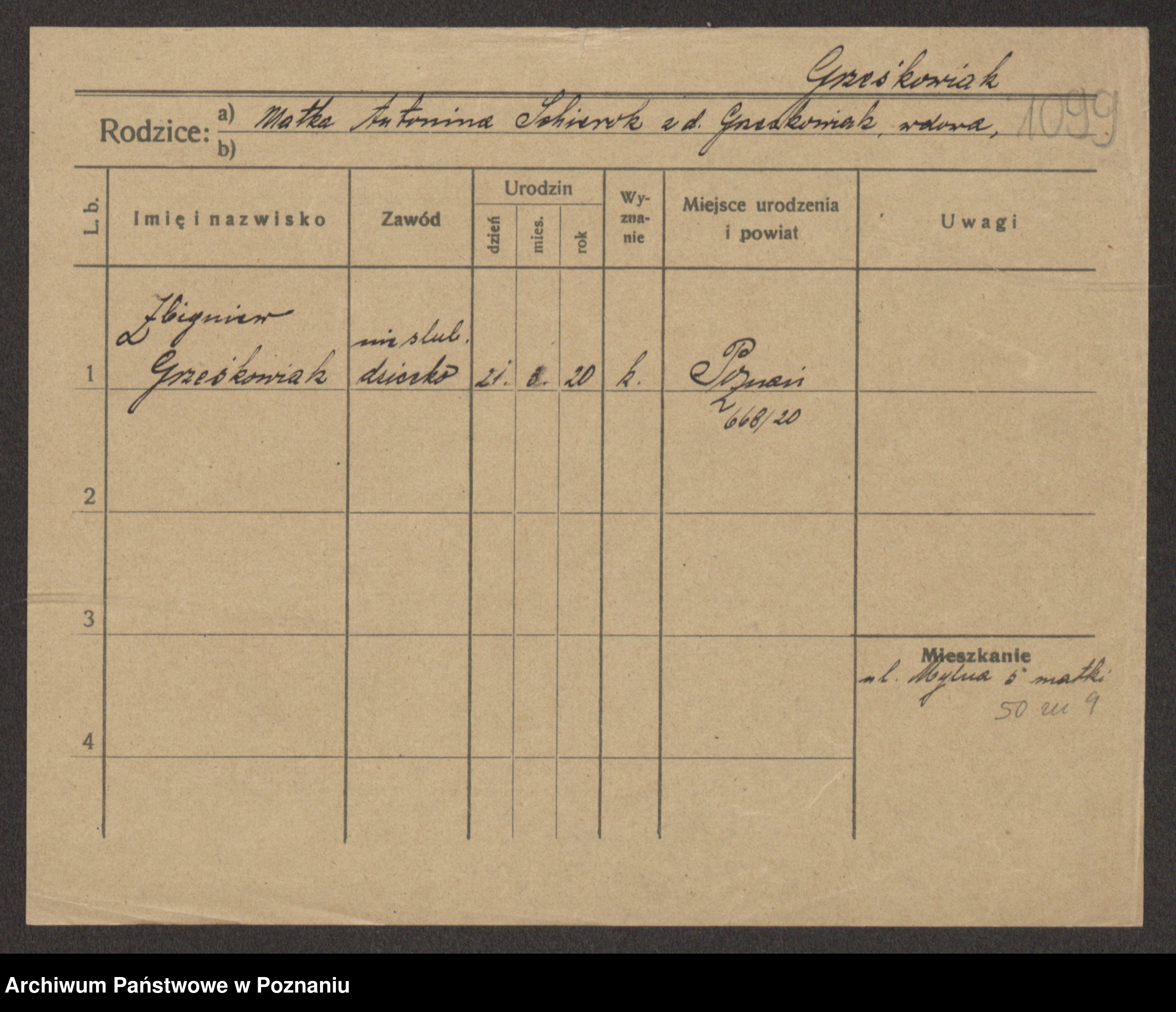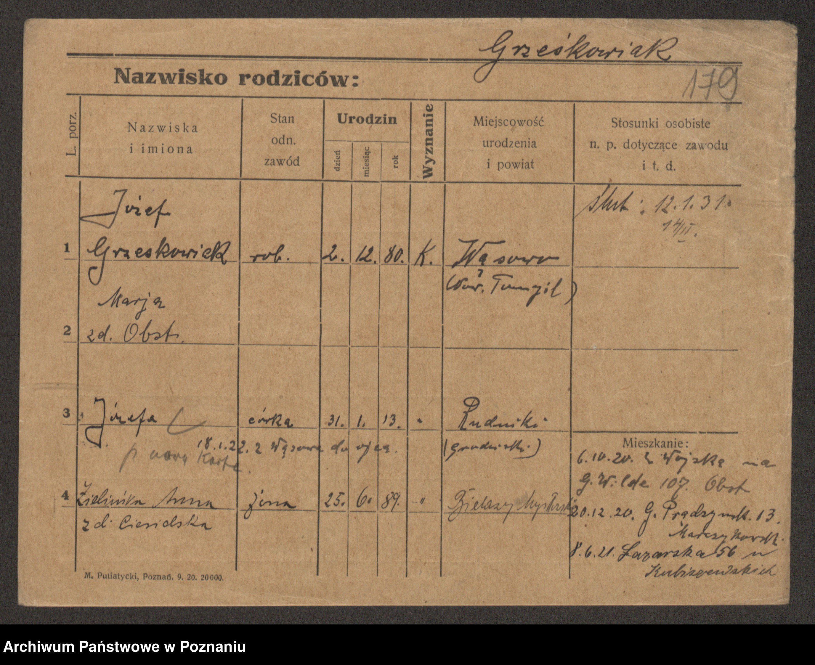 Grześkowiak z d. Czechelska, Marja