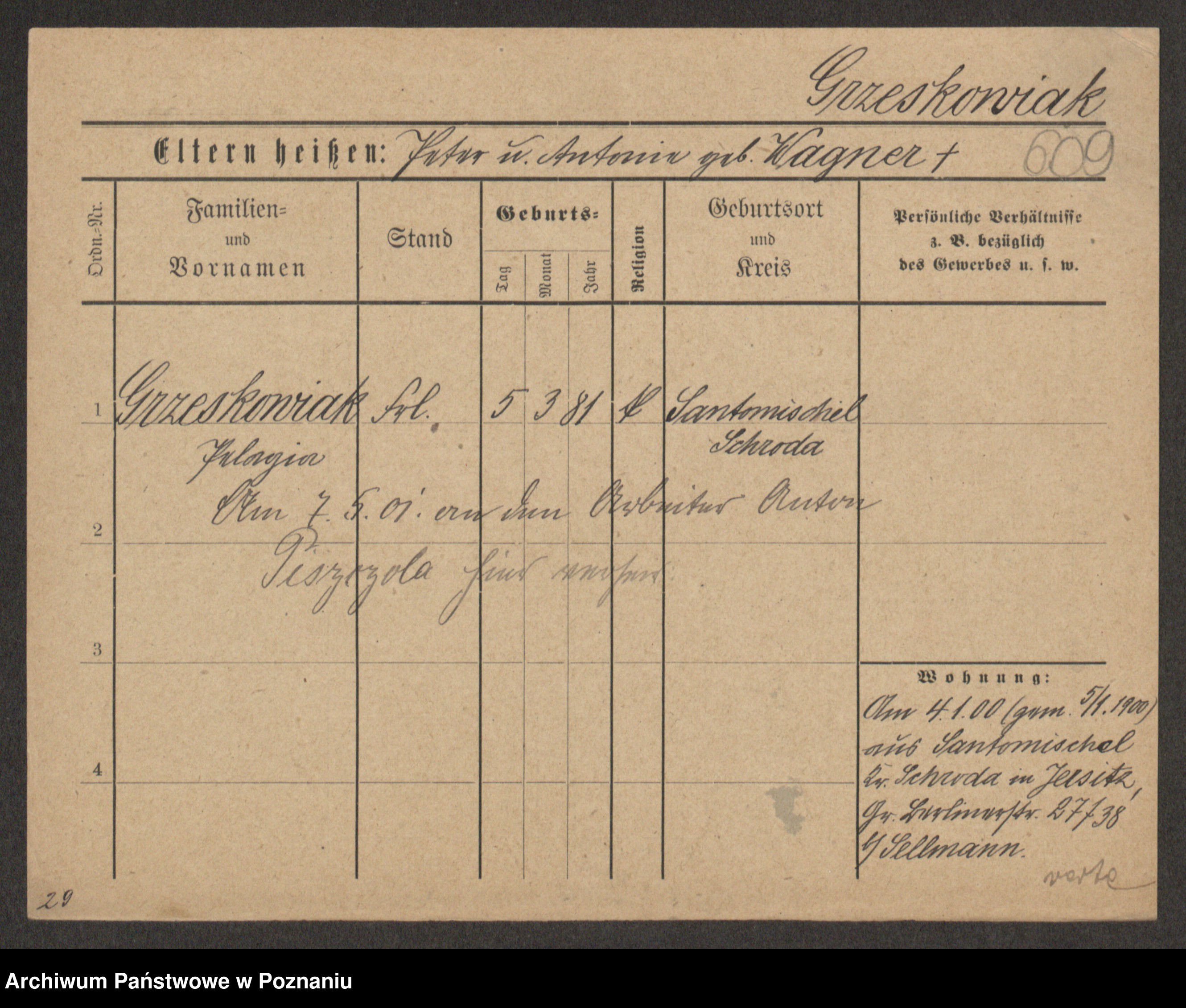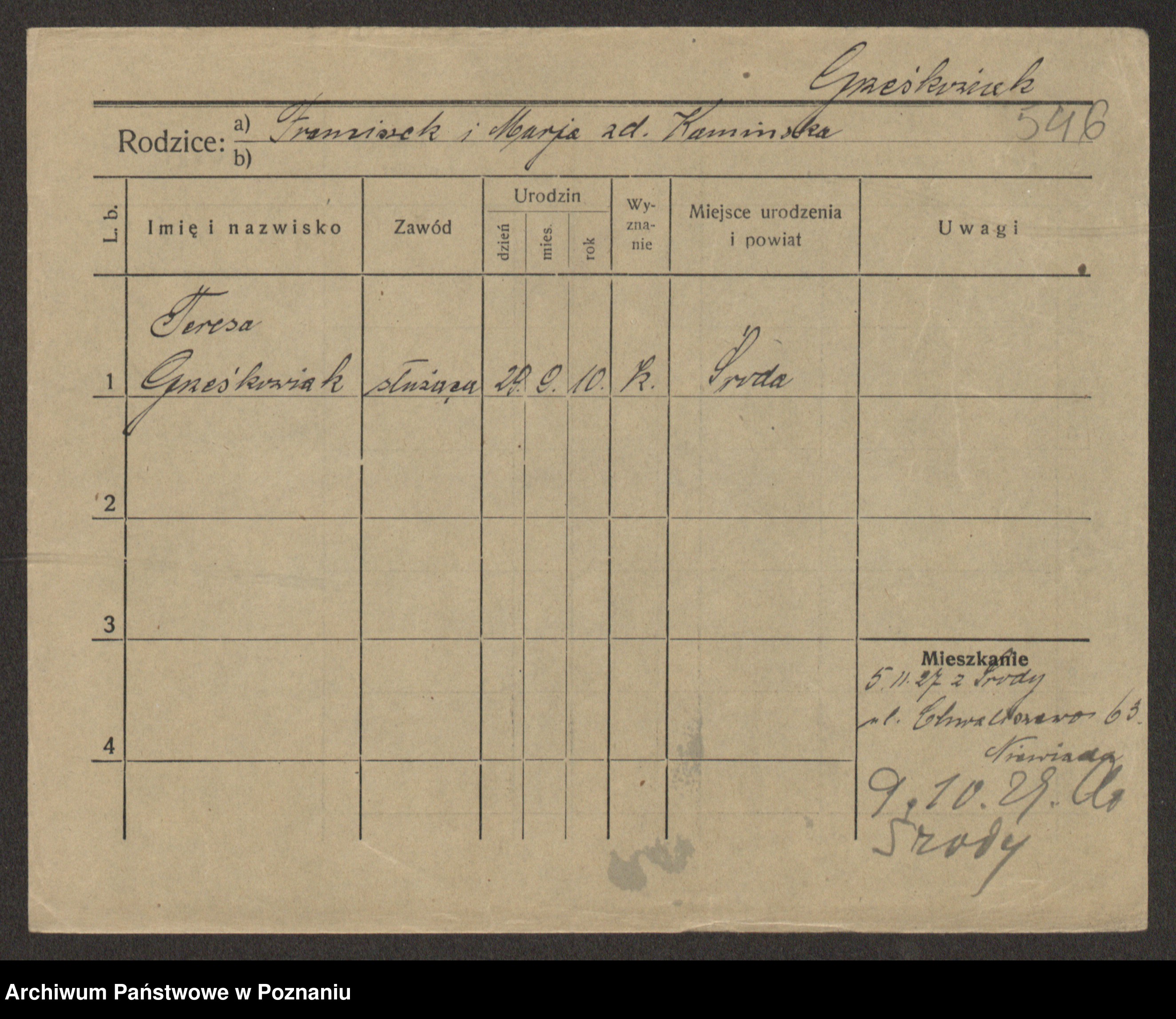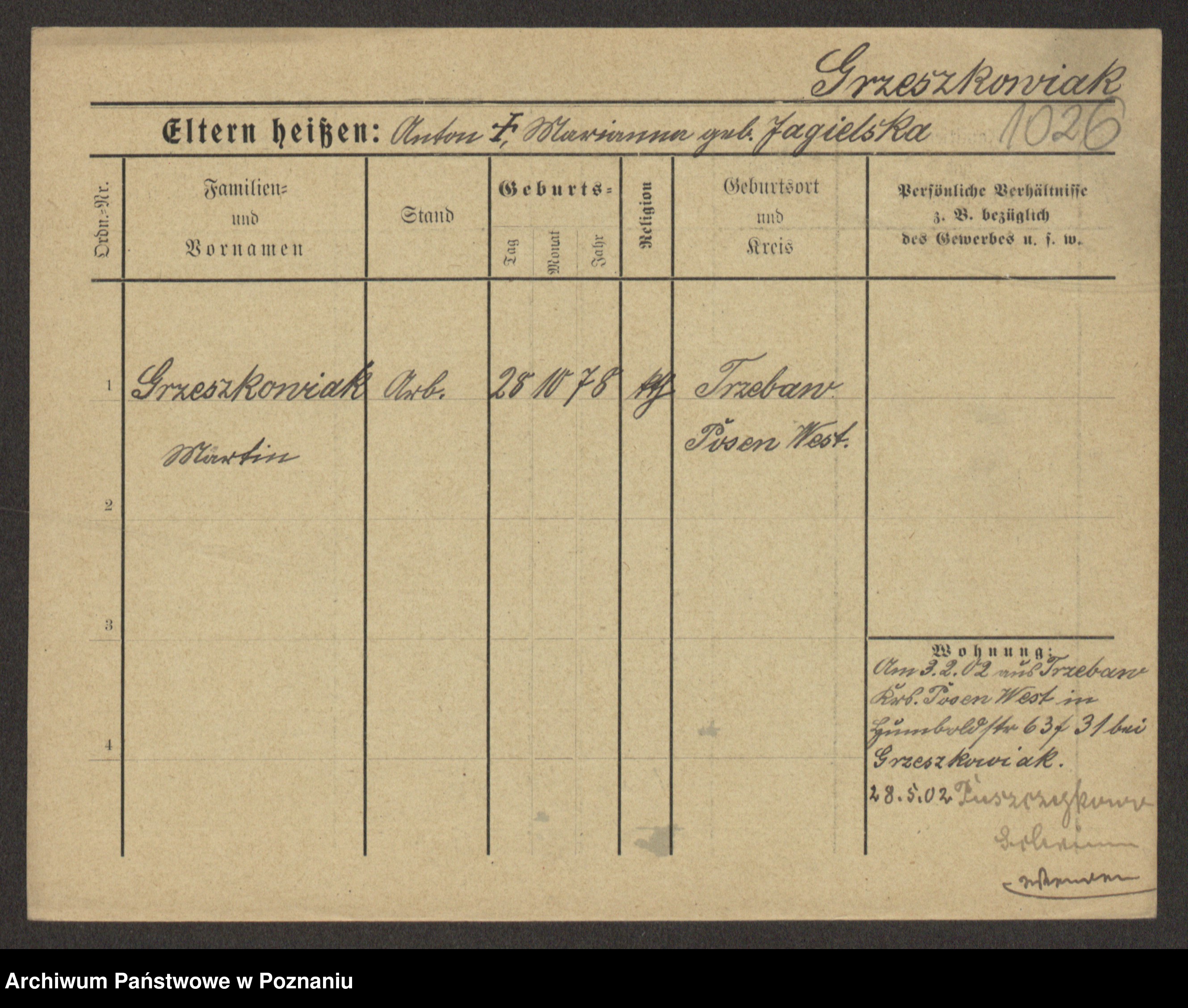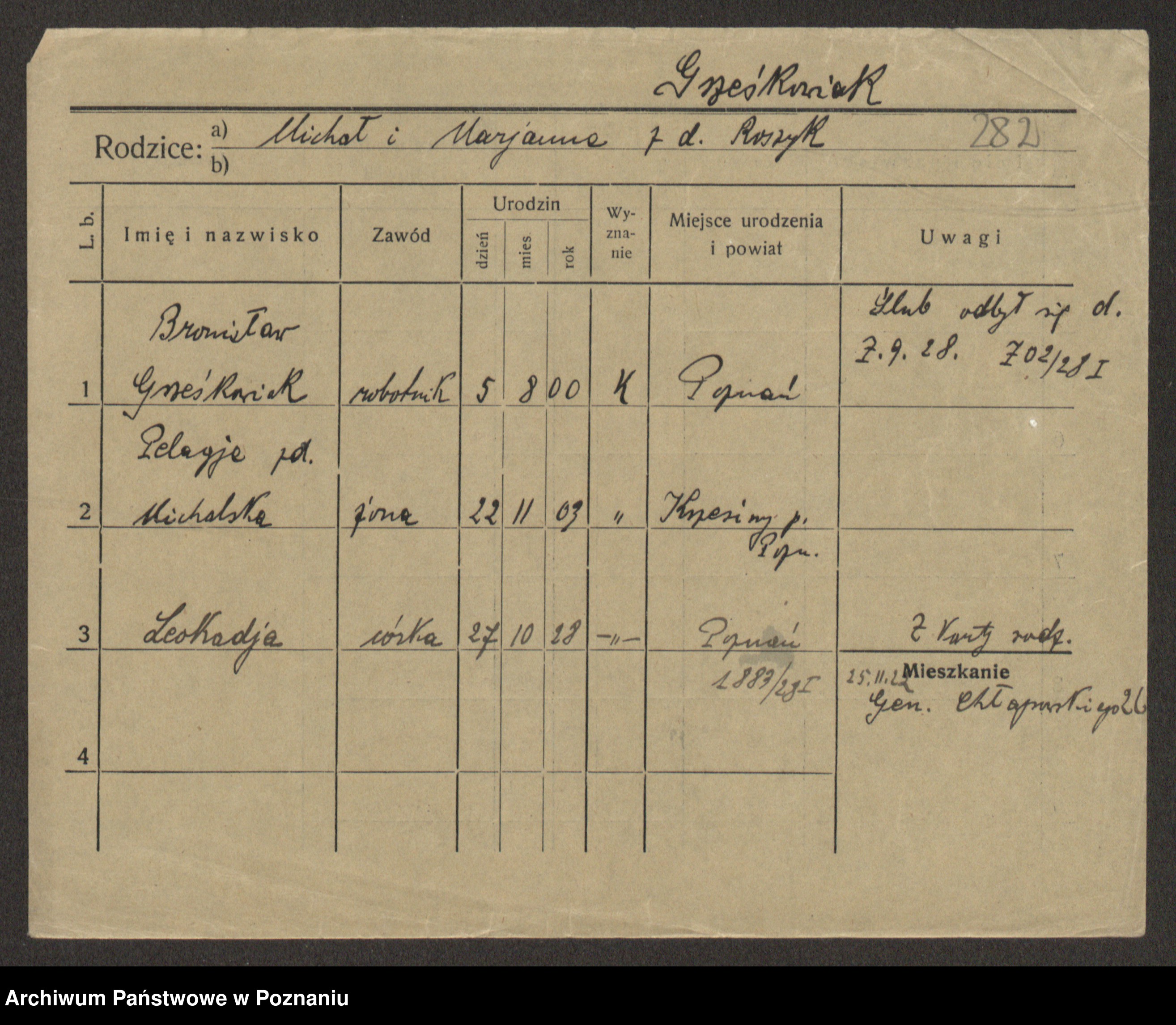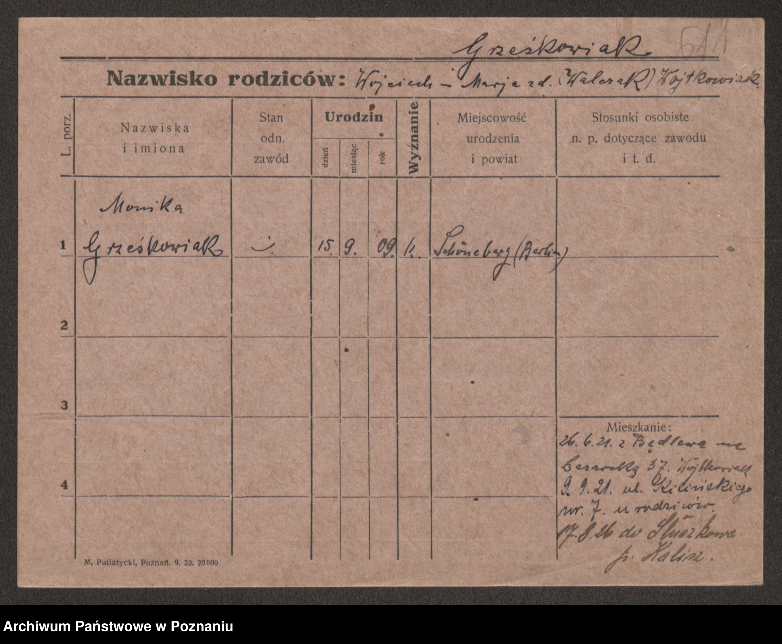 Grześkowiak z d. Czechelska, Marja