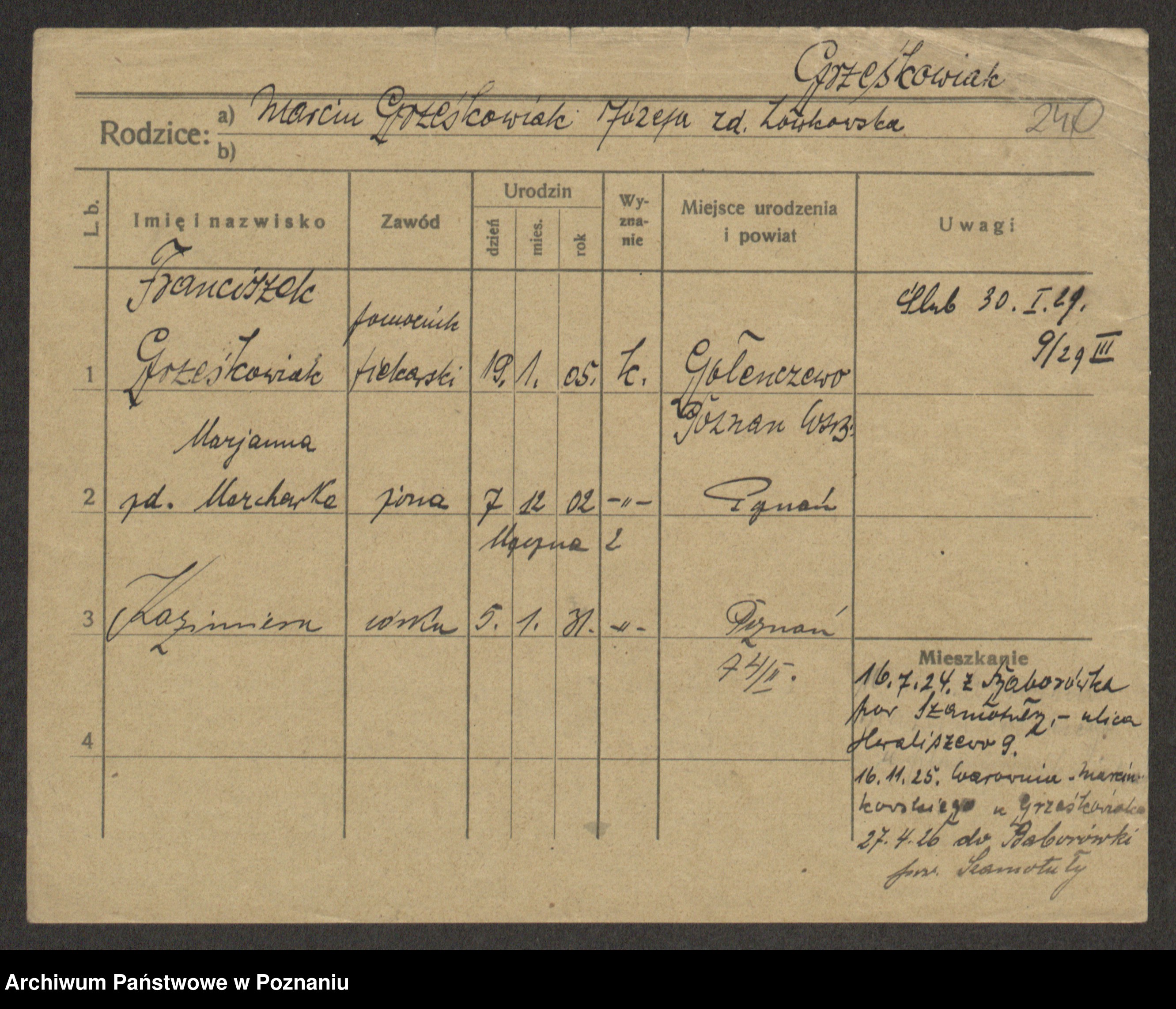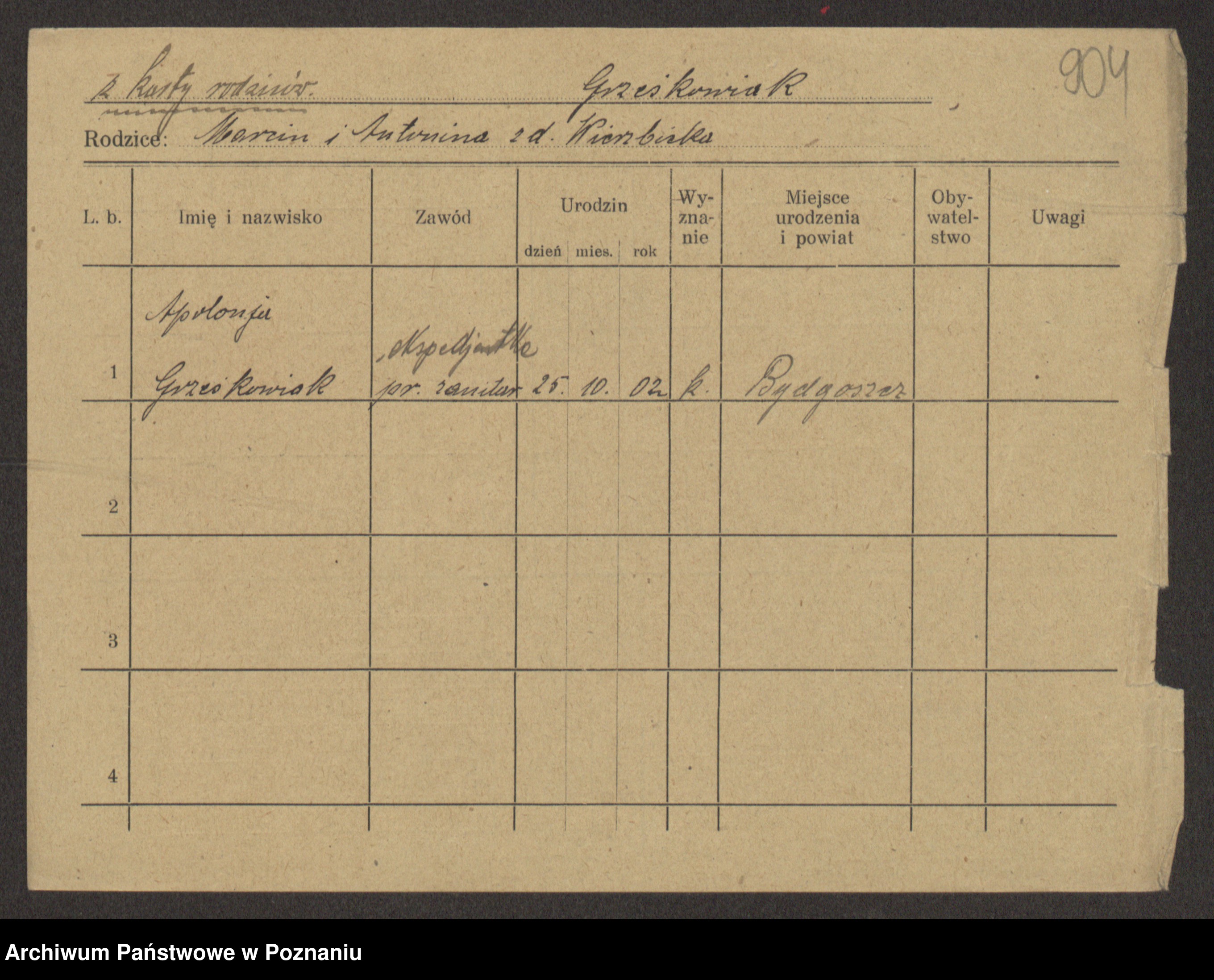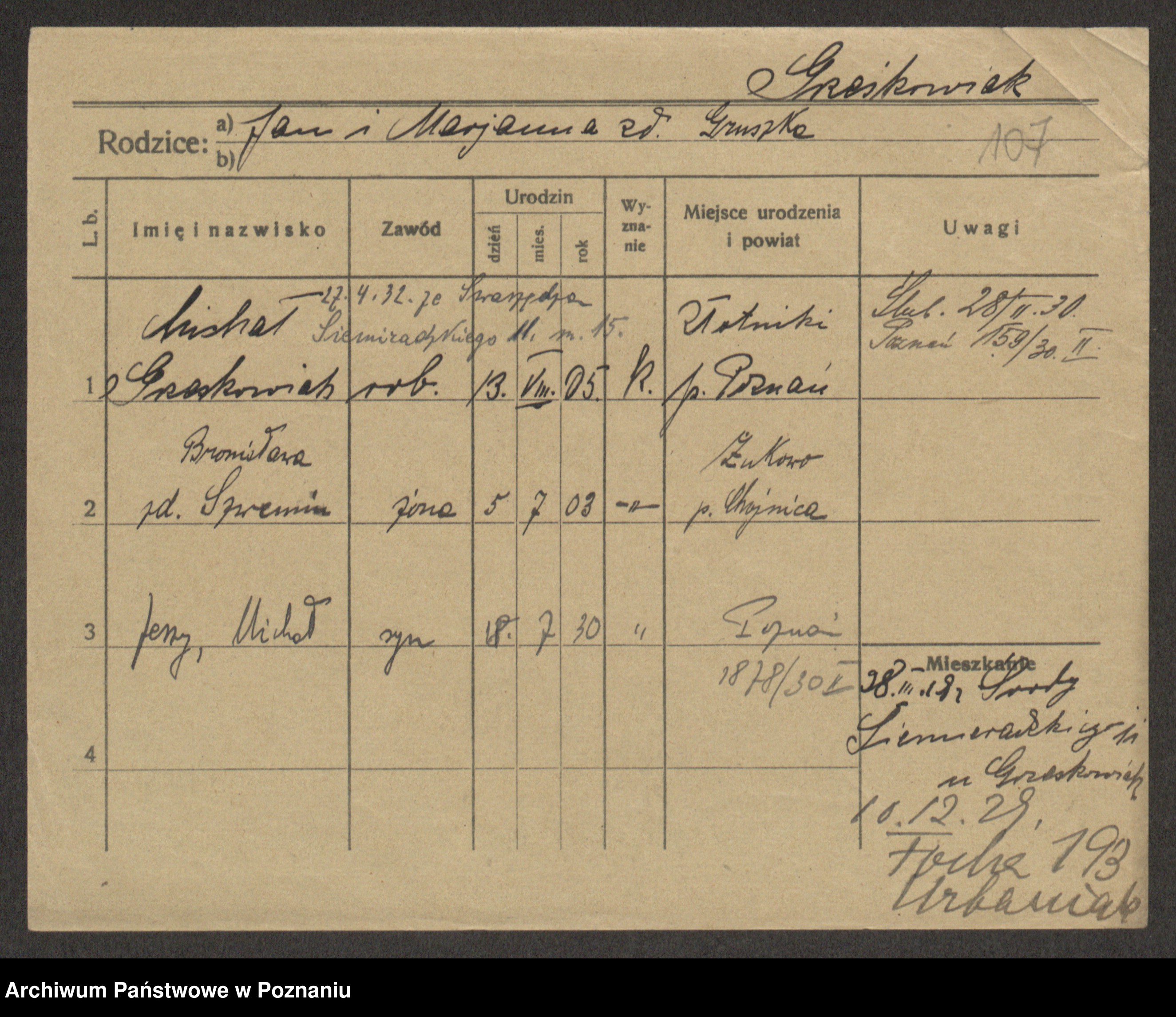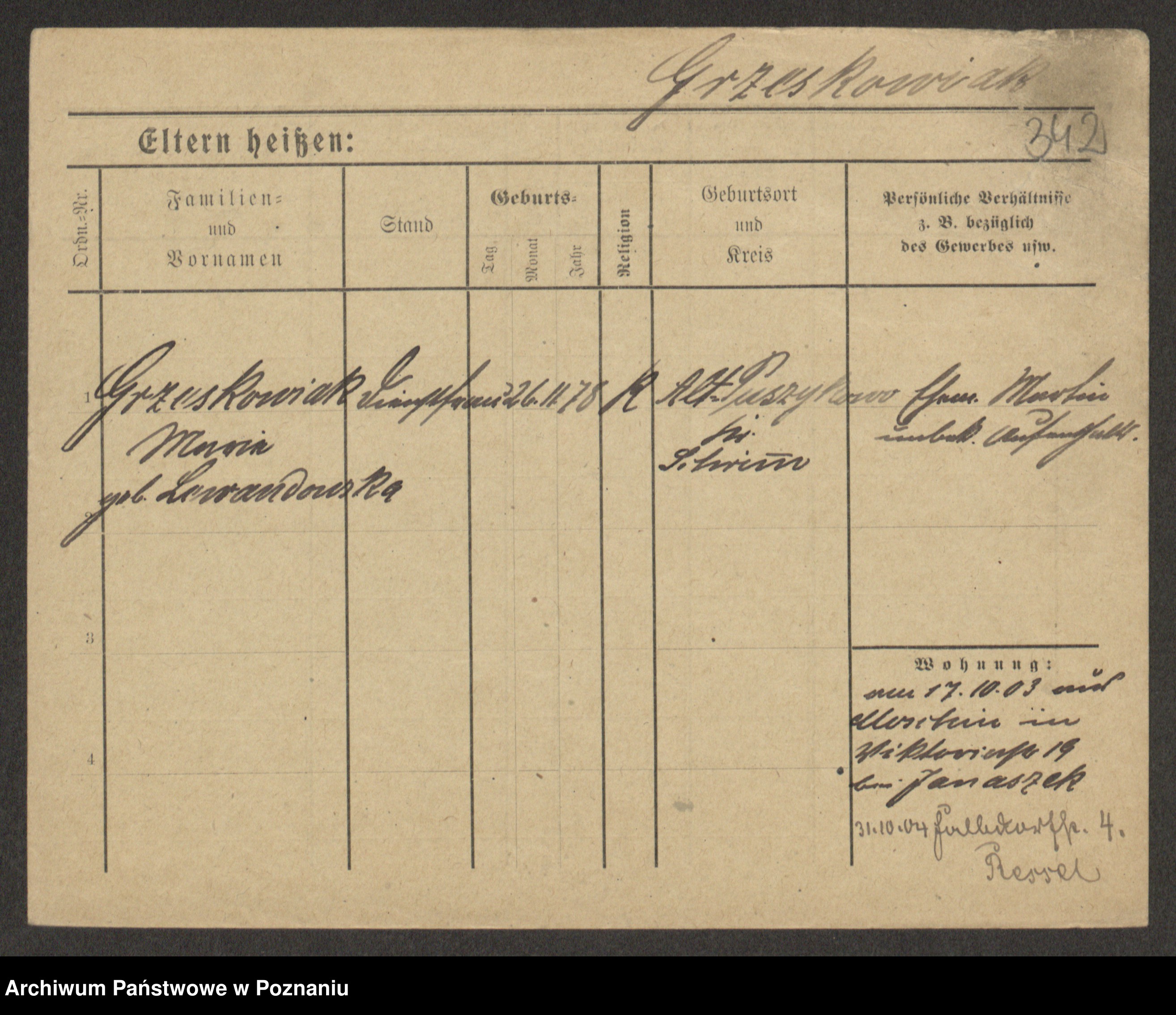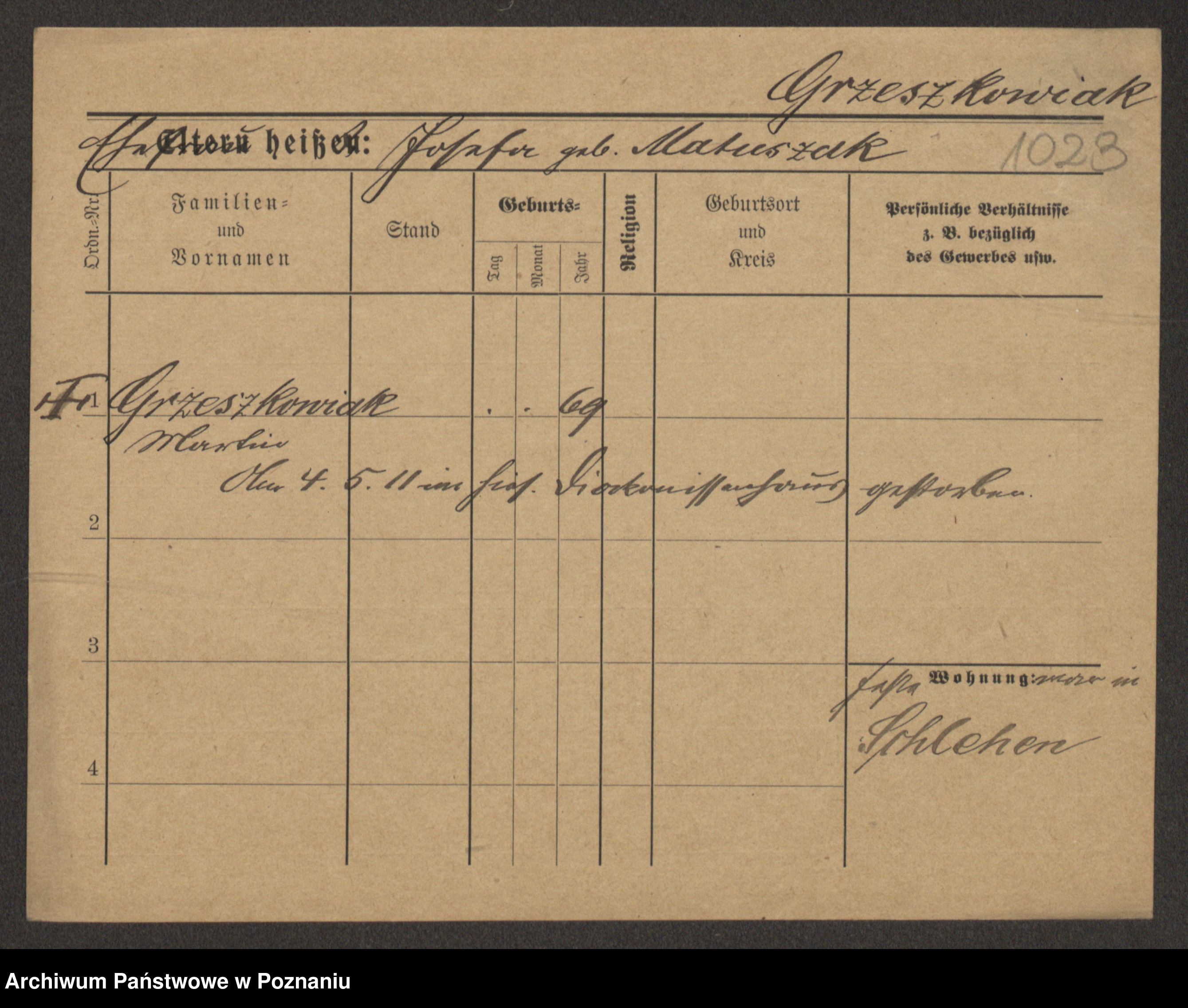 Grześkowiak z d. Czechelska, Marja