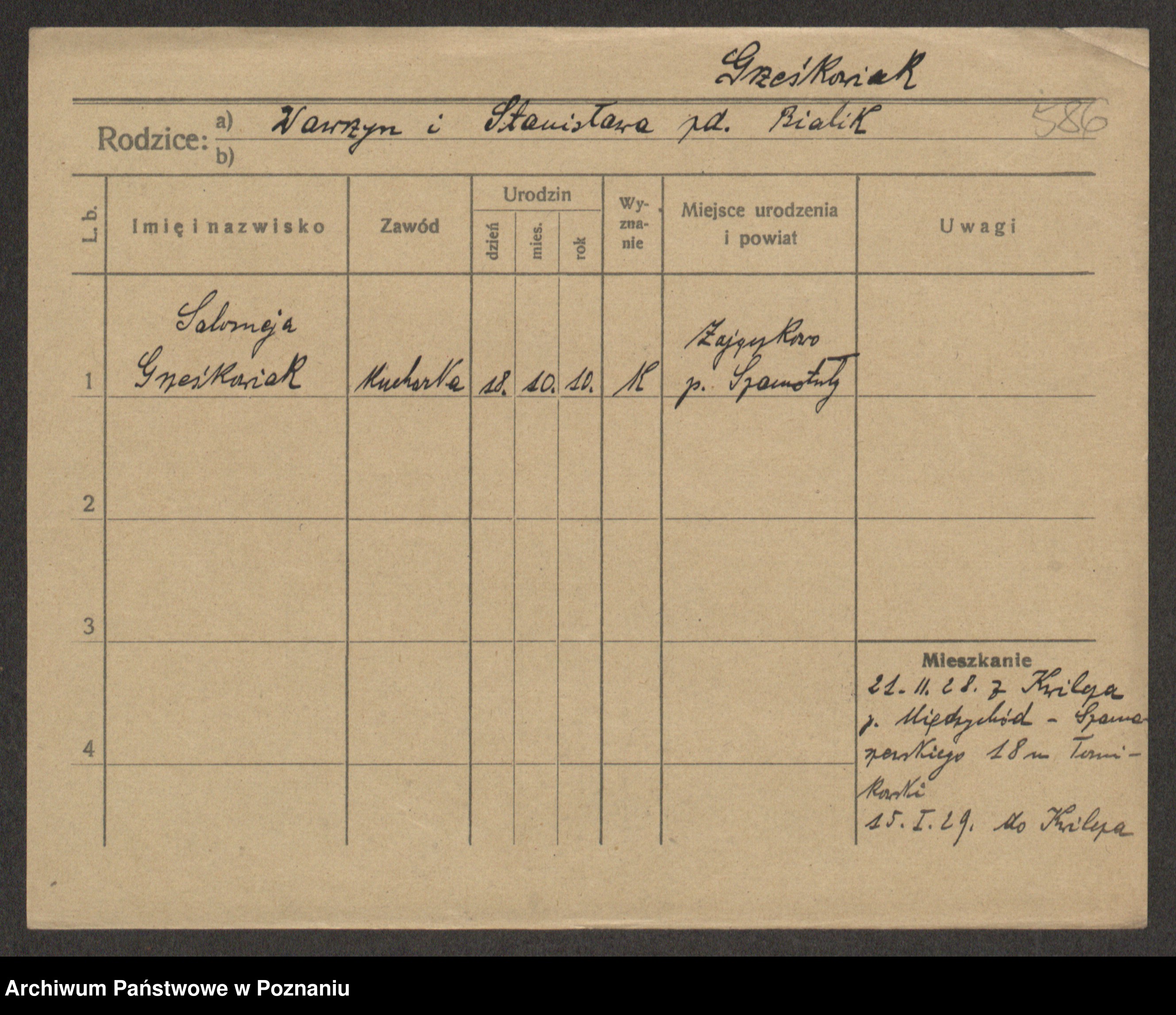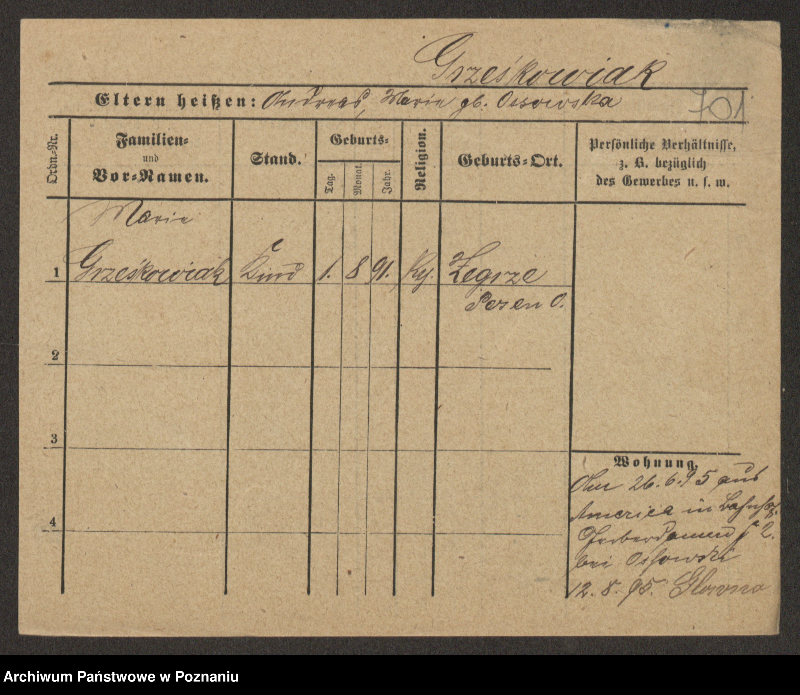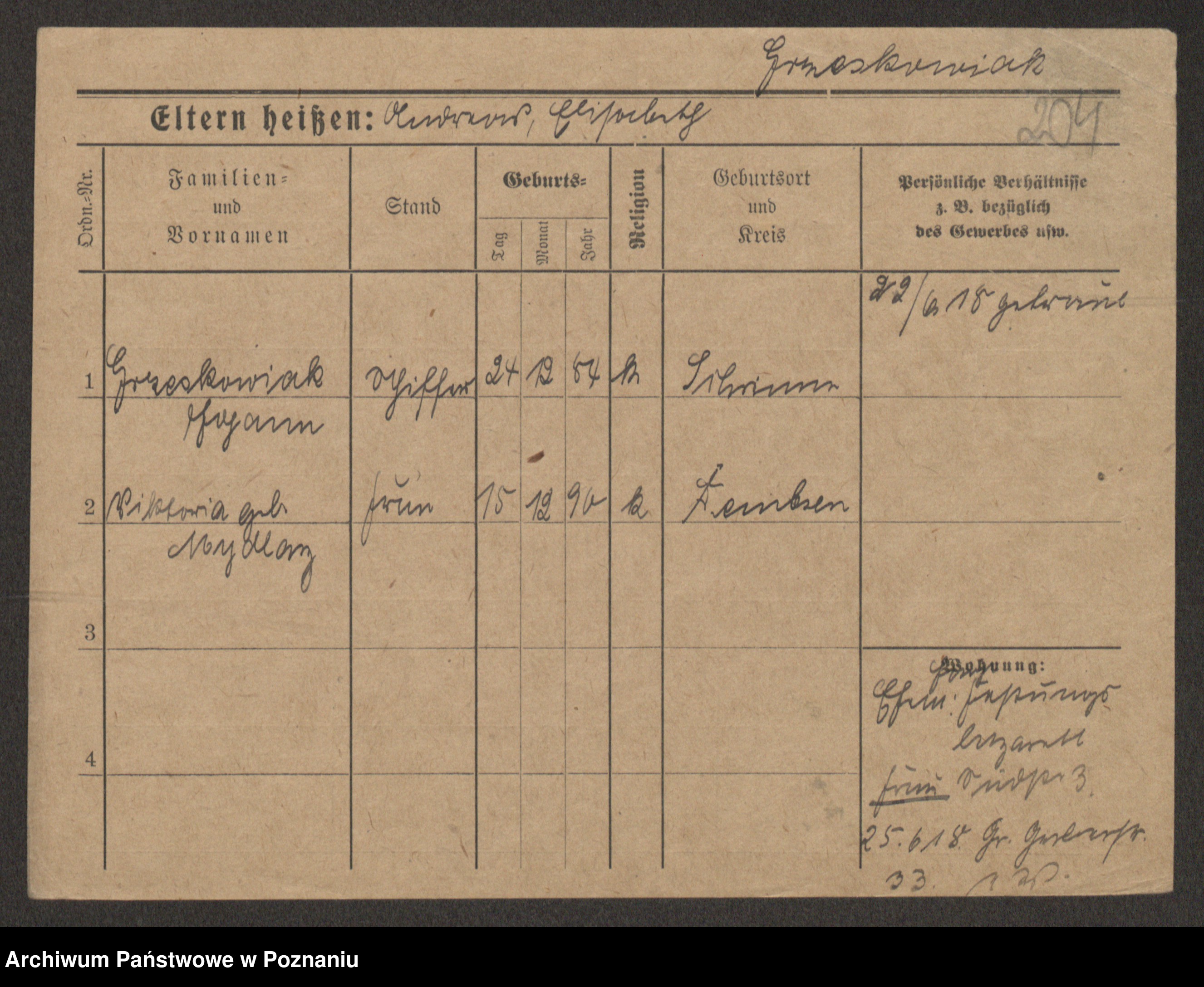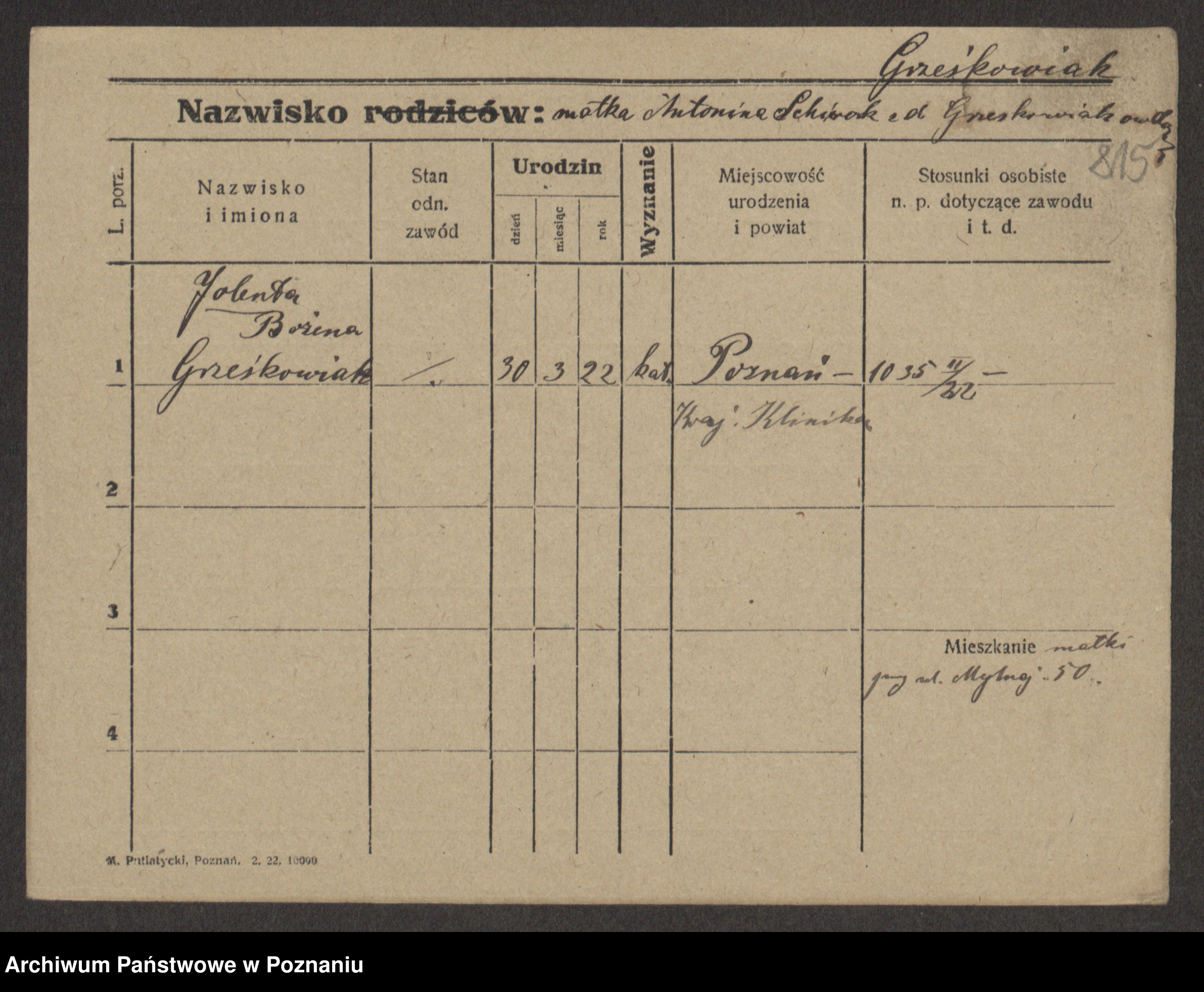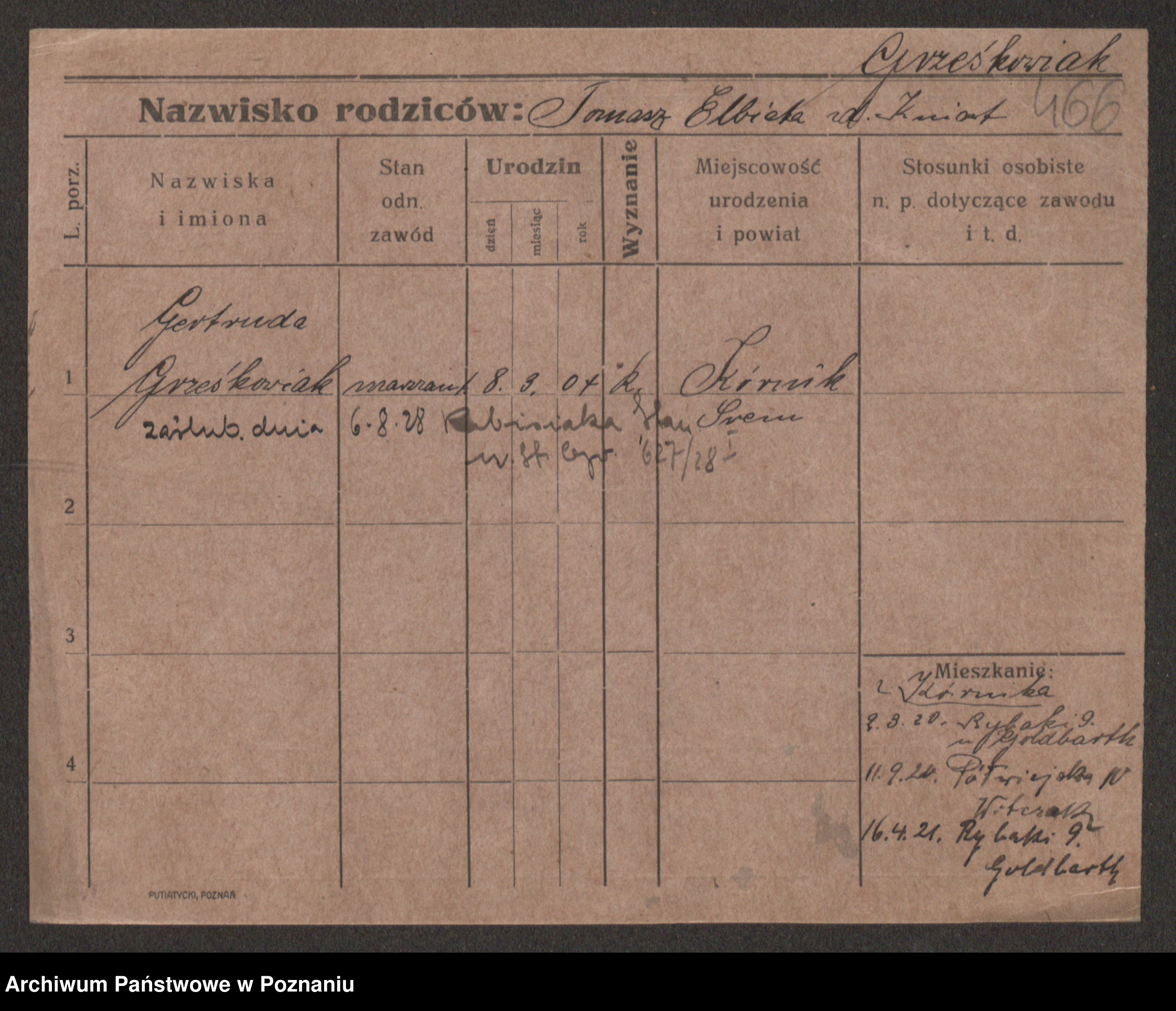 Grześkowiak z d. Czechelska, Marja