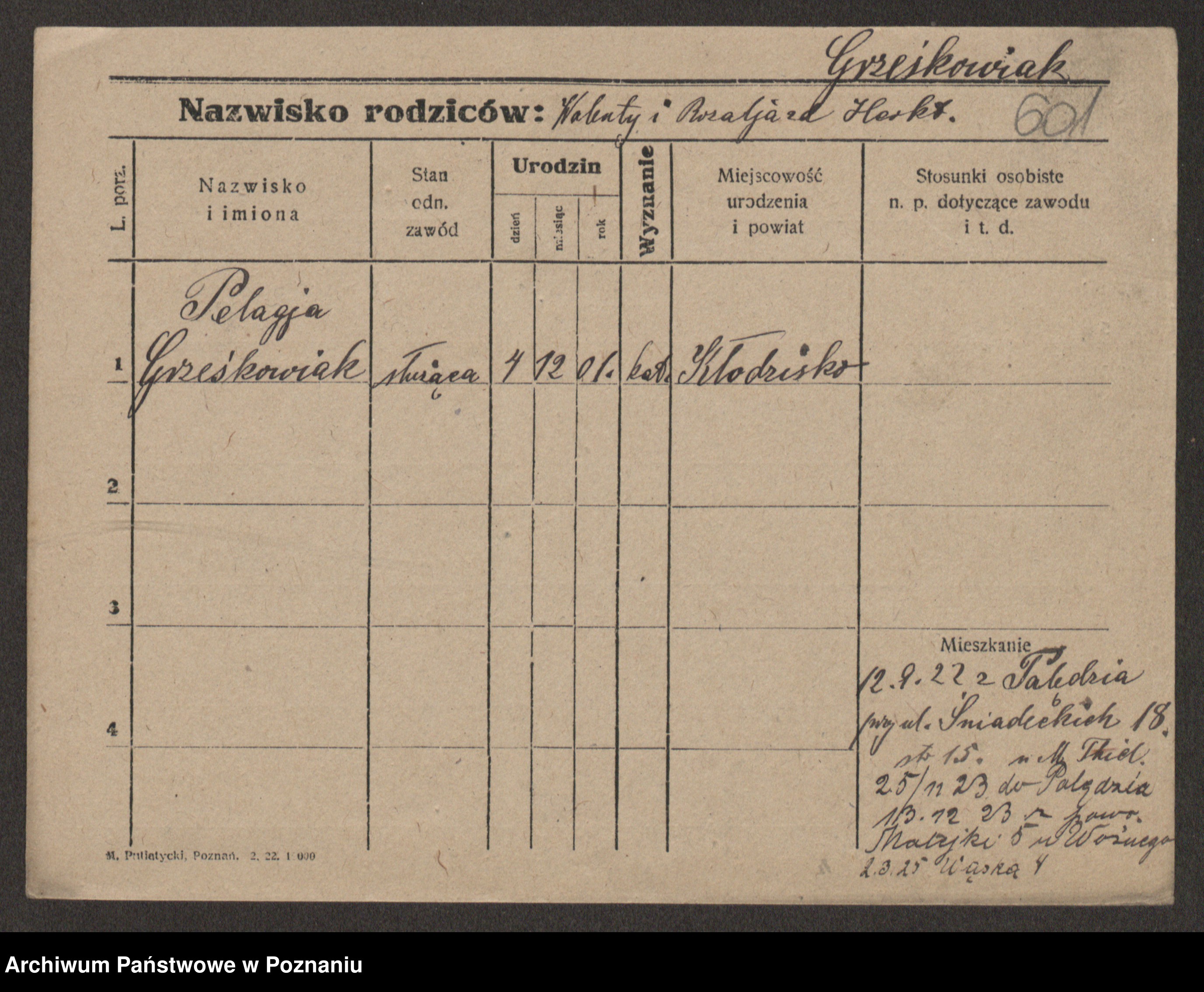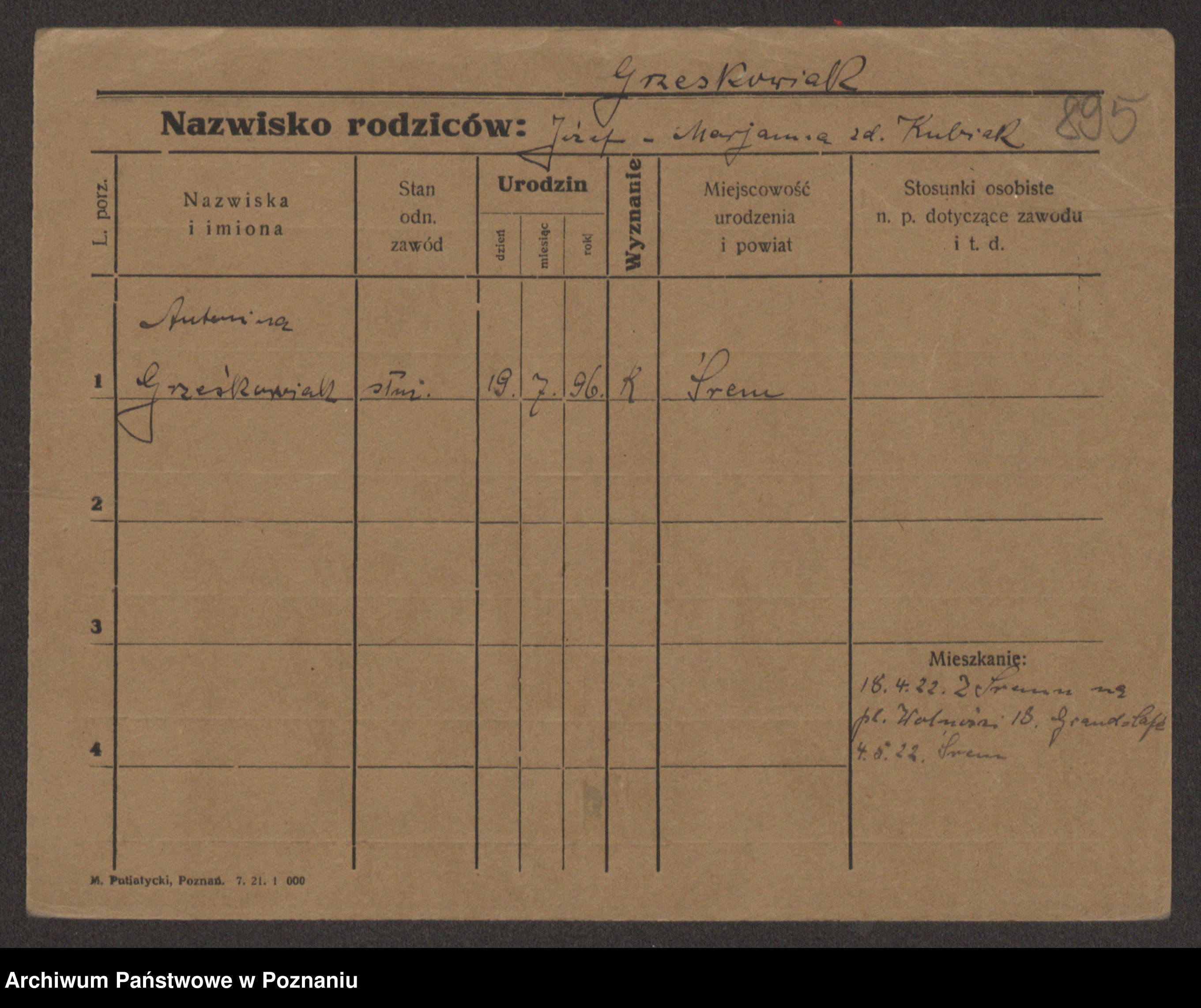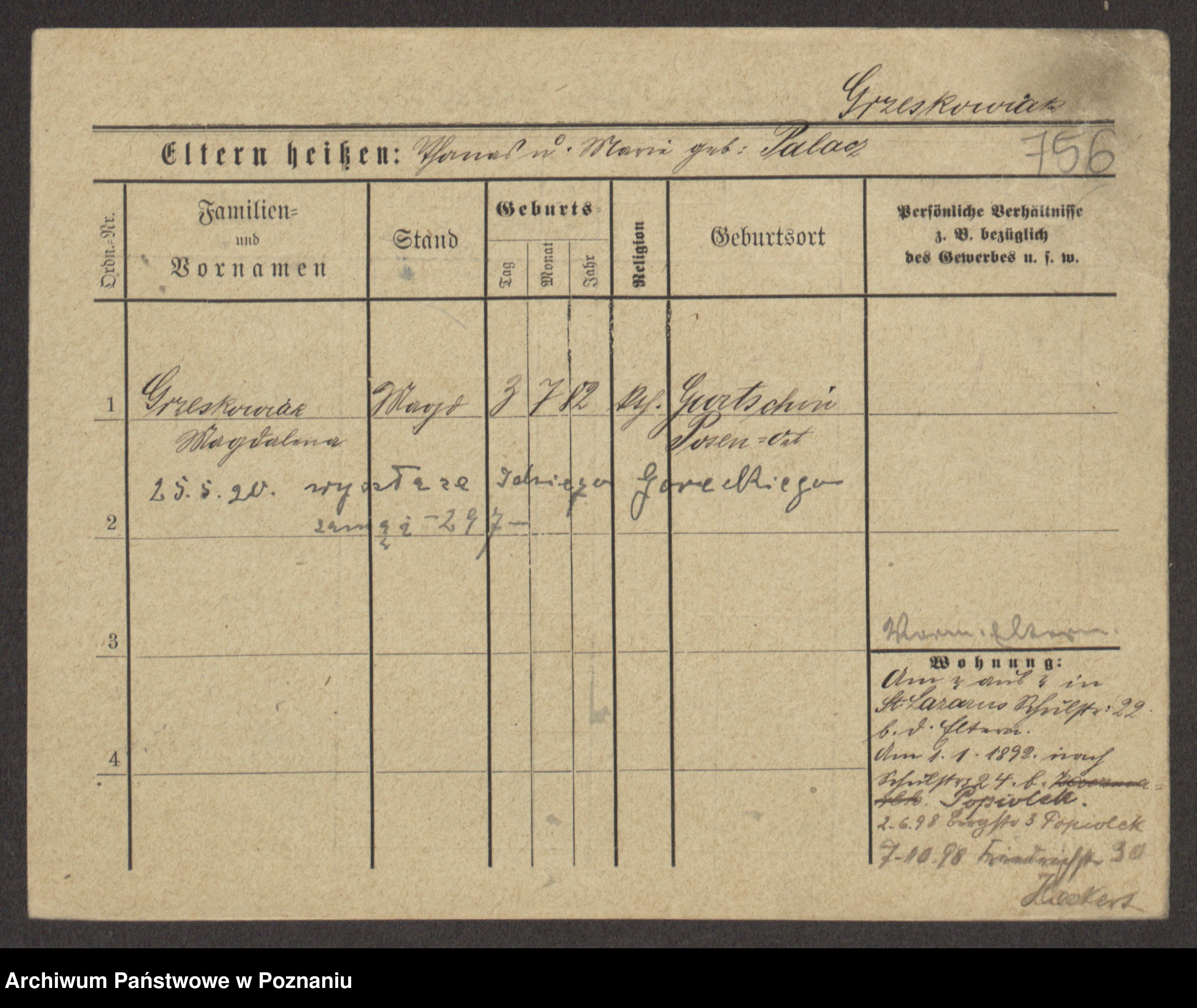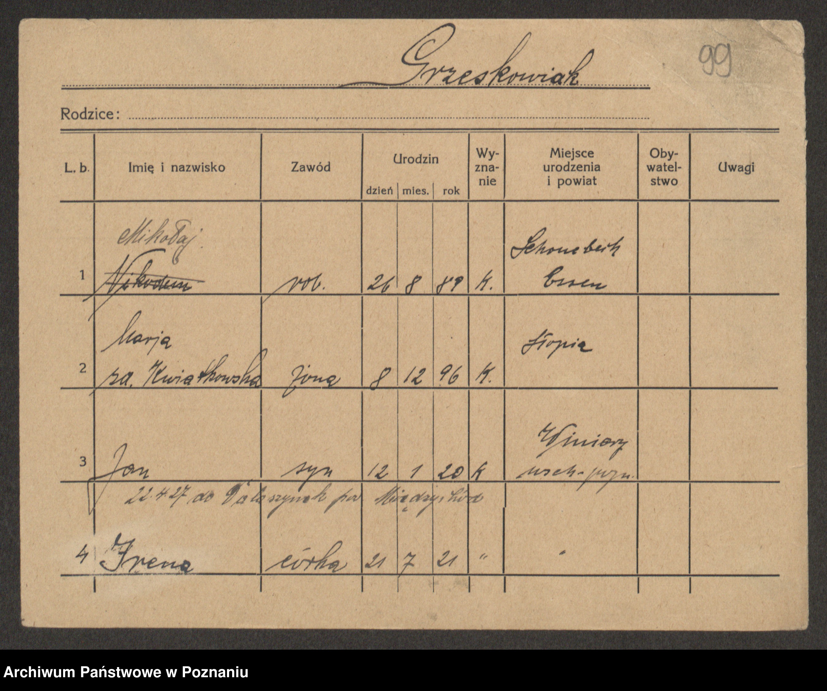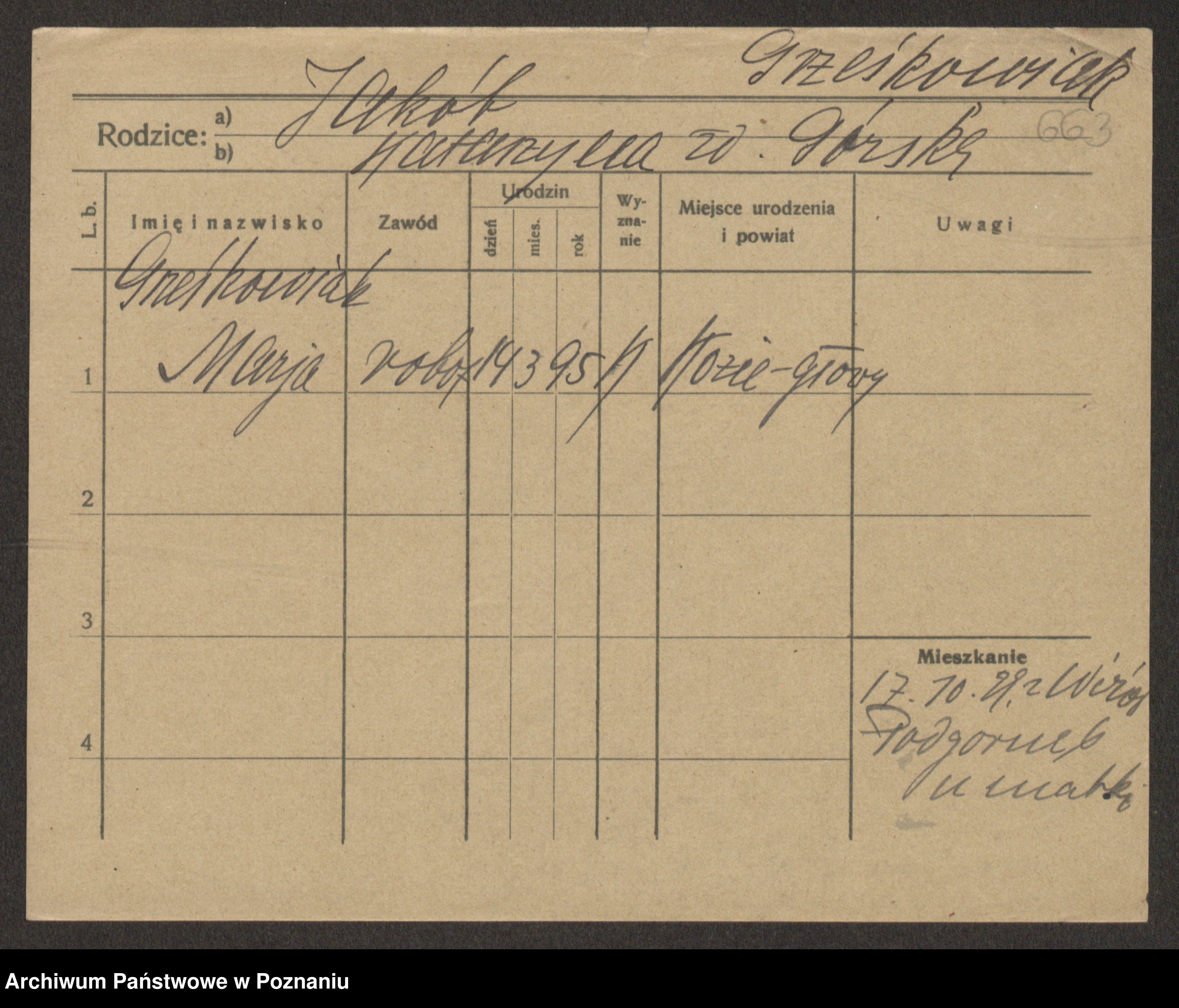 Grześkowiak z d. Czechelska, Marja