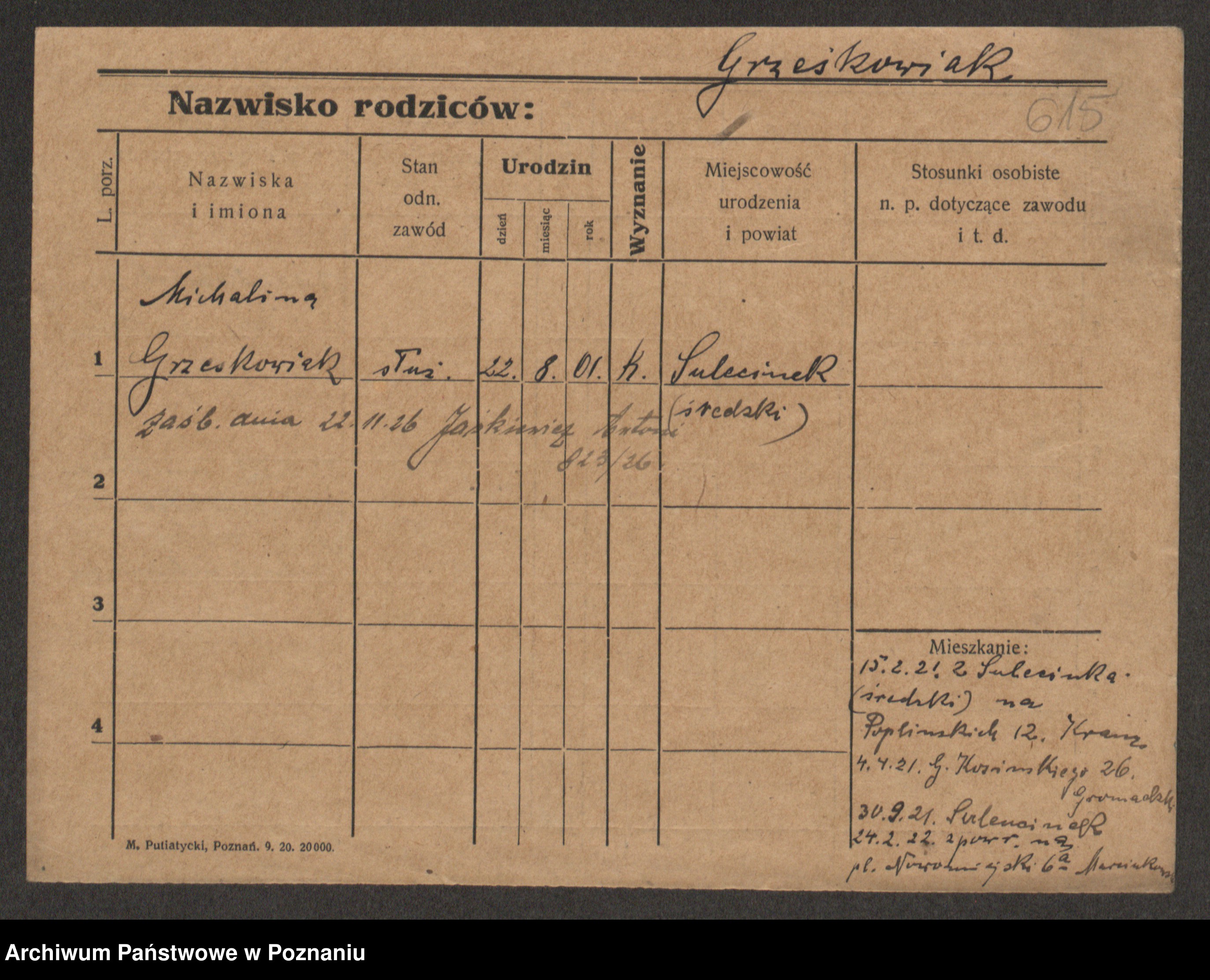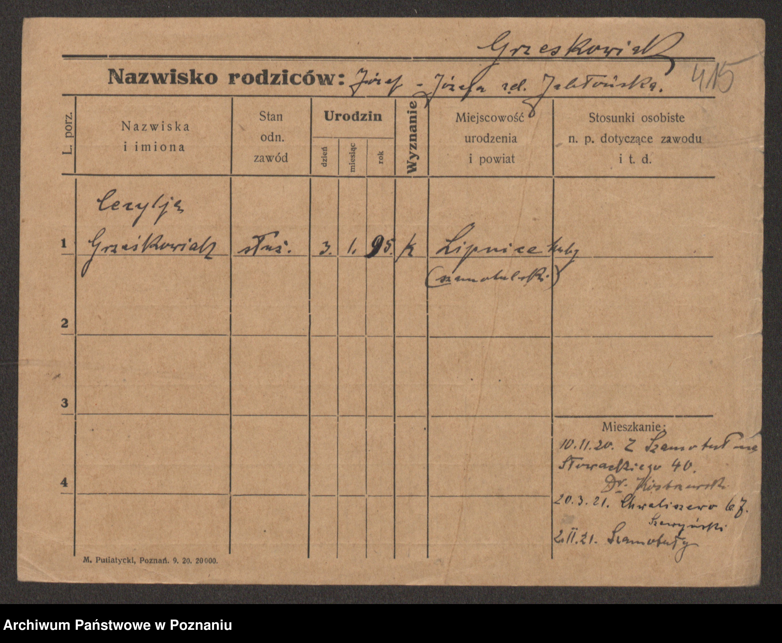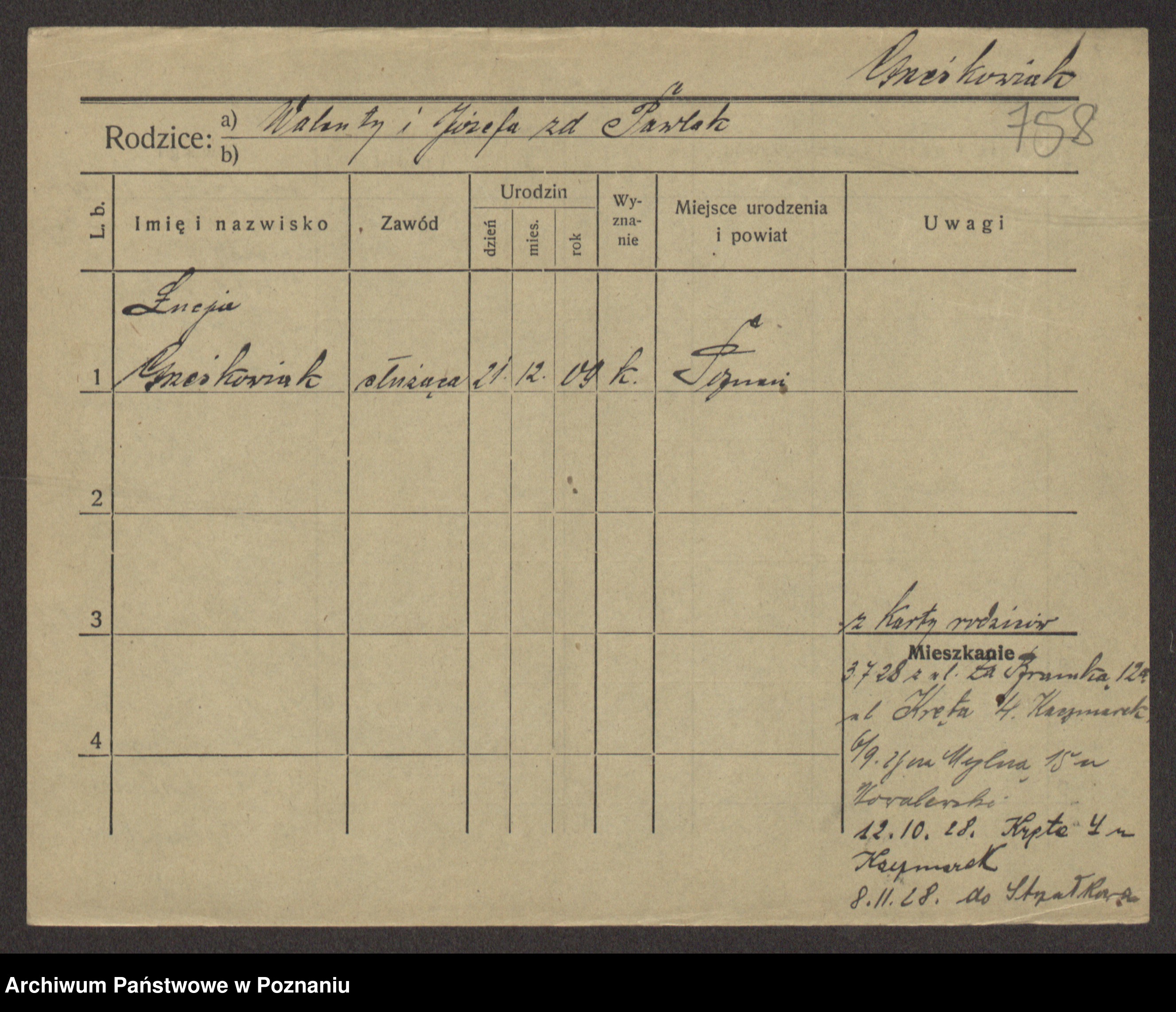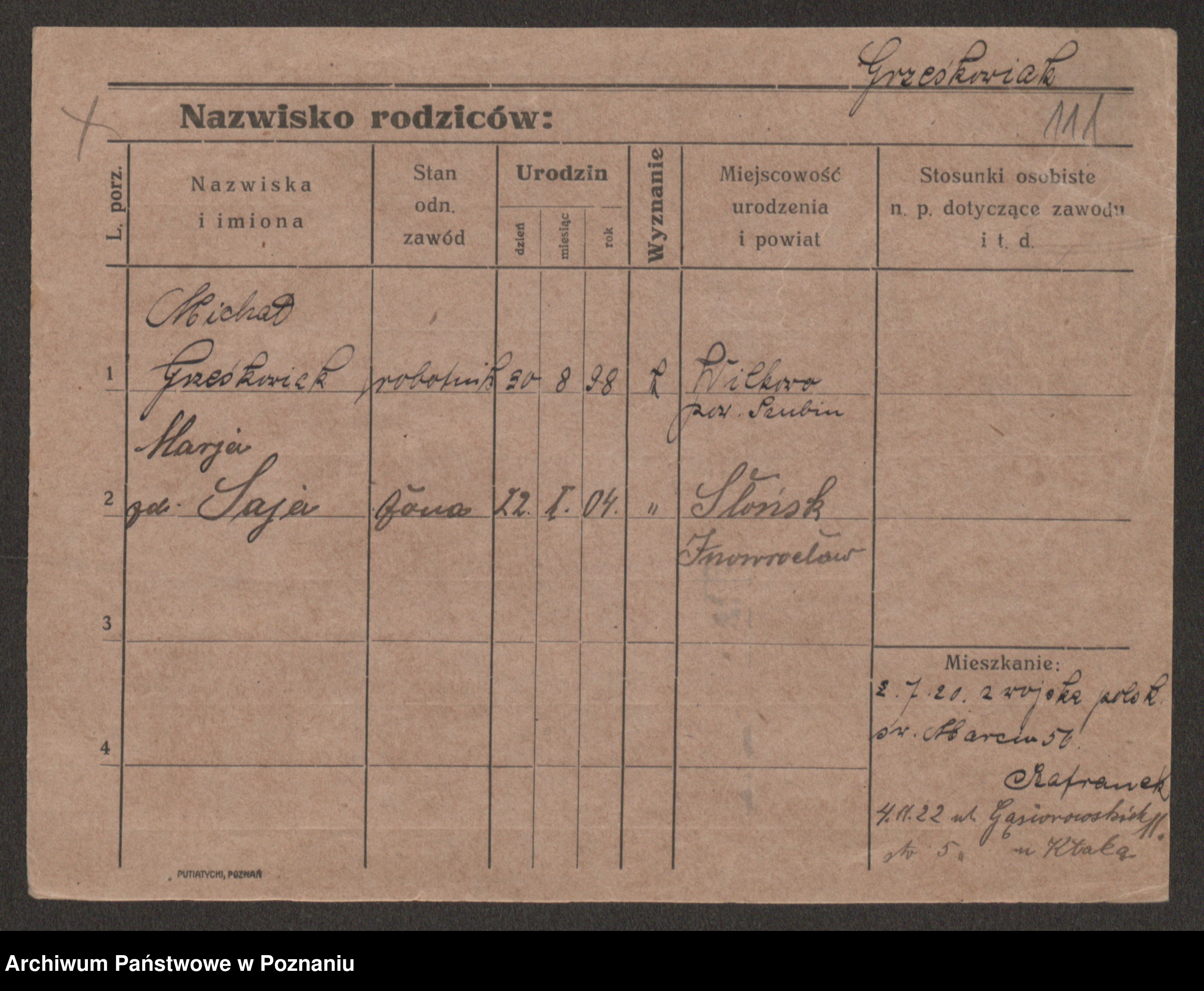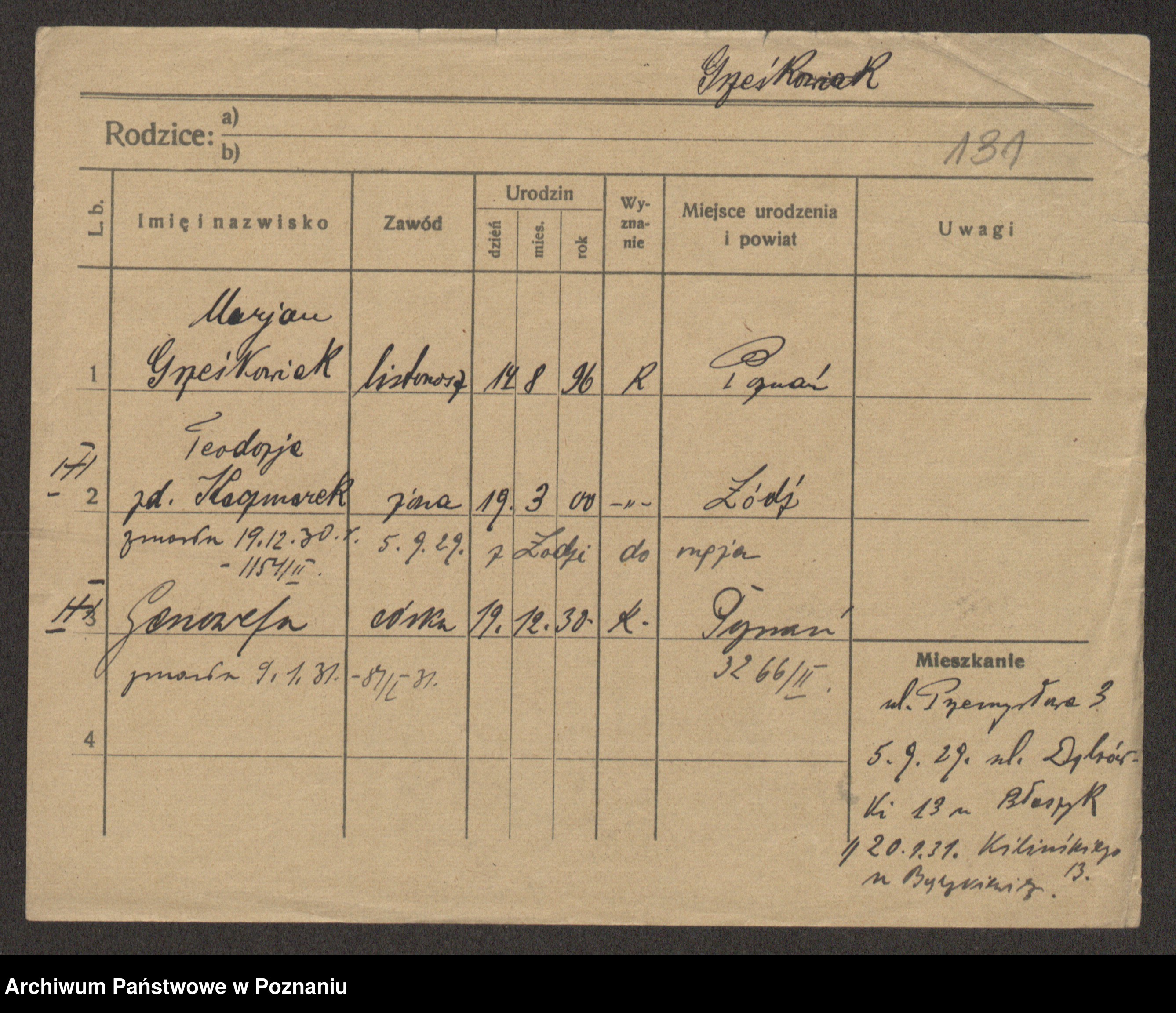 Grześkowiak z d. Czechelska, Marja
