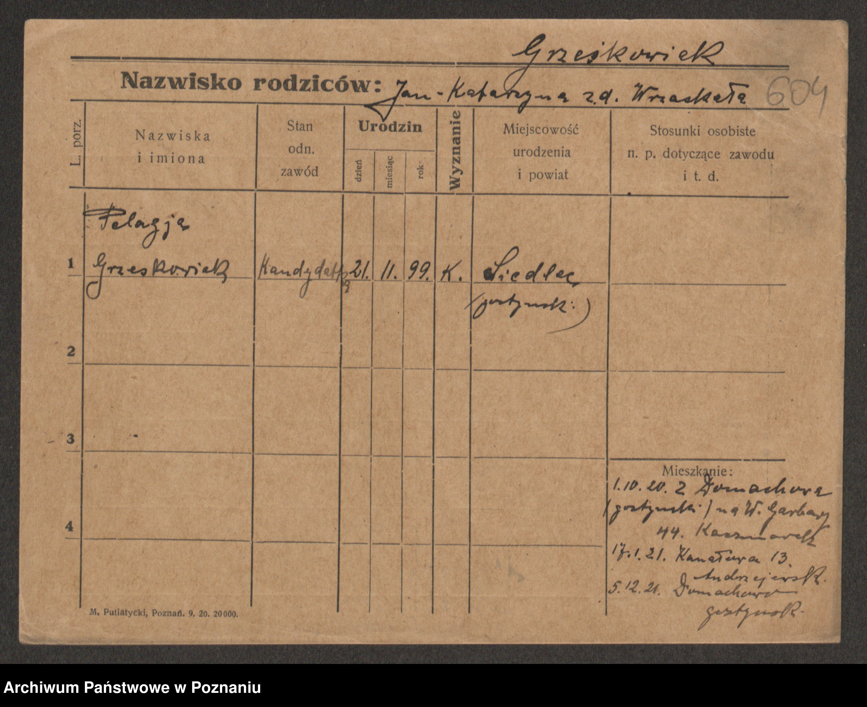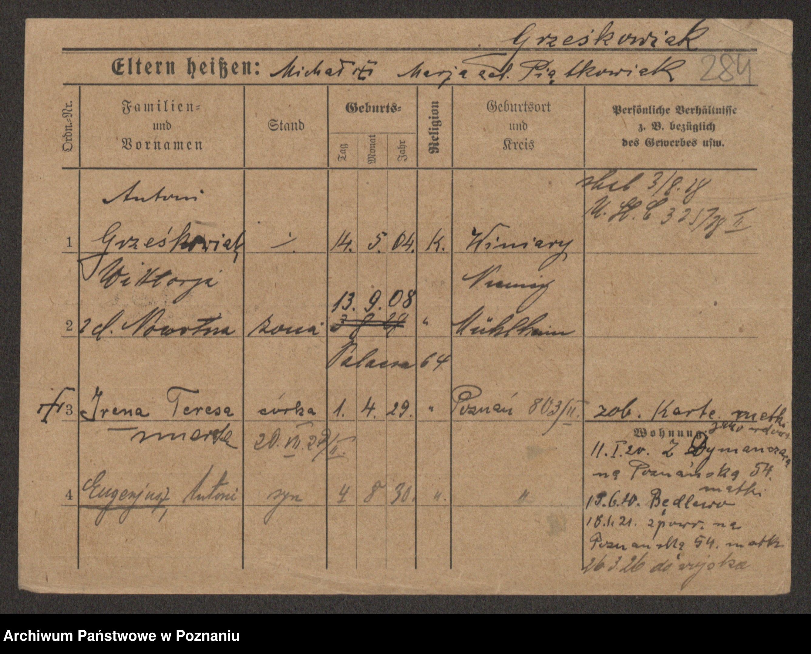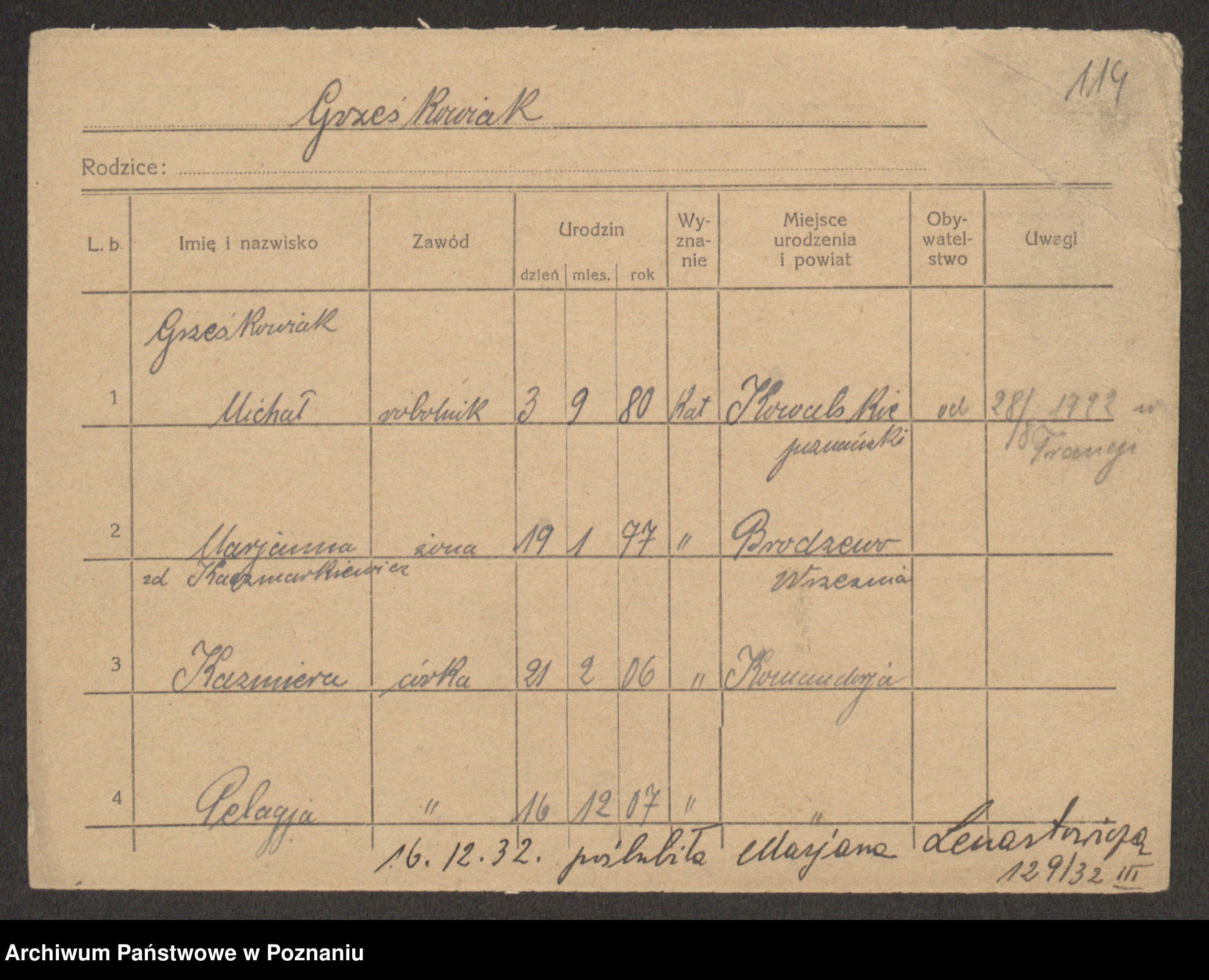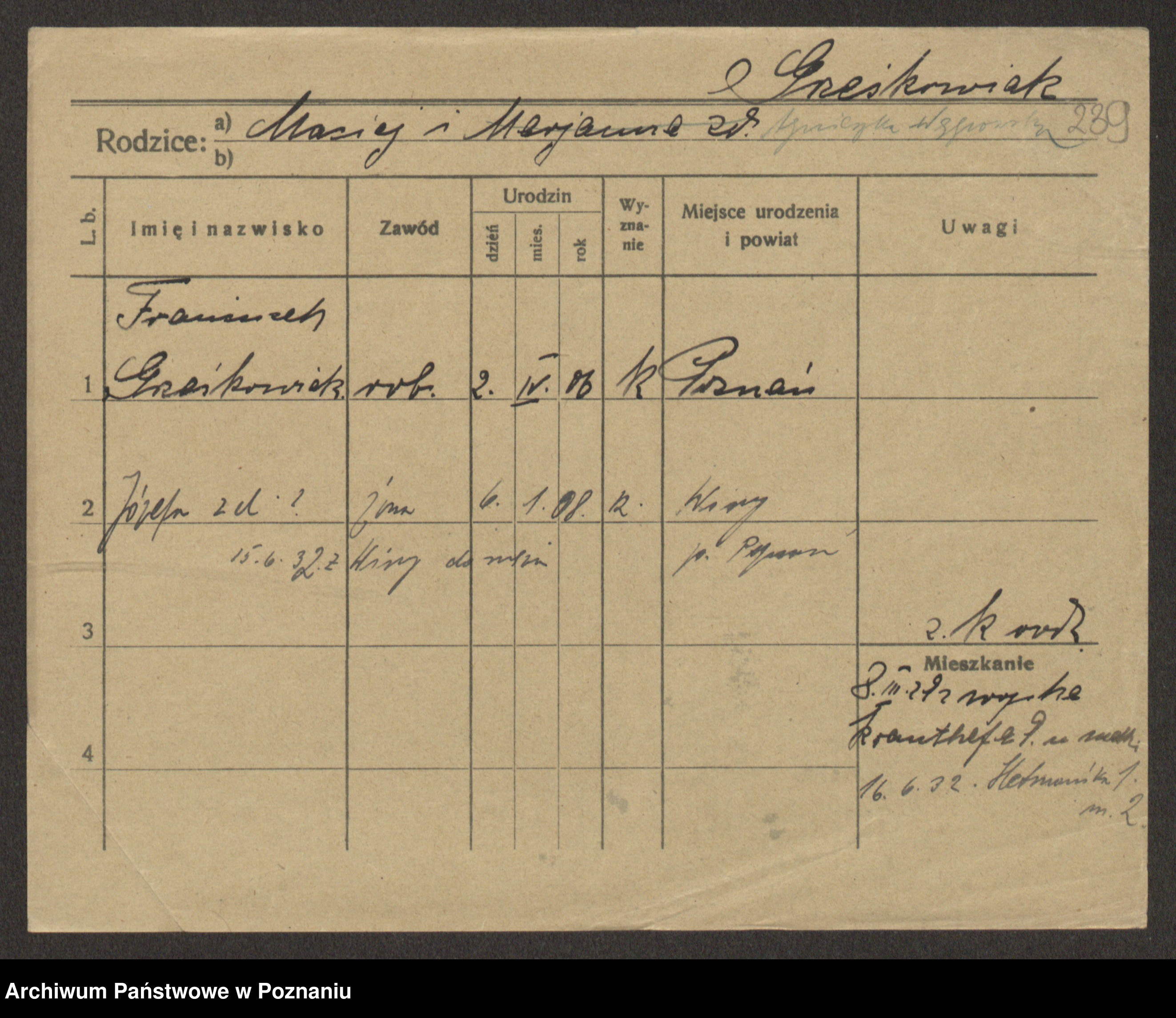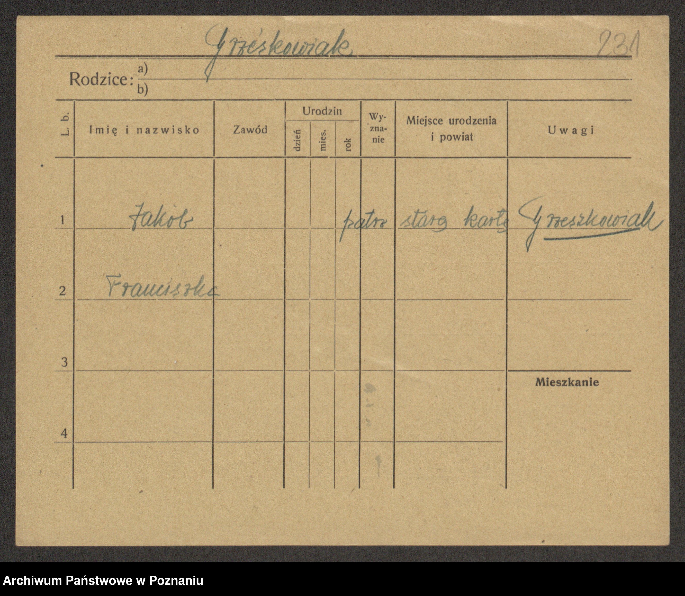 Grześkowiak z d. Czechelska, Marja