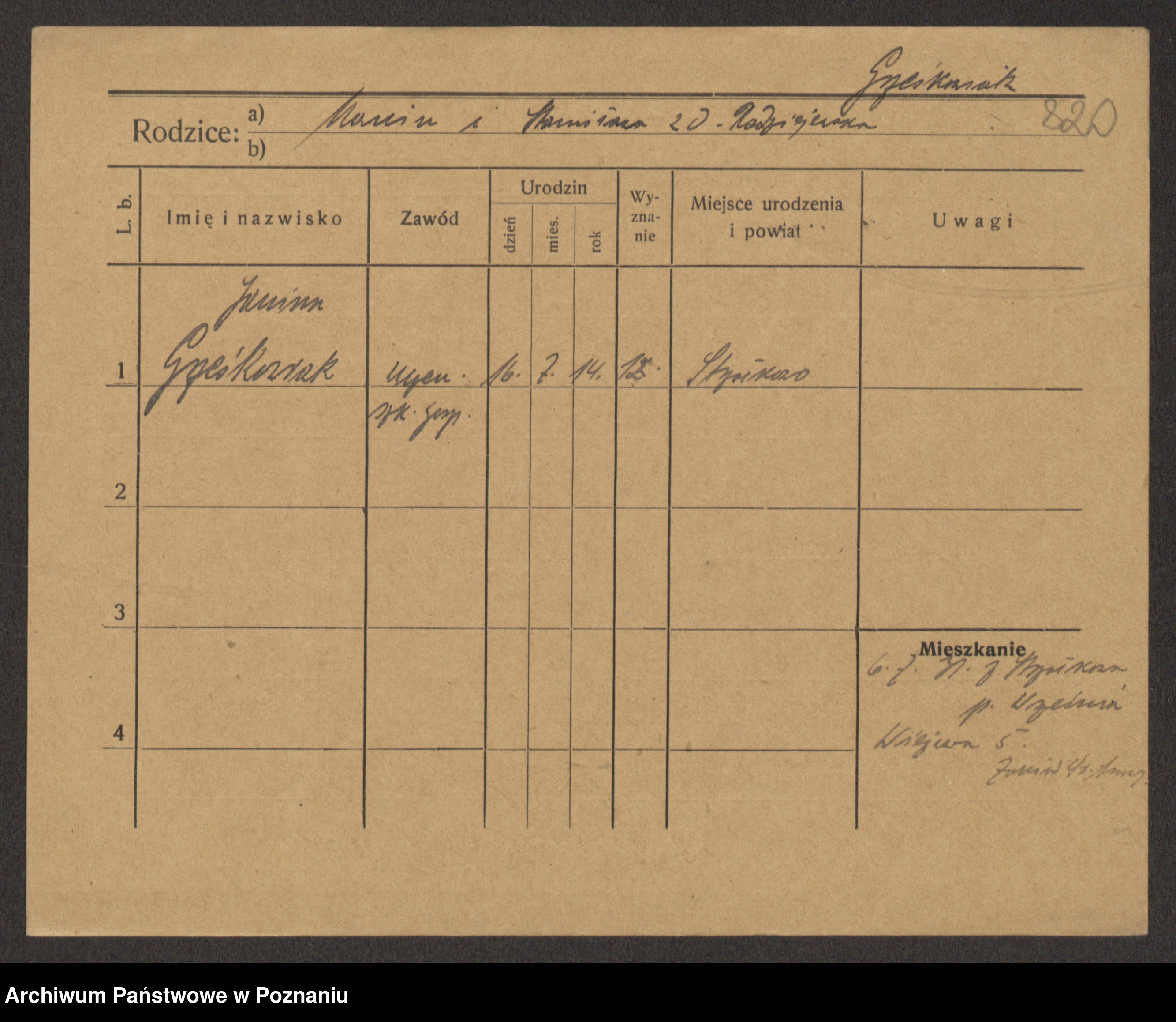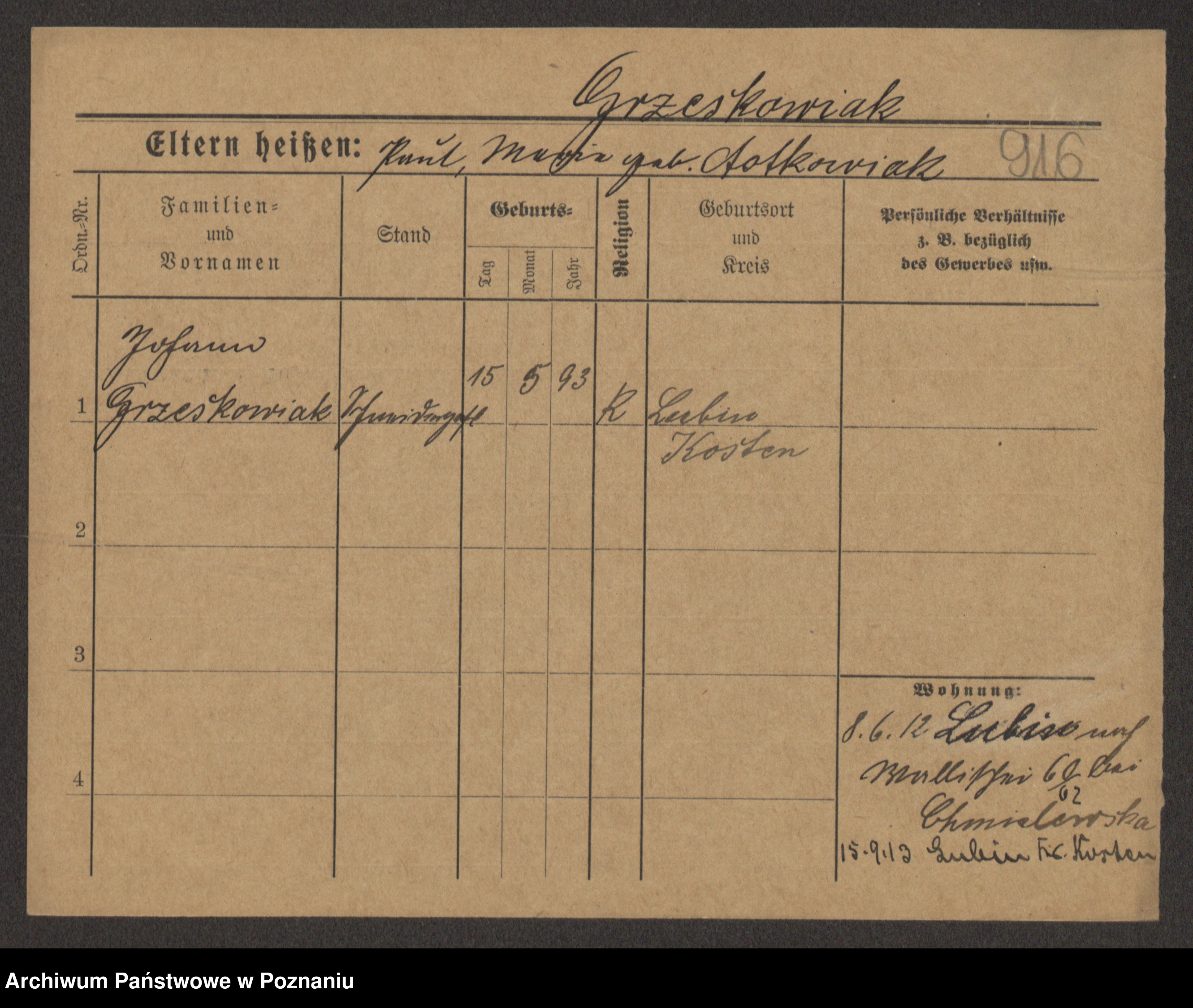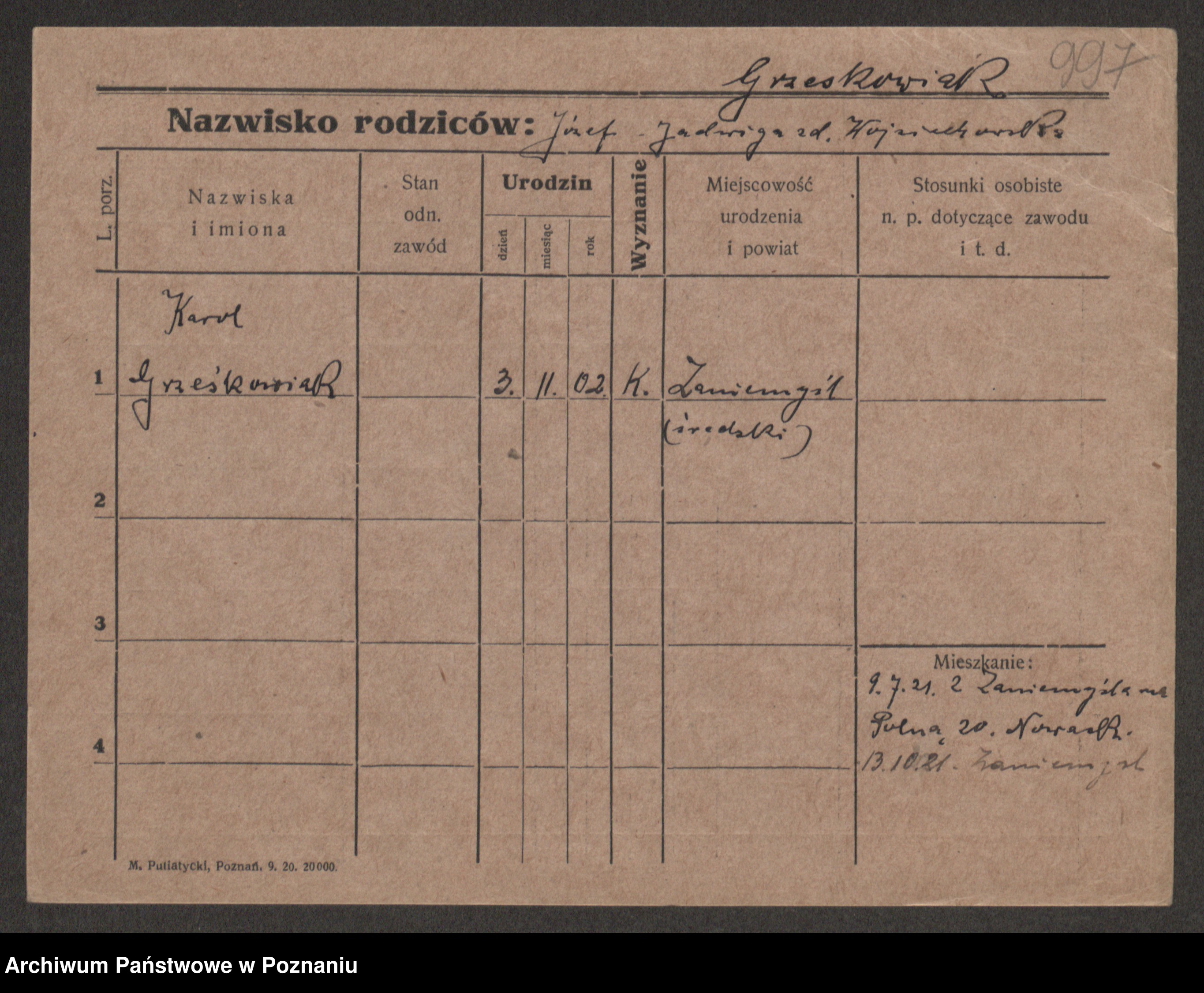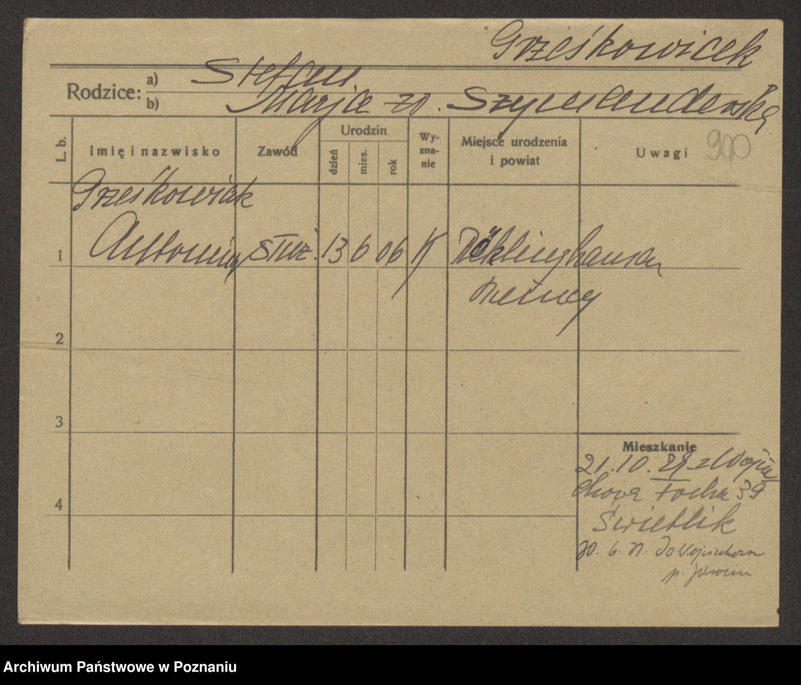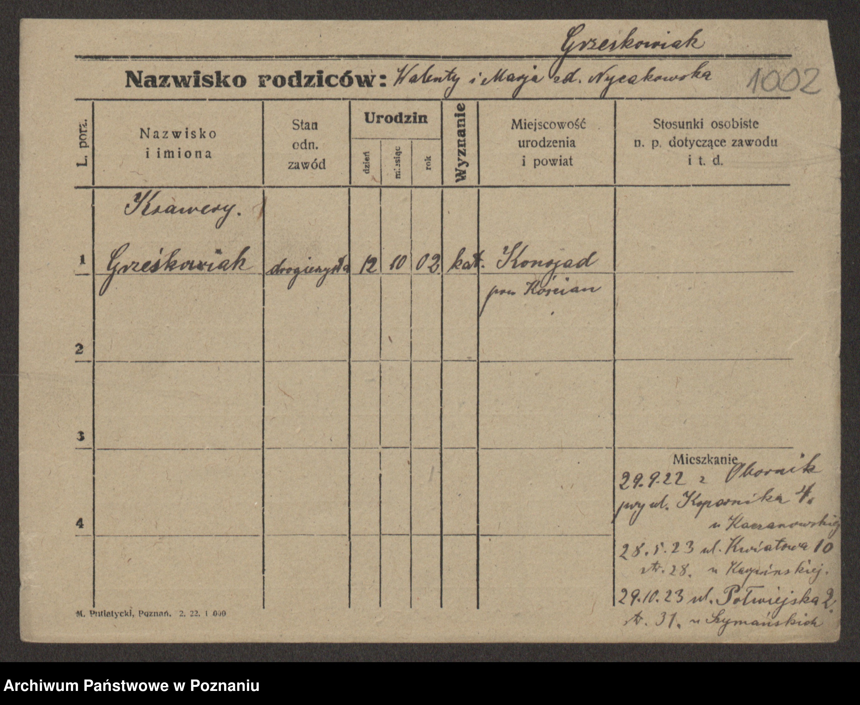Grześkowiak z d. Czechelska, Marja