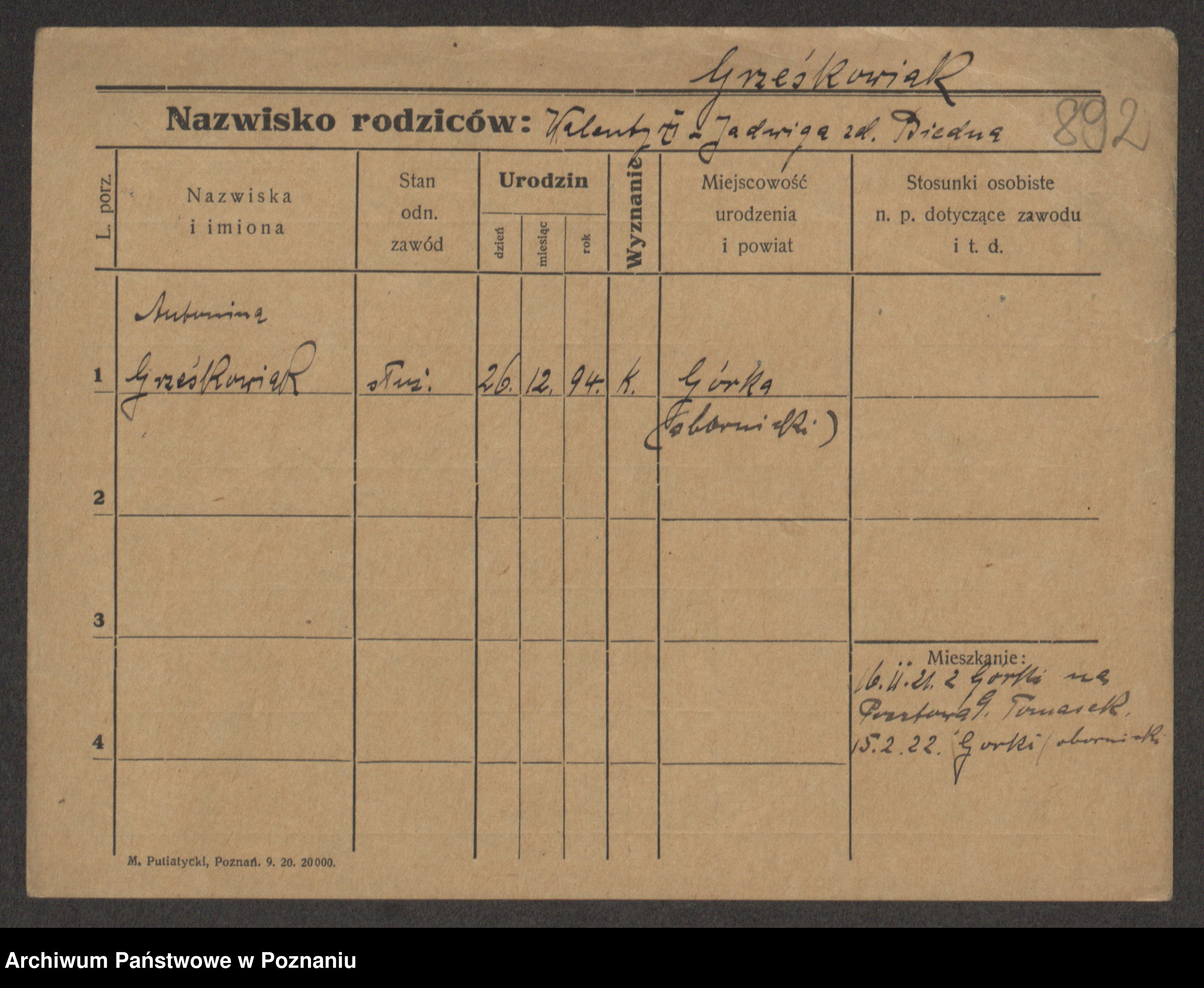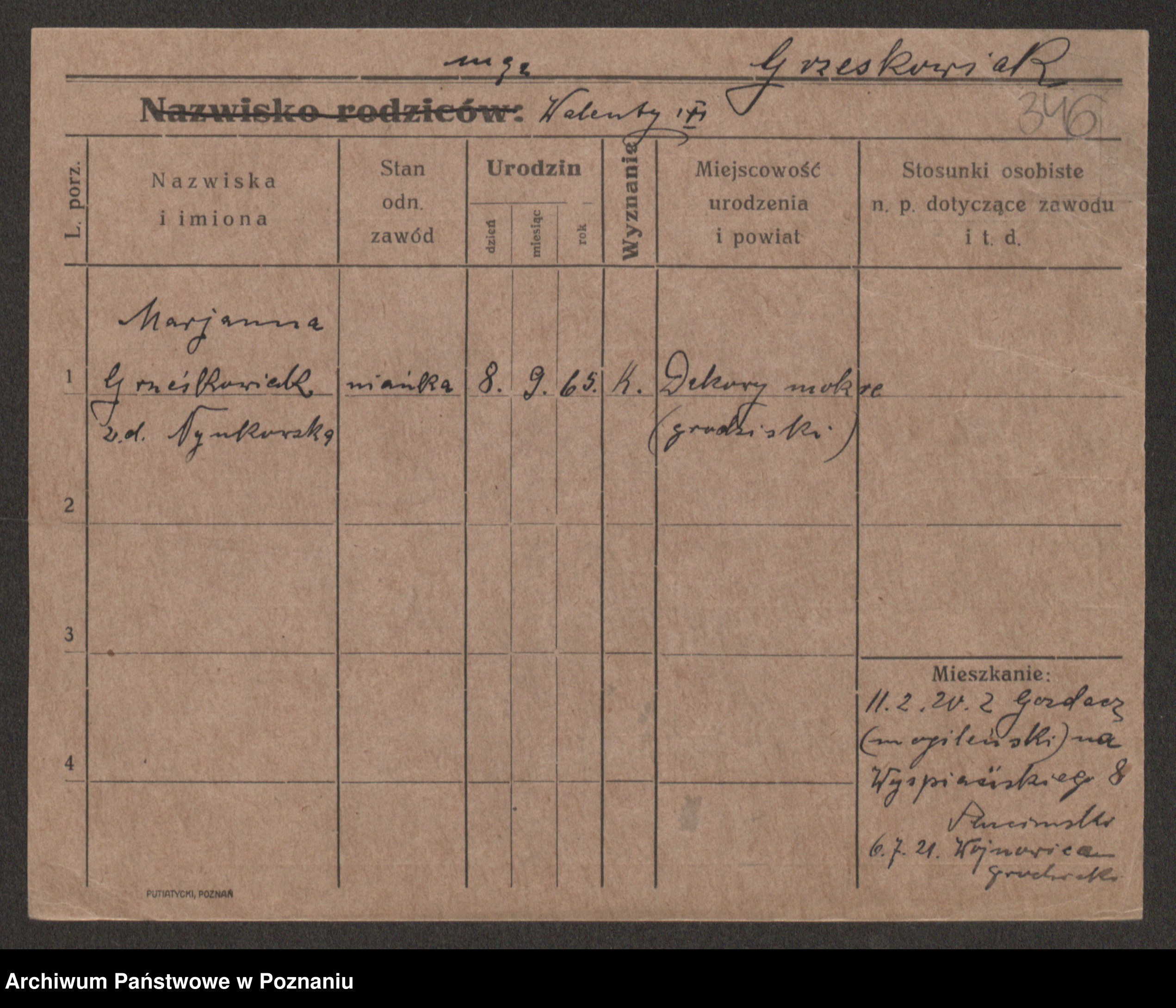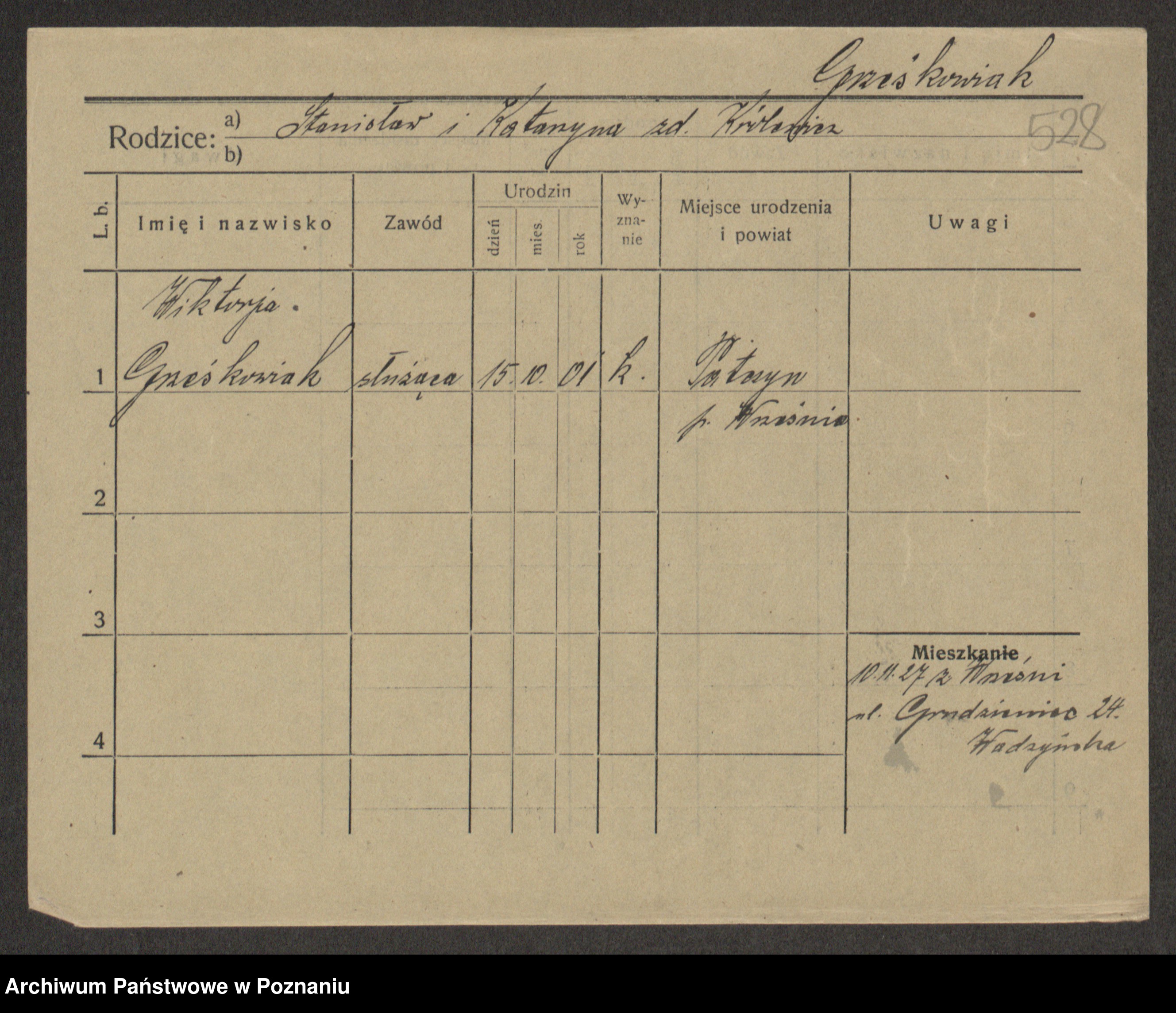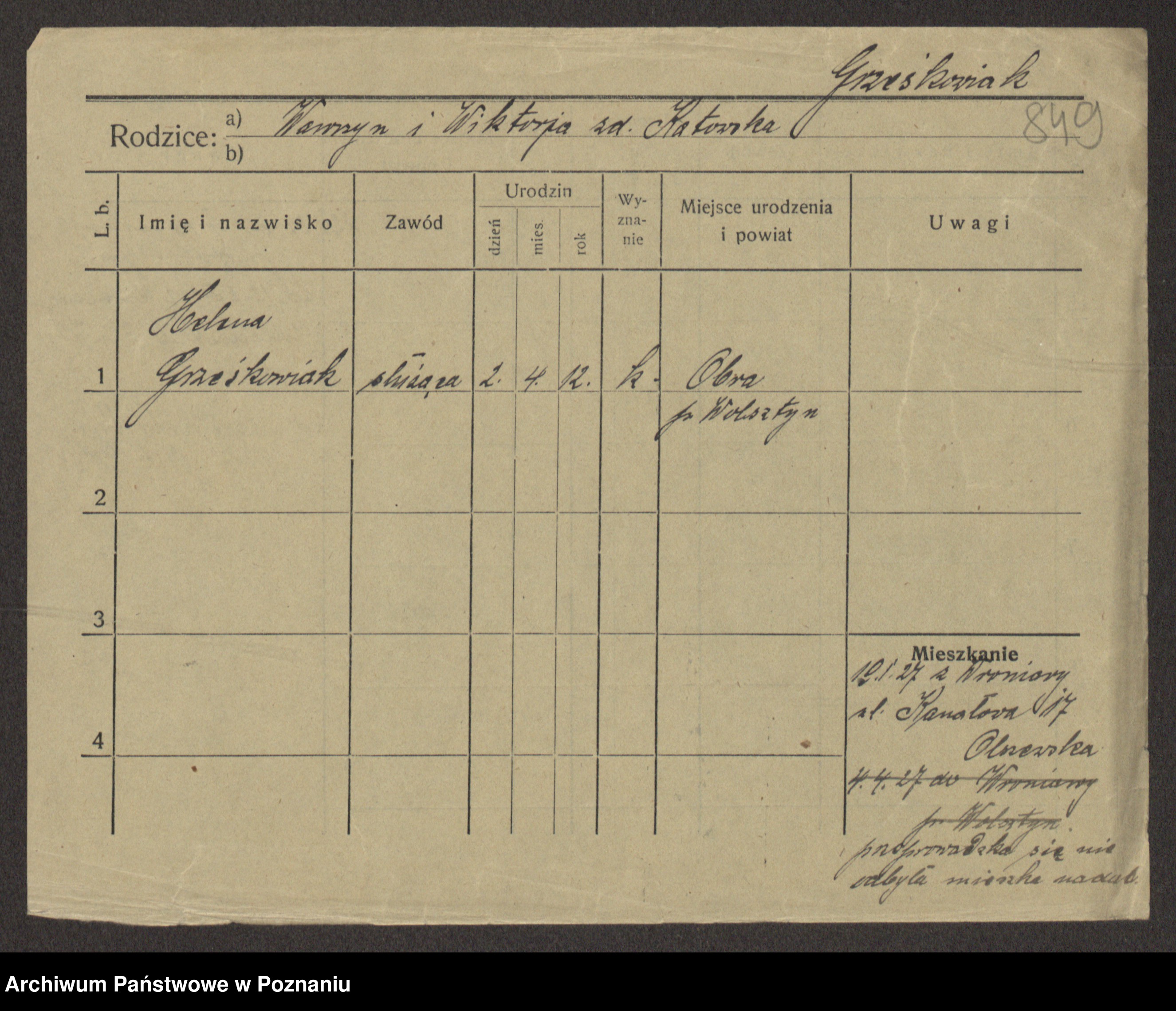 Grześkowiak z d. Gomulska, Wiktorja