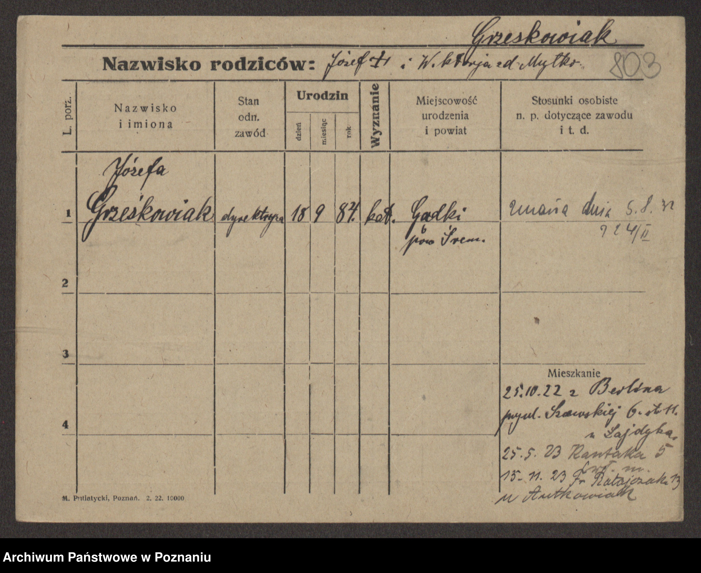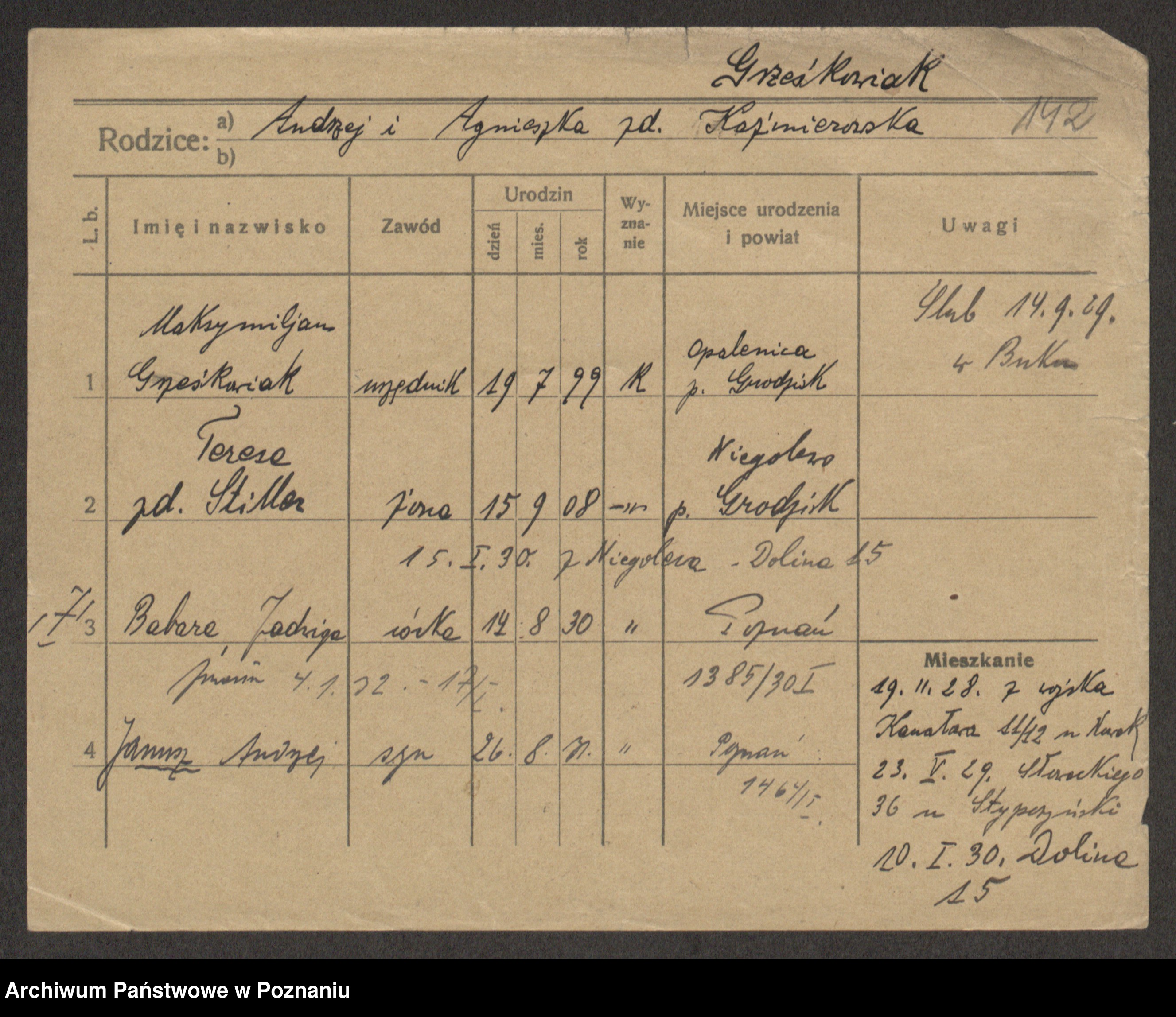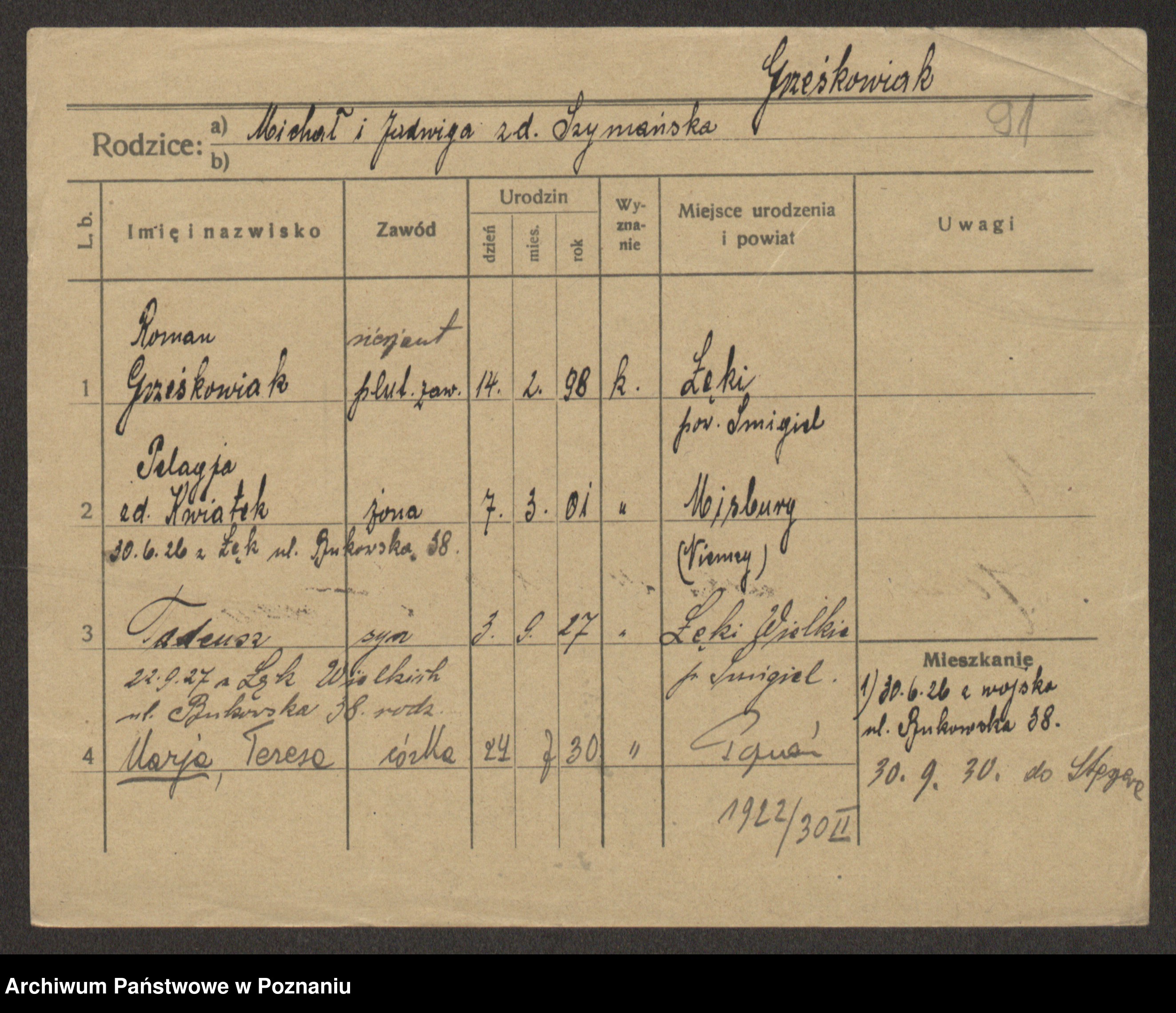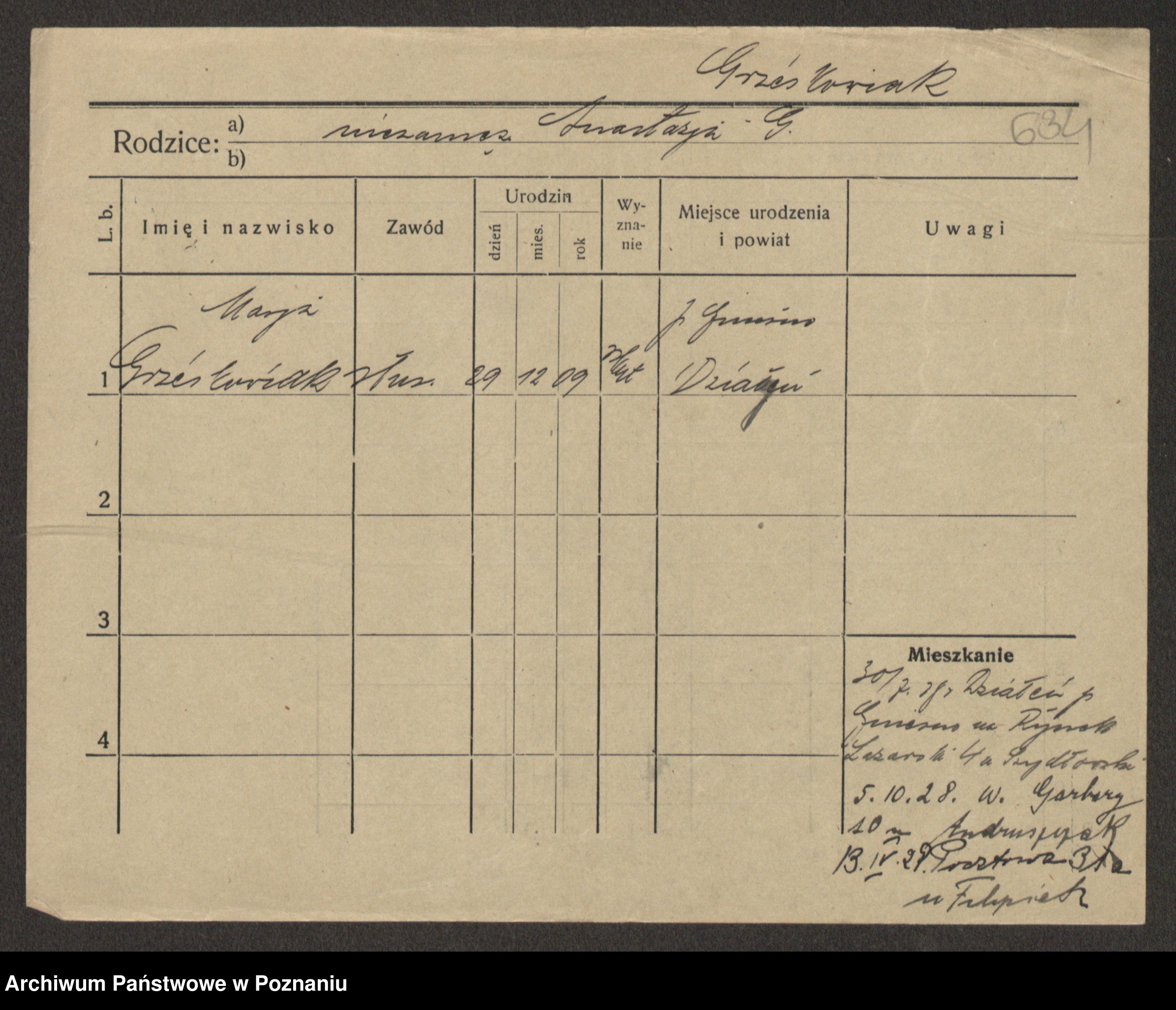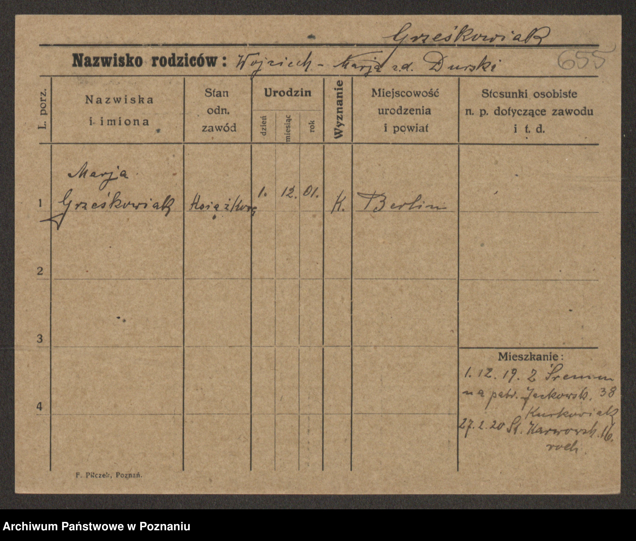 Grześkowiak z d. Durka, Marja