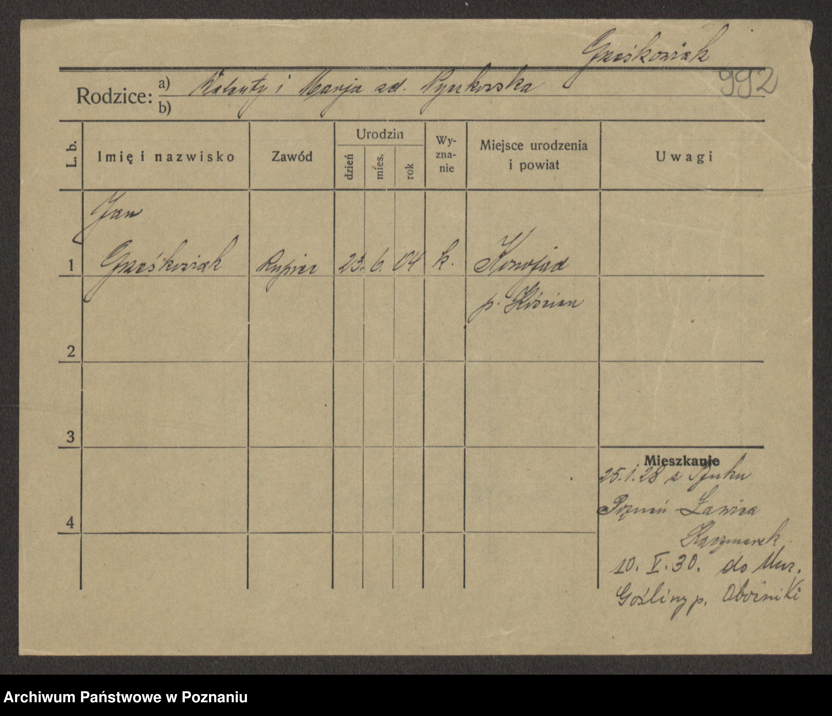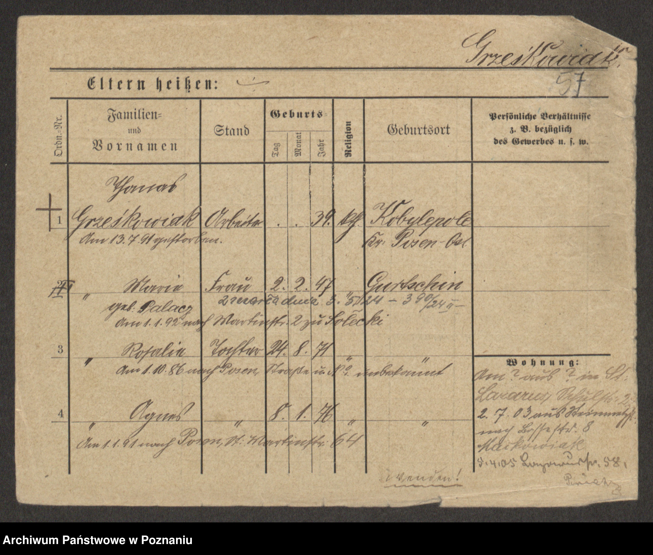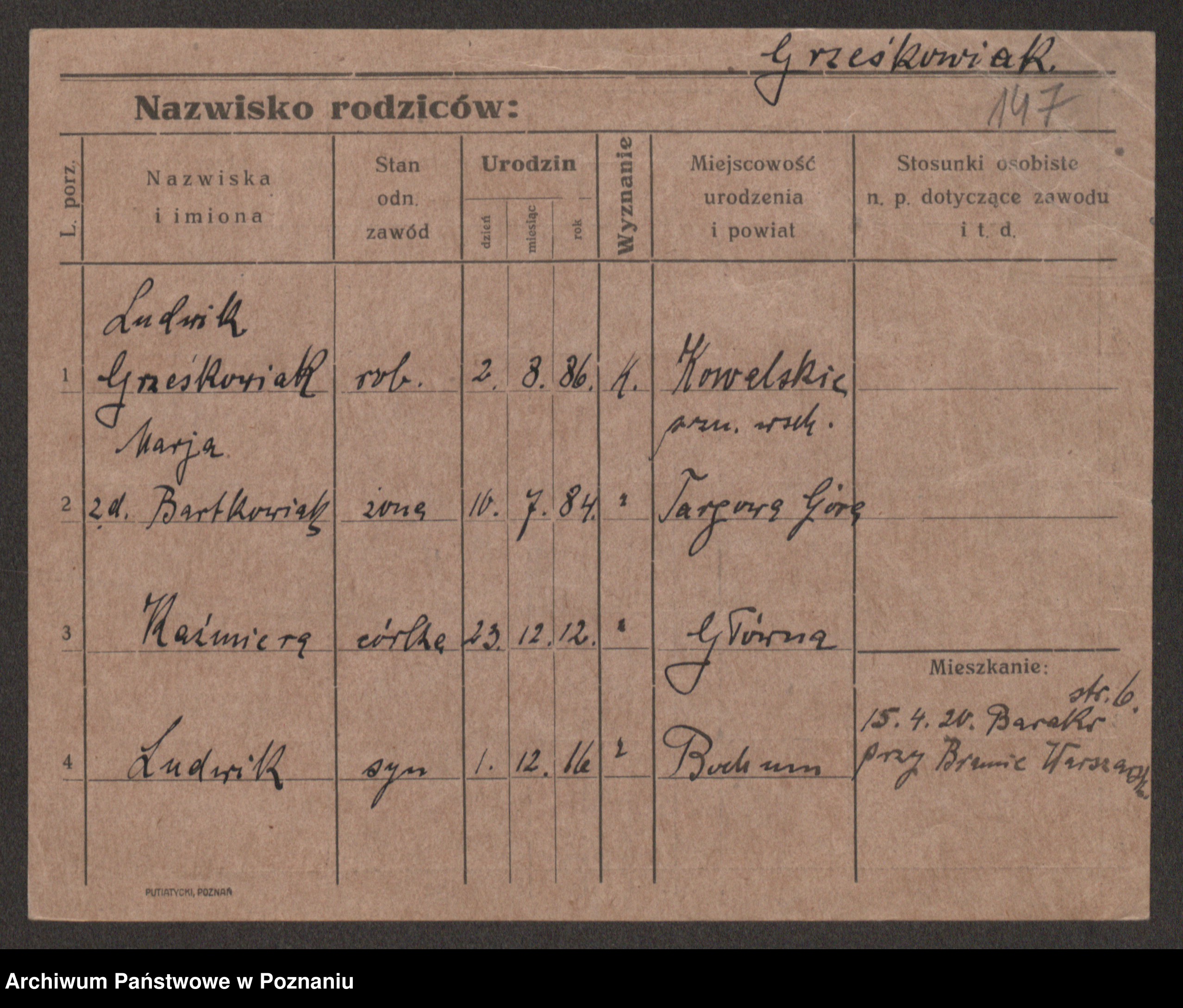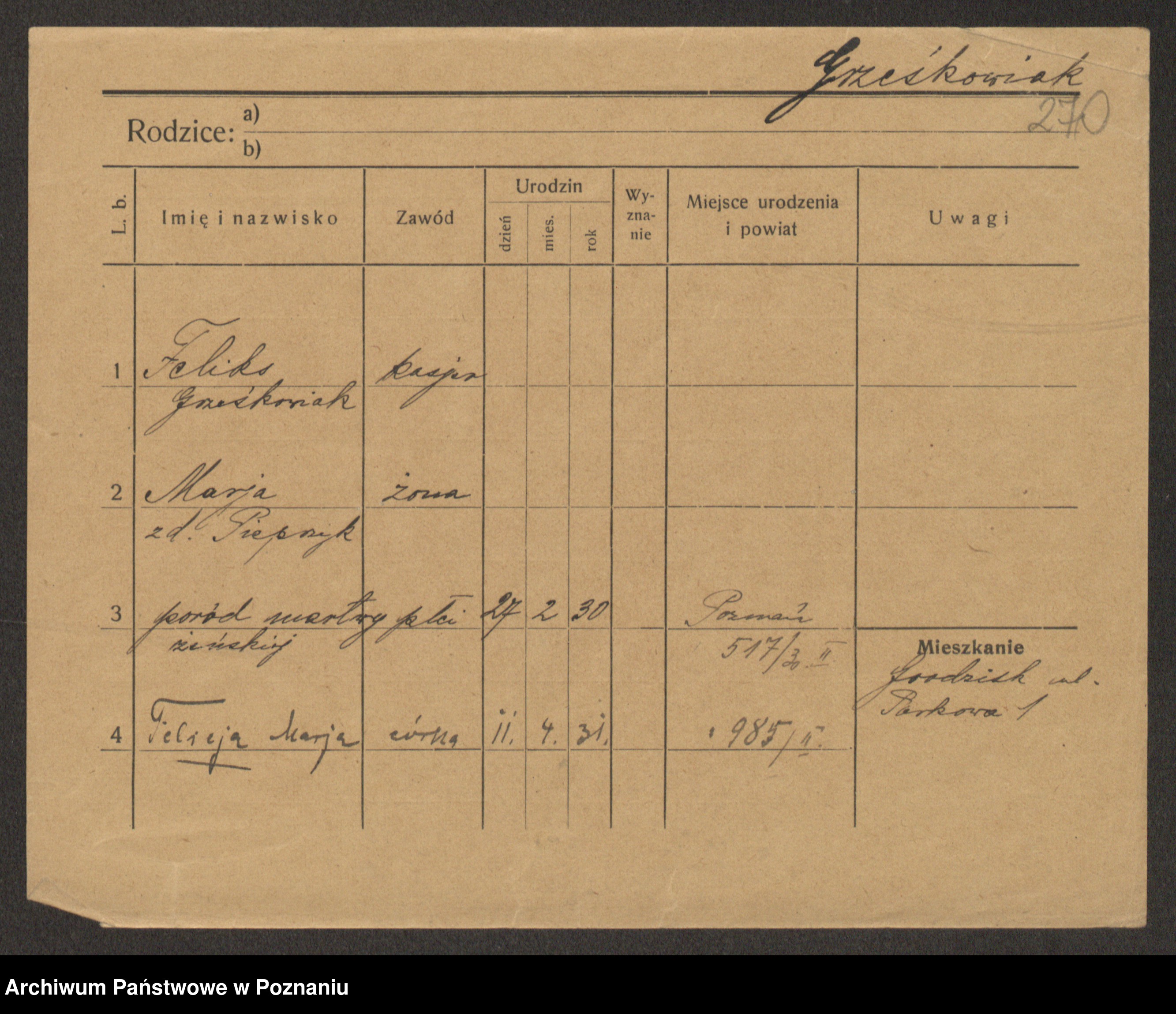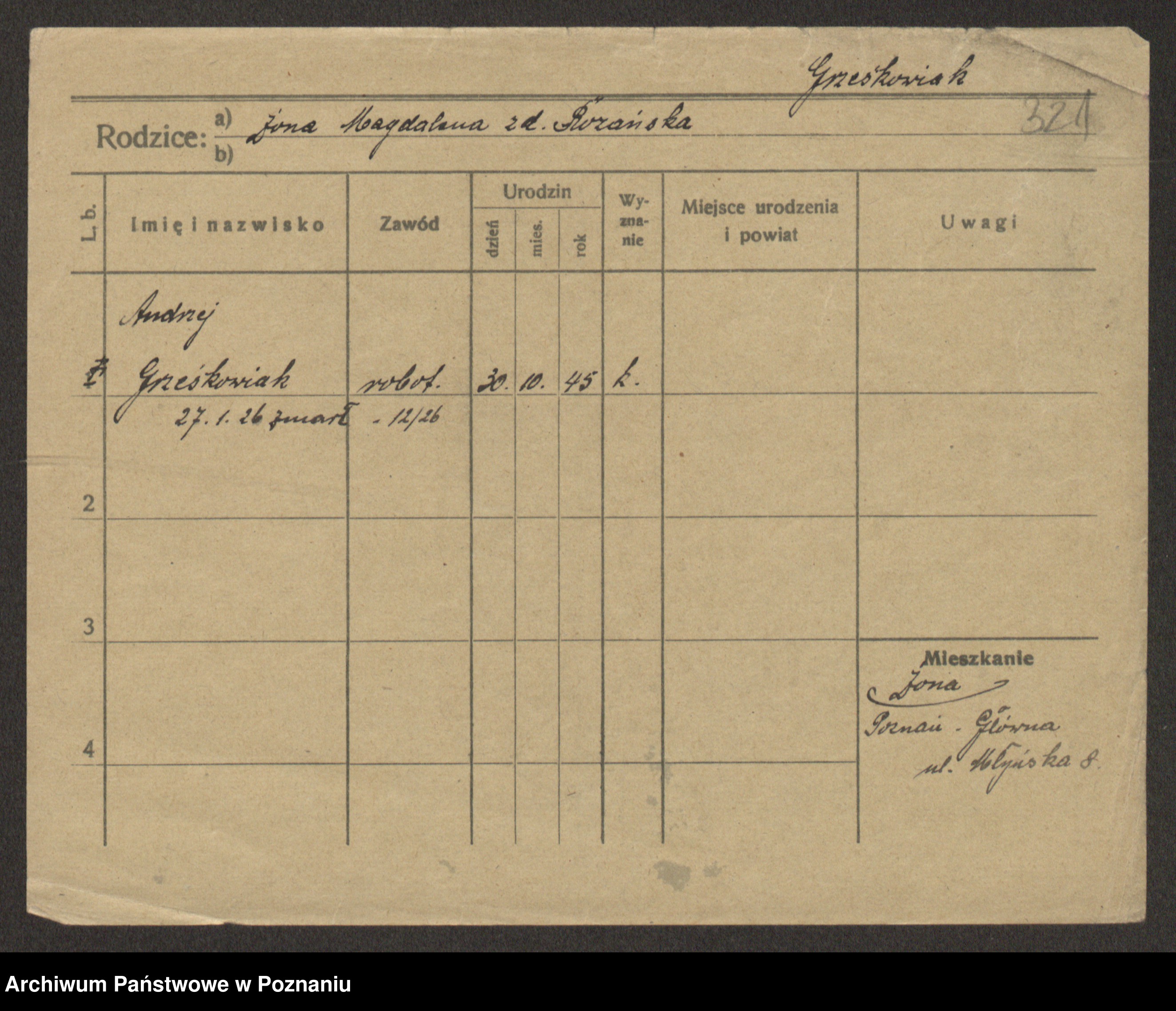 Grześkowiak z d. Durka, Marja