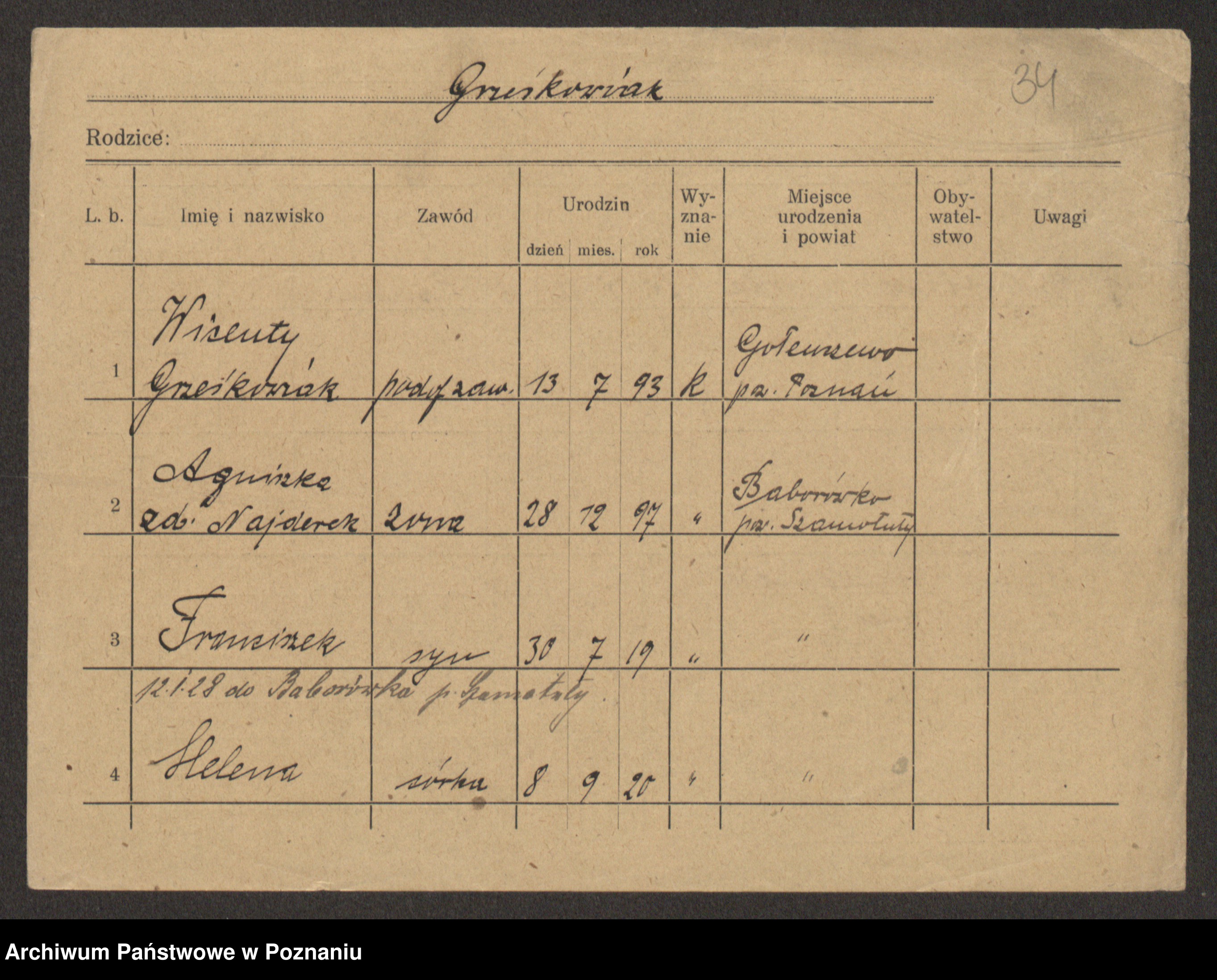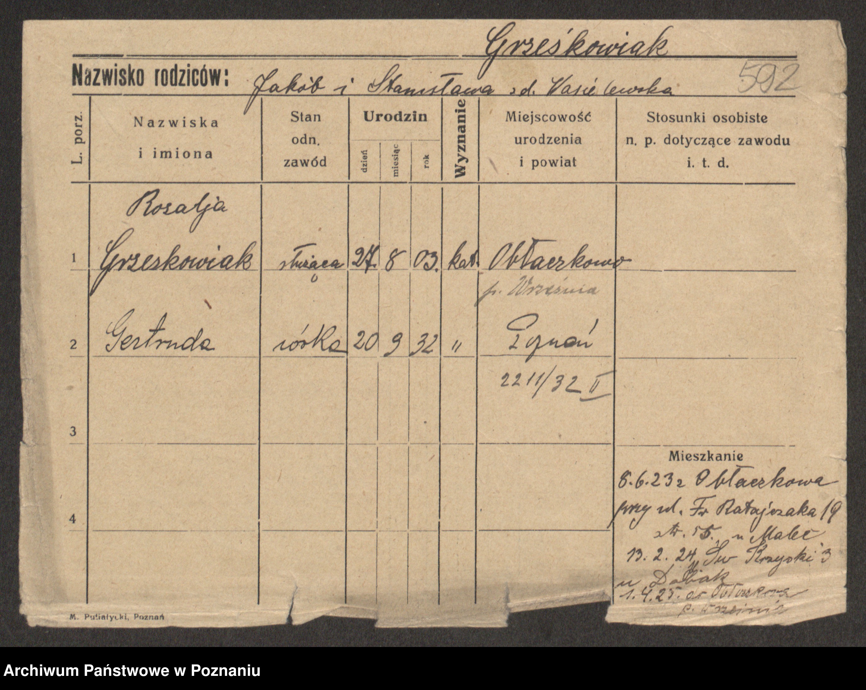 Grześkowiak z d. Koszarek, Gertruda