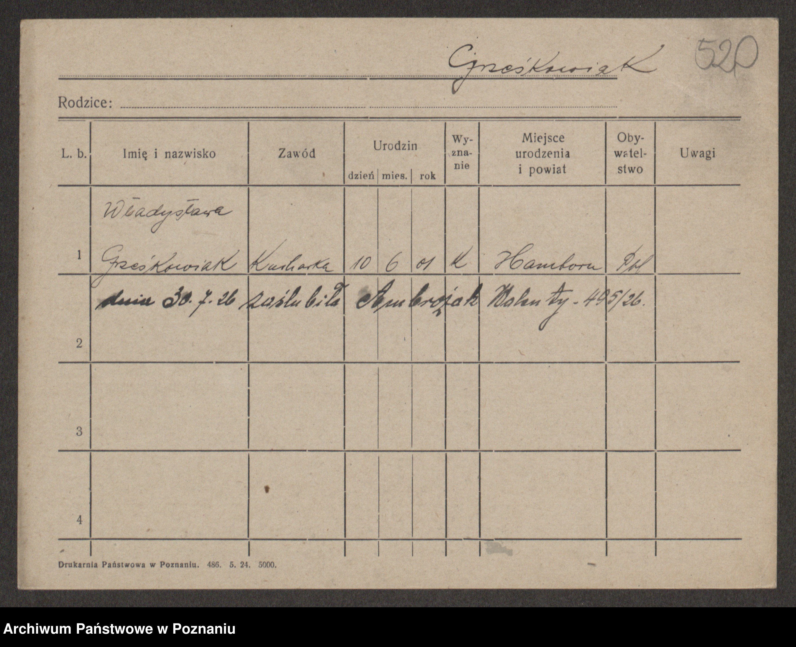 Grzeskowiak z d. Prochowska, Wladislawa
